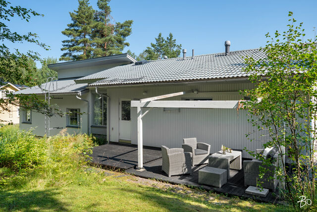 Etusivu / Uusimaa / Kirkkonummi / Vasikkahaantie 26 1 / 1 Vasikkahaantie 26 Jorvas, Kirkkonummi | Omakotitalo | 6h, keittiö, rt, 2 x kph, sauna, khh, wc ja autotalli/katos 635 000 € Velaton hinta 191,0 m2 Asuinpinta-ala 201,0 m2 Kokonaispinta-ala 2006 Rakennusvuosi Tervetuloa tutustumaan tähän kauniisti pidettyyn omakotitaloon, joka tarjoaa ihanteelliset puitteet suurenkin perheen tarpeisiin ja täydellisen yhdistelmän kodikkuutta ja modernia toimivuutta!Tässä hurmaavassa talossa käytössäsi on jopa kuusi makuuhuonetta, jotka antavat mahdollisuuden muokata tiloja perheen tarpeiden mukaan, ja jokainen löydetty nurkka tuntuu kuin luodulta viihtyisään oloon ja yhdessäoloon.Iso olohuone on jatkumoa keittiölle ja taitava eritasoratkaisu tuo asumiseen käytännöllisyyttä ja avaruutta. Tilavasta ja valoisasta keittiöstä pääsee luontevasti ruokailutilaan, joka sopii niin arjen ruokailuihin kuin juhlaillallisiin.Kaksi kylpyhuonetta ja erillinen WC lisäävät arjen sujuvuutta ja oma sauna tarjoaa mahdollisuuden rentoutua päivän kiireiden jälkeen. Kodinhoitohuone tekee perheen pyykkihuollosta vaivatonta. Kiinteistön piha-alue on vehreä ja kutsuu nauttimaan luonnon rauhasta. Vuonna 2006 valmistunut omakotitalo sijaitsee hyvin hoidetulla tontilla, joka tarjoaa kauniit luontonäkymät ja metsän läheisyyden. Talo lämpiää energiatehokkaasti maalämmöllä, mikä pitää ylläpidon kustannukset maltillisina. Pihalla sijaitsevat viihtyisät oleskelualueet tarjoavat tilaa sekä rentoutumiselle että lasten leikeille, ja autotalli sekä katos lisäävät asumismukavuutta entisestään.Tämä koti sijaitsee rauhallisella ja viehättävällä pientaloalueella, joka tarjoaa asukkailleen maalaisympäristön rauhan ja hiljaisuuden. Kirkkonummen tarjoamat palvelut, kuten koulut, kaupat ja liikuntapaikat, ovat kuitenkin vain lyhyen ajomatkan päässä. Kehä 3:lle ja Länsiväylälle on nopea kulkuyhteys ja Helsingin keskustaankin pääset autolla noin 20 minuutissa. Tämä alue yhdistää ainutlaatuisesti maaseudun rauhallisuuden ja kylämäisen yhteisöllisyyden. Tule ja koe itse paikan päällä, kuinka tämä ihanteellinen ympäristö voi olla uusi kotisi ja perheesi turvasatama.Unelmiesi koti odottaa sinua: kauniisti pidetty omakotitalo tarjoaa tilaa suuremmankin perheen tarpeisiin vehreässä ja rauhallisessa maalaismiljöössä!Myynti ja esittelyt:Katja Lampinenkiinteistönvälittäjä LKV, partnerBo LKV Helsinki, Kruununhakap. 044 243 3744 I katja@bo.fi Kiinnostaako tämä kohde?Ota meihin yhteyttä tai jätä viesti Katja Lampinen kiinteistönvälittäjä LKV, partner 044 243 3744 katja@bo.fi Tutustu välittäjään Varaa aika kalenteristani RakennusRakennusvuosi (aloitettu)2005Käyttöönottovuosi2005RakennusmateriaaliPuuKattotyyppiHarjakattoKateTiiliAsuinpinta-ala191,0 m2 (201,0 m2)Lisätietoja pinta-alastaKohteen asuin pinta-ala on rakennuslupapiirustusten ja Kirkkonummen kunnan rakennus- ja huoneistorekisteriotteen mukaan 191m2. Pinta-aloja ei ola tarkistusmitattu.Kerrokset1Muut tilat10,0 m2Lämmitysjärjestelmän kuvausMaalämpöLämmön jakotapaVesikiertoinen lattialämmitysHuoneluku6h, keittiö, rt, 2 x kph, sauna, khh, wc ja autotalli/katosKeittiön muut varusteetAstianpesukone, liesituuletin / hormiLiesiInduktioliesi, erillisuuniKeittiön seinien materiaaliMaalattuKylpyhuoneen varustusSuihkuseinä, lattialämmitys, suihkuKylpyhuoneen lattiamateriaaliLaattaKylpyhuoneen seinämateriaaliKaakeliSaunaAsunnossa on saunaSaunan lattiamateriaaliLaattaSaunan seinämateriaaliPuuWC-tilojen kuvausVarustus: suihkukaappiLukumäärä: 2Lattiamateriaalit: laattaKodinhoitohuoneVarustus: pesukoneliitäntäLattiamateriaalit: laattaMakuuhuoneen kuvaus, lisätiedot ja varustusLattiamateriaalit: parkettiSeinämateriaalit: maalattuOleskelutilojen kuvaus, lisätiedot ja varustusLattiamateriaalit: parkettiSeinämateriaalit: maalattuTakkatiedotTakkaLattiamateriaalitParketti ja kiviMuut säilytystilatVaatehuoneTehdyt korjaukset2012 Seinän purku jotta saatu isompi makuuhuone. 2012 Yleistilojen sisämaalausta 2015 Koneellisen ilmastoinnin tarkistus ja putsaukset 2015 Öljylämmitys muutettu maalämmöksi 2018 Pesutila ja sauna ehostettu, kaakelit vaihdettu yms 2018 Koneellisen ilmastoinnin tarkistus ja putsaukset 2019 Piha asvaltoitu ja samalla tehty toinen autopaikka 2021 Talot maalattu ja päätalon katon suojakäsittely. Terassit maalattu. 2021 Koneellisen ilmastoinnin tarkistus ja putsaukset 2021 Kodinkoneiden uusiminen: liesi, pakastin ja jääkaappi 2022 Valokuituyhteys 2023 Viemärien painepesut ja tarkistukset että kaikki kunnossa 2024 Koneellisen ilmastoinnin tarkistus ja putsaukset 2024 Pesukoneen vaihto 2024 Maalämpöyksikön tarkistukset ja huoltotyöt 2025 Terassien maalauksetKuntoHyväLisätietoja energiatodistuksestaMyyjä vastaa energiatodistuksen hankkimisesta lain velvoittamana ennen kaupantekoa. KiinteistötiedotKiinteistötunnus257-451-2-172Kortteli/Kiinteistön nimiHelminiittyTyyppiTilaTontin tyyppiTasamaatonttiTontin koko0,25 haTontin omistusOmaPanttikirjat400 000,00 €Rasitukset ja rasitteet- 2 kappaletta sähköisiä panttikirjoja, siirretään lainoittamattomina ostajalle. Ostaja vastaa sähköisten panttikirjojen siirtokuluista.VesijohtoKunnanViemäriKunnanRakennusoikeus, e-luku0.15 AsumiskustannuksetVesi ja jätevesi89,00 €Puhtaanapito22,00 €Kiinteistövero952,00 €Tiemaksut220,00 €Muut maksut / lisätietoa maksuista- Sähkön kokonaiskulutus vuodessa on noin 14 750kWh, joka pitää sisällään lämmityksen. - Esitetyt asumiskustannukset perustuvat nykykäyttöön ja voimassa oleviin sopimuksiin. Kustannukset voivat siten olla suurempia tai pienempiä riippuen asukasmäärästä, asumistottumuksista ja palveluntarjoajasta. HintaVelaton hinta635 000,00 €Myyntihinta635 000,00 € VapautuuSopimuksen mukaan Sinua voisi kiinnostaa Asunnon hinta-arvio ja arviokäynti Asunnon hinta-arvio ja arviokäynti Mitä hinta-arvio maksaa tai miten arviokäyntiä varten k