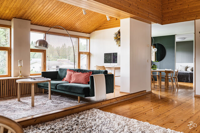 Etusivu / Satakunta / Ulvila / Loukkurantie 12 1 / 1 Loukkurantie 12 Loukkura, Ulvila | Omakotitalo | Oh,k,4mh,rt,parvi,takkah,2wc,ph,s,khh,vh+autotalli 239 000 € Velaton hinta 166,5 m2 Asuinpinta-ala 247,0 m2 Kokonaispinta-ala 1979 Rakennusvuosi Ajaton klassikko Ulvilan Loukkurassa!Rauhallisessa ja arvostetussa Loukkurassa vuonna 1979 rinnetontille valmistunut omakotitalo on kaikkea muuta kuin tavanomainen pakettitalo. Tämä koti on suunniteltu aikanaan tyylillä ja tavalla, joka kestää läpi vuosikymmenten. Lopputuloksena on linjakas, persoonallinen ja hurmaavia yksityiskohtia sisältävä koti.Tämä koti sopii niin suurperheelle, tilaa kaipaavalle pariskunnalle, etätyöläiselle tai pienelle perheelle, joka haluaa asua väljästi. Kodin käytännöllinen pohjaratkaisu tarjoaa runsaasti muunneltavia tiloja sekä lähes loputtomat säilytysmahdollisuudet. Jokainen neliö on suunniteltu käyttöä varten. Tässä kodissa arki sujuu ilman kompromisseja.Rakennusajalle tyypilliset yksityiskohdat, kuten suuret ikkunapinnat ja harkitut materiaalivalinnat, yhdistyvät ajattomaan kokonaisuuteen, joka puhuttelee niin estetiikkaa kuin käytännöllisyyttä arvostavaa asujaa.Talosta on vuosien varrella pidetty hyvää huolta. Merkittävistä remonteista mainittakoon lämmitysjärjestelmän vaihto öljystä energiatehokkaaseen vesi-ilmalämpöpumppuun keväällä 2025 sekä talon perustuksia suojaava salaojaremontti vuonna 2013.Sijainti, tyyli ja tilat tekevät tästä kodista harvinaisen löydön. Jos etsit kotia joka erottuu massasta, on tämä Loukkuran helmi näkemisen arvoinen.Lisätiedot ja yksityisesittelyt,Eula Wessbergkiinteistönvälittäjä LKV, LVV, julkinen kaupanvahvistaja, partner040 519 9625 | eula@bo.fi | @lkv.eulawee Kiinnostaako tämä kohde?Ota meihin yhteyttä tai jätä viesti Eula Wessberg kiinteistönvälittäjä LKV, LVV, julkinen kaupanvahvistaja, partner 040 519 9625 eula@bo.fi Tutustu välittäjään Varaa aika kalenteristani RakennusKäyttöönottovuosi1979RakennusmateriaaliPuu, tiili, muuRakennusmateriaalien kuvausPuurakenteiset ulkoseinät, tiiliverhoilu. KattotyyppiAumakattoKateTiilikateKaton kuntoKatto pesty ja maalattu 2008. Asuinpinta-ala166,5 m2 (247,0 m2)Lisätietoja pinta-alastaRakennuspiirustuksen mukaan asuinpinta-ala on 166,5 m2, autotalli 15 m2, pannuhuone 8 m2 ja varasto 57,5 m2. (asuinpinta-ala 166,5 m²/kerrosala 304 m²). Pinta-aloja ei ole tarkistusmitattu, todellisen pinta-alan selvittämiseksi suositellaan tarkistusmittausta.Kerrokset2Muut tilat80,5 m2LämmitysVesikiertoinen patterilämmitys, uuni/takka, muu. Ilmavesilämpöpumppu uusi, asennettu keväällä 2025Lämmitysjärjestelmän kuvausIlmavesilämpöpumppu, puu, ilmalämpöpumppu, muuHuonelukuOh,k,4mh,rt,parvi,takkah,2wc,ph,s,khh,vh+autotalliKeittiön kuvaus, lisätiedot ja varustusPuustellin keittiö uusittu 2007Keittiön muut varusteetMikroaaltouuni, astianpesukone, liesituuletin / hormiLiesiErillisuuniKeittiön työtasojen materiaaliKiviKeittiön lattiamateriaaliLautaKeittiön seinien materiaaliKaakeli, tapettiPesutilojen kuvaus, lisätiedot ja varustusYläkerran pesuhuoneeseen päivitetty v. 2025 tammitaso, allas ja uusi hana. Alakerran pesutilojen yhteydessä myös wc.Kylpyhuoneen varustusSuihkukaappi, wc-istuin, peili, kylpyhuonekaapistoKylpyhuoneen lattiamateriaaliLaattaKylpyhuoneen seinämateriaaliKaakeliSaunaAsunnossa on saunaSaunan kuvaus, lisätiedot ja varustusSaunan lauteet käsitelty, nuohous vuosittain, viimeksi 04/2025Saunan lattiamateriaaliLaattaSaunan seinämateriaaliPuuWC-tilojen kuvausPäämakuuhuoneen wc:ssä myös suihkukaappi ja kiinteät kaapistot. Yläkerrassa tämän lisäksi 1 erillinen wc sekä alakerran pesuhuoneessa wc pesuhuoneen yhteydessä.Varustus: suihkukaappiLukumäärä: 2Lattiamateriaalit: laattaSeinämateriaalit: kaakeliKodinhoitohuoneAlakerrassa iso 14,6 m2 pyykkihuoneVarustus: pesukoneliitäntäLattiamateriaalit: betoniSeinämateriaalit: maalattuMakuuhuoneen kuvaus, lisätiedot ja varustusLukumäärä: 4Lattiamateriaalit: lautaSeinämateriaalit: maalattu, tapettiOleskelutilojen kuvaus, lisätiedot ja varustusLattiamateriaalit: lautaSeinämateriaalit: maalattuTulisijaVaraava takka alakerrassa, nuohottu vuosittain ja viimeksi 04/2025TakkatiedotTakka, muuLattiamateriaalitPuulattiat, toisissa huoneissa maalattu. Alakerrassa laatta.Muut säilytystilatVaatehuoneTehdyt korjauksetIlmavesilämpöpumppu 05/2025 Yläkerran kylpyhuoneen päivitys: uusi tammitaso, pesuallas ja hana, 06/2025 Salaojat, sadevesiputket, uudet patolevyt ja vierustan sepelöinti, v. 2013 (Maanrakennus Mykrä) Puustellin keittiö uusittu 2007 Tiilikaton pesu ja maalaus 2008 Pintaremonttia nykyisen omistajan toimesta vuosina 2017-2025 Olohuoneen parveke muutettu olohuoneen lisätilaksi n. v. 1992 Saunatilat uusittu v. 1991Muuta kauppaan kuuluvaaTakapihan terassin iso lankkupöytäKuntoHyväLisätietoja energiatodistuksestaMyyjä on vastuussa energiatodistuksen hankkimisesta lain velvoittamana. KiinteistötiedotKiinteistötunnus886-414-3-294Kortteli/Kiinteistön nimiTONTTI N:O 7/4TyyppiTilaTontin tyyppiRinnetonttiTontin koko1 240,00 m2Tontin omistusOmaPanttikirjat288 865,77 €Lisätietoja tontistaRinnetontti, joka rajoittuu kaupungin puistoalueeseen.Tie perilleVesijohtoKunnanViemäriKunnan AsumiskustannuksetKiinteistövero360,00 €Muut maksut / lisätietoa maksuistaSähkönkulutus vuonna 2024 ollut n.14.000 kWh. Öljyn kulutus ollut lisäksi n. 2.500l/vuosi. Kulutus on ollut isoa ja asukkaita on ollut 8-10 hlöä. Tämän hetken vuosittaisesta sähkönkulutuksesta ei ole saatavilla varmaa tietoa sillä uusi lämmitysjärjestelmä (VILP) asennettu 05/2025. Myös asukasmäärä ja kulutustottumukset vaikuttavat todelliseen kulutukseen. Varainsiirtovero 3 %. HintaVelaton hinta239 000,00 €Myyntihinta239 000,00 € VapautuuHetiMaksuehtoKäteinen. Sinua voisi kiinnostaa Asunnon hinta-arvio ja arviokäynti Asunnon hinta-arvio ja arviokäynti Mitä hinta-arvio maksaa tai miten arviokäynt