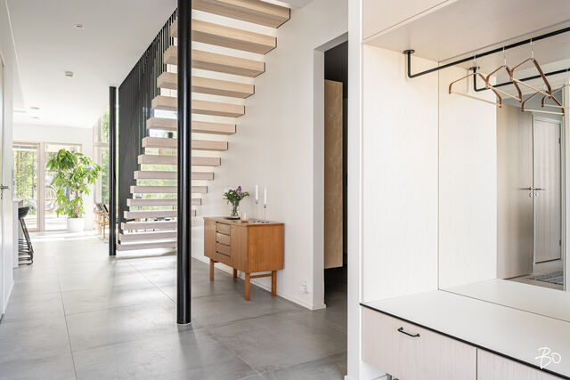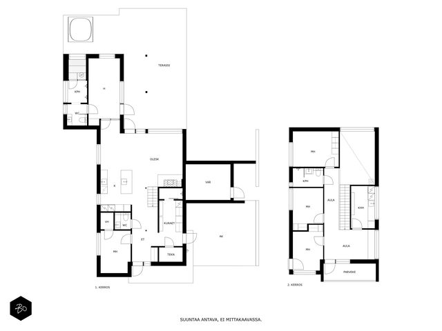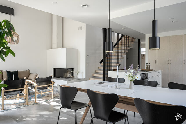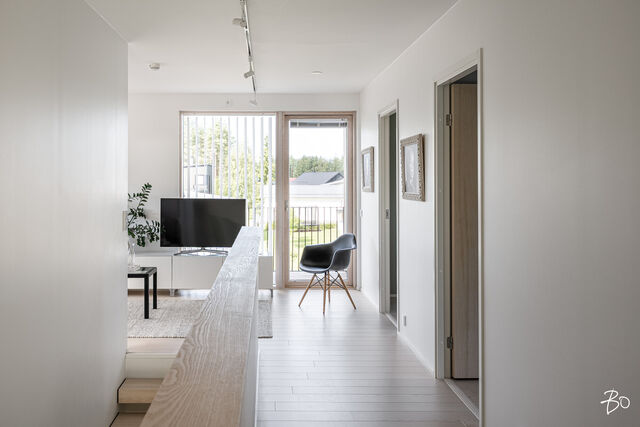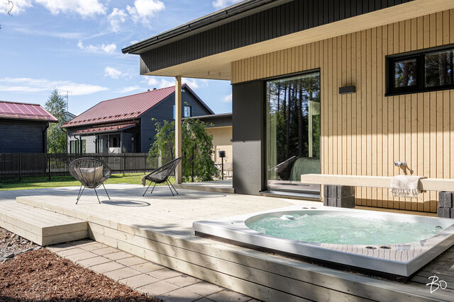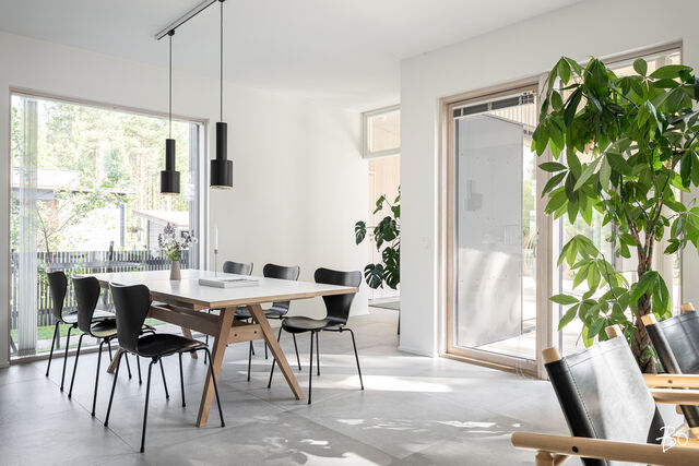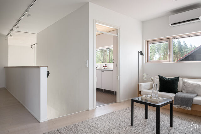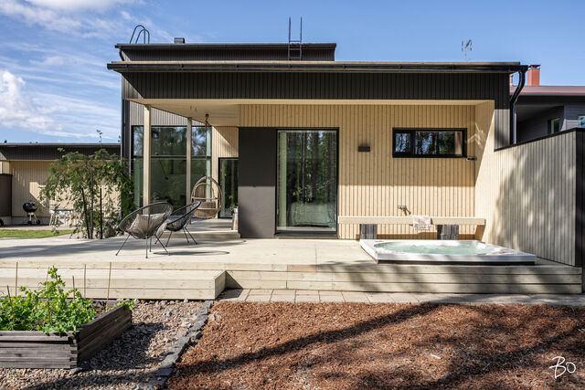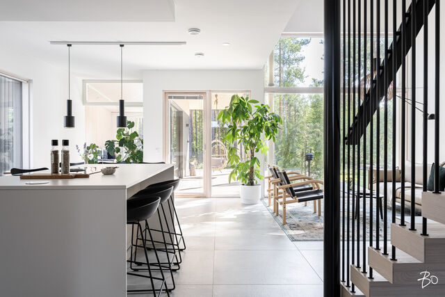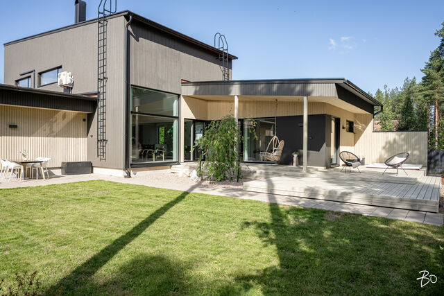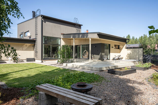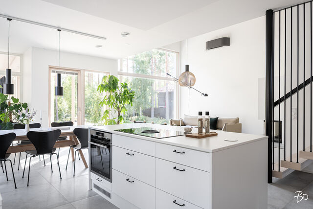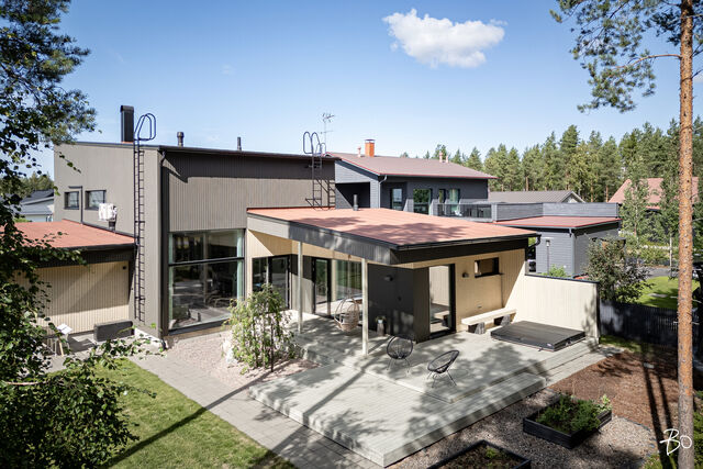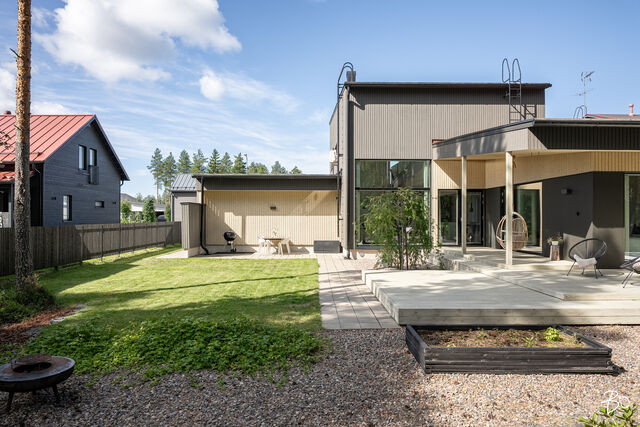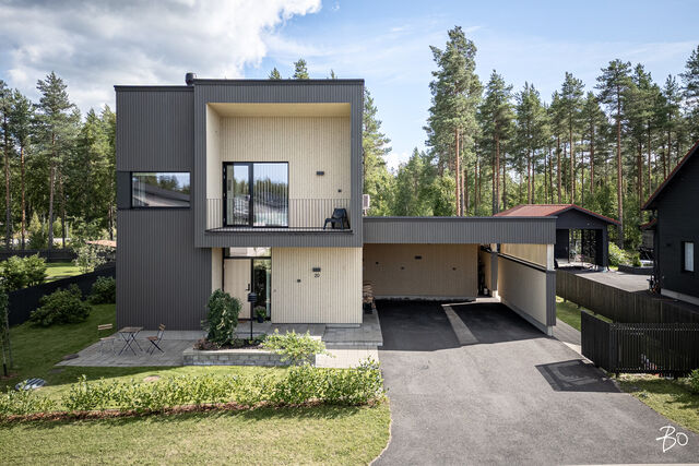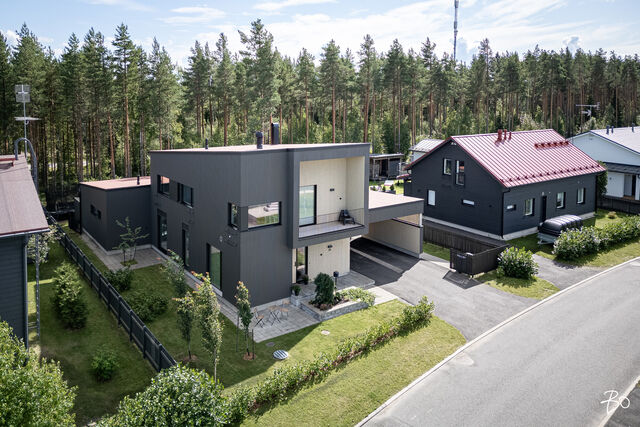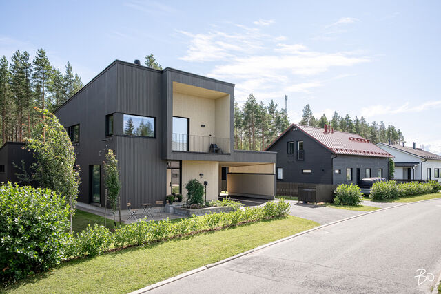 Etusivu / Pohjois-Pohjanmaa / Oulu / Atrappitie 20 1 / 1 Atrappitie 20 Ritaharju, Oulu | Omakotitalo | 5h, k, 2kph, s, saunatupa, aula, khh, wc, vh 535 000 € Velaton hinta 183,0 m2 Asuinpinta-ala 195,5 m2 Kokonaispinta-ala 2019 Rakennusvuosi Poikkeuksellisen upea, arkkitehtitoimisto Arkkijussin suunnittelema kokonaisuus vapautuu nyt Ritaharjun suositulta alueelta.Tämä 2019 valmistunut unelmien omakotitalo yhdistää kauniita, laadukkaita pintoja ja luonnonläheisiä materiaaleja, jotka kestävät aikaa ja joiden kanssa on helppo sisustaa kotia oman mielensä mukaisesti.Kodin kaksitasoinen pohjaratkaisu on huolella, perheen tarpeiden mukaan suunniteltu. Talon keskellä sijaitsee perheen yhteiset tilat mukaanlukien upea Rautio Kalustaa - keittiö saarekkeineen sekä korkeine olohuoneineen. Keittiössä ollessa huomaa, että ollaan kodin sydämessä; tänne on helppo kokoontua viettämään yhdessä aikaa. Isot ikkunat omaavasta olohuoneesta avautuvat metsäiset maisemat takapihalle. Tässä kodissa luonto on vahvasti läsnä. Keskiössä on myös kaunis takka, joka koostaan huolimatta tuntuu kelluvan ilmassa. Alakerran siivessä, vähän irrallaan muusta talosta, sijaitsee saunatupa saunoineen. Tila on tällä hetkellä makuuhuone käytössä, mutta muuntuu moneen eri käyttötarkoitukseen. Alakerrasta löytyy lisäksi yksi kodin makuuhuoneista, sekä perheen arjen hektisyyden pelastaja; arkieteinen! Täällä on reilusti kaappitilaa sekä oma suihkutilansa - unelma perheelle, joka harrastaa paljon.Yläkerta on pyhitetty perheen omalle ajalle. Kolme tilavaa makuuhuonetta kätkevät sisäänsä hyvin kaappitilaa. Myös erillinen kodinhoitohuone sekä kylpyhuone ovat tässä kerroksessa tuoden arkeen sujuvuutta. Aulatila muuntuu tarvittaessa lasten omaksi olohuoneeksi, vierashuoneeksi tai työtilaksi. Täältä on myös kulku parvekkeelle.Kodin lämmitysmuodosta vastaa varma kaukolämpö vesikiertoisella lattialämmityksellä, ja kesähelteillä apua viilennykseen tuo kaksi ilmalämpöpumppua, yksi kummassakin kerroksessa. Säilytystilaa löytyy rutkasti myös ulkoa, reilunkokoinen ulkovarasto on niin ikään kaukolämmössä. Kahdelle autolle löytyy katospaikka aivan ulko-oven vieressä.Koti sijaitsee hyvänkokoisella ja viehättävällä tontilla, joka tarjoaa monipuolisia mahdollisuuksia niin vapaa-aikaan kuin harrastuksiinkin. Suojaisa takapiha on ihanteellinen paikka rauhalliseen oleskeluun tai lasten leikkeihin, ja suuren terassin ansiosta kesäpäivät ovat täällä nautinto. Terassilla löytyy upotettu, tyylikäs Drop - poreallas, joka tuo arkeen ripauksen luksusta. Metsän viereen on taas rakennettu pieni, suloinen tulistelupaikka.Tämä koti sijaitsee suositulla asuinalueella, jossa kaikki palvelut mm. Ideapark ovat lähellä. Lapsiperheelle ihanteellisena sijaintina alue tarjoaa koulut ja päiväkodit aivan kävelyetäisyydellä. Nopea yhteys moottoritielle varmistaa nopean kulkemisen myös ympäri kaupunkia. Toista vastaavanlaista kotia ei tule vastaan. Huomioithan, että tähän kotiin järjestetään vain yksityisesittelyitä, joten varaa pian omasi!Unelman sinulle myy:Julia Hakalaylempi kiinteistönvälittäjä YKV, LKV, KiAT, kaupanvahvistaja, partner044 218 7489julia.hakala@bo.fi Kiinnostaako tämä kohde?Ota meihin yhteyttä tai jätä viesti Julia Hakala ylempi kiinteistönvälittäjä YKV, LKV, KiAT, kaupanvahvistaja, partner 044 218 7489 julia.hakala@bo.fi Tutustu välittäjään Varaa aika kalenteristani RakennusRakennusvuosi (aloitettu)2018RakennusmateriaaliPuuKattotyyppiPulpettikattoKateHuopaAsuinpinta-ala183,0 m2 (195,5 m2)Lisätietoja pinta-alastaLämmin varasto 12,5m2. Talon kerrosala 216m2.Kerrokset2Muut tilat12,5 m2Lämmitysjärjestelmän kuvausKaukoLämmön jakotapaVesikiertoinen lattialämmitysHuoneluku5h, k, 2kph, s, saunatupa, aula, khh, wc, vhKeittiön kuvaus, lisätiedot ja varustusLaadukas Rautio Kalustaa - keittiö. Saareke on varusteltu erillisuunilla (pyrolyysi- ja kiertoilma), induktioliesitasolla, liesitasotuulettimella (aktiivihiilisuodatin). Pitkien kaappien ovet saarniviilua. Aamiaiskaappi sisääntaittuvilla ovilla. Kuumaa ja kylmää kestävät, laadukkaat Dekton-tasot, myös välitilassa. Integroidut kodinkoneet. Astianpesukone uusittu 9/2025.Keittiön muut varusteetAstianpesukone, liesituuletin / suodatinLiesiInduktioliesi, erillisuuniKeittiön lattiamateriaaliLaattaPesutilojen kuvaus, lisätiedot ja varustusPääkylpyhuoneessa kaksi sadesuihkua ja kaksi linjakaivoa. Yläkerran kylpyhuoneessa sadesuihku, peilikaappi. Arkieteisen yhteydessä olevassa suihkussa sadesuihku.Kylpyhuoneen varustusLattialämmitys, suihku, peiliKylpyhuoneen lattiamateriaaliLaattaKylpyhuoneen seinämateriaaliKaakeliSaunaAsunnossa on saunaSaunan kuvaus, lisätiedot ja varustusLasiovi ja -seinä.Saunan lattiamateriaaliLaattaSaunan seinämateriaaliPuuWC-tilojen kuvausYksi erillinen wc, kahdessa kylpyhuoneessa myös wc-tilat. Alakerran wc:ssa peili.Varustus: lattialämmitys, bidee-suihkuLukumäärä: 1Lattiamateriaalit: laattaSeinämateriaalit: kaakeliKodinhoitohuoneKodinhoitohuone sijaitsee yläkerrassa lähellä makuuhuoneita. Paljon lasku- ja kaappitilaa. Tilaa pyykin kuivaukselle.Varustus: pesukoneliitäntä, pesuallas, lattialämmitys, pyykkikaapit, pöytätasoLattiamateriaalit: laattaSeinämateriaalit: maalattuMakuuhuoneen kuvaus, lisätiedot ja varustusKolme makuuhuonetta yläkerrassa on varustettu kaappitilalla. Alakerran makuuhuone vaatehuoneella. Kaikki makuuhuoneet ovat tilavia. Tällä hetkellä makuuhuonekäytössä olevassa saunatuvassa myös kaapistot.Lukumäärä: 4Lattiamateriaalit: parkettiSeinämateriaalit: maalattuOleskelutilojen kuvaus, lisätiedot ja varustusOlohuone avautuu ylös asti, isot ikkunat tuovat valoa entisestään avaraan tilaan. Akustiikkapaneeleita seinällä.Lattiamateriaalit: laattaSeinämateriaalit: maalattuMuut tilatYläkerran aulassa lattiassa parketti ja seinillä maali. Saunatuvan lattiassa laattaa ja seinillä maali ja Sipar