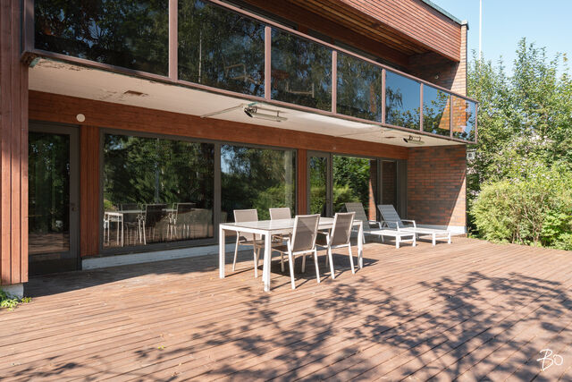 Etusivu / Uusimaa / Helsinki / Marjaniemenranta 33 B 1 / 1 Marjaniemenranta 33 B Marjaniemi, Helsinki | Omakotitalo | 5h, keittiö, th, kph x 3, sauna, uima-allas, erillinen yksiö ja autotalli 830 000 € Velaton hinta 260,0 m2 Asuinpinta-ala 347,0 m2 Kokonaispinta-ala Tervetuloa unelmien kotiin meren äärellä! Tämä upeaa 70-luvun henkeä huokuva täystiilitalo Marjaniemenrannassa tarjoaa harvinaista eleganssia ja modernia mukavuutta, joka tekee vaikutuksen heti sisään astuessa.Tämä upea ja uniikki omakotitalo tarjoaa tilavaa asumista kahdessa kerroksessa ja avaa mahdollisuudet monenlaisiin tarpeisiin.Talon sisätiloissa yhdistyvät avarat huoneet ja upeat yksityiskohdat, kuten rouheat tiiliseinät, jotka luovat persoonallisen ja lämpimän ilmapiirin. Koti tarjoaa väljät tilat, joissa on tilaa sekä perheelle että vieraille.Koko päätyseinän levyinen ikkunaseinä yhdistää makuuhuoneen, olohuoneen ja ruokailutilan upeaksi kokonaisuudeksi ja antaa valon ja vehreyden tulvia sisätiloihin.Erillinen yksiö tarjoaa monia mahdollisuuksia, olitpa sitten tarvitsemassa tilaa vieraille tai erillistä työskentelytilaa yrittäjänä. Tämä ainutlaatuinen koti on kuntotarkastettu kesällä 2025, mikä tuo mielenrauhaa ja varmuutta ostopäätökselle.Kiinteistö sijaitsee omalla, isolla tontilla, ja suuri terassi kutsuu nauttimaan auringonpaisteesta ja merellisistä näkymistä. Autotalli tarjoaa kätevän säilytysratkaisun ja lisää kodin käytännöllisyyttä. Piha-alue on viihtyisä ja antaa mahdollisuuden monenlaiseen puutarhanhoitoon tai leikkeihin. Pihalta avautuu kauniit maisemat merelle, ja se kutsuu nauttimaan raikkaasta meri-ilmasta ympäri vuoden. Tämä hyvin ylläpidetty ja kesällä 2025 kuntotarkastettu kiinteistö on oiva sijoitus tulevaisuuteen.Asuinalue edustaa Helsingin parhaita puolia: Marjaniemenranta on suosittu ja arvostettu alue, joka tarjoaa rauhallista asuinympäristöä ja erinomaisia palveluja lähellä. Kaikki tarvittavat palvelut löytyvät lyhyen matkan päästä, ja upeat ulkoilumahdollisuudet rantamaisemissa odottavat aivan kotiovelta. Tämä on paikka, jossa yhdistyvät mukavuus, kauneus ja käytännöllisyys. Tämä tekee Marjaniemestä ihanteellisen paikan aktiiviseen ja mukavaan elämään. Tämä ainutlaatuinen koti on ehdottomasti tutustumisen arvoinen. Ota yhteyttä ja varaa oma esittelyaikasi unelmakotisi odottaa!Myynti ja esittelyt:Katja Lampinenkiinteistönvälittäjä LKV, partnerBo LKV Helsinki, Kruununhakap. 044 243 3744 I katja@bo.fi Kiinnostaako tämä kohde?Ota meihin yhteyttä tai jätä viesti Katja Lampinen kiinteistönvälittäjä LKV, partner 044 243 3744 katja@bo.fi Tutustu välittäjään Varaa aika kalenteristani RakennusKäyttöönottovuosi1972RakennusmateriaaliTiili, betoniKattotyyppiLoiva kattoKateBitumikermi, pinnoitettuAsuinpinta-ala260,0 m2 (347,0 m2)Lisätietoja pinta-alastaHelsingin kaupungin epävirallisen rakennus- ja huoneistorekisteriotteen mukaan kiinteistön asuinpinta-ala on 260m2, kerrosala 305m2 ja kokonaispinta-ala 347m2. Pinta-aloja ei ole tarkistusmitattu. Rakennusten pinta-alatietoja on eri aikakausina tulkittu monin eri tavoin, mikä voi esiintyä ristiriitaisina merkintöinä rakennusten piirustusten ja rekisteritietojen välillä. Suosittelemme pinta-alan tarkistusmittausta oikean pinta-alatiedon varmistamiseksi.Kerrokset2Lämmitysjärjestelmän kuvausöljy, sähkö, ilmalämpöpumppuLämmön jakotapaVesikiertoinen patterilämmitys, sähköinen lattialämmitys, ilmalämpöpumppuHuoneluku5h, keittiö, th, kph x 3, sauna, uima-allas, erillinen yksiö ja autotalliKeittiön muut varusteetAstianpesukoneLiesiInduktioliesi, erillisuuniKeittiön työtasojen materiaaliKiviKeittiön lattiamateriaaliParkettiPesutilojen kuvaus, lisätiedot ja varustusKolme kylpyhuonetta.Kylpyhuoneen varustusSuihkuseinä, suihkuKylpyhuoneen lattiamateriaaliLaattaKylpyhuoneen seinämateriaaliKaakeliSaunaAsunnossa on saunaWC-tilojen kuvausLattiamateriaalit: laattaKodinhoitohuoneVarustus: pesukoneliitäntäLattiamateriaalit: laattaMakuuhuoneen kuvaus, lisätiedot ja varustusLattiamateriaalit: parkettiOleskelutilojen kuvaus, lisätiedot ja varustusLattiamateriaalit: laattaMuut tilatErillinen yksiö, missä keittiö ja kylpyhuone. Takkahuone: Kuitulattia Ruokailutila: Laattalattia Eteinen: LaattalattiaTakkatiedotTakkaMuut säilytystilatVaatehuoneTehdyt korjaukset2016-2017 Katon pinnoitus, käyttövesiputkiston ja viemärien uusiminen, kosteiden tilojen laatoituksen ja kalusteiden uusiminen (paitsi uima- allastila), lattioiden osittainen uusiminen, -pintojen maalaus, ulkopinnoilla olevan paneloinnin uusiminen, keittiön uusiminen, terassien rakentaminen. Keittiöstä ja kellarin pesuhuoneesta avattu väliseinät. 2025 kahden ikkunan korjaus, pintatöitä, putkitöistä avoinna olleen lattiaosuuden valaminen umpeen autotallissa.Muuta kauppaan kuuluvaaUima-allasKuntoTyydyttäväLisätietoja energiatodistuksestaMyyjä vastaa energiatodistuksen hankkimisesta lain velvoittamana. KiinteistötiedotKiinteistötunnus91-45-14-17TyyppiTonttiTontin tyyppiRinnetonttiTontin koko1 258,00 m2Tontin omistusOmaPanttikirjat750 000,00 €Rasitukset ja rasitteet- 1 kappale sähköisiä panttikirjoja, siirretään lainoittamattomina ostajalle. Ostaja vastaa sähköisten panttikirjojen siirtokuluista.VesijohtoKunnanViemäriKunnanRakennusoikeus, e-luku0.25 AsumiskustannuksetMuut maksut / lisätietoa maksuista- Öljynkulutus 6000l / vuosi - Sähkönkulutus 8400 kWh / vuosi - Kiinteistövero 2620,39 euroa / 2025 - Vesi- ja jätevesi 100 euroa / kuukausi - Jätehuolto 30 euroa / kuukausi - Varainsiirtovero 3% - Omakotitalon ja kotivakuutuksen maksut omien vakuutusehtojen mukaisesti - Esitetyt asumiskustannukset perustuvat nykykäyttöön ja voimassa oleviin sopimuksiin. Kustannukset voivat siten olla suurempia tai pienempiä riippuen asukasmäärästä, asumistottumuksista ja palveluntarjoajasta. HintaVelaton hinta830 000,00 €Myyntihinta830 000,00 € VapautuuSop