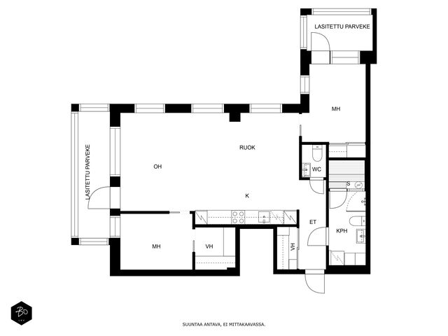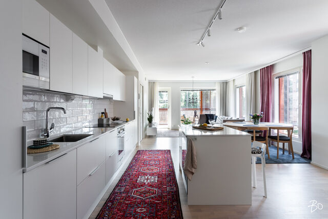 Etusivu / Pirkanmaa / Tampere / Ranta-Tampellan Katu 12 1 / 1 Ranta-Tampellan Katu 12 Ranta-Tampella, Tampere | Kerrostalo | 3-4h, k, kph/wc/s, erill wc vh, 2 x lasitettu parveke 579 000 € Velaton hinta 88,0 m2 Asuinpinta-ala 387,20 €/kk Hoitovastike 2021 Rakennusvuosi Seuraava esittely: 19.10.2025 klo 14.30-15.00Tervetuloa ensiesittelyyn! Ranta-Tampellasta vapautumassa upean valoisa viidennen kerroksen huoneisto!Kaunis vaalea keittiö saarekkeineen on yhtenäistä tilaa suuren olohuoneen kanssa. Olohuoneesta on käynti etelän suuntaiselle lasitetulle parvekkeelle, josta aukeaa upeat maisemat kanavan suuntaan. Makuuhuoneen yhteydessä olevalla kodin toisella parvekkeella taas pääset nauttimaan ilta-auringosta. Olohuoneesta on mahdollista erottaa väliseinällä asuntoon kolmas makuuhuone. Asunnosta löytyy kaksi wc:tä, toinen on erillinen, ja toinen kylpyhuoneen yhteydessä. Vaatehuoneen ja liukuovikaapistojen lisäksi osakkaan käytössä on lämmin irtaimistovarasto. Kaupan yhteydessä on mahdollista ostaa erillisenä osakkeena numeroimaton autohallipaikka. Autohallissa on myös useita sähköauton latauspaikkoja, jotka ovat osakkaiden käytössä. Lataussähköstä maksetaan erikseen kulutuksen mukaan.As Oy Ranta-Tampellan Kaplan on Skanskan laadukkaasti rakentama OMATONTTINEN vuonna 2021 valmistunut yhtiö. Yhtiölle on myönnetty ensimmäisenä Suomessa omistusasuntokohteena RTS-ympäristöluokitus. Kaplanin saama RTS-ympäristöluokitus ottaa huomioon rakennuksen energiankulutuksen, hyvän sisäilman ja hiilijalanjäljen. Lämmitysmuotona toimii kaukolämpö vesikiertoisin lattialämmityksin. Lattiaviilennys tuo asumiseen mukavuutta kesäaikaan. Kiinteistön katolla olevat aurinkopaneelit tuottavat energiaa yhtiön käyttöön. Yhtiössä on vuokrattavissa vaikkapa vieraitasi varten huone, jonka yhteydessä on viihtyisä terassi ja vieressä yhtiön saunaosasto.Uimaranta rantabulevardeineen on aivan vieressä. Kaupin upeat hiihtoladut ja lenkkipolut sijaitsevat parin kilometrin päässä. Käytössäsi on myös yhtiön yhteiset SUP-laudat, joilla pääset nauttimaan Näsijärven vesistön kauneudesta. Keskustan kattavat palvelut löytyvät vain kivenheiton päästä. Ranta-Tampellan kaunis alue upeine kävelyteineen ja kanaaleineen Näsijärven rannalla on jo nopeasti vakiinnuttanut paikkansa Tampereen asumisen ykköskohteena. Vapriikin museot ja Tammerkosken ranta sijaitsevat nekin vain muutaman askeleen päässä kotioveltasi.Varaa oma esittelysi vaikka heti!Kohdetta myy: Valtteri Lampinen | 044 0778988 | valtteri@bo.fi #valtterivälittää Tiesithän että osaava ja aktiivinen välittäjä sekä laadukas brändi ja vaikuttava markkinointi ovat avainasemassa matkalla kohti onnistunutta asuntokauppaa. Kutsu minut maksuttomalle arviokäynnille, ja luodaan yhdessä paras mahdollinen suunnitelma teidän kotinne myyntiin. Kiinnostaako tämä kohde?Ota meihin yhteyttä tai jätä viesti Valtteri Lampinen kiinteistönvälittäjä LKV, partneryrittäjä | Valtteri Lampinen LKV Oy 044 077 8988 valtteri@bo.fi Tutustu välittäjään Varaa aika kalenteristani HuoneistoOsakkeet85629-91334HallintamuotoAsunto-osakeyhtiöHuoneluku3-4h, k, kph/wc/s, erill wc vh, 2 x lasitettu parvekeKerros/Kerroksia5/9Asuinpinta-ala88,0 m2Muut tilat0,0 m2Lisätietoja pinta-alastaPinta-alaa ei ole tarkistusmitattu. Isännöitsijäntodistuksen mukainen. Yhtiöjärjestyksen mukainen.NäkymätUpeat näkymät kanavan suuntaan. Olohuoneesta käynti etelän suuntaiselle lasitetulle parvekkeelle, makuuhuoneesta käynti lännen suuntaiselle lasitetulle parvekkeelle.ParvekeLasitettuHissiTaloyhtiössä on hissiKeittiön kuvaus, lisätiedot ja varustusKeittiössä integroidut jääkaappi, pakastin, astianpesukone ja mikroaaltouuni, kiertoilmauuni, erillinen induktioliesi, viinikaappi. Kvartsikomposiittitasot, parkettilattia, seinät maalattu.Pesutilojen kuvaus, lisätiedot ja varustusKylpyhuoneen yhteydessä wc-istuin.Kylpyhuoneen lattiamateriaaliLaattaKylpyhuoneen seinämateriaaliKaakeliWC-tilojen kuvausLukumäärä: 1Lattiamateriaalit: laattaSeinämateriaalit: kaakeliSaunan lattiamateriaaliLaattaSaunan seinämateriaaliPuuMakuuhuoneen kuvaus, lisätiedot ja varustusLukumäärä: 2Lattiamateriaalit: parkettiOleskelutilojen kuvaus, lisätiedot ja varustusOlohuoneesta käynti suurelle lasitetulle parvekkeelle.Lattiamateriaalit: parkettiMuut säilytystilatKellarikomeroKauppaan ei kuuluIrtain.KuntoHyvä Kiinteistö- ja yhtiötiedotYhtiön nimiAs. Oy Ranta-Tampellan Kaplan, TampereTontin omistusOmaTontin koko1 073,00 m2Käyttöönottovuosi2021RakennusmateriaaliMuuKattotyyppiTasaKateKumibitumikermiLämmitysjärjestelmäKaukoEnergiatodistusKylläEnergialuokkaA2018Tehdyt korjaukset ja remontitTallentava kameravalvonta 2022, tallentavan kameravalvonnan laajennus 2024.Tiedossa olevat tulevat korjaukset/remontitKunnossapitotarvesuunnitelman mukaan: Katon tarkastus, sauna- ja pesutilojen tarkastus 2025, väestönsuojan tiiveyskoe, viemäreiden huuhtelu ja kuvaus 2030-2031. Lainat3 190 257,95 €Kiinnitykset18 080 000,00 €IsännöitsijäPirkanmaan Laatuisännöinti Oy. Rami Kaivanto, puh 03 3575214KiinteistönhoitoHuoltoyhtiöYhtiön tilat ja varusteluSauna, kuivaushuone, urheiluvälinevarasto, väestönsuoja, kaapeli-tv, huoneistokohtaiset varastot, lastenvaunuvarasto. Kerhotila sekä talosauna ovat As. Oy Ranta-Tampellan Kaplanin asukkaiden käytössä erillistä maksua vastaan. Varaukset tiloihin tehdään erillisen järjestelmän kautta. Kylpy- ja kodinhoitohuoneen, erillis-wc:n ja saunan sähköinen lattialämmitykset sekä huoneistokohtaiset ilmanvaihtokoneet liitetty kiinteistösähköön. Kiinteistön katolle on sijoitettu aurinkosähköpaneelijärjestelmä, joka tuottaa energiaa taloyhtiön käyttöön. Yhtiössä on valokuituyhteys. Asunnoissa ja liiketilassa on nopeat laajakaistayhteydet mahdollistava cat6-datakaapelointi. Huoneistoissa on vakiona internetliittymä (kiinteistöliittymä). Osakas voi tilata lisänope