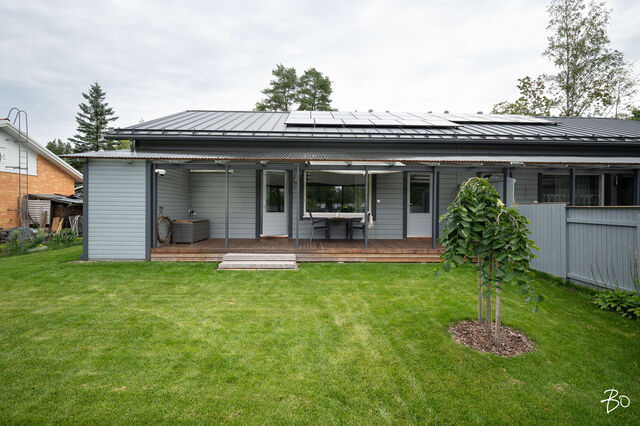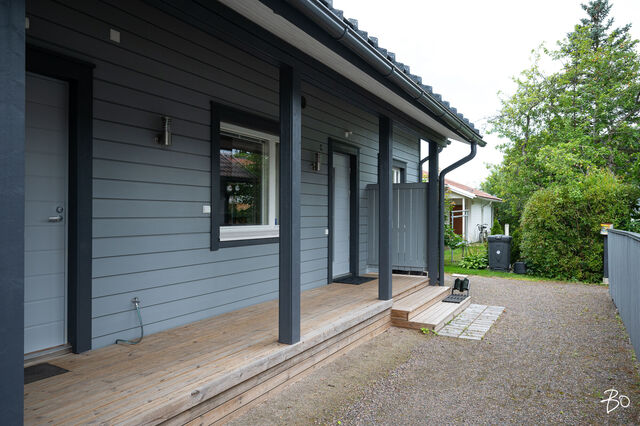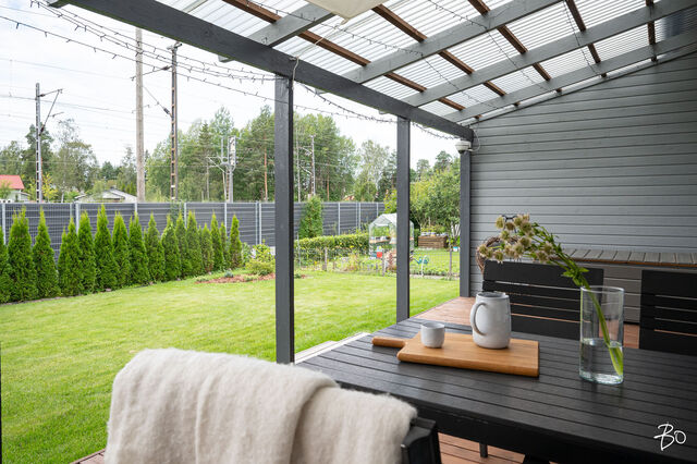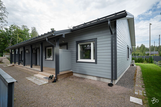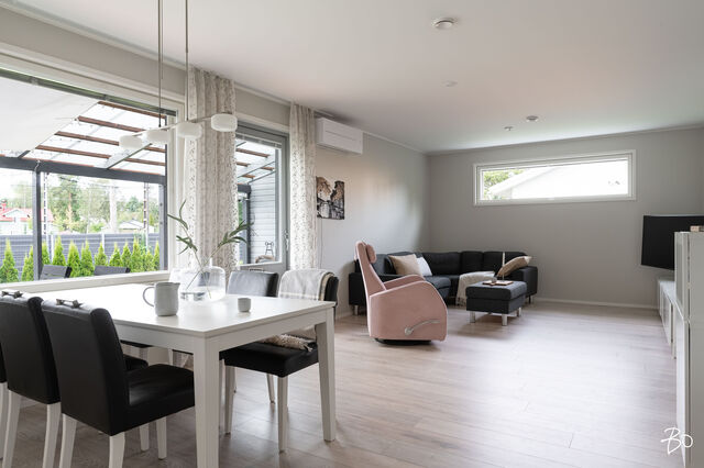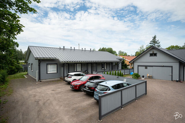 Etusivu / Uusimaa / Järvenpää / Wärtsilänkatu 36 C 1 / 1 Wärtsilänkatu 36 C Sorto, Järvenpää | Paritalo | 4h, keittiö, rt, khh, kph, sauna ja wc 349 000 € Velaton hinta 119,0 m2 Asuinpinta-ala 128,0 m2 Kokonaispinta-ala Tervetuloa ihastumaan uudenveroiseen paritalokotiin, joka tarjoaa erinomaiset puitteet viihtyisään asumiseen Järvenpään suosituilla pientaloalueilla! Tässä kodissa yhdistyvät energiatehokkuus sekä tilavat asuintilat yhdessä tasossa täydellinen koti niille, jotka arvostavat modernia asumista ilman kompromisseja!Tämä vuonna 2020 käyttöön otettu yhden tason paritaloasunto Wärtsilänkadulla hurmaa lämpimillä sisustussävyillään ja kodikkaalla tyylillään. Neljän huoneen ja tilavan keittiön selkeä ja toimiva pohjaratkaisu takaa väljän ja vaivattoman asumisen. Maltilliset asumiskustannukset tuovat lisäarvoa arkeen, tehden kohteesta houkuttelevan valinnan monenlaisille asujille. Asunnon erityisesti korostuva tilava keittiö kutsuu kokkaamaan ja nauttimaan yhdessäolosta perheen ja ystävien kanssa.Paritalokiinteistö sijaitsee omalla tontilla, mikä tuo mukanaan arvostetun yksityisyyden ja vapauden tunteen. Piha-alue on huoliteltu ja katetulla terassilla voi nauttia kiireettömistä aamukahveista ja iltahetkistä perheen tai ystävien seurassa. Kiinteistö on muutama vuosi sitten valmistunut ja kuntotarkastettu vuonna 2024, mikä takaa huolettoman asumisen pitkälle tulevaisuuteen. Kodin ehdotonta plussaa on toimiva pohjaratkaisu, joka ei jätä neliötäkään hukattavaksi, laadukkaat materiaalit ja sijainti. Ei pidä myöskään unohtaa energiatehokasta poistoilmalämpöpumppua, ilmalämpöpumppua ja aurinkopaneeleita, jotka varmistavat asumiskulujen pysymisen maltillisina, takkavarauskin löytyy.Tässä on koti, johon on helppo asettua ja nauttia elämästä täysillä!Asuinalueena tämä Järvenpään pientaloalue on rauhallinen ja lapsiystävällinen, tarjoten turvallisen ympäristön perheen kasvaa ja kehittyä. Alueella on erinomaiset palvelut, kuten koulut, päiväkodit sekä monipuoliset liikuntamahdollisuudet, joten arki sujuu vaivattomasti. Ulkoilusta ja luonnonkauniista ympäristöstä nauttivat arvostavat varmasti alueen vehreyttä ja läheisyydessä sijaitsevia ulkoilureittejä.Tule ja tutustu tähän viehättävään paritaloon paikan päällä tämä kaunis koti odottaa uusia asukkaitaan!Myynti ja esittelyt:Katja Lampinenkiinteistönvälittäjä LKV, partnerBo LKV Helsinki, Kruununhakap. 044 243 3744 I katja@bo.fi Kiinnostaako tämä kohde?Ota meihin yhteyttä tai jätä viesti Katja Lampinen kiinteistönvälittäjä LKV, partner 044 243 3744 katja@bo.fi Tutustu välittäjään Varaa aika kalenteristani RakennusKäyttöönottovuosi2020RakennusmateriaaliPuuKattotyyppiHarjakattoKatePeltikateAsuinpinta-ala119,0 m2 (128,0 m2)Lisätietoja pinta-alastaMuut tilat pitävät sisällään varaston ja teknisen tilan. Pinta-aloja ei ole tarkistusmitattu.Muut tilat9,0 m2Lämmitysjärjestelmän kuvausPoistoilmalämpöpumppu, ilmalämpöpumppuLämmön jakotapaVesikiertoinen lattialämmitys, ilmalämpöpumppuHuoneluku4h, keittiö, rt, khh, kph, sauna ja wcKeittiön muut varusteetAstianpesukoneLiesiInduktioliesi, erillisuuniKeittiön lattiamateriaaliLaminaattiKeittiön seinien materiaaliMaalattuKylpyhuoneen varustusWc-istuin, suihkuKylpyhuoneen lattiamateriaaliLaattaKylpyhuoneen seinämateriaaliKaakeliSaunaAsunnossa on saunaSaunan lattiamateriaaliLaattaSaunan seinämateriaaliPuuWC-tilojen kuvausLukumäärä: 1Lattiamateriaalit: laattaKodinhoitohuoneVarustus: pesukoneliitäntäLattiamateriaalit: laattaMakuuhuoneen kuvaus, lisätiedot ja varustusLattiamateriaalit: laminaattiSeinämateriaalit: maalattuOleskelutilojen kuvaus, lisätiedot ja varustusLattiamateriaalit: laminaattiSeinämateriaalit: maalattuTakkatiedotTakkavarausMuut säilytystilatVaatehuone, muu erillinen varastoTehdyt korjaukset04/2024 Vaatehuoneen kalusteet (RTV Järvenpää) 04/2024 Asennettu verhokiskot (olohuone ja makuuhuone) 05/2024 Poistoilmalämpöpumpun huolto (MM Putki Oy) 05/2024 Asennettu ilmalämpöpumppu (U.Ranta Oy) 05/2024 Orapihlaja-aidan poisto ja Tuija-aita tilalle (Vantaan puunkaatopalvelu Oy) 06/2024 Uusittu wc-allas, laatikosto, taso ja peilikaappi (Tilatuote Kujala Oy) 08/2024 Uusittu astianpesukone, jääkaappi ja pakastin 08/2024 Eteisen kenkäkomeron lisäys (M.Papu Ky) 11/2024 IV-kanavien puhdistus tarkistusmittaus (Homemap Oy) 04/2025 Valokuidun asennus (Valoo Oy) Muuta kauppaan kuuluvaaAurinkopaneelit 18 kappaletta.Kauppaan ei kuuluMustaherukkapensas, kompostoriKuntoHyväEnergiatodistusKylläEnergialuokkaB2018Lisätietoja energiatodistuksestaVoimassa 01.07.2030. KiinteistötiedotKiinteistötunnus186-8-811-9TyyppiMääräosaTontin tyyppiTasamaatonttiTontin koko2 239,00 m2Tontin omistusOmaPanttikirjat350 000,00 €Rasitukset ja rasitteet- Kirjattu hallinnanjakosopimus 5.5.2021, MML/285417/73/2021 - 1 kappale sähköisiä panttikirjoja, siirretään lainoittamattomina ostajalle. Ostaja vastaa sähköisten panttikirjojen siirtokuluista.Lisätietoja tontistaMääräosa C joka on 2/6 kiinteistöstä hallinnanjakosopimuksen ja sen karttaliitteen mukaisesti. Määräosaan C kuuluu paritalohuoneisto C ja siihen liitetty piha-alue, joka on rajattu väreillä oranssi-kelta-vihreä-viivoitus hallinjakosopimuksen liitekarttaan. Sopijapuolten yhteinen ajoliittymä kiinteistölle on kaikkien sopijapuolten alueella ja noudattaa karttaliitteen mukaista parkkeerausta. Huoneistolla C on 2 kpl autopaikkoja. AsumiskustannuksetVesi ja jätevesi40,00 €Puhtaanapito11,25 €Muut maksut / lisätietoa maksuista- Sähkön kokonaiskulutus noin 8 000 kWh/ vuosi - Kiinteistövero 907,40 € / vuosi 2025 - Veden perusmaksu 8,20€/kk ja jäteveden perusmaksu 8,20€/kk, vesi kulutuksen mukaan. - Varainsiirtovero 3% - Esitetyt asumiskustannukset perustuvat nykykäyttöön ja voimassa oleviin sopimuksiin. Kustannukset voivat siten olla suurempia tai pienempiä riippuen asukasmäär