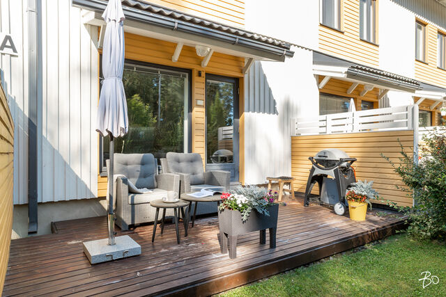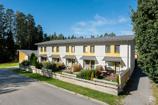 Etusivu / Pirkanmaa / Tampere / Juoksuhaudankatu 6 1 / 1 Juoksuhaudankatu 6 Kalkunvuori, Tampere | Rivitalo | 4h, k, wc, ph/wc, s, vh, et, tk, terassi, ransk.p 219 000 € Velaton hinta 86,5 m2 Asuinpinta-ala 441,15 €/kk Hoitovastike 2006 Rakennusvuosi Nyt vapautumassa siistikuntoinen rivitalon päätyhuoneisto Kalkunvuoren asuinalueelta, jossa on todellinen viihtymisvaara, sillä nykyiset omistajat ovat viihtyneet siellä jo 19 vuotta.Tässä kaksitasoisessa kodissa on neliöitä kaikkiaan 86,5 m2 ja tilat jakautuvat seuraavasti;Sisäänkäyntikerroksesta löytyy tuulikaapin ja tilavan eteisen lisäksi keittiö, sekä avara ja valoisa olohuone, josta kulku omalle terassille ja takapihalle. Lisäksi löytyy asunnon toinen wc. Yläkerrassa on kolme makuuhuonetta, jossa yhdessä on ranskalainen parveke, vaatehuone aulassa, tilava pesuhuone/wc, jossa on riittävästi tilaa pyykinpesukoneelle ja kuivausrummulle sekä samassa tilassa oleva ikkunallinen sauna. Kaupan yhteydessä myydään autokatospaikka hintaan 5000€.Kalkunvuori on asuinalueena etenkin lapsiperheiden suosiossa. Kadun toiselta puolelta löytyy päiväkoti sekä sen yhteydessä on myös esikoulu-2 luokka. Myös ulkoilu- ja harrastusmahdollisuuksia on riittämiin. Hyvät kulkuyhteydet tuo sinut nopeasti moottoritien kautta moneen suuntaan ja keskustaankin matka taittuu jouhevasti autolla tai julkisilla. Tesoman kattavat palvelut on n. 1,5 km päässä. Asunto Oy Tampereen Juoksuhaudankadun Rakuuna on vuonna 2006 valmistunut yhtiö, joka sijaitsee vuokratontilla. Tontin vuokrasopimus ulottuu aina vuoteen 2065 asti.Yhtiössä on kaikkiaan 19 kpl asuinhuoneistoja. Lämmitysmuotona edullinen kaukolämpö.Tämä koti on ehdottomasti tutustumisen arvoinen, joten varaa oma esittelyaikasi ja astu sisään unelmiesi kotiin!Myyntiä hoitaa:Jaana Sippola ylempi kiinteistönvälittäjä YKV, LKV044 9700 868jaana.sippola@bo.fiOlipa kyseessä ensimmäinen asuntokauppasi tai seuraava suuri askeleesi, minä olen täällä auttamassa sinua yli 20 vuoden kokemuksella, tarjoten asiantuntevaa ja henkilökohtaista palvelua, juuri sinun tarpeidesi mukaan. Kun aika on, niin olethan rohkeasti yhteydessä minuun. Kiinnostaako tämä kohde?Ota meihin yhteyttä tai jätä viesti Jaana Sippola ylempi kiinteistönvälittäjä YKV, LKV, partner 044 970 0868 jaana.sippola@bo.fi Tutustu välittäjään Varaa aika kalenteristani HuoneistoOsakkeet3400-4263HallintamuotoAsunto-osakeyhtiöHuoneluku4h, k, wc, ph/wc, s, vh, et, tk, terassi, ransk.pKerros/Kerroksia1-2/2Asuinpinta-ala86,5 m2Muut tilat0,0 m2Lisätietoja pinta-alastaYhtiöjärjestyksen mukaan huoneisto käsittää: 4h+k+s Yhtiöjärjestyksen mukainen. Isännöitsijäntodistuksen mukainen.NäkymätPäätyasunto, ikkunat itään, etelään ja länteen. Terassi ja takapiha itään. ParvekeRanskalainenParvekkeen ilmansuuntaLänsiKeittiön kuvaus, lisätiedot ja varustusVarustus: paikka mikrolle, korkea jääkaappi ja pakastin, induktioliesi kiertoilmauunilla, liesituuletin hormiin, astianpesukone, kiinteät valaisimet. Keittiön työtasojen materiaaliLaminaatti, metalliKeittiön lattiamateriaaliParkettiKeittiön seinien materiaaliMaalattuKylpyhuoneen varustusPesukoneliitäntä, lattialämmitys, wc-istuin, suihku, peili, kiinteät valaisimet, kylpyhuonekaapistoKylpyhuoneen lattiamateriaaliLaattaKylpyhuoneen seinämateriaaliKaakeliWC-tilojen kuvausVarustus: peili seinällä ja sen vieressä kaapit, allaskaappi, lattiakaivo, bidee. Lukumäärä: 1Lattiamateriaalit: laattaSeinämateriaalit: kaakeliSaunan kuvaus, lisätiedot ja varustusVarustus: Ikkuna ja sähkökiuasSaunan lattiamateriaaliLaattaSaunan seinämateriaaliPuuMakuuhuoneen kuvaus, lisätiedot ja varustusLukumäärä: 3Lattiamateriaalit: parkettiSeinämateriaalit: maalattuOleskelutilojen kuvaus, lisätiedot ja varustusLattiamateriaalit: parkettiSeinämateriaalit: maalattuMuutostyöt huoneistossaTerassi rakennettu 2008. KuntoHyvä Kiinteistö- ja yhtiötiedotYhtiön nimiAsunto Oy Tampereen Juoksuhaudankadun RakuunaTontin omistusVuokrattuTontin koko5 553,00 m2Tontin vuokraajaTampereen kaupunkiTontin vuokrasopimus päättyy31.03.2065Tontin vuokra17 252,12 €Käyttöönottovuosi2006RakennusmateriaaliPuu, betoniKattotyyppiHarjakattoKateTiilikateLämmitysjärjestelmäKaukoEnergiatodistusKylläLisätietoja energiatodistuksestaE-luku: 129, voimassa 2.10.2034 saakkaEnergialuokkaC2018Tehdyt korjaukset ja remontitPiha-aitojen huoltomaalaus 2011. Rännikaivojen avaus ja sadevesikaivon tyhjennys 2013. IV-Kanavien puhdistus, ilmavaihdon mittaus ja säätö 2014. Julkisivujen huoltomaalaus 2017. Juoksuhaudankadun puoleisen raja-aidan uusiminen 2019. Uusi muovijäteastia 2020. Rakennusten ja huoneistojen kuntotarkastus 2020. Autokatoksien tuuletuksen parantaminen (ritilät päätyihin) ei palokatkoseiniin 2020. B- talon takana raja-aidan uusiminen kevyenkulkuväylän vierestä 2020. Katon lape- ja harjatiilien korjaus, sammaleen poistot, vesikattojen maalaustyöt ja tuulensuojalevyjen asennus sekä tuuletusputkien ja aluskatteiden läpivientien tiivistystyöt 2021. Kylpyhuoneiden saneeraus asunnoissa (A 3, B 8 & B 9) 2021. Asennettu tekniseen tilaan kylmän veden tuloon vakiopaineventtiili 2022. Sisäpihan vihersuunnittelu 2022. Ulko-ovien tiivisteiden uusiminen ja säätö 2022. Kylpyhuoneiden tilannetarkastus 2022. Rännikaivojen avaus ja sadevesikaivon tyhjennys 2022. C 19 raja-aidan uusiminen 2023. Teknisen tilan kylmävesiputkien eristys tehty 2023. IV-Puhdistus ja säätö 2023. Sähköautolatauskartoitus tehty 2023. Tukkeutuneen sadevesiviemärin korjaus A 5 päädystä 2023. Väestösuojatilan tarkastus ja tiiveyskokeen teettäminen 2024. Ensimmäinen kiinteä sähköauton latauslaite kuormanhallintajärjestelmällä asennettu 2024. Uusittu leikkialueen istuinryhmä, hiekkalaatikko ja keinualueen turvahakkeet 2024. Ulkovalaistuksen sähköjen maakaapelin uusinta 23 autokatoksen väliltä 2024. Tarkasteltumärkätilojenkuntoa:A1,A2,A4,A5,B6,B7,B10,B11,B12,C