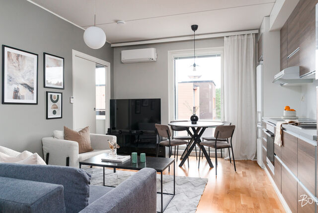 Etusivu / Keski-Suomi / Jyväskylä / Palanderinkatu 9 1 / 1 Palanderinkatu 9 Rasinrinne, Jyväskylä | Kerrostalo | 2h,kt,kh,s,p 148 000 € Velaton hinta 43,5 m2 Asuinpinta-ala 156,60 €/kk Hoitovastike 2014 Rakennusvuosi SIISTI, YLIMMÄN KERROKSEN HUIPPUASUNTO!Pihalle ja porraskäytävään tullessasi huomaat, että talosta ja sen ympäristöstä pidetään huolta. Ajelet hissillä ylimpään viidenteen kerrokseen ja saavut valoisaan ja tyylikkääseen huoneistoon.Väljä eteistila peililiukuovikaappeineen. Yhtenäinen olohuone ja keittiö, mikä on laadukas integroituine kodinkoneineen. Olohuoneeseen on asennettu lisäksi vielä viilentävä ilmalämpöpumppu. Makuuhuoneen saat liukuovella eristetyksi, kätevää, ainakin sisustuksen kannalta. Tilava, lasitettu ja aurinkosuojattu parveke, johon mahtuu mukavasti pöytäryhmä tuoleineen. Kylpyhuone on erityisen kiva, sillä tila on avara ja esteetön ja luxuksena vielä oma Harvian suosittu kylpyhuonesauna, mikä on siirrettävissä pois halutessaan. Tämän huoneiston pohjaratkaisu on kerrassaan toimiva; erinomainen.Asunto Oy Jyväskylän Marmori on rakennettu omalle tontilleen vuonna 2014. Yhtiössä on 25 huoneistoa. Mitään suunniteltuja remontteja ei ole tiedossa näin uudessa talossa, vain vuosittaisia huoltotöitä. Pihan autopaikat ovat omina osakkeinaan ja tämän asunnon yhteydessä voit ostaa oman autopaikan hyvältä sijainnilta, pääoven läheltä, hintaan 3000 euroa. Sijainniltaan talo on erinomaiselta paikalta, sillä Seppälän alueen kaikki kaupat, marketit ja kauppakeskukset ovat kävelymatkan päässä. Paikallisbussipysäkki on tien vieressä lähellä. Laajat ulkoilualueet lähtevät mukavasti melkein kotiovelta alkaen.Sovi oma esittelyaikasiKatja Pyöräläkiinteistönvälittäjä LKV, partner040 541 2504katja.pyorala@bo.fi Kiinnostaako tämä kohde?Ota meihin yhteyttä tai jätä viesti Katja Pyörälä kiinteistönvälittäjä LKV, partner 040 541 2504 katja.pyorala@bo.fi Tutustu välittäjään Varaa aika kalenteristani HuoneistoOsakkeet6428-6684HallintamuotoAsunto-osakeyhtiöHuoneluku2h,kt,kh,s,pKerros/Kerroksia5/5Asuinpinta-ala43,5 m2Muut tilat0,0 m2Lisätietoja pinta-alasta Yhtiöjärjestyksen mukainen. Isännöitsijäntodistuksen mukainen.NäkymätYlimmästä kerroksesta upeat näkymät ympäri Seppälän aluettaParvekeLasitettuParvekkeen ilmansuuntaItäHissiTaloyhtiössä on hissiLiesiKeraaminen liesiKeittiön työtasojen materiaaliLaminaattiKeittiön lattiamateriaaliParkettiKeittiön seinien materiaaliMaalattu, osalaatoitusKylpyhuoneen varustusSuihkuseinä, pesukoneliitäntä, lattialämmitys, wc-istuin, suihku, peilikaappi, kiinteät valaisimet, kylpyhuonekaapistoKylpyhuoneen lattiamateriaaliLaattaKylpyhuoneen seinämateriaaliKaakeliSaunan kuvaus, lisätiedot ja varustusHarvia-sauna on siirrettävissä pois, mikäli ei saunaa tarvitse Saunan lattiamateriaaliLaattaSaunan seinämateriaaliPuuMakuuhuoneen kuvaus, lisätiedot ja varustusMakuuhuoneessa peili-liukuovikaapistot. Lukumäärä: 1Lattiamateriaalit: parkettiSeinämateriaalit: maalattuOleskelutilojen kuvaus, lisätiedot ja varustusLattiamateriaalit: parkettiSeinämateriaalit: maalattuMuutostyöt huoneistossaIlmalämpöpumppu asennettu 2022KuntoHyvä Kiinteistö- ja yhtiötiedotYhtiön nimiAsunto Oy Jyväskylän MarmoriTontin omistusOmaTontin koko931,00 m2Käyttöönottovuosi2014RakennusmateriaaliBetoniKattotyyppiTasakattoKateBitumikermiLämmitysjärjestelmäKaukoEnergiatodistusKylläEnergialuokkaB2018Tehdyt korjaukset ja remontit2017 Kameravalvonnan asentaminen yleisiin tiloihin 2021 Kameravalvonnan asentaminen LPA-alueen autohalliin ja piha-alueelle 2021 Lisäkameran hankinta yhtiön piha-alueelle 2022 Palanderinkadun yhteisalueen 10-vuotistakuutarkastukset 2022 LL-piirin viallisen toimilaitteen uusiminen 2024 10 v. takuutarkastus 2024 10 v. takuutarkastuksessa havaittujen puutteiden ja vikojen korjauksia (perustajaurakoitsija) 2024 IV-kanavien nuohous ja säätöTiedossa olevat tulevat korjaukset/remontitHallituksen selvitys yhtiön kunnossapitotarpeista vuosille 2025-2029: - palovaroittimien uusintaAutotallit12Sähköpistokepaikkoja14Lunastusoikeus yhtiölläKylläLunastusoikeus osakkaillaKylläMuut rajoituksetLunastusoikeus koskee vain autotalli- ja autopaikkoja, lisätietoja YJ 8§.Lainat510 107,08 €Kiinnitykset3 016 000,00 €IsännöitsijäOiva Isännöinti Noste Oy / Kari Kallio 044 737 2162KiinteistönhoitoHuoltoyhtiöYhtiön tilat ja varusteluKuivaushuone, urheiluvälinevarasto, huoneistokohtaiset varastot. Ilmanvaihto: huoneistokohtainen koneellinen tulo- ja poisto lämmön talteenotolla (LTO) Elisa kaapeli/laajakaista 10/10 M Muita tietojaPalvelutSeppälän Citymarket 550 m ja Seppälän alueella on useita kauppoja ja kauppakeskus. Huhtasuon terveyskeskus 1,2 km.KouluHuhtasuon yhtenäiskoulu n. 1,2km.PäiväkotiKangasvuoren päiväkoti n. 1,2km.Lisätietoa kaavoituksestaJyväskylän karttapalveluVapautuuSopimuksen mukaan AsumiskustannuksetHoitovastike156,60 €/kk (3,60 €/m2)Yhtiövastike yhteensä156,60 €Vesimaksun perusteOma mittariMuut maksut / lisätietoa maksuistaVesimaksut kulutuksen mukaan, kylmä vesi 6,30€/m3, lämmin vesi 12,40€/m3. HintaMyyntihinta148 000,00 € (3 402,30 €/m2)Velaton hinta148 000,00 € (3 402,30 €/m2)MaksutapaKäteinen. Sinua voisi kiinnostaa Asunnon hinta-arvio ja arviokäynti Asunnon hinta-arvio ja arviokäynti Mitä hinta-arvio maksaa tai miten arviokäyntiä varten kannattaa valmistautua? Katso vastauksemme usein kysyttyihin ky… Sneak Peek® Sneak Peek® Sneak Peek® -palvelumme on askeleen edellä! Löydä alueesi uusimmat ja upeimmat asunnot jo ennen kuin ne ilmestyvät as… Asuntovahti Asuntovahti Etsimässä uutta asuntoa? Aseta itsellesi Bo-asuntovahti. Saat tiedon heti, kun unelmiesi asunto tulee myyntiin. Bo Match Bo Match Kun asuntounelmat ja unelmien asunnot kohtaavat, syntyy Bo Match. Tutustu uudenlaiseen tapaan käydä asuntokauppaa.