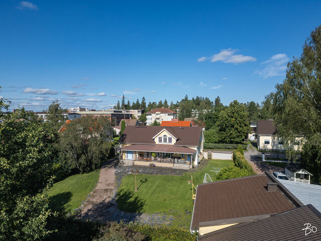 Etusivu / Pirkanmaa / Sastamala / Kävelykatu 11 1 / 1 Kävelykatu 11 Keskusta, Sastamala | Omakotitalo | 6h, k, s, pesuh, khh, 4 wc, 2 vaateh, autotalli ja työh/yksiö 450 000 € Velaton hinta 223,0 m2 Asuinpinta-ala 282,0 m2 Kokonaispinta-ala 2015 Rakennusvuosi Viehättävän ranta-alueen tuntumassa ja lähellä keskustan palveluita sijaitsee tämä kaunis, uniikki koti. Alkujaan 1930-luvun talo on 2015 laajennettu ja laajasti saneerattu.Upean koristeellisen rautaportin takaa avautuu 1 325 m2 oman tontin suojaisa pihapiiri. Vuonna 2005 valmistuneessa talousrakennuksessa on autotalli sekä esim. työtilaksi loistavasti soveltuva yksiö, jossa on tilava huone, parvi ja kylpyhuone.Talon iso, katettu terassi avautuu sisäpihan puolelle, länteen. Asuintilat ovat kolmessa kerroksessa. Huoneet ovat avaria ja soveltuvat moneen käyttötarkoitukseen. Tilat on laadukkaasti viimeistelty ammattilaisten toimesta.Eteisaulasta kauniisti saneerattu portaikko vie yläkertaan. Yläkerran huoneissa ihastut varmasti upeisiin ikkunoihin ja niiden muotoihin sekä huoliteltuihin kattoviisteisiin, jotka tekevät tiloista persoonallisia ja kodikkaita.Vaaleat seinäpinnat, tummat parketti/laattalattiat ja upeat lämpimän sävyiset kokopuiset väliovet talon kodikas yhtenäinen ilme jatkuu myös talon alakerrassa. Tilavassa keittiössä on käytännöllistä kodikkuutta; iso saareke laatikostoineen, kivitasot ja laattalattia.Keittiön vieressä on reilun kokoinen ruokailuhuone ja avara olohuone. Molemmat läpitalon menevät tilat on helppo sisustaa omiin tilankäyttötarkoituksiin sopivaksi. Lisäksi on talon päädyssä huone, joka soveltuu nykyisen työhuone/kirjaston lisäksi hyvin myös makuuhuoneeksi. Kellarikerroksessa on hurmaava tunnelma tiilipintaa yhdistettynä laattalattioihin ja puupintoihin -taidokas yhdistelmä vanhaa ja uutta. Saunan jälkeen tänne varmasti jää mielellään rentoutumaan ja viettämään iltaa.Koti on kaunis ammattilaisten suunnittelema ja toteuttama kokonaisuus, jossa on hyvin huomioitu myös arjen toimivuus. Kellarikerroksessa on kodinhoitotila. Talon toinen sisäänkäynti on laatoitettua tilaa, joka toimii mm. arkieteisenä ja vaikka lemmikkien hoitotilana. Wc tiloja on talossa neljä, jotka kaikki toteutettu laadukkailla materiaaleilla mm Durat- ja kivitasoja. Eteisessä ja vaatehuoneissa on runsaat säilytystilat.Tämä koti sijaitsee rauhallisella ja viihtyisällä alueella. Viereinen ranta-alue, Kaalisaari, tarjoaa monenlaista harrastusmahdollisuutta kauniissa rantamaisemissa mm. ulkoilureitit, uimaranta, leikkipuisto, padel-kentät, ulkokuntosalilaitteet ja skeittiparkki. Lähellä on myös Hopun urheilupuisto ja venesatama. Keskustan palvelut mm. Torikeskus on vain muutaman minuutin kävelymatkan päässä.Valtatieltä 12, Pirkanmaantieltä on noin 5 min ajoaika kotiportille ja Tampereelle ajoaika noin 45 minuuttiaTämän ihastuttavan kodin yksityiskohtiin tutustut parhaiten paikan päällä.Sovi perheellesi sopiva yksityisesittelyaikaSari Mesirantakiinteistönvälittäjä LKV, partner045 2230 600, sari@bo.fi,Bo LKV Tampere Kiinnostaako tämä kohde?Ota meihin yhteyttä tai jätä viesti Sari Mesiranta kiinteistönvälittäjä LKV, partner 045 223 0600 sari@bo.fi Tutustu välittäjään Varaa aika kalenteristani Katso video RakennusRakennusvuosi (aloitettu)1939Käyttöönottovuosi1939Rakennusmateriaalien kuvausTalo on puurunkoinen, pinta rapattu.KattotyyppiHarjakattoKateTiilikateAsuinpinta-ala223,0 m2 (282,0 m2)Lisätietoja pinta-alastaRakennuslupapiirustuksen tietojen mukaisesti talon kerrosala noin 254 m2 ja huoneistoala noin 223 m2. Talousrakennuksen kerrosala autotalli + asuintilat noin 70 m2. Pinta-aloja ei ole tarkistusmitattu.Kerrokset3Muut tilat59,0 m2Lämmitysjärjestelmän kuvausöljy, ilmalämpöpumppu, muuLämmön jakotapaVesikiertoinen lattialämmitys, muuHuoneluku6h, k, s, pesuh, khh, 4 wc, 2 vaateh, autotalli ja työh/yksiö Keittiön kuvaus, lisätiedot ja varustus2023 keittiötä on uudistettu ja avarrettu: poistettu keittiön ja ruokailutilan seinää ja tehty iso saareke laatikostoineen. 2002 asennettu kaapistot (maalatut tammiovet) ja kivityötasot. Lattia ja välitilat laatoitettu ja seinäpinnat maalattu. Jääkaappipakastin (2023), liesi (keraaminen liesitaso), liesituuletin ja astianpesukone (2023).Pesutilojen kuvaus, lisätiedot ja varustusPesuhuone talon kellarikerroksessa: suihku, lattia ja seinät laatoitettu ja katto paneloitu. Lattialämmitys. Talousrakennuksen kph: lattia ja seinät laatoitettu, suihku, wc-istuin, allas ja allaskaapistot. Lattialämmitys.SaunaAsunnossa on saunaSaunan kuvaus, lisätiedot ja varustusLattia laatoitettu, seinät ja katto paneloitu. SähkökiuasWC-tilojen kuvausTalossa neljä erillistä wc:tä. WC1 kellarikerros: lattia ja seinät laatoitettu, allaskaapistot, kivitasot, allas, peili ja wc-istuin. WC 2 ja WC 3 ovat 1. kerroksessa: lattiat ja seinät laatoitettu, allas, allaskaapisto, peili ja wc-istuin. WC 4 yläkerta: tilava wc, jossa lattia ja seinät laatoitettu, allaslaatikostot, Durat allastaso, peili ja wc-istuin.KodinhoitohuoneKellarikerroksessa: lattia laatoitettu ja seinät maalatut, tilavaraus pesutornille ja pesukoneliitäntä. Talon 1. kerroksen toisen sisääntulon yhteydessä tilava khh/eteinen: lattia laatoitettu ja seinäpinnat maalatut/laatoitetut, suihkullinen koiranhoitotila, kaapistoja, ilmanvaihtokone ja keskuspölynimurin keskusyksikkö.Makuuhuoneen kuvaus, lisätiedot ja varustusYläkerrassa 2-4 makuuhuonetta ja 1. krs makuu/työhuone. Talousrakennuksessa lisäksi huone, jossa on parvi.Oleskelutilojen kuvaus, lisätiedot ja varustusOlohuoneeksi soveltuvia tiloja talon jokaisessa kerroksessa.Muut tilatTalo: kellarikerros (oleskeluaula, s, pesuh, pukuh, wc ja khh), 1 krs (eteinen, aula, k, ruokailuh, oloh, työ/mh, 2 wc, eteinen/khh) ja 2 krs (2-4mh, oloh/aula, wc). Huonetilat talossa soveltuvat moneen käyttötarkoitukseen. Yläkerrassa on mm. kaksi tilavaa vaatehuonetta, jotka tarvitt