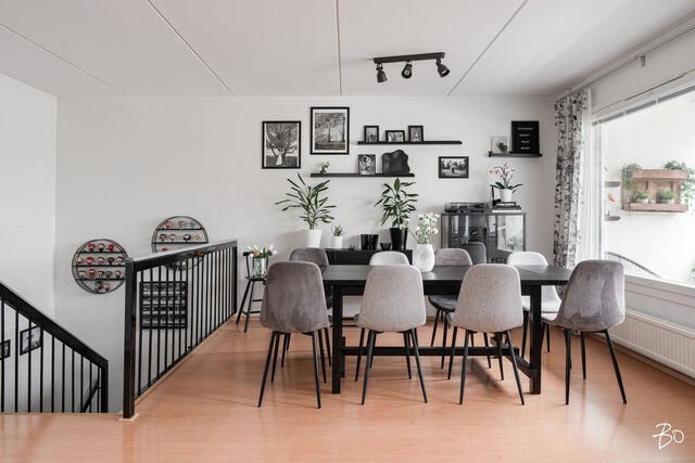 Etusivu / Uusimaa / Kerava / Jousikatu 5 1 / 1 Jousikatu 5 Kaleva, Kerava | Rivitalo | 4h, k, 2 x kph, s, askarteluh. (yj. 4h+k+s) 217 000 € Velaton hinta 106,0 m2 Asuinpinta-ala 404,35 €/kk Hoitovastike 1974 Rakennusvuosi Tämän asunnon osalta linjasaneeraus tehty! Uusittu mm. yläkerran kph:n vedeneristykset, laatoitus ja putkisto. Tämä 106 m²:n kaksikerroksinen koti tarjoaa erinomaiset puitteet niin lapsiperheen arkeen kuin etätyöhönkin - luonnonläheisessä ja rauhallisessa ympäristössä. Avara olohuone kutsuu viihtymään, ja sieltä on suora kulku parvekkeelle, jossa voit nauttia aamukahvit vehreissä maisemissa. Kauniisti remontoitu keittiö tarjoaa toimivat tilat ruoanlaittoon ja ruokailuun. Yläkerrasta löytyy myös yksi makuuhuone sekä kylpyhuone.Alakerran kaksi pienempää huonetta soveltuvat mainiosti lastenhuoneiksi, vierashuoneiksi tai työtiloiksi. Kodinhoitotila on käytössä makuutilana, joka tarjoaa rauhaa ja omaa tilaa. Lisäksi alakerrasta löytyvät sauna, kylpyhuone, erillinen wc (johon uusittu istuin ja hana) sekä tilava aula, joka sitoo tilat toimivaksi kokonaisuudeksi.Päiväkoti ja koulu ovat kävelymatkan päässä - täydellinen sijainti lapsiperheelle. Kalevan alue on rauhallinen ja vehreä, ja sitä ympäröivät luonto ja ulkoilureitit. Keravan keskustan palvelut, jäähalli ja liikuntamahdollisuudet ovat vain lyhyen ajomatkan päässä.Ota yhteyttä ja varaa oma esittelyaikasi!Bogdan041 451 1451bogdan@bo.fi Kiinnostaako tämä kohde?Ota meihin yhteyttä tai jätä viesti Bogdan Kuznetsov kiinteistönvälittäjä LKV, LVV, KiLAT, partner 041 451 1451 bogdan@bo.fi Tutustu välittäjään HuoneistoOsakkeet70721-88415HallintamuotoAsunto-osakeyhtiöHuoneluku4h, k, 2 x kph, s, askarteluh. (yj. 4h+k+s)Kerros/Kerroksia1-2/2Asuinpinta-ala106,0 m2Muut tilat0,0 m2Lisätietoja pinta-alastaPinta-alaa ei ole tarkistusmitattu. Mainittu pinta-ala saattaa tämän ikäisessä kohteessa (rakennettu ennen vuotta 1992) poiketa olennaisesti nykyisten standardien mukaan laskettavasta asuinpinta-alasta. Todellinen asuinpinta-ala voi tarkistusmittauksen jälkeen olla yhtiöjärjestyksessä, isännöitsijäntodistuksessa ja esitteessä mainittua pienempi tai suurempi. Yhtiöjärjestyksen mukainen. Isännöitsijäntodistuksen mukainen.ParvekeSisäänvedettyKeittiön kuvaus, lisätiedot ja varustusKauniisti vuonna 2020 uusittu tunnelmallinen keittiö. Mukavasti lasku- ja kaappitilaa. LiesiIntegroitu liesi, erillisuuniKeittiön työtasojen materiaaliKiviKeittiön lattiamateriaaliVinyyliKeittiön seinien materiaaliMaalattu, tapettiPesutilojen kuvaus, lisätiedot ja varustusYläkerrassa suihku ja wc, alakerrassa pesutilat ja sauna. Kylpyhuoneen varustusWc-istuin, suihku, peilikaappiKylpyhuoneen lattiamateriaaliLaattaKylpyhuoneen seinämateriaaliKaakeliWC-tilojen kuvausErillinen wc alakerrassa.Varustus: peilikaappiLukumäärä: 1Lattiamateriaalit: laattaSeinämateriaalit: kaakeli, maalattu, osalaatoitusKodinhoitohuoneAskarteluhuoneessa, joka on makuuhuone käytössä on kodinhoitopiste. Varustus: pesukoneliitäntä, lattialämmitysLattiamateriaalit: laattaSeinämateriaalit: maalattuSaunan lattiamateriaaliLaattaSaunan seinämateriaaliPuuMakuuhuoneen kuvaus, lisätiedot ja varustusLukumäärä: 3Lattiamateriaalit: laminaatti, vinyylikorkkiSeinämateriaalit: maalattu, tapettiOleskelutilojen kuvaus, lisätiedot ja varustusLattiamateriaalit: laminaattiSeinämateriaalit: maalattu, tapettiMuutostyöt huoneistossa2015 Seinien ja kattojen maalaus 2016 Rappusten maalaus ja laminointi 2017 Pihan kivetyksen uusiminen + terassin laajennus 2019 Saunan sävytys ja lauteiden vaihto 2020 Keittiön kalusteiden, kodinkoneiden ja lattian uusiminen 2020 Yläkerran makuuhuoneen laminaatti ja osatapetointi 2020 Kodinhoitohuoneen osatapetointi 2020 Pihan vanhan terassin uusiminen 2023 Olohuoneen osatapetointi 2023 Alakerran pieni MH tapetoinnit 2024 Alakerran iso MH lattia ja seinät Muutostyödokumentteja ei ole saatavilla.KuntoHyväLisätietoa kunnostaIkäisekseen hyvässä kunnossa. Kiinteistö- ja yhtiötiedotYhtiön nimiAsunto Oy Lehmus-KalevaTontin omistusOmaTontin koko3 420,20 m2Käyttöönottovuosi1974RakennusmateriaaliBetoniKattotyyppiAumakattoKateTiilikateLämmitysjärjestelmäKaukoLisätietoja energiatodistuksestaE2013 / 30.06.2024. Energiatodistus uusitaan linjasaneerauksen valmistuttua.Tehdyt korjaukset ja remontit2025 Linjasaneerauksen yhteydessä tehdyt toimenpiteet A5 ( Yläkerran kylpyhuone uusittu, käyttövesiputkisto uusittu, asunnon sisäinen viemäröinti, pattereiden venttiilit ja termostaatit, alakerran wc-tilan pönttö, hana uusittu sekä wc:n / vh / saunan / pesuhuoneen/ khh katon panelointi, valokuitu) 2024 Lämpökeskus, käsittäen lämmönvaihtimet ja ohjauskeskuksen, uusittiin keväällä. Käyttöveden lämmityksen hoitavaan vaihtimeen tuli vuoto ja koko lämpökeskus vaihdettiin kiireellisenä työnä. Kattojen puhdistus ja huolto; toteutettiin syksyllä 2024. Putki yms. Remontin varsinainen suunnitteluvaihe, Ventac Oy vetoinen konsortio. 2023 Huoneistojen märkätilojen katselmus. Osana putkiremontin selvitystyötä. Pohjarunkoviemärien kuvaus ja pesu (seuraava pesu n. 10 v. päästä). Osana putkiremontin selvitystyötä. 2022 Putkiston ja lämmitysjärjestelmän kunnon kartoitus. Osana putkiremontin selvitystyötä. 2019 Huoneistojen ikkunoiden uusiminen, sisältää tarvittavien ilmanvaihtoventtiilien asentamisen. Ulkovarastojen, aitojen ja autokatoksien puunsuojauksen uusiminen. Lämmitys- ja käyttövesijärjestelmään kuuluvien kalusteiden (termostaatit, vesihanat) yms. tarkistus ja tarvittavilta osin korjaaminen/uusiminen. 2014 Ulkoseinien elementtien saumaus. 2013 A-ja B-talojen kattojen kunnostus ja kulkusiltojen uusiminen. A-talon lämmönjakohuoneen päädyn seinän alareunan pellittäminen. 2010 Ulko-ovien uusiminen (sisäänkäynti ja parveke)Tiedossa olevat tulevat korjaukset/remontit2025 Seuraavat työt totetuvat osana käynnissä olevaa linja