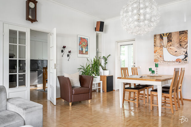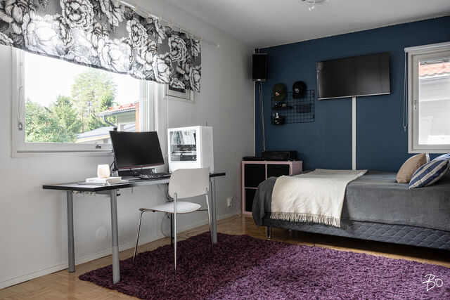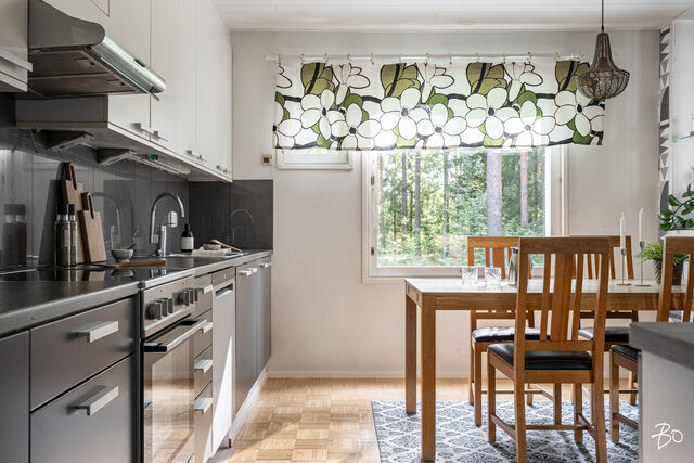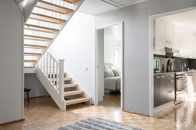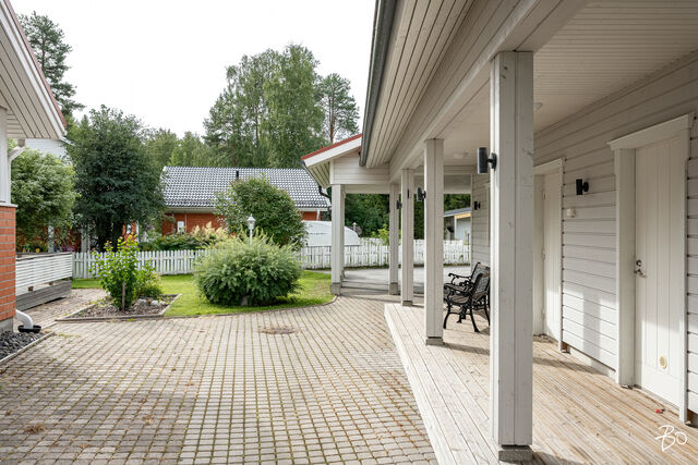 Etusivu / Pohjois-Pohjanmaa / Oulu / Kiiminginpolku 19 1 / 1 Kiiminginpolku 19 Syynimaa, Oulu | Omakotitalo | 5h,k,kph,s,khh,2xwc,at,ak,var. 319 000 € Velaton hinta 161,0 m2 Asuinpinta-ala 186,8 m2 Kokonaispinta-ala 1995 Rakennusvuosi Hyvin hoidettu ja kunnon perustuksilla seisova talo omalla tontilla Syynimaan rauhallisella asuinalueella.Koti pitää sisällään reilun määrän neliöitä, jotka ovat fiksusti käytetty. Suuri ja valoisa olohuone korotetulla katolla on loistava paikka oleskeluun ja olohuoneesta on myös kulku terassille/viherhuoneeseen, josta avautuu miellyttävät metsämaisemat. Keittiössä on reilusti säilytys- ja laskutilaa sekä paikka ruokapöydälle. Alakerrasta löytyy lisäksi kaksi isoa makuuhuonetta, remontoidut kylpyhuone, sauna, kodinhoitohuone sekä wc. Yläkerrassa on erillinen wc/kylpyhuone arjen sujuvoittamiseksi sekä kaksi makuuhuonetta, jotka ovat molemmat suurikokoisia. Toisen makuuhuoneen yhteydessä on oma parveke metsänäkymillä.Taloa on ajansaatossa pidetty hyvässä kunnossa ja tehty kattavasti remontteja. Mm. kylpyhuone ja kodinhoitohuone on remontoitu, ilmanvaihtojärjestelmän remontti ja tilavan autotallin- ja katoksen rakentaminen. Monien toivomassa lämpimässä autotallissa on hyvin tilaa harrastaa tai säilyttää autoa ja saman rakennuksen yhteydessä oleva varasto tarjoaa hyvin säilytystilaa.Sijainti ja itse tontti ovat mitä mainioimmat! Tontti on hyvin suojaisa, eikä sisätiloista näe juurikaan naapuritaloihin. Piha on helppohoitoinen ja rajoittuu puistoalueeseen. Talo sijaitsee tien perällä omassa rauhassaan ilman läpikulkuliikennettä.Syynimaalla on luonto sekä kattavat palvelut lähellä niin Linnanmaan kuin Kaijonharjunkin puolella. Lähellä on myös yliopiston ja Teknologiakylän opiskelu- ja työpaikat. Alueelta on hyvät bussiyhteydet kaupunkiin sekä nopeat reitit, jos liikut omalla autolla tai pyöräillen. Autolla pääset alle 10 minuutissa keskustaan!Tervetuloa paikan päälle tutustumaan! Varaa oma esittelyaikasi:Teemu Aikio | 045 114 2180 | teemu@bo.fiKimmo Raappana | 044 243 6417 | kimmo@bo.fi Kiinnostaako tämä kohde?Ota meihin yhteyttä tai jätä viesti Kimmo Raappana myyntipäällikkö Oulu, kiinteistönvälittäjä LKV, partner 044 243 6417 kimmo@bo.fi Tutustu välittäjään RakennusKäyttöönottovuosi1995RakennusmateriaaliPuu, tiiliRakennusmateriaalien kuvausTalo on puurakenteinen, jossa ulkoverhoiluna tiili ja ulkoverhouslauta KattotyyppiHarjakattoKateTiilikateAsuinpinta-ala161,0 m2 (186,8 m2)Lisätietoja pinta-alastaRakennuslupapiirustusten mukaan asuinrakennuksen huoneistoala on 161m² ja kerrosala 197m². Muu tilat käsittää autotallin, jonka huoneistoala 17,5m² ja varaston 8,3m². Kerrosala autotalli/varasto 31,2m².Kerrokset2Muut tilat25,8 m2Lämmitysjärjestelmän kuvausSähköLämmön jakotapaSähköinen lattialämmitys, uuni/takkaHuoneluku5h,k,kph,s,khh,2xwc,at,ak,var.Keittiön muut varusteetLiesituuletin, astianpesukone, kiinteät valaisimetLiesiKeraaminen liesiKeittiön työtasojen materiaaliLaminaattiKeittiön lattiamateriaaliParkettiKeittiön seinien materiaaliLasikuitutapetti, osalaatoitusKylpyhuoneen varustusLattialämmitys, suihkuKylpyhuoneen lattiamateriaaliLaattaKylpyhuoneen seinämateriaaliKaakeliSaunaAsunnossa on saunaSaunan lattiamateriaaliLaattaSaunan seinämateriaaliPuuWC-tilojen kuvausKodissa on kaksi erillistä wc:tä, joista toinen on alakerrassa ja toinen yläkerrassa. Yläkerran wc/suihku lattiapinnat: Laatta. Seinäpinnat: Kaakeli. Varustus: suihku, wc-istuin, allaskaappi, peiliVarustus: lattialämmitys, peilikaappi, bidee-suihkuLukumäärä: 2Lattiamateriaalit: laattaSeinämateriaalit: maalattu, tapettiKodinhoitohuoneVarustus: pesukoneliitäntä, pesuallas, lattialämmitys, lattiakaivo, pöytätasoLattiamateriaalit: laattaSeinämateriaalit: maalattu, lasikuitutapettiMakuuhuoneen kuvaus, lisätiedot ja varustusLukumäärä: 4Lattiamateriaalit: parkettiSeinämateriaalit: maalattu, tapetti, lasikuitutapettiOleskelutilojen kuvaus, lisätiedot ja varustusLattiamateriaalit: parkettiSeinämateriaalit: lasikuitutapettiMuut tilatParvekeTakkatiedotTakkaMuut säilytystilatUlkovarastoTehdyt korjaukset2016- Kylpyhuone/sauna remontti. Samalla uusittu kodinhoitohuoneen lattia. 2016- Keittiö ja kodinhoitohuoneen ovet uusittu ja joitain runkoja. 2016- Yläpohjan eristeiden vaihto ekovillaan. Samalla yläpohjan puhdistus ja tiivistys. 2016- Ilmastointi remontti. Uusi ilmastointikone Vallox 096. Samalla uudet ilmastointiputket ja eristeet. 2017- vanhan takan purku ja uuden asennus tilalle. 2017- Etupihan terassi. 2020- Pihat ja autotalli/katos rakennettu. 2021-2023- Tiilikattojen maalaus. 2022- Takapihan terassi/viherhuone. 2024- Alakerran WC:n lattia uusittu ja lisätty vedeneriste. 2024- Teknisen tilan lattiaan epoksipinnoite.KuntoHyväEnergiatodistusKylläEnergialuokkaE2018Lisätietoja energiatodistuksestaVoimassa 02.07.2034 saakka. KiinteistötiedotKiinteistötunnus564-78-26-10TyyppiOmakotitaloTontin tyyppiTasamaatonttiTontin koko799,00 m2Tontin omistusOmaPanttikirjat300 000,00 €Lisätietoja tontistaTie perilleVesijohtoKunnanViemäriKunnanRakennusoikeus220,0 m2Lisätietoja rakennusoikeudesta180m² + at40m² AsumiskustannuksetKiinteistövero636,02 €Muut maksut / lisätietoa maksuistaKokonaissähkönkulutus on ollut nykyisillä asukkailla noin 21000 kwh/vuosi. Sähkönkulutus vaihtelee asukasmäärän ja käyttötottumusten mukaan. Vesimaksut kulutuksen mukaisesti, jätehuolto oman sopimuksen mukaisesti. HintaVelaton hinta319 000,00 €Myyntihinta319 000,00 € VapautuuSopimuksen mukaanMaksuehtoKäteinen. Sinua voisi kiinnostaa Asunnon hinta-arvio ja arviokäynti Asunnon hinta-arvio ja arviokäynti Mitä hinta-arvio maksaa tai miten arviokäyntiä varten kannattaa valmistautua? Katso vastauksemme usein kysyttyihin ky… Sneak Peek® Sneak Peek® Sneak Peek® -palvelumme on askeleen edellä! Löydä alueesi uusimmat ja upeimmat asunnot jo ennen kuin ne ilmestyvät as… Asun