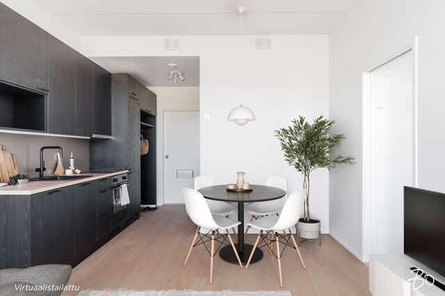 Etusivu / Varsinais-Suomi / Kaarina / Jalostusasemankatu 13b 1 / 1 Jalostusasemankatu 13b Rauhalinna, Kaarina | Kerrostalo | 2h, kt, kph, vh, et, lasit.parv. 158 000 € Velaton hinta 32,5 m2 Asuinpinta-ala 41,9 m2 Kokonaispinta-ala 2025 Rakennusvuosi Uusi koti, jossa skandinaavinen tyyli ja avarat tilat yhdistyvät moderniin asumismukavuuteen tämä kaunis asunto tarjoaa luonnonläheisyyttä ja laadukasta elämää arvostavalle. Asunto sijaitsee uudessa, juuri loppukesästä valmistuneessa taloyhtiössä. Toisen kerroksen koti tarjoaa käytännölliset asuintilat: tilavan olohuoneen ja modernin keittotilan yhdistelmän sekä rauhallisen makuuhuoneen. Tarkkaan harkitut materiaalit ja harmoninen värimaailma luovat tyylikkään ja ajattoman ilmeen, jossa on helppo viihtyä. Säilytystilat on huomioitu erinomaisesti muun muassa vaatehuoneella, ja kylpyhuoneessa on tilavaraus pesukoneelle. Ainutlaatuisena lisänä on koko asunnon levyinen, lasitettu parveke, joka tarjoaa lisää oleskelutilaa ja viihtyisät näkymät Uomapuiston suuntaan tämä on täydellinen paikka nauttia aamukahvit tai rentoutua pitkän päivän jälkeen.Huoneiston kaupan yhteydessä on mahdollista ostaa erillisillä osakkeilla oleva pihapaikka. Autopaikan velaton hinta on 5 000€. Asunto Oy Kaarinan Tiara on rakentunut Kaarinan Rauhalinnan viehättävälle alueelle, aivan Turun kupeeseen. Taloyhtiö on suunniteltu tarjoamaan asukkailleen modernit ja huolettomat elinolosuhteet - ja sitä se toden totta tekee. Tämä vastavalmistunut, 32 asunnosta koostuva rakennus tarjoaa asukkailleen vehreät näkymät ja rauhallisen ympäristön.Hyvät palvelut sekä monipuoliset harrastus- ja ulkoilumahdollisuudet ovat lähellä. Ympärillä on vehreää luontoa ja meren rantaankaan ei ole pitkä matka. Myös kulkuyhteydet ovat erinomaiset kaikkiin suuntiin. Turun keskustaan ajat nopeasti ja moottoritie vie sinut Helsinkiin vajaassa kahdessa tunnissa. Tiaran lähistöllä olevalta bussipysäkiltä pääset monta kertaa tunnissa Turkuun ja lähikuntiin.Ota yhteyttä ja tule ihastumaan tähän upeaan asuntoon paikan päällä tämä voi olla uusi unelmakotisi tai uusi sijoitusasuntosi!KATRI LAGRÉN | 044 519 9421 | katri@bo.fifacebook: Katri Lagrén, asuntomyyjä, partnerinstagram: katrilagrenbolkvHarkitsetko oman asuntosi myyntiä? Pyydä minut sitoumuksetta maksuttomalle arviokäynnille. Kerron samalla lisää tämänhetkisestä asuntomarkkinatilanteesta, palveluistani ja Bo:n loistavasta välityskonseptista sekä miten asunnonvaihdon suhteen kannattaa edetä. Autan mielelläni! Kiinnostaako tämä kohde?Ota meihin yhteyttä tai jätä viesti Katri Lagrén asuntomyyjä, partner 044 519 9421 katri@bo.fi Tutustu välittäjään Varaa aika kalenteristani HuoneistoOsakkeet6790-7313HallintamuotoAsunto-osakeyhtiöHuoneluku2h, kt, kph, vh, et, lasit.parv.Kerros/Kerroksia2/5Asuinpinta-ala32,5 m2Muut tilat9,4 m2Lisätietoja pinta-alastaYhtiöjärjestyksen mukaan 2h+kt+vh+parv. Muut tilat: parveke. Pinta-aloja ei ole tarkistusmitattu. Yhtiöjärjestyksen mukainen. Isännöitsijäntodistuksen mukainen.NäkymätNäkymät Uomapuiston viheralueen suuntaan.ParvekeLasitettuHissiTaloyhtiössä on hissiKeittiön kuvaus, lisätiedot ja varustusJääkaappipakastin, induktioliesi, erillisuuni, liesituuletin, astianpesukone, paikka mikrolle. Kodinkoneet on integroitu.Pesutilojen kuvaus, lisätiedot ja varustusSuihku, suihkuseinä, allas, allaskaappi, peili, bidee, wc-istuin, paikka pesutornille.Makuuhuoneen kuvaus, lisätiedot ja varustusMakuuhuoneeseen kaksi sisäänkäyntiä sekä käynti vaatehuoneeseen.Lukumäärä: 1Oleskelutilojen kuvaus, lisätiedot ja varustusOlohuoneesta käynti lasitetulle parvekkeelle, jonka pinta-ala n. 9,5m2. Parvekkeen lasitukset on rakennusvaiheessa teetetty muutostyönä.SeinämateriaalitSeinät maalattu, kylpyhuoneessa laatta.LattiamateriaalitOleskelutiloissa Meister HD100 Kovapuulattia, kylpyhuoneessa laatta. Parvekkeella matto.KattomateriaalitKylpyhuoneessa tervaleppäpaneeli.Muuta kauppaan kuuluvaaVaatehuoneen hyllyt, parvekkeen huopamatto.KuntoHyväLisätietoa kunnostaYhtiö ja huoneisto ovat juuri valmistuneet, eikä huoneistossa ole asuttu sen jälkeen. Kiinteistö- ja yhtiötiedotYhtiön nimiAsunto Oy Kaarinan TiaraTontin omistusValinnainen vuokratoTontin koko1 635,00 m2Tontin vuokraajaSuomen Asunnot ja Tontit KyTontin vuokrasopimus päättyy16.05.2074Tontin vuokra24 079,60 €Käyttöönottovuosi2025RakennusmateriaaliMuuKattotyyppiHarjakattoKateYläpohja on teräsbetonia ja lämpöeristetty. VesikaLämmitysjärjestelmäKauko, muuEnergiatodistusKylläLisätietoja energiatodistuksestaVoimassa 3.1.2034 saakka.EnergialuokkaB2018Tehdyt korjaukset ja remontitYhtiö on valmistunut 2025.Lainat3 021 044,65 €Kiinnitykset4 895 925,36 €IsännöitsijäIsännöinti Eliel Oy 0201 227 900 Kasarmikatu 7 B 13100 HÄMEENLINNA Päävastuullinen isännöitsijä Marko Hellevaara 0201227900 marko.hellevaara@isannointieliel.fiTaloyhtiössä muutaAsuntojen lämpimät irtaimistovarastot on sijoitettu talon ullakkokerrokseen. Irtaimistovarastot on numeroitu huoneistonumeroiden mukaisesti. Myös ilmanvaihdon konehuone sijaitsee talon ullakkokerroksessa. Muut tekniset tilat sijaitsevat yhtiön ensimmäisessä kerroksessa. Rakennuksen päädyssä on polkupyöräkatos. Rakennusliike on ottanut yhtiön eduksi asuntokauppalain mukaisen suorituskyvyttömyysvakuutuksen, joka on voimassa 10 vuotta rakennuksen käyttöönottopäivästä, joka on ollut 27.5.2025. Yhtiöllä on hallussa voimassa oleva rakentamisvaiheen aikainen rs-takaus määrältään 420804,02 €. 19 § Savuttomuus: Asunto-osakeyhtiö on savuton. Asunto-osakeyhtiön hallitsemalla tontilla 202-6-6159-2 ja sillä olevissa rakennuksissa ei ole sallittua tupakoida. Kielto koskee kaikkia sisä- ja ulkotiloja, mukaan lukien kaikki asunto-osakeyhtiön yhteiset ja osakkaiden hallussa olevat huoneistot sekä muut tilat. Tupakointikielto koskee poltettavaksi tarkoitettuja tupakkatuottei