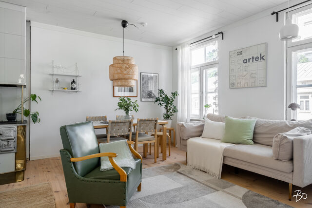 Etusivu / Varsinais-Suomi / Turku / Stålarminkatu 18 1 / 1 Stålarminkatu 18 Martti, Turku | Puutalo-osake | Tupakeittiö+wc+yläkerta+kellaritila+sauna+ph 199 000 € Velaton hinta 65,0 m2 Asuinpinta-ala 126,90 €/kk Hoitovastike 1924 Rakennusvuosi Puutaloidylliä parhaimmillaan Martissa Tämän kauniin kodin remontoidut tilat ovat kolmessa kerroksessa.Keskikerroksesta löytyy hyvällä huonekorkeudella varustettu olohuone avokeittiöineen puuhellalla sekä erillinen wc.Yläkerta puolestaan on avaraa yhtenäistä tilaa joka tällä hetkellä toimii isona makuuhuoneena. Tilaan sopii loistavasti myös vaikka työpiste.Kellaritilassa on lisäksi huone vaikka oleskeluun tai työhuoneelle. Kellarikerroksessa on myös upeasti remontoidut tilavat pesutilat ja sauna. Säilytystilaa löytyy myös hyvin.Asumisviihtyisyyttä lisää vuonna 2024 asennettu ilmalämpöpumppu joka auttaa lämmityksessä ja viilennyksessä.Upean kokonaisuuden kruunaa viehättävä patio, jossa on mukava oleskella.Sijainti kodilla on mitä parhain, keskustan palvelut ja idyllinen Aurajokiranta on vain kiven heiton päässä.Tässä kodissa riittää tunnelmaa ja ihasteltavaa.Tervetuloa tutustumaan!Tiedustelut ja esittelyt:Johanna Salonen Kiinteistönvälittäjä LKV, LVV , Partner050 4078843 tai johanna.salonen@bo.fi Kiinnostaako tämä kohde?Ota meihin yhteyttä tai jätä viesti Johanna Salonen kiinteistönvälittäjä LKV, partner 050 407 8843 johanna.salonen@bo.fi Tutustu välittäjään Varaa aika kalenteristani HuoneistoOsakkeet1-19HallintamuotoAsunto-osakeyhtiöHuonelukuTupakeittiö+wc+yläkerta+kellaritila+sauna+phKerros/Kerroksia1/3Asuinpinta-ala65,0 m2Muut tilat0,0 m2Lisätietoja pinta-alastaYhtiöjärjestyksen mukaan hh 27m2. Laajennettu kellariin 19m2 ja yläkertaan 19m2 yht 65m2 Ei tarkistusmitattu. Kauppahinta ei ole pinta-alaperusteinen.LiesiKeraaminen liesi, puuliesiKeittiön lattiamateriaaliLautaKeittiön seinien materiaaliMaalattuPesutilojen kuvaus, lisätiedot ja varustusPesutilat ja sauna uusittu vuonna 2015Kylpyhuoneen lattiamateriaaliLaattaKylpyhuoneen seinämateriaaliKaakeliWC-tilojen kuvausLukumäärä: 1Lattiamateriaalit: laattaSeinämateriaalit: kaakeliSaunan lattiamateriaaliLaattaSaunan seinämateriaaliPuuMakuuhuoneen kuvaus, lisätiedot ja varustusLattiamateriaalit: lautaSeinämateriaalit: maalattuOleskelutilojen kuvaus, lisätiedot ja varustusLattiamateriaalit: lautaSeinämateriaalit: maalattuKuntoHyväTakkaPuuhella (toimii, nuohottu)TakkatiedotMuu Kiinteistö- ja yhtiötiedotYhtiön nimiTurun Työläisten Asunto-Osakeyhtiö TonttumäkiTontin omistusVuokrattuTontin koko3 211,00 m2Tontin vuokraajaTurun kaupunkiTontin vuokrasopimus päättyy31.12.2032Tontin vuokra8 425,20 €Käyttöönottovuosi1924RakennusmateriaaliPuuKattotyyppiHarjakattoKatePeltikateLämmitysjärjestelmäSähköEnergiatodistusKylläLisätietoja energiatodistuksestaEnergiatodistus voimassa 11.3.2034 astiEnergialuokkaE2018Tehdyt korjaukset ja remontit- julkisivusaneeraus 2019-2022, sähkösaneeraus/laajakaista 2021-2022 - tippalistat uusittu, seinien lahokorjauksia ja aitojen uusimisia 2018 - asuinrakennusten paikkamaalaus 2012 - 11 kpl piipunhattuja rakennusten katoille ja yksien ulkoportaiden korjaus 2009 - uudet pihakalusteet 2008 - antenniverkko uusittu 2007, taajuusmuutos suoritettu 2016 - kaikkien rakennusten julkisivumaalaus 2004, takuukorjaukset tehtiin seuraavana vuonna - peltikatot maalattu 2002 - tonttiviemärit uusittu ja sadevesiviemärit rakennettu 2001 - peltikatot uusittu 1998 - huoneistokohtaiset postilaatikot hankittu 1994 - huoneistojen ulko-ovet kunnostettu 1993 - talousrakennus (sauna, pesutilat, pesutupa) rakennettu 1985 - ovia ja ikkunoita uusittu 1983 - seinälaudoituksen uusiminen 1991, yhteisantenni 1992Tiedossa olevat tulevat korjaukset/remontitKunnossapitotarveselvityksen mukaan: - palovaroittimien asennus huoneistoihin 2025 - päävesijohdon ja pääviemärin kuntokartoitus 2025 - ulko-ovien uusiminen / kunnostus, lukkojen uusiminen ( tämän myytävän asunnon ulko -ovi jo uusittu) Pihapaikkoja10Lainat125 524,58 €Kiinnitykset494 184,00 €IsännöitsijäIsännöinti Päivärinta Ky / Jari Kankare, Brahenkatu 14 D 91, 20100 Turku p. 02 469 3193 / 050 411 9776, toimisto@isannointipaivarinta.fiKiinteistönhoitoAsukkaatTaloyhtiössä muutaSauna, pesutupa, puutarhavälinevarasto, pyöräsuoja Muita tietojaLisätietoa kaavoituksestaTurun kaupunkiVapautuuSopimuksen mukaanMuut kaupan kannalta merkittävät tiedotHuoneistojen vuokraus yhtiön ulkopuolelle vain hallituksen luvalla AsumiskustannuksetHoitovastike126,90 €/kk (1,95 €/m2)Rahoitusvastike75,45 €/kk (1,16 €/m2)Yhtiövastike yhteensä202,35 €Vesi15,00 €/hlö/kkMuut maksut / lisätietoa maksuistaSähkö kulutuksen mukaan. Nykyisen asukkaan sähkönkulutus ollut n. 9000kWh vuodessa. Esitetyt asuinkustannukset perustuvat nykykäyttöön ja voivat siten olla suurempia tai pienempiä, riippuen asukasmäärästä, asumistottumuksista sekä palveluntarjoajasta. Varainsiirtovero 1,5 % velattomasta kauppahinnasta. Vielä nostamattoman yhtiön korjaustilin ( 50 000e) osuus tähän asuntoon n 1319,44 e. Taloyhtiön osakeluettelo on siirretty huoneistotietojärjestelmään ja ostajan tulee hakea omistusoikeuden rekisteröintiä Maanmittauslaitokselta. Ostaja vastaa tällöin omistusoikeuden rekisteröintikustannuksista, mahdollisista osakekirjan mitätöinnistä aiheutuvista kustannuksista sekä mahdollisesta hakemusmaksun korotuksesta. Ostajan pankin ostajalta mahdollisesti veloittamista kaupantekoon, omistusoikeuden rekisteröintiin tai panttausmerkinnän hakemiseen liittyvistä kustannuksista ostaja saa tiedon pankiltaan. HintaMyyntihinta194 271,19 € (2 988,79 €/m2)Velkaosuus4 728,81 € (72,75 €/m2)Velaton hinta199 000,00 € (3 061,54 €/m2)MaksutapaKäteinen. Sinua voisi kiinnostaa Asunnon hinta-arvio ja arviokäynti Asunnon hinta-arvio ja arviokäynti Mitä hinta-arvio maksaa tai miten arviokäyntiä varten kannattaa valmistautua?