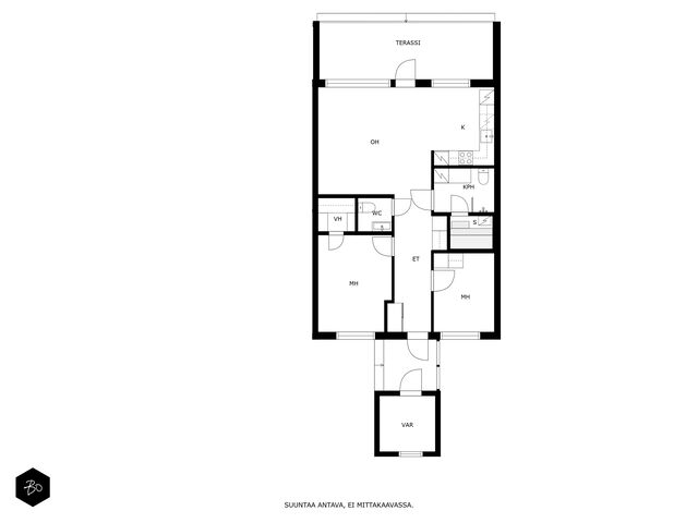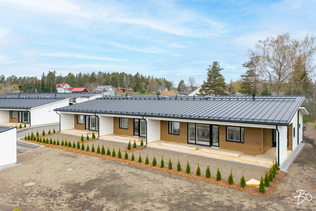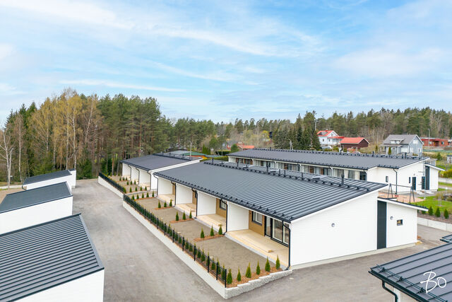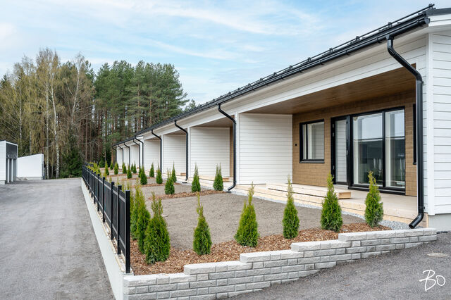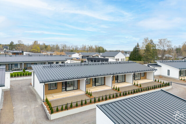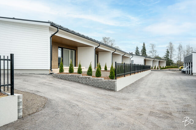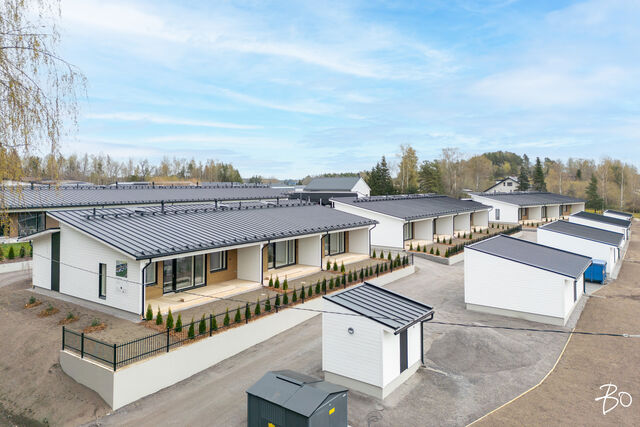 Etusivu / Varsinais-Suomi / Kaarina / Vairiontie 1 1 / 1 Vairiontie 1 Hulkkio, Kaarina | Rivitalo | 3h, avok, kh, s, 2wc, vh, terassi, var 298 800 € Velaton hinta 72,0 m2 Asuinpinta-ala 201,60 €/kk Hoitovastike 2025 Rakennusvuosi Asunto Oy Kaarinan Vairionkruunu Tämä huoneisto voidaan luovuttaa ostajalle kuukauden kuluessa kaupanteosta.Kaarinan Hulkkioon valmistuu uusia yksitasoisia rivitalokoteja. Kyseessä on RS-rahoitteinen uudiskohde, joka koostuu 10 yksitasoisesta rivitalohuoneistosta. Yhtiössä on kuusi kolmiota (3 x 72m2 ja 3 x 82 m2) kolme neliötä (92 m2) sekä yksi viisiö (125 m2). Yhtiö sijaitsee omalla tontilla ja lämmitysmuotona toimii edullinen ja energiatehokas maalämpö yhdistettynä vesikiertoiseen lattialämmitykseen (lämmitys sisältyy hoitovastikkeeseen). Huoneistot varustellaan huoneistokohtaisella lämmön talteenoton omaavalla koneellisella tulo- ja poistoilmanvaihtojärjestelmällä. Kaikkiin huoneistoihin asennetaan lisäksi ilmalämpöpumput viilennystä varten.Kaikki asuintilat sijaitsevat kätevästi yhdessä tasossa. Niin eteisen kuin kaikkien makuuhuoneidenkin yhteyteen on toteutettu säilytystilaa. Tyylikäs avokeittiö, ruokailutila sekä kodin upeat oleskelutilat sijoittuvat takapihan puolelle. Keittiön kaapistot ja muut säilytysratkaisut tulevat Puuvaja Oy:ltä. Olohuoneen isot, takapihan suuntaan asettuvat ikkunat tekevät tilasta valoisan ja avaran. Tilasta on kulku etelän suuntaiselle, koko huoneiston levyiselle katetulle terassille, jossa saa nauttia auringosta pitkälti koko päivän. Takaterassien jatkeena on osakkaiden hallinnassa olevat nurmipihat, jotka on tuija-aidoin eroteltu toisistaan. Kylpyhuoneiden yhteydessä on oma sauna ja tyylikäs kylpyhuone tarjoaakin rauhallisen rentoutumispaikan kiireisen arjen keskelle. Kylpyhuoneiden yhteyteen toteutetaan myös tila ja liitännät pesutornille. Kaikissa asunnoissa on 2 wc:tä. Jokaisella huoneistolla on etupihan puolella n. 5,3 m2 kokoinen lämmin ulkovarasto. Talon päädyssä on lisäksi yhtiön yhteinen ulkovarasto sekä tekninen tila. Perheen pienimmille on varattu yhtiön pihalta oma leikkialue. Jokaisen huoneiston käytössä on oma sähköpistokkeellinen autokatospaikka. Sähköauton latauksen mahdollistava latausasema voidaan asennuttaa lisätyönä. Lisäksi jokaiselle huoneistolle kuuluu autopihapaikka (pois lukien huoneisto C10, jolle kuuluu 2 autokatospaikkaa).Kaarinan itäpuolella sijaitsevasta Hulkkiosta on hyvät yhteydet niin Kaarinan kuin Turunkin palveluihin. Kaarinan keskustaan ajaa alle 5 minuutissa ja Turun keskustaan n. 15 minuutissa. Lisäksi päivittäistavarakaupat, päiväkodit, koulut, urheilumahdollisuudet sekä moni muu palvelu sijaitsevat kaikki lähellä. Kohteen rakentamisesta vastaa luotettava ja pitkään rivitaloyhtiöitä rakennuttanut Rakennus Mäntylä Oy.Tervetuloa tutustumaan kohteeseen!Myynti ja lisätiedot/Miika Salmela0500 533 582miika.salmela@bo.fi Kiinnostaako tämä kohde?Ota meihin yhteyttä tai jätä viesti Miika Salmela asuntomyyjä, partner 0500 533 582 miika.salmela@bo.fi Tutustu välittäjään HuoneistoOsakkeet329-400HallintamuotoAsunto-osakeyhtiöHuoneluku3h, avok, kh, s, 2wc, vh, terassi, varKerros/Kerroksia1/1Asuinpinta-ala72,0 m2Muut tilat0,0 m2Lisätietoja pinta-alasta Yhtiöjärjestyksen mukainen.NäkymätAurinkoinen terassi ja sen jatkeena oleva piha-alue etelään. Katetun terassin jatkeena asunnolla on nurmipihaa.Parvekkeen ilmansuuntaEteläKeittiön kuvaus, lisätiedot ja varustusKeittiön varusteena on induktioliesitaso erillisuunilla, liesituuletin (aktiivihiilisuodatin), jääkaappi/pakastin, astianpesukone ja mikroaaltouuni. Keittiö tulee Puuvaja Oy:ltä. Asuntoihin asennetaan arkkitehtisuunnitelman mukaiset kiintokalusteet. Kalusteet tehdasvalmisteisia standardikalusteita, työtasot laminaattipintaisia ja astianpesualtaat upotettuja komposiittialtaita. Kaappien ovet ovat valkoiseksi maalattuja MDF-ovia tai vastaavia. Seinät: maalattu katto: paneeli Lattia: lautaparketti/ vinyylikorkki/ laminaatti Pesutilojen kuvaus, lisätiedot ja varustusKylpyhuoneessa peilivalaisin, tasoallas, allaskaappi, pyyhekoukusto, suihkuseinä, tilavaraus pyykinpesukoneelle ja tarvittavat liitännät. Kylpyhuoneeseen voidaan asennuttaa ostajan halutessa wc-istuin. Lattia: vesieristetty ja laatoitettu Seinät: vesieristetty ja laatoitettu Katto: paneelialakatto Kalusteet: tehdasvalmisteiset vakiomalliset kiintokalusteet WC-tilojen kuvausErillisessä wc:ssä tehdasvalmisteiset vakiomalliset kiintokalusteet. Varusteisiin kuuluu peilikaappi, tasoallas, allaskaappi, pyyhekoukusto ja wc-paperiteline. Lattia: vesieristetty ja laatoitettu Seinät: laatoitettu Katto: paneeli Saunan kuvaus, lisätiedot ja varustusSauna sijaitsee kylpyhuoneen yhteydessä. Saunan ovet ovat kokolasisia saunanovia. Saunassa sähkökiuas. Lattia: vesieristetty ja laatoitettu Seinät: thermo haapaa / tervaleppää Katto: thermo haapaa / tervaleppää Varusteet: runko puuta, lauteet ja istuinosa thermo haapaa / tervaleppää Makuuhuoneen kuvaus, lisätiedot ja varustusKodin maakuuhuoneet sijaitsevat eteisen yhteydessä vastakkain. Isomman makuuhuoneen yhteydessä vaatehuone, toisessa kaapisto. Lattia: lautaparketti/ vinyylikorkki/ laminaatti Seinät: maalattu Katto: paneeliLukumäärä: 2Oleskelutilojen kuvaus, lisätiedot ja varustusOlohuoneesta kulku aurinkoiselle, etelän suuntaiselle terassille. Olohuoneesta isot ikkunat takapihan suuntaan. Lattia: lautaparketti/ vinyylikorkki/ laminaatti Seinät: maalattu Katto: paneeliMuuta kauppaan kuuluvaaOstajalla on mahdollisuus teettää ostamaansa huoneistoon kohdistuvia muutostöitä omalla kustannuksellaan. Rakentaja antaa toivotuista muutostöistä kirjallisen tarjouksen. Lisä- ja muutostyötilaukset tulee tehdä ilmoitettuun päivämäärään mennessä, muussa tapauksessa asunnot rakennetaan suunnitelmien mukaisesti. Rakennustapaselostus on tarkoitettu yleisluontoisen tiedon antamiseksi. Rakentajalla on oikeus vaihtaa