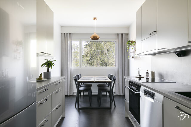 Etusivu / Uusimaa / Espoo / Rajamännynkuja 6 1 / 1 Rajamännynkuja 6 Viherlaakso, Espoo | Kerrostalo | 3h, k, kph, las.parveke (yj: 3h+k) 189 000 € Velaton hinta 69,5 m2 Asuinpinta-ala 340,55 €/kk Hoitovastike 1975 Rakennusvuosi Tervetuloa tutustumaan kauniisti remontoituun läpitalon huoneistoon Viherlaaksoon!Tämä putkiremontoitu kerrostalon ylimmän kerroksen asunto hurmaa heti ensisilmäyksellä. Sisään astuessasi sinua tervehtii tarkasti harkittu pohjaratkaisu, joka koostuu kolmesta tilavasta huoneesta, erillisestä keittiöstä ja modernista kylpyhuoneesta. Huoneisto on valoisa ja avara, ja se on pidetty erinomaisessa kunnossa. Lasitetulta parvekkeelta voit nauttia raikkaista kesäilloista ja rauhallisesta ympäristöstä suojassa säältä.Taloyhtiö on hyvin hoidettu ja sijaitsee omalla tontilla. Yhtiössä on tehty vuosien varrella merkittäviä remontteja kuten perinteinen linjasaneeraus vuonna 2020, vesikatot on uusittu vuonna 2022 ja salaojakorjauksia on tehty vuonna 2024. Piha-alue on vehreä ja tarjoaa mahdollisuuden rentoutumiseen ja yhteiseen ajanviettoon. Yhtiöstä on mahdollista vuokrata autohallipaikka.Asunnon rauhallinen sijainti tarjoaa asukkailleen erinomaiset ulkoilumahdollisuudet. Alueella on monia puistoja ja lenkkipolkuja, jotka houkuttelevat luonnosta nauttimaan. Lisäksi alueen monipuoliset palvelut, kuten kaupat, koulut ja muut arjen peruspalvelut, ovat vain lyhyen matkan päässä, mikä tekee tästä kohteesta perheelle täydellisen valinnan. Älä jää paitsi tästä upeasta tilaisuudesta - tule ja ihastu tähän kauniiseen kotiin paikan päällä!Myynti ja esittelyt:RIINA TANABEKiinteistönvälittäjä LKV, LVV, KiLATvisualisti, partner050 541 6203 | riina.tanabe@bo.fiHARKITSETKO ASUNTOSI MYYNTIÄ? Varaa helposti maksuton arviokäynti suoraan kalenteristani. https://bo.fi/henkilo/riina-tanabe/#kalenteri Kiinnostaako tämä kohde?Ota meihin yhteyttä tai jätä viesti Riina Tanabe kiinteistönvälittäjä LKV, LVV, KiLAT, visualisti, partner 050 541 6203 riina.tanabe@bo.fi Tutustu välittäjään Varaa aika kalenteristani HuoneistoOsakkeet2824-2962HallintamuotoAsunto-osakeyhtiöHuoneluku3h, k, kph, las.parveke (yj: 3h+k)Kerros/Kerroksia3/3Asuinpinta-ala69,5 m2Muut tilat0,0 m2Lisätietoja pinta-alasta Isännöitsijäntodistuksen mukainen. Yhtiöjärjestyksen mukainen.NäkymätLäpitalon huoneisto, ikkunat pohjoiseen ja etelään, lasitettu parveke etelään. Vehreät näkymät ikkunoista.Keittiön kuvaus, lisätiedot ja varustusKauniisti remontoitu keittiö. Varustus: jääkaappi/pakastin, keraaminen liesi, erillisuuni, liesituuletin, astianpesukone. Työtasot laminaattia. Seinät maalattu ja lattia vinyylilaattaa.Pesutilojen kuvaus, lisätiedot ja varustusKylpyhuone remontoitu linjasaneerauksen yhteydessä. Varustus: wc-istuin, bidee-suihku, suihku, suihkuseinä, peilikaappi, allaskaappi, pesukoneliitäntä, pyyhepatteri. Lattia laattaa ja seinät kaakeloitu.Makuuhuoneen kuvaus, lisätiedot ja varustusMakuuhuoneissa vaatekaapistot. Seinät maalattu ja lattia vinyylilankkua.Oleskelutilojen kuvaus, lisätiedot ja varustusOlohuoneesta käynti lasitetulle parvekkeelle. Seinät maalattu ja lattia vinyylilankkua.Muutostyöt huoneistossaEdellisen omistajan tekemät remontit: 2021 keittiö remontoitu, lattiat uusittu, vaatekaapistot uusittu, seinät maalattuKuntoHyvä Kiinteistö- ja yhtiötiedotYhtiön nimiAsunto Oy VihertasankoTontin omistusOmaTontin koko5 812,00 m2Käyttöönottovuosi1975RakennusmateriaaliBetoniKattotyyppiTasakattoKateHuopaLämmitysjärjestelmäKaukoEnergiatodistusKylläLisätietoja energiatodistuksestaViimeinen voimassaolopäivä: 21.09.2028EnergialuokkaE2018Tehdyt korjaukset ja remontit2024 Salaojien osakorjauksen urakkakilpailutus. Salaojien osakorjausurakka (4 ja 6 talot), Pesulan pesukoneen uusiminen 2023 Puiden kaatoa pihoilta. Ulko-ovien koodilukot asennettiin. Salaojien kuntotarkastuksen perusteella tehtiin hanke- ja toteutussuunnittelu. 2022 Vesikattojen uusiminen. Elementtisaumojen uusiminen. Linjasaneerauksen takuukysely ja takuutyöt. Salaojien kuntotarkastus. 2021 5- talon sisäilmakorjauksia, Vesikattojen uusimisen suunnittelu ja kilpailutus. 2020 LVIS-urakka, urakka valmistui. 2019 LVIS-urakka (perinteinen) 2018 Yhtiökokous vahvistanut valmistuneen LVIS-hankesuunnitelman tulevan LVIS-esitoteutussuunnitelmien pohjaksi, jotka päätettiin myös tilata yhtiökokouksessa. Toteutussuunnitelmat tekeillä ja valmistuvat kun LVIS-hankkeen urakoitsija on valittu ja suunnitelmat toteutetaan yhteistyössä urakoitsijan kanssa. 2017 LVIS-hankesuunnitelman valmistuminen 2016 Puiden kaadot pihalta, villiviinien poisto 4-talon seiniltä, vesikalusteiden korjauskierros huoneistoissa, vuotovahinkojen korjaukset 6-talon kellarissa ja 5-talon kellarin linjasäätöventtiileillä 2015 Jätejärjestelmän uusiminen, Molok-järjestelmän käyttöönotto, vesikattojen huoltokorjaukset, kattoturvalaitteiden lisäykset ja linjasäätöventtiileiden korjauksia 2014 Käyttövesi- ja jätevesiviemärijohtojen kuntotutkimukset 2013 5-talon edustan salaojalinjan uusiminen 2012 Salaojien kuvaus- ja huolto 2011 Korjausselvityksen laadinta, kaukolämpölaitteiston uusiminen 2010 Piha-alueen pieniä parannustöitä, ilmastoinnin puhdistus ja säätö, käyttöveden linjasulkujen ja säätöventtiilien uusimiset 2009 Numerovalaisimien uusiminen 2008 Lämmitysjärjestelmän säätö ja tasapainotus sekä patteriventtiilien ja termostaattien uusimiset. 5-talon autotallien edustan asfaltoinnin uusinta sekä muiden asfaltointien paikkakorjaukset 2007 Autotallien ovien uusiminen 2006 Parvekkeiden ja muiden julkisivujen betonirakenteiden korjaukset ja elementtisaumojen uusimiset. 2002 Ikkunoiden- ja parvekeovien uusinta 1998 5-talon perusmuurin vesieristyksen ja salaojituksen korjaus 1995 Kattopinnoitteiden uusintaTiedossa olevat tulevat korjaukset/remontitHallituksen kunnossapitotarveselvitys yhtiökokoukselle 2025: 2025 Energiaselvitys (lämmön talteenotto