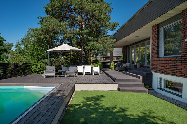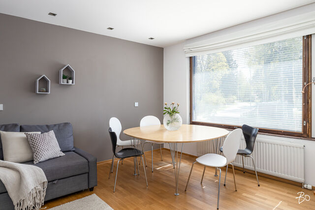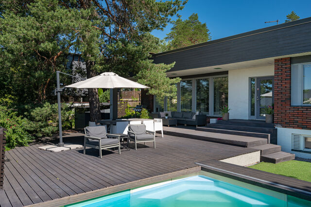 Etusivu / Uusimaa / Espoo / Laidunrinne 7a 1 / 1 Laidunrinne 7a Nöykkiö, Espoo | Erillistalo | 6h, k, kph, 3wc, ph, s, takkah. + uima-allas, at, ak 675 000 € Velaton hinta 170,0 m2 Asuinpinta-ala 237,0 m2 Kokonaispinta-ala 1972 Rakennusvuosi UNELMIEN KOTI JA 70-LUVUN TUNNELMAA - NYKYAJAN VAATIMUKSINTämä vuonna 1972 rakennettu talo näyttää ulkoa aivan tavalliselta punatiiliseltä aikakautensa talolta, mutta sisältä paljastuukin jotain ihan muuta. Pihasta puhumattakaan. Sisälle astuessa avautuu ihanat näkymät takapihalle saakka. Heti eteisen jälkeen avautuu kodin sydän olohuoneen korkea tila, valtavat ikkunat ja kerroksellinen pohjaratkaisu tekevät vaikutuksen ensi hetkestä lähtien.Uima-allasalue ja terassi on toteutettu poikkeuksellisen hienosti tämän tason piharatkaisuja näkee Suomessa harvoin. Huoneistosta on upeat ja suojaisat maisemat joka suuntaan ja näitä on vaikea päihittää. Takapiha on naapurin katseilta piilossa ja helppohoitoinen. Terassi kattaa suurimman osan pihasta ja vihreä tekonurmi näyttää aina hyvältä, kun ei aurinko polta sitä jatkuvasti. Suuri tammi on kerrassaan upea ja tuo kesäkuumalla kaivattua varjoa.ARKKITEHDIN KÄDENJÄLKI NÄKYYTalo koki merkittävän muodonmuutoksen vuosina 20042006, kun arkkitehtipariskunta suunnitteli kodin uudelleen. Pinta- ja pohjaratkaisuja uudistettiin, ja myös ruokailutilaan lisättiin ikkuna, joka päästää lisää luonnonvaloa. Tämä valoisa, harkittu kokonaisuus huokuu tyyliä ja käytännöllisyyttä.Seuraavat omistajat toivat kotiin ripauksen luksusta piha-alueelle rakennettiin suuri terassi ja uima-allas, jotka muistuttavat enemmän Välimeren boutique-hotellin uima-allasosastoa kuin suomalaista takapihaa. Nykyiset omistajat ovat puolestaan panostaneet mittaviin teknisiin parannuksiin ja peruskorjauksiin.NEROKAS POHJARATKAISUTalon pohjaratkaisu on nerokas: avaraa seurustelutilaa toisella puolella ja toisella puolella perheen neljä makuuhuonetta ja viides huone, joka toimii tällä hetkellä työhuoneena. Talossa on kolme wc:tä, mikä tekee arjesta sujuvaa suuremmallekin perheelle. Keittiö sijaitsee omassa rauhassaan, mutta silti saumattomassa yhteydessä ruokailutilaan ja olohuoneeseen. Valtavat ikkunat päästävät luonnonvalon osaksi sisustusta, ja ikkunarivistö avaa näkymät suojaisalle pihalle.ALAKERTA - KUN ARKI JA LUKSUS YHDISTYYAlakerrasta löytyy sauna, pesuhuone, kodinhoitotila sekä takkahuone, jonka kautta pääsee suoraan aurinkoiselle eteläterassille ja uima-altaalle. Toiselta puolelta kellaria avautuu kodin ylellinen osasto: viinikellari ja suuri vaatehuone. Taloon kuuluu iso lämmin autotalli, jossa on auton lisäksi tilaa tavaran varastoimiselle, ja autokatos. Asunto-osakeyhtiömuotoista omakotitaloasumista, jossa jokainen vastaa vain omastaan. Asumiskustannukset pysyvät matalina ja varainsiirtoveroakin maksat vain 1,5%. PERHEIDEN SUOSIKKIALUELapsiperheiden suosima Nöykkiö tarjoaa helppoa arkea, kun lähistöltä löytyvät ala- ja yläkoulu sekä useat päiväkodit. Lisäksi läheltä löytyvät kirjasto, neuvola, hammaslääkäri ja ruokakaupat.Tämä koti vie jalat alta! ____________________________________Lisätietoja ja myynti:Silvia Alegre, LKV, partner, sisustussuunnittelija044 0742 915silvia@bo.fihttps://bo.fi/henkilo/silvia-alegre/ Kiinnostaako tämä kohde?Ota meihin yhteyttä tai jätä viesti Silvia Alegre kiinteistönvälittäjä LKV, KiAT, sisustussuunnittelija, partner 044 074 2915 silvia@bo.fi Tutustu välittäjään Varaa aika kalenteristani HuoneistoOsakkeet1-50HallintamuotoAsunto-osakeyhtiöHuoneluku6h, k, kph, 3wc, ph, s, takkah. + uima-allas, at, akKerros/Kerroksia2/2Asuinpinta-ala170,0 m2 (237,0 m2)Muut tilat67,0 m2Lisätietoja pinta-alastaKellarikerroksessa takkahuone, pesutilat, sauna, erillis-wc, vaatehuone. Lämmin autotalli. Yhtiöjärjestyksen mukainen. Isännöitsijäntodistuksen mukainen.NäkymätVehreät ja suojaisat näkymät. Suojaisa tontti. Keittiön kuvaus, lisätiedot ja varustusKaapistot; Valkoiset kaapistot 2004, mustat kaapit uusittu 2020. Jääkaappi, pakastin, induktioliesi, liesituuletin, uuni, mikroaaltouuni, astiapesukone (jääkaappi ja liesi uusittu 2020, osa kodinkoneista 2014). Keittiön välitila sationoitua lasia. Lattia mikrosementtiä, seinät maalattu. Vesikiertoinen lattialämmitys. Pesutilojen kuvaus, lisätiedot ja varustusYläkerran kylpyhuone 2004: suihku, suihkuseinä, pesuallas, hyllykkö, peili, kuivauspatteri, wc-istuin. Seinät kaakelia, laattalattia maalattu kaakelimaalilla. Vesikiertoinen lattialämmitys. Alakerran pesutiloissa suihku. Lattia ja seinät käsitelty hartsipinnoitteella 2022 (laatan päälle), katto paneelia, uusittu valaistuksineen 2022. Vesikiertoinen lattialämmitys. WC-tilojen kuvausErillinen wc alakerrassa ja yläkerrassa. Yläkerran wc: Wc-istuin, bidee-suihku, peili ja allaskaappi avohyllyköllä. Vesikiertoinen lattialämmitys. Alakerran wc: peili, pesuallas, bidee-suihku, wc-istuin. Seinät kaakelia, laattalattiat maalattu kaakelimaalilla. Lattialämmitys sähköllä. Saunan kuvaus, lisätiedot ja varustusSaunan lauteet ja sähkökiuas uusittu 2017. Seinät ja lattia hartsipinnoitekäsittely 2022, katto paneelia. Saunassa myös puukiuas.Makuuhuoneen kuvaus, lisätiedot ja varustusSeinämateriaalit: Maali Lattiamateriaalit: Parketti ja vinyylilankku.Lukumäärä: 4Oleskelutilojen kuvaus, lisätiedot ja varustusSeinämateriaalit: Maali Lattiamateriaalit: Vinyylilankku. Vesikiertoinen lattialämmitys. Muut tilatTyöhuone, takkahuone ja ruokailutila.Kauppaan ei kuuluPimennysverhotKuntoTyydyttäväLisätietoa kunnostaHuoneisto on pinnoiltaan hyvässä kunnossa.TakkaKaksi takkaa (nuohottu 02/2025)TakkatiedotMuu Kiinteistö- ja yhtiötiedotYhtiön nimiAsunto Oy Casa Montana, EspooTontin omistusOmaTontin koko2 404,00 m2Käyttöönottovuosi1972RakennusmateriaaliPuu, tiiliKattotyyppiPulpettikattoKateBitumikermiLämmitysjärjestelmäKauko, sähkö, muuLisätietoja energiatodistuksestaOsakas v