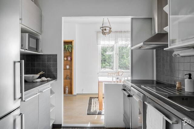 Etusivu / Varsinais-Suomi / Turku / Linnankatu 47 1 / 1 Linnankatu 47 VIII kaupunginosa, Turku | Kerrostalo | 3h+k+kph+vh+par (yj 3h+k) 269 000 € Velaton hinta 73,0 m2 Asuinpinta-ala 295,65 €/kk Hoitovastike 1952 Rakennusvuosi Tervetuloa tutustumaan Linnankadulle, jossa kaupunkielämä ja kodikas tunnelma kohtaavat. Linnankatu 47:n toisessa kerroksessa odottaa valoisa ja avara kolmio, jonka 73 neliötä on suunniteltu elämää varten.Keittiötila kutsuu viihtymään  sinne mahtuu helposti isompikin ruokapöytä, jonka ympärille kokoontuu perhe, ystävät ja hyvät keskustelut. Keittiöstä tila jatkuu olohuoneeseen, josta avautuu pääsy omalle parvekkeelle. Parveke on täydellinen paikka nauttia aamukahvi, seurata kadun elämää tai istahtaa iltaisin hengähtämään.Kaksi makuuhuonetta tarjoavat joustavat ratkaisut: toinen voi toimia perinteisenä makuuhuoneena, toinen esimerkiksi työ- tai harrastetilana. Kylpyhuone täydentää toimivan kokonaisuuden.Taloyhtiö tarjoaa arkea helpottavia lisämukavuuksia. Saunan lempeät löylyt ja pesutuvan käytännöllisyys ovat asukkaiden ulottuvilla vain viiden euron kertamaksulla. Myös mankeli ja ulkoiluvälinevarasto ovat käytössä, mikä tekee asumisesta entistäkin huolettomampaa.Sijainti on mitä parhain: Aurajoen varren kauniit maisemat ja kävelyreitit ovat vain kivenheiton päässä. Keskustan kaupat, ravintolat ja kulttuurikohteet tavoitat hetkessä, ja julkinen liikenne kulkee sujuvasti niin keskustan kuin sataman suuntaan.Tämä koti Linnankadulla on yhdistelmä käytännöllisyyttä, tunnelmaa ja loistavaa sijaintia  täydellinen valinta kaupunkielämää arvostavalle. Kiinnostaako tämä kohde?Ota meihin yhteyttä tai jätä viesti Minna Stude kiinteistönvälittäjä LKV, partner 045 131 2886 minna@bo.fi Tutustu välittäjään HuoneistoOsakkeet142-214HallintamuotoAsunto-osakeyhtiöHuoneluku3h+k+kph+vh+par (yj 3h+k)Kerros/Kerroksia2/9Asuinpinta-ala73,0 m2Muut tilat0,0 m2Lisätietoja pinta-alastaPinta-aloja ei ole tarkistusmitattu, huoneiston todellinen pinta-ala voi siis olla yhtiöjärjestyksessä, isännöitsijäntodistuksessa ja esitteessä mainittua pienempi tai suurempi. Mainittu pinta-ala saattaa tämän ikäisessä kohteessa (rakennettu ennen vuotta 1992) poiketa olennaisesti nykyisten standardien mukaan laskettavasta asuinpinta-alasta. Isännöitsijäntodistuksen mukainen. Yhtiöjärjestyksen mukainen.ParvekeUlostyönnettyHissiTaloyhtiössä on hissiKeittiön kuvaus, lisätiedot ja varustusKeittiö remontoitu 2013LiesiSähköliesiKeittiön lattiamateriaaliLaminaattiKeittiön seinien materiaaliMaalattuKylpyhuoneen varustusPesukoneliitäntä, wc-istuin, suihkuKylpyhuoneen lattiamateriaaliLaattaKylpyhuoneen seinämateriaaliKaakeliMakuuhuoneen kuvaus, lisätiedot ja varustusLukumäärä: 2Lattiamateriaalit: laminaattiSeinämateriaalit: maalattu, tapettiOleskelutilojen kuvaus, lisätiedot ja varustusLattiamateriaalit: laminaattiSeinämateriaalit: maalattu, tapettiMuutostyöt huoneistossaKeittiökaapistojen uusinta 01/2013 parketin hionta+lakkaus 02/2013KuntoHyvä Kiinteistö- ja yhtiötiedotYhtiön nimiAsunto-osakeyhtiö Turun TornitaloTontin omistusOmaTontin koko3 678,00 m2Käyttöönottovuosi1952RakennusmateriaaliTiili, betoniKattotyyppiAumaKatePeltiLämmitysjärjestelmäKauko, muuEnergiatodistusKylläLisätietoja energiatodistuksestaVoimassa 30.12.2034 saakka.EnergialuokkaF2018Tehdyt korjaukset ja remontit2024: Autotallien edustan asfaltointi 2024: Valvontakameroiden asennus piha-alueille 2023: Huoneistopalovaroittimien asennus 2022: Lämmitysverkoston perussäätö ja patteriventtiilien vaihto 2022: Ilmanvaihtokanavien nuohous ja ilmamäärien säätö 2020: Autotalli- ja pihaovien korjaukset 2019: Yleisten tilojen ja liikehuoneistojen ikkunoiden huoltomaalaus 2019: A-talon vesikatteen pinnoitus ja B-talon julkisivun maalaus 2018: Lukitusten uusinta 2017: Parvekkeiden kunnostus A, B-talot 2017: Lämmöntalteenoton asennus 2016: B-talon katon puhdistus ja sammaleenesto käsittely 2016: Tukimuurin kunnostus 2015: Kivetyksen ja kaiteen rakentaminen Tornitalolta Linnankadulle 2012: Ulko- ja autotalliovien kunnostus 2012: Yhden huoneistoparvekkeen korjaus suunnittelun pohjaksi 2009-2010: LVIS-peruskorjaus, kylpyhuoneet, saunaosasto, sähkökeskus, lämmönsiirrin, puhelinkaapelointi, sähkönousut ja huoneistojen ryhmäkeskuksen uusittu, ilmastointikanavat nuohottu ja ilmamäärät säädetty 2009: Ikkunoiden ja parvekeovien uusinta 2007-2008: B-talolle johtavien portaiden korjaus + lämmityskaapeli 2004-2006: Hissien peruskorjaus 2003: B-talon tiilikatteen uusinta 1995: Päävesijohdon syöttöputki, lukkojen vaihto 1993-99: Julkisivukorjauksia Tiedossa olevat tulevat korjaukset/remontitSUUNNITELLUT KORJAUKSET 2026 A-talon tuuletusparvekkeen betonikorjaukset ja tasanteen p¡nnoitus 2028 lkkunoiden tiivisteiden uusiminen tarvittavilta osin 2028 lkkunoiden puuosien huoltomaalâus 2028 Lämmitysverkoston kuntotutkimus 2029 Tukimuurien kunnosius 2029 Lämmönsiirtimen uusiminen Ei määr. Ylätasanteen vesieristyksen ja ulkotason lipan kunnostus Ei määr. Viemäripystylinjojen pesu ja kuvaus Ei määr. Huoneistojen ulko-ovien uusiminen Ei määr. Hissien uusiminen Päätetyt: 2025 B-talon vesikatteen korjaukset (korjausbudjetista)Lainat256 287,38 €Kiinnitykset1 745 914,00 €IsännöitsijäIsännöintitoimisto Oiva isännöinti Turku Oy Brahenkatu 20, 20100 Turku Isännöitsijä Pauli Rekunen +358440567043KiinteistönhoitoHuoltoyhtiöTaloyhtiössä muutaYhtiössä sauna, pesutupa, mankeli ja ulkoiluvälinevarasto. Sauna ja pesutupa: 5€/kerta. Talossa A pesutupa- ja mankelihuoneisto, sauna sekä 4 autosuojaa ja liikehuoneisto. Talossa B liikehuoneisto ja toimistohuoneisto. Taloyhtiö ottaa huoltovastuun perustason vesikalusteista (yleensä yleisimmät Oraksen mallit). Perustasoa paremmat tai huonommat (koskien myös varaosien hintoja ja niiden hankintaa) siirtyvät osakkaan kunnossapitovastuulle. Muita tietojaLisätieto