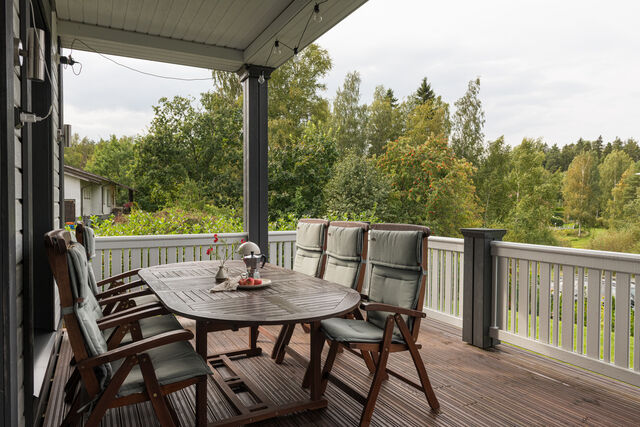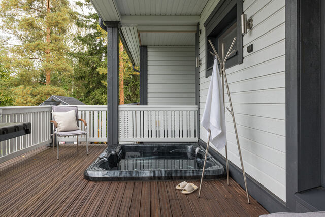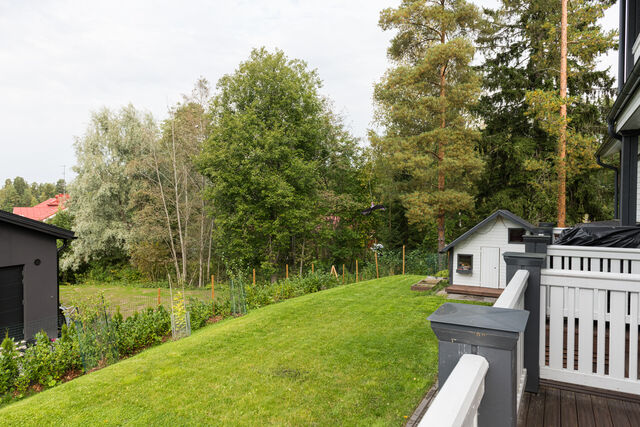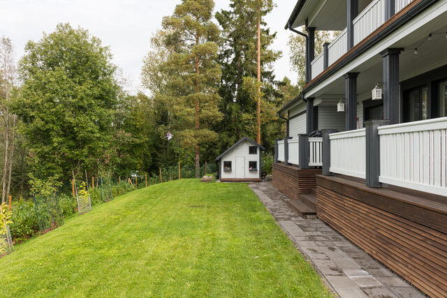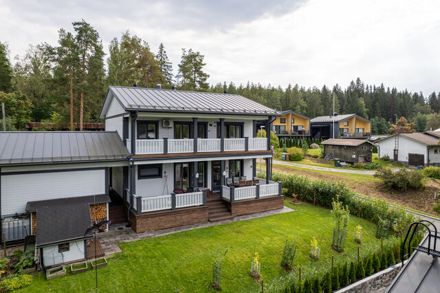 Etusivu / Pirkanmaa / Tampere / Olkahisenlahdenkatu 7 1 / 1 Olkahisenlahdenkatu 7 Tasanne, Tampere | Omakotitalo | 5h, k, kph, s, khh, kph/wc, wc, 5 kpl vh, p, terassi, var, ak 585 000 € Velaton hinta 159,0 m2 Asuinpinta-ala 168,0 m2 Kokonaispinta-ala 2018 Rakennusvuosi Tervetuloa tutustumaan moderniin omakotitaloon, joka täyttää kaikki lapsiperheen unelmat. Erittäin toimiva pohjaratkaisu, runsaat säilytystilat sekä tasokkaat sisustusratkaisut tekevät tästä kohteesta ainutlaatuisen.2018 valmistuneen Kannustalon sisätilat on suunniteltu erityisesti perheen tarpeisiin. Vaikka talossa on tilaa, asumiskustannukset ovat maltilliset mm. ilmavesilämpöpumpun ja vesikiertoisen takan ansiosta. Ilmanlämpöpumppu taas pitää yläkerran mukavan viileänä kesäisin. Viiden huoneen ja ison keittiön kokonaisuus tarjoaa runsaasti tilaa sekä yhdessäoloon että yksityisyyteen. Kodinhoitohuone, jossa on kätevä kuraeteinen suihkulla, helpottaa perheen arkea etenkin sateisina päivinä. Kahden kerroksen ratkaisulla kodissa on runsaasti säilytystilaa peräti viiden vaatehuoneen ansiosta, mikä takaa järjestyksen säilymisen. Tilavasta olohuoneesta avautuu avarat näkymät ja varsinkin yläkerrasta näkyy kauniisti myös Näsijärvelle.Kiinteistö seisoo omalla tontillaan ja sen ulkotilat tarjoavat idyllisen ympäristön viihtyisään asumiseen. Isolla terassilla on tilaa ruokailla ja oleilla, ja omassa poreammeessa on mukavaa rentoutua. Pihalla on avointa tilaa lasten leikkeihin ja siellä sijaitsee myös viehättävä leikkimökki. Kahden auton autokatos kahdelle autolle tekee arjesta sujuvaa. Katoksessa on myös sähköauton latausasema. Olkahisenlahdenkatu 7 sijaitsee idyllisellä ja rauhallisella Tasanteen alueella, joka on suosittu alue varsinkin lapsiperheille. Vehreät ulkoilumaastot lähtevät ihan vierestä, koulut, päiväkodit sekä lähikauppa ovat lyhyen matkan päässä. Nämä asiat tekevät siitä erinomaisen valinnan perheelle, joka arvostaa mukavuutta ja helppoutta arjessaan.Tämä kaunis koti on nähtävä paikan päällä; varaa oma esittelyaikasi ja tule ihastumaan tämän kodin tarjoamiin mahdollisuuksiin.Marika Holländerkiinteistönvälittäjä LKV, KiLAT045 162 9295marika@bo.fi Kiinnostaako tämä kohde?Ota meihin yhteyttä tai jätä viesti Marika Holländer kiinteistönvälittäjä LKV, KiLAT 045 162 9295 marika@bo.fi Tutustu välittäjään Varaa aika kalenteristani RakennusRakennusvuosi (aloitettu)2017Käyttöönottovuosi2018RakennusmateriaaliPuuKattotyyppiHarjakattoKatePeltiKaton kuntoHyväAsuinpinta-ala159,0 m2 (168,0 m2)Lisätietoja pinta-alastaRakennusoikeutta jäljellä muihin tiloihin 28 m2. Kerrosala 96m2 + 92m2= 188m2. Varaston kerrosala 12 m2. Kerrokset2Muut tilat9,0 m2LämmitysVesikiertoinen lattialämmitys, uuni/takka. Hyvä , takka vesi/kiertoilmaLämmitysjärjestelmän kuvausIlmavesilämpöpumppuHuoneluku5h, k, kph, s, khh, kph/wc, wc, 5 kpl vh, p, terassi, var, akKeittiön kuvaus, lisätiedot ja varustusPuustellin keittiö, AEG kodinkoneet, astianpesukone Electrolux, viinikaappi Cavin. Keittiön muut varusteetMikroaaltouuni, astianpesukone, kiinteät valaisimet, liesituuletin / hormiLiesiIntegroitu liesi, induktioliesiKeittiön lattiamateriaaliKiviKylpyhuoneen varustusLattialämmitys, suihku, kiinteät valaisimetKylpyhuoneen lattiamateriaaliLaattaKylpyhuoneen seinämateriaaliKaakeliSaunaAsunnossa on saunaSaunan kuvaus, lisätiedot ja varustusLauteet Magnolia puuta. Saunan lattiamateriaaliLaattaSaunan seinämateriaaliPuuWC-tilojen kuvausAlakerran erillisessä wc:ssä on bidee-suihku ja allaskaappi. Yläkerran wc:ssä sadesuihku ja 2 malja-allasta kaapeilla. Varustus: lattialämmitys, lattiakaivo, suihku, suihkuseinä, peilikaappiLukumäärä: 2Lattiamateriaalit: laattaSeinämateriaalit: kaakeliKodinhoitohuoneVarustus: pesukoneliitäntä, lattialämmitys, pyykkikaapit, kurapiste, keskuspölynimuriLattiamateriaalit: laattaMakuuhuoneen kuvaus, lisätiedot ja varustusMakuuhuoneet sijaitsevat toisessa kerroksessa. Kolmessa makuuhuoneessa on vaatehuoneet, yhdessä vaatekaapit. Päämakuuhuoneesta on käynti parvekkeelle, josta järvinäkymä.Lukumäärä: 4Lattiamateriaalit: parkettiSeinämateriaalit: maalattuOleskelutilojen kuvaus, lisätiedot ja varustusMerbau-parketti. Olohuoneessa vesikiertotakka.Lattiamateriaalit: parkettiSeinämateriaalit: maalattuTulisijaVesikiertotakkaTakkatiedotTakkaMuut säilytystilatVaatehuone, ulkovarastoMuuta kauppaan kuuluvaaPoreamme terassilla, leikkimökki, polttopuuteline polttopuineen, umpinainen sadevesikeruusäiliö, sähköauton latausasema Webasto pure 11 kWh (mahdollisuus nostaa 22 kWh) Kauppaan ei kuuluValvontakamerat, mutta ovat neuvoteltavissa. Kohteen kuvausKohteessa on poikettu lupapiirustuksista seuraavasti: - Autokatoksen ja rajan seutu tonttia 837-35-6643-4 vasten maanpinnan muotoilut on tehty poikkeavasti lupapiirustuksiin nähden. - Asuinrakennuksen ja rajan seutu tonttia 837-35-6643-2 vasten maanpinnan muotoilut on tehty poikkeavasti lupapiirustuksiin nähden luiskattuna jyrkkyyteen 1:3. Muutosten laatu ei lupaharkintaa koskevat säännökset ja määräykset huomioon ottaen merkitse luvan merkittävää muuttamista. Naapurit ovat antaneet muutoksille kirjallisen suostumuksensa. Naapurisuostumusten lisäksi pihamaan kallistuksissa tulee huomioida pintavesien poisjohtaminen siten, että vesiä ei johdeta naapuritontille. Samoin rajalle tehtyjen istutusten kanssa tulee huomioida ettei pensaiden tai puiden juuret ja oksat saa aiheuttaa haittaa naapuritontille. Tehdyt muutokset hyväksyttiin MRL 150 e §:n mukaisesti, toteutetussa muodossa.KuntoHyväEnergiatodistusKylläEnergialuokkaB2018Lisätietoja energiatodistuksestaEnergiatodistus voimassa 22.07.2031 asti. KiinteistötiedotKiinteistötunnus837-35-6643-3TyyppiOmakotitaloTontin tyyppiTasamaatonttiTontin koko555,00 m2Tontin omistusOmaPanttikirjat500 000,00 €VesijohtoKunnanViemäriKunnanRakennusoikeus180,0 m2Lisätietoja rakennusoikeudestaRakennusoikeu