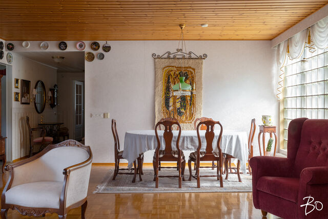 Etusivu / Satakunta / Pori / Halmeentie 4 1 / 1 Halmeentie 4 Vähärauma, Pori | Omakotitalo | 3mh+oh+k+s+kph+2xwc+vh 154 000 € Velaton hinta 133,0 m2 Asuinpinta-ala 166,5 m2 Kokonaispinta-ala 1975 Rakennusvuosi Tervetuloa tutustumaan Poriin, Halmeentie 4:ään, jossa yhdistyvät omakotitaloasumisen parhaat puolet upeat koko seinän korkuiset ikkunat, lämpimät sisustussävyt sekä rouheaa tiiliseinää korostavat yksityiskohdat tekevät tästä kodista heti ensisilmäyksellä lumoavan kokonaisuuden.Tässä vuonna 1975 käyttöön otetussa kodissa on tilaa ja tyyliä. Kolmen makuuhuoneen ja avaran olohuoneen yhdistelmä tarjoaa monipuoliset mahdollisuudet asumismukavuuteen. Keittiö on toimiva ja yhdistyy luontevasti ruokailutilaan. Erityisesti kodin sauna ja kylpyhuone on uusittu, mikä lisää arjen luksuksen tunnetta, ja kaksi wc-tilaa tuovat kaivattua arjen toimivuutta. Kiinteistö sijaitsee rauhallisella ja suositulla pientaloalueella, joka tarjoaa viihtyisän kodin lämpimän sydämen. Iso, suojaisa oma piha avautuu rauhalliseen puutarhaan, jossa on runsaasti istutuksia sekä viihtyisä oleskelualue. Kenellekään ei tule pulaa tilasta autotallin ansiosta, ja lukuisat tehdyt kunnostukset pitävät kiinteistön erinomaisessa kunnossa. Omakotitalo sijaitsee omalla tontilla, mikä tuo mukanaan edulliset asumiskulut ja oman rauhan.Halmeentie 4 sijaitsee erityisen rauhallisessa ympäristössä, jossa on hienosti säilynyt pientaloalueen idylli. Alue on tunnettu paikallisten suosimana asuinpaikkana, jossa yhdistyvät rauhallisuus ja erinomaiset palvelut lähettyvillä. Päivittäiset palvelut ja koulut ovat lyhyen etäisyyden päässä, mikä tekee arjesta vaivatonta ja miellyttävää. Tule itse paikan päälle ihastumaan ja tutustumaan tähän viehättävään kokonaisuuteen tämä voisi olla tuleva kotisi! Tässä kodissa on jo teetettynä kuntokartoitus (09/2025). Ota yhteys välittäjään.Mikko Helminenkiinteistönvälittäjä LKV, LVV, KiAT, MBA, partner0500 538 602mikko.helminen@bo.fi Kiinnostaako tämä kohde?Ota meihin yhteyttä tai jätä viesti Mikko Helminen kiinteistönvälittäjä LKV, LVV, KiAT, MBA, partner 0500 538 602 mikko.helminen@bo.fi Tutustu välittäjään RakennusRakennusvuosi (aloitettu)1972Käyttöönottovuosi1975RakennusmateriaaliPuu, tiiliKattotyyppiPulpettikattoKateHuopaAsuinpinta-ala133,0 m2 (166,5 m2)Lisätietoja pinta-alastaAsunnossa on tehty tarkistusmittaus 28.8.2025 , se on saatavilla välittäjältä. Ilmoitettu asuintilojen pinta-ala on tarkistusmittauksen mukainen pinta-ala. Muihin toloihin on laskettu autotalli 18m2, varastotila 11m2 ja tekninen tila 4,5 m2. Kerrosala on DVV:n rakennuksen tarkemmat tiedot dokumentin mukaan 130m2.Kerrokset1Muut tilat33,5 m2Lämmitysjärjestelmän kuvausIlmavesilämpöpumppu, ilmalämpöpumppuLämmön jakotapaVesikiertoinen patterilämmitys, uuni/takka, ilmalämpöpumppuHuoneluku3mh+oh+k+s+kph+2xwc+vhKeittiön muut varusteetAstianpesukone, kiinteät valaisimet, liesituuletin / hormiLiesiKeraaminen liesiKeittiön työtasojen materiaaliLaminaattiKeittiön lattiamateriaaliMuoviKeittiön seinien materiaaliKaakeli, maalattuKylpyhuoneen varustusPesukoneliitäntä, lattialämmitys, suihku, kiinteät valaisimet, kylpyhuonekaapistoKylpyhuoneen lattiamateriaaliLaattaKylpyhuoneen seinämateriaaliKaakeliSaunaAsunnossa on saunaSaunan lattiamateriaaliLaattaSaunan seinämateriaaliPuuWC-tilojen kuvausVarustus: peilikaappi, bidee-suihkuLukumäärä: 2Lattiamateriaalit: laattaSeinämateriaalit: kaakeliMakuuhuoneen kuvaus, lisätiedot ja varustusLukumäärä: 3Lattiamateriaalit: parkettiSeinämateriaalit: maalattu, tapettiOleskelutilojen kuvaus, lisätiedot ja varustusLattiamateriaalit: parkettiSeinämateriaalit: maalattu, tapetti, muuTakkatiedotTakkaMuut säilytystilatVaatehuone, ulkovarasto, muu erillinen varastoTehdyt korjaukset2020 lämmitysjärjestelmän saneeraus vesi,ilma,lämpöpumppu 2010 kylpyhuone ja saneeraus, sisäovet kaikki uusittu 2007 ikkunoiden vaihto 2002 vesijohtoputket pintaan 1998 keittiön kaapin ovet uusittu 1993 katon huovat vaihdettu Kohteen kuvausErinomainen sijainti, hyvä pohjaKuntoTyydyttäväLisätietoja energiatodistuksestaMyyjä vastaa energiatodistuksen hankkimisesta lain velvoittamana. KiinteistötiedotKiinteistötunnus609-25-102-5TyyppiOmakotitaloTontin tyyppiTasamaatonttiTontin koko616,00 m2Tontin omistusOmaPanttikirjat0,00 €Lisätietoja tontistaAidattu ja hoidettu puutarhatonttiTie perilleVesijohtoKunnanViemäriKunnanLisätietoja rakennusoikeudestaPorin kaupunki, Porina AsumiskustannuksetKiinteistövero500,00 €Muut maksut / lisätietoa maksuistaEsitetyt asumiskustannukset perustuvat nykykäyttöön ja voivat siten olla suurempia tai pienempiä riippuen asukasmäärästä, asumistottumuksista sekä palveluntarjoajasta. Varainsiirtovero 3 % kauppahinnasta. Kulutuksen mukaan maksut vesi, jätevesi ja jätehuolto. HintaVelaton hinta154 000,00 €Myyntihinta154 000,00 € VapautuuSopimuksen mukaanMaksuehtoKäteinen. Sinua voisi kiinnostaa Asunnon hinta-arvio ja arviokäynti Asunnon hinta-arvio ja arviokäynti Mitä hinta-arvio maksaa tai miten arviokäyntiä varten kannattaa valmistautua? Katso vastauksemme usein kysyttyihin ky… Sneak Peek® Sneak Peek® Sneak Peek® -palvelumme on askeleen edellä! Löydä alueesi uusimmat ja upeimmat asunnot jo ennen kuin ne ilmestyvät as… Asuntovahti Asuntovahti Etsimässä uutta asuntoa? Aseta itsellesi Bo-asuntovahti. Saat tiedon heti, kun unelmiesi asunto tulee myyntiin. Bo Match Bo Match Kun asuntounelmat ja unelmien asunnot kohtaavat, syntyy Bo Match. Tutustu uudenlaiseen tapaan käydä asuntokauppaa.