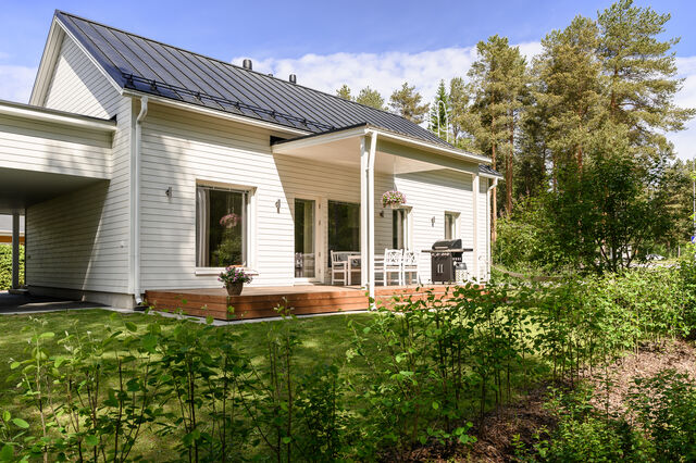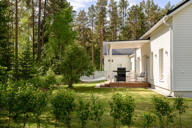 Etusivu / Pohjois-Pohjanmaa / Oulu / Vällytie 1A 1 / 1 Vällytie 1A Kaakkuri, Oulu | Omakotitalo | 4h,k,sauna 339 000 € Velaton hinta 97,0 m2 Asuinpinta-ala 106,5 m2 Kokonaispinta-ala 2022 Rakennusvuosi Nyt on vapautumassa seuraaville omistajille tyylikäs ja moderni kytketty omakotitalo viihtyisältä Kaakkurinkankaan alueelta aivan Sarasuon koulun ja päiväkodin vierestä. Yksitasoisen kodin 97 neliötä on käytetty fiksusti ja talon pohjaratkaisu onkin todella toimiva. Laatoitetun eteisen yhteydestä löytyvät peililiukuovikaapistot sekä erillinen arkieteinen. Olohuone, keittiö ja ruokailutila muodostavat viihtyisän tilan, johon on mukava kokoontua isommallakin porukalla. Suuret ikkunat tuovat mahtavasti valoa tilaan. Makuuhuoneita on kolme kappaletta. Kodista löytyy erillinen wc sekä erillinen kodinhoitohuone, jonka kautta on kulku tunnelmalliseen saunalla varusteltuun kylpyhuoneeseen.Kodin lämmitysjärjestelmänä on energiatehokas poistoilmalämpöpumppu ja kodista löytyy myös ilmalämpöpumppu. Talo sijaitsee omalla tontilla, joka yhdessä uudehkon talon sekä modernin talotekniikan kanssa tekevät tästä turvallisen ja edullisen paikan asua tulevaisuudessakin. Tontti on jaettu hallinnanjakosopimuksella B-puolen kanssa ja A-puolen osuudeksi tulee hieman reilu 600 neliötä. Kodin yhteydestä löytyy autokatos kahdelle autolle sekä varasto.Sijainti on ihanteellinen esimerkiksi lapsiperheelle. Rauhallinen Kaakkurinkankaan pientaloalue sijaitsee useiden puistojen ja leikkikenttien läheisyydessä. Melkein naapurista löytyvät Sarasuon koulu ja päiväkoti. Kaakkurin monipuoliset palvelut ovat pyöräilymatkan päässä ja esimerkiksi omalla autolla keskustaan ajaa alle vartissa. Vieressä kulkee myös pyöräilyn pääreitti työmatkapyöräilyä ajatellen.Olisiko tämä teidän tuleva kotinne? Lisätiedot ja esittelyt:Toni HaapakoskiKiinteistönvälittäjä, LKV040 569 8682toni@bo.fi Kiinnostaako tämä kohde?Ota meihin yhteyttä tai jätä viesti Toni Haapakoski kiinteistönvälittäjä LKV, KiLAT, partner 040 569 8682 toni@bo.fi Tutustu välittäjään Varaa aika kalenteristani RakennusRakennusvuosi (aloitettu)2021RakennusmateriaaliPuuKattotyyppiHarjakattoKatePeltikateAsuinpinta-ala97,0 m2 (106,5 m2)Kerrokset1Muut tilat9,5 m2Lämmitysjärjestelmän kuvausPoistoilmalämpöpumppuLämmön jakotapaVesikiertoinen lattialämmitysHuoneluku4h,k,saunaKeittiön muut varusteetLiesituuletinLiesiInduktioliesiKeittiön työtasojen materiaaliPuuKeittiön lattiamateriaaliLaminaattiKylpyhuoneen varustusWc-istuin, suihkuKylpyhuoneen lattiamateriaaliLaattaKylpyhuoneen seinämateriaaliKaakeliSaunaAsunnossa on saunaSaunan lattiamateriaaliLaattaSaunan seinämateriaaliPuuWC-tilojen kuvausLattiamateriaalit: laattaSeinämateriaalit: kaakeli, maalattuKodinhoitohuoneVarustus: pesukoneliitäntä, pesuallasLattiamateriaalit: laattaSeinämateriaalit: maalattuMakuuhuoneen kuvaus, lisätiedot ja varustusLukumäärä: 3Lattiamateriaalit: laminaattiSeinämateriaalit: maalattuOleskelutilojen kuvaus, lisätiedot ja varustusLattiamateriaalit: laminaattiSeinämateriaalit: maalattuKuntoHyväEnergiatodistusKylläEnergialuokkaB2018 KiinteistötiedotKiinteistötunnus564-27-17-4TyyppiTonttiTontin tyyppiTasamaatonttiTontin koko1 301,00 m2Tontin omistusOmaPanttikirjat400 000,00 €Lisätietoja tontistaJaettu hallinnanjakosopimuksella. A-puolen osuus 639m2.VesijohtoKunnanViemäriKunnanRakennusoikeus, e-luku0.20 AsumiskustannuksetVesi ja jätevesi45,00 €Kiinteistövero534,54 €Muut maksut / lisätietoa maksuistaSähkön kokonaiskulutus 13 946 kWh/ vuosi. Kulutus sisältää auton latauksen. Kaapeli-tv: 15.90€/ kk. HintaVelaton hinta339 000,00 €Myyntihinta339 000,00 € VapautuuSopimuksen mukaan Sinua voisi kiinnostaa Asunnon hinta-arvio ja arviokäynti Asunnon hinta-arvio ja arviokäynti Mitä hinta-arvio maksaa tai miten arviokäyntiä varten kannattaa valmistautua? Katso vastauksemme usein kysyttyihin ky… Sneak Peek® Sneak Peek® Sneak Peek® -palvelumme on askeleen edellä! Löydä alueesi uusimmat ja upeimmat asunnot jo ennen kuin ne ilmestyvät as… Asuntovahti Asuntovahti Etsimässä uutta asuntoa? Aseta itsellesi Bo-asuntovahti. Saat tiedon heti, kun unelmiesi asunto tulee myyntiin. Bo Match Bo Match Kun asuntounelmat ja unelmien asunnot kohtaavat, syntyy Bo Match. Tutustu uudenlaiseen tapaan käydä asuntokauppaa.