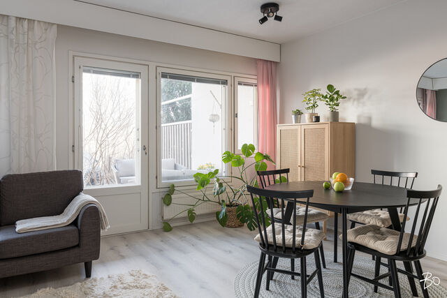 Etusivu / Pirkanmaa / Tampere / Palvaanniemenkatu 7 1 / 1 Palvaanniemenkatu 7 Palvaanniemi, Tampere | Luhtitalo | 2h, k, kph/s, ter, var 158 000 € Velaton hinta 41,5 m2 Asuinpinta-ala 157,70 €/kk Hoitovastike 1988 Rakennusvuosi VIEHÄTTÄVÄ JA HUOLELLA REMONTOITU, OMALLA PIHALLA VARUSTETTU PIKKUKOTI - HUIPPUPAIKALTA IIDESJÄRVEN RANNALTA PALVAANNIEMESTÄVapautumassa on ihastuttava ja hyväkuntoinen saunallinen kaksio rauhallisesta ja vehreästä ympäristöstä, aivan Iidesjärven rantamaisemista. Tämä ensimmäisen kerroksen koti omalla pihalla on todellinen tilaihme, jossa yhdistyvät toimivuus, tyylikkyys ja kodikkuus täydellinen valinta niin omaksi kodiksi kuin vaikka sijoitukseen.Asunnossa tehtiin vuonna 2021 laajamittainen remontti, jossa uusittiin kokonaan kaunis, vaaleanruskea Parma-keittiö laadukkailla kodinkoneilla. Lattiamateriaaliksi valittiin näyttävä ja kulutusta kestävä vinyylilankku, joka on myös miellyttävä jalalle. Samalla kertaa maalattiin kaikki seinäpinnat, uusittiin pistorasiat ja valokatkaisimet, sekä teetettiin mittatilauksena uudet kaapistot ja säilytysratkaisut.Olohuoneesta on käynti suojaisalle ja aurinkoiselle omalle pihalle, jonka laatoitettu terassi uusittiin vuonna 2022. Piha toimii kesäisin viihtyisänä oleskelutilana, jossa voit nauttia luonnonrauhasta ja auringosta lähes koko päivän ajan. Täällä on kiva viettää vapaa-aikaa ystävien kanssa grillaillen. Kylpyhuone on päivitetty tyylikkäästi: laatat on maalattu, wc-istuin, kaapistot ja suihkuseinät on uusittu. Saunassa lauteet ja seinäpaneelit on käsitelty upean harmaiksi, mikä luo modernin ja rauhoittavan tunnelman rentoutumishetkiin.TALOYHTIÖAsunto Oy Iideskuovi sijaitsee arvokkaalla yli hehtaarin kokoisella omalla tontilla (10 023 m²). Vuonna 1984 valmistunut yhtiö koostuu 31 asunnosta ja sen lämmitysmuotona toimii kaukolämpö, joka on huoleton ja energiatehokas vaihtoehto. Hoitovastike on vain 157,70 € / kk, mikä tekee asumiskustannuksista erittäin edulliset. Huoneistolle kuuluu oma varastotila aivan sisäänkäynnin vierestä. Yhtiön piha-alueelta on mahdollista hankkia oma autopaikka. POIKKEUKSELLINEN SIJAINTIPalvaanniemen alue on ainutlaatuinen se sijaitsee järven rannassa, mutta vain kivenheiton päässä keskustasta. Alueella ei ole läpikulkuliikennettä, mikä tekee siitä erittäin rauhallisen ja turvallisen asuinympäristön. Kalevan Prisma-keskus monipuolisine palveluineen sijaitsee alle kilometrin päässä, ja liikenneyhteydet keskustaan ovat sujuvat niin pyörällä, kävellen kuin julkisilla.Tervetuloa tutustumaan!Tämä lämminhenkinen pikkukoti on vapautumassa ja voi olla pian sinun.Ota yhteyttä ja sovi oma yksityisesittelysi ihastut varmasti!KOHDETTA MYY:Marko Lamu040 801 3166 I marko.lamu@bo.fi Kiinnostaako tämä kohde?Ota meihin yhteyttä tai jätä viesti Marko Lamu myyntijohtaja, kiinteistönvälittäjä LKV, KiAT 040 801 3166 marko.lamu@bo.fi Tutustu välittäjään Varaa aika kalenteristani HuoneistoOsakkeet171-272HallintamuotoAsunto-osakeyhtiöHuoneluku2h, k, kph/s, ter, varKerros/Kerroksia1/3Asuinpinta-ala41,5 m2Muut tilat0,0 m2Lisätietoja pinta-alasta Isännöitsijäntodistuksen mukainen. Yhtiöjärjestyksen mukainen.Keittiön kuvaus, lisätiedot ja varustusKeittiö uusittu vuonna 2021; tyylikkät vaaleanruskeat kaapistot, jääkaappi/pakastin, erillisuuni, induktioliesi, liesituuletin, integoitu astianpesukone, mikroaaltouuni, harmaan työtasot missä upotettu pesuallas, seinät maalattu, lattia vinyylilankkua. Pesutilojen kuvaus, lisätiedot ja varustusKylpyhuone/wc -tilaa uudistettu vuonna 2021; allaskaappi, peilikaappi, suihku, suihkuseinä, wc-istuin, bidee, paikka pyykinpesukoneelle ja kuivausrummulle, lattia ja seinät laattaa. Makuuhuoneen kuvaus, lisätiedot ja varustusSängyn päällä olevat kaapistot. Lattia: vinyylilankku Seinät: maalattu Oleskelutilojen kuvaus, lisätiedot ja varustusLattia: vinyylilankku Seinät: maalattuMuuta kauppaan kuuluvaaKiinteät valaisimet, kiinteät kaapistot, sälekaihtimetKauppaan ei kuuluIrtaimistoMuutostyöt huoneistossaAsunnossa on tehty iso pintaremontti vuonna 2021; Parma -keittiö uusittu kodinkoneineen, asunnon lattiamateriaalit vaihdettu vinyylilankkuihin, seinät maalattu, kaapistot uusittu mittatilaustyönä teetetyt, asunnon sisäiset pistorasiat ja valokatkaisimet uusittu, kylpyhuoneen kaapistot uusittu, lattia ja seinälaatat maalattu, 2022 takapihan laatoitusKuntoHyvä Kiinteistö- ja yhtiötiedotYhtiön nimiAsunto Oy IideskuoviTontin omistusOmaTontin koko10 023,00 m2Käyttöönottovuosi1988RakennusmateriaaliKiviKattotyyppiTasa/viistoKateHuopaLämmitysjärjestelmäKaukoEnergiatodistusKylläEnergialuokkaD2018Tehdyt korjaukset ja remontit2003 Kesällä lämmönsiirrin ja kevyen liikenteen väylä 2006 Luhtitalojen varastojen senien maalaus 2012 Talon E pysäköintielueen asfaltin uusiminen pohjatöineen 2012 Joitakin puuosia maalattu ja muutamia piha-aitoja uusittu 2014 Roska-aitauksien puusat autotallien kynnykset 2015 Kattopintojen uusiminen 2016 Ikkunapuitteiden kunnostus osittain 2018 Numerovalaisimien uusiminen 2021 Patteritermostaattein kunnostus/uusiminen 2021 Lämmitysjärjestelmän huuhtelu 2021 Aitojen uusimista, pihavajat maalattiin 2021 Postilaatikoiden uusiminen 2022 Pohjaviemärin huuhtelu ja kuvaus 2023 Ilmanvaihdon puhdistus ja säätöTiedossa olevat tulevat korjaukset/remontit2025 Ikkunoiden, ovien ja lukituksen uusiminen 2025 IV-koneiden uusimista, ilmastoinnin säätö 2025 Julkisivujen ja sokkelien korroosiovaurioiden korjaaminen 2025 Betonielementtien elastisten saumojen uusiminen 2025 Märkätilojen saneerauksen hankesuunnittelun käynnistäminen Postilaatikoiden uusiminen Aitojen uusimista tarvittavin osin, pihavajat 2025-2026 Aluepysäköinnin kehitys, Palvaanniemen huollolle valtuutus 2026-2027 Sadevesienohjauksien uusiminen (aluekehitys) 2026-2027 Alueen jätehuollon kehittäminen 2027- Alueen ja yhtiöiden tietoliikennejärjestelmien uusiminenK