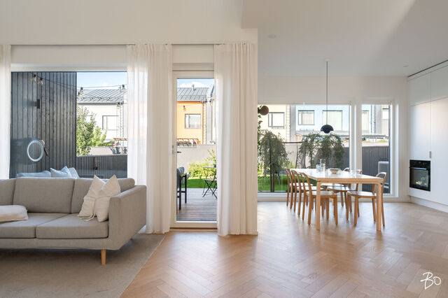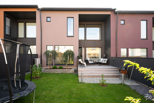Etusivu / Uusimaa / Helsinki / Säkkikatu 19 1 / 1 Säkkikatu 19 Alppikylä, Helsinki | Rivitalo | 4h+kt+khh+kph+sauna+varasto+parveke+piha 439 000 € Velaton hinta 111,0 m2 Asuinpinta-ala 118,5 m2 Kokonaispinta-ala 2022 Rakennusvuosi Laadukkaasti toteutettu rivitalokoti suositusta Alppikylästä täydellinen lapsiperheelle!Tervetuloa tutustumaan tähän upeaan ja valoisan avaraan rivitaloasuntoon, jossa yhdistyvät laadukas rakentaminen, toimiva pohjaratkaisu ja lämminhenkinen yhteisöllisyys!Kodikkaan tunnelman kruunaa olohuoneen hulppea huonekorkeus, joka tuo tilaan näyttävyyttä, ilmavuutta ja valoa. Suuret ikkunat päästävät luonnonvalon virtaamaan vapaasti, tehden oleskelutiloista erityisen viihtyisät.Kolme tilavaa makuuhuonetta tarjoavat hyvin tilaa niin perhe-elämälle kuin etätyöskentelyyn. Asunnosta löytyy hyvin säilytystilaa ja noin 7,5 m2 lämmin oma varasto sijaitsee sisäänkäynnin välittömässä läheisyydessä.Asunto sijaitsee lapsiperheiden suosimalla alueella, jossa koulu, päiväkoti ja leikkipuistot löytyvät kävelyetäisyydeltä. Lisäksi naapuruston yhteisöllinen ilmapiiri tekee asumisesta turvallista ja viihtyisää kaikenikäisille.Asuntoa esitellään yksityisesittelyin kaikille halukkaille. Ota yhteyttä, tule paikanpäälle ja ihastu! Myynti ja lisätiedot:Sakari MattilaLaillistettu kiinteistönvälittäjä, LVV, KiLAT 044 534 0037sakari.mattila@bo.fiservice also in English Kiinnostaako tämä kohde?Ota meihin yhteyttä tai jätä viesti Sakari Mattila kiinteistönvälittäjä LKV, LVV, KiLAT | partneryrittäjä, Mattila Real Estate Oy LKV 044 534 0037 sakari.mattila@bo.fi Tutustu välittäjään Varaa aika kalenteristani HuoneistoOsakkeet334-444HallintamuotoAsunto-osakeyhtiöHuoneluku4h+kt+khh+kph+sauna+varasto+parveke+pihaKerros/Kerroksia1-2/2Asuinpinta-ala111,0 m2Muut tilat7,5 m2Lisätietoja pinta-alastaVarastotila 7,5 m2 Isännöitsijäntodistuksen mukainen. Yhtiöjärjestyksen mukainen.ParvekeSisäänvedettyParvekkeen ilmansuuntaEteläKeittiön kuvaus, lisätiedot ja varustusKovapuuparketti, seinät maalattu. Varustus: Jääkaappi ja pakastin (Electrolux), liesituuletin sisäänrakennettu (Bora), astianpesukone integroitu (Bosch), kiinteät valaisimet (yläkaappien alla led-nauha, katossa led-valot 4 kpl). Liesi induktio (Bora), erillisuuni (Electrolux)Pesutilojen kuvaus, lisätiedot ja varustusLattia: laatta, seinät maali ja kaakeli, bidee- hana. Varustus: lattialämmitys (sähköinen), wc-istuin, suihku (2kpl sadettajasuihkuja). peili, kiinteät valaisimet (ledvalot Katossa), kylpyhuonekaapisto (allaskaappi ja allas), pyyhetanko- ja koukut.WC-tilojen kuvausLattia: laatta, seinät: maali, wc:n säiliö laatta, peili, allaskaappi ja allas, kaksi pyyhekoukkua, bidee-suihku Lukumäärä: 1 Lukumäärä: 1KodinhoitohuoneLattia: laatta, seinät: maali, siivouskaappi, pyykkikaappi, kaksi säilytyskaappia, pesukoneliitäntä, pöytätaso.Saunan kuvaus, lisätiedot ja varustusLattia: laatta, seinät: lämpökäsitelty haapapuu. SähkökiuasMakuuhuoneen kuvaus, lisätiedot ja varustusLattia: kovapuuparketti, seinät maalattu Lukumäärä: 3Oleskelutilojen kuvaus, lisätiedot ja varustusLattia: kovapuuparketti, seinät maalattu, korkea huonekorkeusMuut säilytystilatUlkovarastoKuntoHyvä Kiinteistö- ja yhtiötiedotYhtiön nimiAs Oy Helsingin Säkkikatu 19 Tontin omistusVuokrattuTontin koko2 824,00 m2Tontin vuokraajaHelsingin kaupunkiTontin vuokrasopimus päättyy31.12.2075Tontin vuokra20 700,74 €Käyttöönottovuosi2022RakennusmateriaaliPuuKattotyyppiHarjakattoKatePeltiLämmitysjärjestelmäKauko, muuEnergiatodistusKylläLisätietoja energiatodistuksestaViimeinen voimassaolopäivä: 16.3.2032EnergialuokkaB2018Tehdyt korjaukset ja remontit2025 Päivitetty pyörävaraston ulkoseinävalaisimet 2kpl malleihin, jotka eivät häikäise häiritsevästi.Huoneisto D: WC-tilassa injektoidaan 2 kpl kopolaattoja. Työ tilataan Eskon Oy:ltä. Vieraspaikkojen lämmitystolppien sähkösyöttökaapeleiden parempi mekaaninen suojaus teräsputkilla. Vaahteran istutus Julkisivusta korjattu lumiauran aiheuttama kolo Sadevesikaivon puhdistus Piha- ja viheralueet: -ruohonleikkurin bensiini, ajoeste taloyhtiön pihaan Ulkokorjaukset: - talotikkaiden suojapelti, pihalaatoitus, talotikkaat, seinätikkaiden kiipeilyeste Ikkunoiden ja ovien korjaukset: - As B lukkorungon vaihto, oven korjaus ja ABLOY AESY palvelun vuosimaksu LVI-korjaukset: - IV- koneiden suodattimet ja suodattimien vaihto, ilmalämpöpumppujen suodattimien puhdistusAutokatokset8Sähköpistokepaikkoja4Lunastusoikeus osakkaillaKylläMuut rajoitukset16 § Lunastusoikeus autopaikkaosake: Jos autopaikkaosake siirtyy yhtiön ulkopuoliselle uudelle omistajalle, on siirronsaajan ilmoitettava viipymättä siitä hallitukselle ja osakkeenomistajille on oikeus lunastaa osake. Lunastusoikeus koskee kaikenlaisia saantoja lukuun ottamatta lahjaa, testamenttia, perintöä tai avio-oikeutta. Jos useammat haluavat käyttää lunastusoikeuttaan, on lunastukseen oikeutettu valittava arvalla.IsännöitsijäTalotili Oy Lumijoentie 1, 90400 Oulu info@talotilioy.fi p. 0207488359KiinteistönhoitoAsukkaatTaloyhtiössä muutaIlmanvaihto: huoneistokohtainen LTO, koneellinen tulo- ja poistoilmanvaihto. Muita tietojaLisätietoa kaavoituksestaHelsingin kaupunki, https://kartta.hel.fi/VapautuuSopimuksen mukaan, kuitenkin viimeistään kaksi kuukautta kaupanteosta. AsumiskustannuksetHoitovastike610,50 €/kk (5,50 €/m2)Yhtiövastike yhteensä610,50 €Vesi25,00 €/hlö/kkAutopaikka17,50 €/kkMuut maksut / lisätietoa maksuistaYhtiössä maksetaan vesiennakkoa Hallitukselle on myönnetty valtuudet periä tarvittaessa enintään kahden (2) kuukauden ylimääräinen hoitovastike tarpeen vaatiessa. Käyttösähkö kulutuksen/oman sähkösopimuksen mukaisesti. Kotivakuutusmaksut omien sopimusehtojen mukaisesti. Varainsiirtovero 1,5 % velattomasta kauppahinnasta. Myyjällä on kaupan kohteeseen kohdistuva sähköinen omistajamerkintä