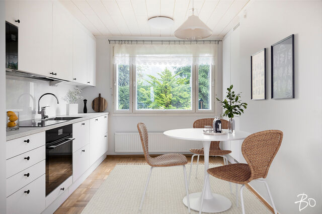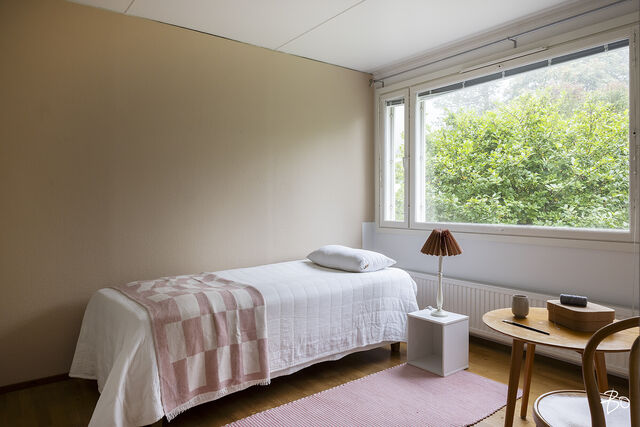 Etusivu / Uusimaa / Espoo / Viherlaaksonranta 18 1 / 1 Viherlaaksonranta 18 Viherlaakso, Espoo | Rivitalo | 4-5h, k, wc, ph/wc, s (yj 5h+k) 245 000 € Velaton hinta 109,0 m2 Asuinpinta-ala 567,30 €/kk Hoitovastike 1974 Rakennusvuosi Seuraava esittely: 19.10.2025 klo 14.00-14.30 PUTKIREMONTOITU RIVITALON PÄÄTYHUONEISTOTässä rivitalon päätyhuoneistossa on tilaa ja tunnelmaa. Tämä kolmen makuuhuoneen koti muuntautuu vaivattomasti myös alkuperäiseen muotoonsa neljän makuuhuoneen kodiksi. Valtava suojaisa piha on ihana ja kaikki löytyy yhdestä tasosta. Asunnossa on juuri valmistunut putkiremontti ja taloyhtiössä se on yleisiä tiloja vailla valmis. Lainaosuudet jyvitetään arviolta tammikuussa ja arvioitu kustannus tälle huoneistolle on noin 135 000 euroa. Kustannuksiin on laskettu mukaan myös muita tänä ja ensi vuonna tehtäviä kunnostuksia. Putkiremontin yhteydessä uusitttiin märkätilat ja samalla korjattiin rivitalojen valesokkelit kengittämällä. Tässä kodissa keittiö sai myös täysin uuden ilmeen. Ikkuna- ja julkisivuremontti tehtiin vuonna 2000 ja salaojat tehtiin 2010 -luvulla. Katto on vielä uusimatta ja se on alustavasti merkitty vuoteen 2029. 1970-luvun arkkitehtuurin tyypilliset ominaisuudet ja yksityiskohdat kuten kattoikkuna, kaunis takka sekä suuret ikkunat löytyvät myös täältä. Pohja on käytännöllinen sijoittaen makuuhuoneet asunnon eri päihin ja makuuhuoneista löytyy myös hyvin säilytystilaa sekä yksi vaatehuone. Sama perhe on viihtynyt tässä kodissa jo neljä vuosikymmentä eikä ihme sillä rauhallinen Viherlaakson sijainti on idyllinen ympäristö lapsiperheille. Läheiset puisto- ja ulkoilualueet kutsuvat liikkumaan ja nauttimaan luonnosta vuodenajasta riippumatta, ja Lippajärven uimarantakin on vain noin 500 metrin kävelymatkan päässä. Alue on tunnettu idyllisyydestään ja rauhallisuudestaan, ja kaikki arjen palvelut ovat helposti saavutettavissa. Perheiden arkea tukevat myös lähellä sijaitsevat koulut ja päiväkodit: mm. Viherlaakson ala-aste, yläaste ja lukio löytyy viiden minuutin kävelymatkan päästä ja alueelta löytyy useita päiväkoteja.Tämä vuonna 1974 valmistunut taloyhtiö koostuu kahdesta kerrostalosta ja kymmenestä samankokoisesta rivitalohuoneistosta ja näin asumiskustannukset pysyvät edullisina ja käytössäsi on jopa uima-allasosasto sekä huoneistokohtainen kellarivarasto. Hoitovastike on maltillinen 5,20 euroa neliöltä ja tontti on oma. Huoneistoon kuuluu autopaikka ja taloyhtiö omistaa myös autotalleja, joita jaetaan jonotussysteemillä. Sähkölatauspaikkojakin löytyy myös. Lisätietoja varten, ole yhteydessä! ________________________Lisätietoja ja esittelyt:Silvia Alegrekiinteistönvälittäjä LKV, KiAT, partnersisustussuunnittelija044 074 2915silvia@bo.fi Kiinnostaako tämä kohde?Ota meihin yhteyttä tai jätä viesti Silvia Alegre kiinteistönvälittäjä LKV, KiAT, sisustussuunnittelija, partner 044 074 2915 silvia@bo.fi Tutustu välittäjään Varaa aika kalenteristani HuoneistoOsakkeet6293-6510HallintamuotoAsunto-osakeyhtiöHuoneluku4-5h, k, wc, ph/wc, s (yj 5h+k)Kerros/Kerroksia1/1Asuinpinta-ala109,0 m2Muut tilat0,0 m2Lisätietoja pinta-alasta Isännöitsijäntodistuksen mukainen. Yhtiöjärjestyksen mukainen.Keittiön kuvaus, lisätiedot ja varustusKeittiö uusittu 2025 putkiremontin yhteydessä. Kaapistot, induktioliesi, jääkappi/pakastin, astianpesukone, liesittuletin, integroitu mikro. Pesutilojen kuvaus, lisätiedot ja varustusWc-istuin, suihku, suihkuseinät, allaskaappi, peilikaappi, pesukoneliitäntä. Tilavassa kylpyhuoneessa tilaa vielä esim. kodinhoitonurkkaukselle, kaapistoille ja tasolle. WC-tilojen kuvausWc-istuin, peilikaappi ja allaskaappi.Saunan kuvaus, lisätiedot ja varustusSauna remontoitu vuonna 2025.SeinämateriaalitMaalia, lasikuitutapettia, kylpyhuoneessa kaakeliaLattiamateriaalitParketti, märkätiloissa laatta.KuntoTyydyttäväLisätietoa kunnostaPinnat vaativat uusimista, muuten asunto on hyvässä kunnossa ja siisti. Kylpyhuone, sauna, wc sekä keittiö on uusittu kokonaan putkiremontin yhteydessä vuonna 2025. TakkatiedotTakka Kiinteistö- ja yhtiötiedotYhtiön nimiAsunto Oy Humisevan HoviTontin omistusOmaTontin koko13 165,00 m2Käyttöönottovuosi1974RakennusmateriaaliTiili, betoniKattotyyppiTasakattoKateHuopaLämmitysjärjestelmäKaukoEnergiatodistusKylläLisätietoja energiatodistuksestaVoimassa 30.07.2033 saakkaEnergialuokkaD2018Tehdyt korjaukset ja remontit2000 Julkisivu- ja ikkunaremontti 2000 Maanrakennustyöt 2002 Lukituksen Exec-sarjoitus 2002 Kaapeli-TV 2003 Humisevanportti 4 löylyhuoneen uusiminen 2004 Putkiston kuntokartoitus 2004 Kylpyhuoneiden kuntotarkastus 2005 C-talon salaojitus 2006 Puuosien huoltomaalaus 2007 Ulkoisten teräsrakenteiden huoltomaalaus 2011 D-talon salaojat 2011 Huonokuntoisten puiden kaato 2011 Lämpöjohtoverkoston patteriventtiilien, sulkutulppien ja linjaventtiilien uusiminen 2012 Kiinteistön puuosien huoltomaalaus 2012 Rivitalojen pysäköintipaikkojen levennys 2013 Lukituksen Sento-sarjoitus 2013 Leikkipaikkojen kunnostus 2013 C-talon salaojituksen uusiminen 2013 Uima-allassaunan suihkutilan korjaus 2013 Humisevanportti 4 päävesisulkuventtiilin uusiminen 2013 Vesikattojen kuntotarkastus 2014 Putkiston kuntotutkimus 2014 3-talon varastojen sis. käyntien laatoitusten maapohjien uusiminen 2015 Ilmanvaihtokanavien ja hormien nuohous 2015 Rivitalojen tiilielementtiseinien kunnostuksen suunnittelu 2016 Viherlaaksonrannan aidan uusiminen 2016 Rivitalojen tiilielementtiseinien kunnostustyö 2017 Kiinteistön kuntoarvio 2017 Pesuhuoneiden kuntokartoitus 2018 Rivitalojen paneloinnin uusiminen 2018 Vesikattojen paikkakorjaukset 2018 Putkiston kuntotutkimus 2019 LVIS hankeohjelma 2020 LVIS toteutus suunnittelu 2021 Kiinteistövesiliittymän korjaus 2021 LVIS hankkeen rakennuslupa 2022 Väestönsuojan varusteiden päivittäminen & Tiiveyskokeet 2023 3- ja 4-talojen IV-Koneet uusittu (Qviba Oy) 2023 En