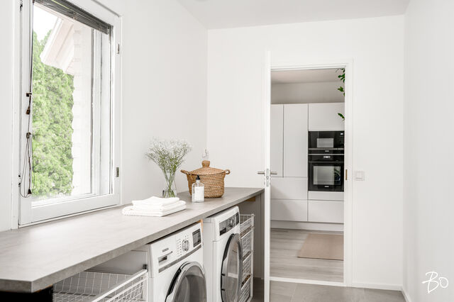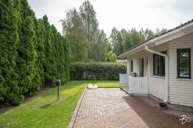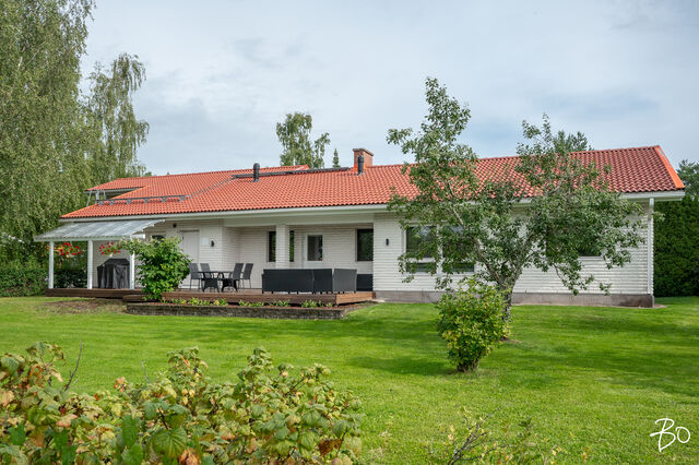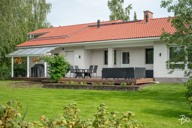 Etusivu / Varsinais-Suomi / Rusko / Metsäsiantie 1 1 / 1 Metsäsiantie 1 Paasniittu, Rusko | Omakotitalo | 6-7h+k+s+ph+wc+khh+at 389 000 € Velaton hinta 173,0 m2 Asuinpinta-ala 230,0 m2 Kokonaispinta-ala 1991 Rakennusvuosi Muuttovalmis omakotitalo Ruskolla.Tässä ihastuttavassa omakotitalossa on tilaa viihtyä ja se sopiikin täydellisesti perheille, jotka haluavat luksusta arkeen ja arvostavat arjen helppoutta. Harrastustilaa ja huoneita on runsaasti vastaamaan isommankin perheen tarpeisiin. Kaikki tilat ovat kätevästi yhdessä tasossa.Ruskon Paasniitun alue on rauhallista ja lapsiperheiden suosimaa asuinaluetta. Koulut, päiväkoti ja kaikki Ruskon keskustan palvelut ovat vain vähän yli kilometrin päässä.Kodikkuus ja valoisuus ovat tämän kauniin kodin valttikortteja, jotka voi aistia jo ensiaskeleilla. Ilmavat avarat tilat ja arjessa helpottava käytännöllisyys on huomioitu täydellisesti tämän kodin pohjaratkaisussa ja materiaaleissa. Upea vaalea keittiö ja kylpytilat ovat uusittu vuonna 2024 ja muitakin pintoja on läpikäyty viime vuosien aikana. Olohuoneen katseenvangitsijana toimii jykevä varaava takka. Makuuhuoneita löytyy 5 ja lisäksi jää tilaa vaikka kuntoilulle. Talon lämmitysmuotona on ekologinen maalämpö.Suurella aurinkoisella takapihalla on terassi, jossa nauttia kesäpäivistä ja nurmikko kutsuu leikkiin niin lapset kuin lemmikitkin. Lämpimästi tervetuloa tutustumaan ja ihastumaan tähän muuttovalmiiseen kotiin hyvällä sijainnilla! Lisätiedot ja esittelytMikko AholaKiinteistönvälittäjä, LKV, LVV, PartnerBo LKV Oy040 553 2121 | mikko.ahola@bo.fiAutan mielelläni myös oman asuntosi myynnissä Kiinnostaako tämä kohde?Ota meihin yhteyttä tai jätä viesti Mikko Ahola kiinteistönvälittäjä LKV, LVV, partner 040 553 2121 mikko.ahola@bo.fi Tutustu välittäjään Varaa aika kalenteristani RakennusKäyttöönottovuosi1992RakennusmateriaaliPuu, tiiliKattotyyppiHarjakattoKateTiiliAsuinpinta-ala173,0 m2 (230,0 m2)Lisätietoja pinta-alastaPinta-alaa ei ole tarkistusmitattu. Alkuperäisten rakennuslupa-asiakirjojen mukaan huoneistoala 117,5m2 ja kerrosala 169 m2. Laajennus 62 m2. Rakennuksen perustiedot dokumentin mukaan asuintilojen pinta-ala on yhteensä 173 m2.Kerrokset1Muut tilat57,0 m2LämmitysVesikiertoinen patterilämmitys, vesikiertoinen lattialämmitys. Maalämpöön siirrytty 2011 Ilmanvaihtokoneen puhaltimet vaihdettu ja kanavat nuohottu 2016Lämmitysjärjestelmän kuvausMaalämpöHuoneluku6-7h+k+s+ph+wc+khh+atKeittiön kuvaus, lisätiedot ja varustusKeittiö uusittu 2024. Charmia keittiökalusteet aamiaiskaapilla. Integroidut astianpesukone, mikro, uuni sekä viinikaappi. Side by side jääkaappipakastin. Siemens induktiotaso liesituulettimella.Keittiön työtasojen materiaaliLaminaattiKeittiön lattiamateriaaliVinyyliPesutilojen kuvaus, lisätiedot ja varustusKylpyhuone uusittu 2024. Tuplasuihkut, lasiseinät (Hietakari). Kylpyhuoneen lattiamateriaaliLaattaKylpyhuoneen seinämateriaaliKaakeliSaunaAsunnossa on saunaSaunan kuvaus, lisätiedot ja varustusSauna uusittu 2024. Lauteet Apassi.Saunan lattiamateriaaliLaattaSaunan seinämateriaaliPuuWC-tilojen kuvausVarustus: suihkuLukumäärä: 2Lattiamateriaalit: laattaSeinämateriaalit: kaakeliKodinhoitohuoneVarustus: pesukone, kuivausrumpu, silityspöytä/taso, pöytätasoLattiamateriaalit: laattaSeinämateriaalit: maalattuMakuuhuoneen kuvaus, lisätiedot ja varustusLukumäärä: 5Lattiamateriaalit: vinyyliSeinämateriaalit: maalattuOleskelutilojen kuvaus, lisätiedot ja varustusLattiamateriaalit: vinyyliSeinämateriaalit: maalattuTakkatiedotTakkaKuntoHyväEnergiatodistusKylläEnergialuokkaC2018 KiinteistötiedotKiinteistötunnus704-402-1-200TyyppiTilaTontin tyyppiTasamaatonttiTontin koko1 410,00 m2Tontin omistusOmaLisätietoja tontistaTie perilleVesijohtoKunnanViemäriKunnanRakennusoikeus281,0 m2 AsumiskustannuksetKiinteistövero587,00 €Muut maksut / lisätietoa maksuistaSähkö ja vesi kulutuksen mukaan. Kulutus ollut 11300 kWh. vuonna 2024. Jätemaksu 250 € per vuosi. Varainsiirtovero 3% kauppahinnasta. Esitetyt asumiskustannukset perustuvat nykykäyttöön ja voivat siten olla pienempiä tai suurempia riippuen asukasmäärästä, asumistottumuksista sekä palveluntarjoajasta. HintaVelaton hinta389 000,00 €Myyntihinta389 000,00 € Sinua voisi kiinnostaa Asunnon hinta-arvio ja arviokäynti Asunnon hinta-arvio ja arviokäynti Mitä hinta-arvio maksaa tai miten arviokäyntiä varten kannattaa valmistautua? Katso vastauksemme usein kysyttyihin ky… Sneak Peek® Sneak Peek® Sneak Peek® -palvelumme on askeleen edellä! Löydä alueesi uusimmat ja upeimmat asunnot jo ennen kuin ne ilmestyvät as… Asuntovahti Asuntovahti Etsimässä uutta asuntoa? Aseta itsellesi Bo-asuntovahti. Saat tiedon heti, kun unelmiesi asunto tulee myyntiin. Bo Match Bo Match Kun asuntounelmat ja unelmien asunnot kohtaavat, syntyy Bo Match. Tutustu uudenlaiseen tapaan käydä asuntokauppaa.