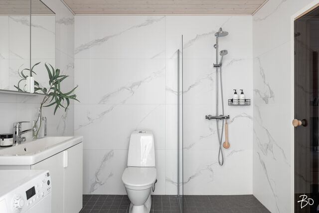 Etusivu / Päijät-Häme / Hollola / Esa-äijän tie 2 A 1 / 1 Esa-äijän tie 2 A Kartano, Hollola | Paritalo | Oh-k, 3 mh, s, kph, erillinen wc, lasitettu terassi/kattamatonta terassia, lämmin varasto ja kylmä pihavarasto 238 000 € Velaton hinta 83,5 m2 Asuinpinta-ala 98,5 m2 Kokonaispinta-ala 2020 Rakennusvuosi Todella kiva ja nuorekkaan raikas paritalon puolikas nyt myynnissä Hollolan Kartanon alueella.Mikäli olette etsimässä avaraa ja modernia kotia kolmella makuuhuoneella, niin tässä olisi mainio vaihtoehto juuri teille.Tähän kotiin on helppo ihastua, sillä tyylikäs skandinaavinen sävymaailma jatkuu läpi koko talon. Pohjaratkaisu on modernin avara ja toimii arjessa hyvin. Avokeittiö yhdistyy suoraan tilavaan olohuoneeseen. Olohuoneesta on käynti suojaisalle terassille, jossa on noin 10 m2 kokoinen lasitettu terassi ja lasitetun terassin jatkeena on lasittamaton terassialue. Asunnossa on kolme mukavan kokoista makuuhuonetta ja siksi tämä koti sopii monenlaisen perheen tarpeisiin kuten esimerkiksi lapsiperheelle tai pariskunnalle joka tekee etätöitä tai varttuneemmalle pariskunnalle, joka haluaa tilaa ympärilleen. Vaaleat pinnat yhdistettynä tammiparkettiin tekevät tästä kodista ajattoman tyylikkään.Kylpyhuoneessa on isot marmorikuvioidut seinälaatat, jotka luovat tilaan tyylikkään tunnelman. Saunassa on vaaleat lämpöisen sävyiset paneloinnit ja lauteet. Kyllä kelpaa tässä saunassa löylytellä. Kylpyhuoneen lisäksi huoneistossa on tilava erillinen wc, joka on nykyisin lähes kaikkien asuntoa etsivien ehdottomia toiveita.Pihapiirissä on nurmikkoaluetta ja ajopiha on asfaltoitu. Asunnon sisäänkäynnin vieressä on lämmin varastotila ja edessä on autokatospaikka. Lisäksi pihassa on muutaman neliön kokoinen kylmä piha-/pyörävarasto. Tontti on tasamaata ja rajoittuu yhdeltä sivulta viheralueeseen. Monipuoliset palvelut ovat lähellä. Koulu ja päiväkoti ovat turvallisen kävely-/pyöräilymatkan noin 1,2 km päässä. Hollolan kuntakeskuksessa on lähes kaikki tarvittavat lähipalvelut, kuten Hollolan Prisma ja pieniä erikoisliikkeitä, kukkakauppa, kampaamo, Sotekeskus, kuntosali ym. palveluita. Esa-Äijäntie on Kartanon alueella Kuntotien mutkassa, jossa kaikki talot ovat vain muutaman vuoden vanhoja. Tervetuloa tutustumaan tähän kohteeseen yksityisesittelynä. Soita tai laita viestiä Marjo Hurskainen 040-9322892 ja sovitaan esittelystä. Kiinnostaako tämä kohde?Ota meihin yhteyttä tai jätä viesti Marjo Hurskainen kiinteistönvälittäjä LKV 040 932 2892 marjo@bo.fi Tutustu välittäjään Varaa aika kalenteristani RakennusRakennusvuosi (aloitettu)2019Käyttöönottovuosi2021RakennusmateriaaliPuuRakennusmateriaalien kuvausPuurunko/puuverhousKattotyyppiHarjakattoKateTiilikateKaton kuntoHyväAsuinpinta-ala83,5 m2 (98,5 m2)Lisätietoja pinta-alastaPäärakennuksen yhteydessä oleva lämmin varastotila on noin 3,5 m2. Pihassa on erillinen kylmä pihavarasto/pyörävarasto noin 5 m2 rv. 2021. Takapihan terassin lasitettu osa on noin 10 m2, lasitettu 2022 (toimenpidelupa on haettu).Muut tilat15,0 m2LämmitysVesikiertoinen lattialämmitys. HyväLämmitysjärjestelmän kuvausKaukoHuonelukuOh-k, 3 mh, s, kph, erillinen wc, lasitettu terassi/kattamatonta terassia, lämmin varasto ja kylmä pihavarastoKeittiön kuvaus, lisätiedot ja varustusKeittiön katossa on valkoiset sisustuspaneelit. Lattiassa on vaalea tammiparketti. Seinät on maalattu valkoiseksi. Valkoiset korkeakiiltoiset keittiökaapistot. Vaaleat marmorikuvioidut tasot. Välitilassa on harmahtavat välitilalaatat. Integroitu korkea jääkaappi-pakastin. Integroitu rosterinen mikroaaltouuni. Induktioliesi ja rosterinen erillisuuni. Rosterinen liesituuletin. Integroitu astianpesukone. Vaaleanharmaa komposiittiallas.Pesutilojen kuvaus, lisätiedot ja varustusVaaleat isot marmorikuvioidut 60 x 60 seinälaatat, tummanharmaat 10 x 10 lattialaatat. Suihkuseinä, suihku, valkoiset peili- ja allaskaappi. Pesukoneliitäntä.SaunaAsunnossa on saunaSaunan kuvaus, lisätiedot ja varustusSauna on kokonaan paneloitu. Lauteet, Magnum sähkökiuas.WC-tilojen kuvausErillisen wc:n seinät on laatoitettu vaaleilla marmorikuvioiduilla 60 x 60 seinälaatoilla, isot tummanharmaat 60 x 60 lattialaatat. Peilikaappi - ja allaskaappi.Lukumäärä: 1Makuuhuoneen kuvaus, lisätiedot ja varustusMakuuhuoneiden katoissa on valkoiset sisutuspaneelit. Seinät on maalattu valkoiseksi, paitsi yhdessä makuuhuoneista seinät on maalattu valkoiseksi/vaaleanpunaiseksi. Lattioissa on vaaleat tammiparketit.Lukumäärä: 3Oleskelutilojen kuvaus, lisätiedot ja varustusOlohuoneen katossa on valkoiset sisustuspaneelit. Seinät on maalattu valkoiseksi. Lattiassa on vaalea tammiparketti.Tehdyt korjauksetKylpyhuoneen sekä saunan lattioihin on teetetty 20.9.2024 nanopinnoitus. Samalla osa kylpyhuoneen lattialaattojen saumoista on uusittu.Muuta kauppaan kuuluvaa2:dessa makuuhuoneista on peililiukuovikaapistot, jotka jäävät. Päämakuuhuoneessa on yksi korkea kaappi, joka myös jää huoneeseen. Eteisen peililiukuovikaapisto jää.KuntoHyväEnergiatodistusKylläEnergialuokkaB2018Lisätietoja energiatodistuksestaEnergiatodistus voimassa 9.4.2029 KiinteistötiedotKiinteistötunnus98-435-18-143-L1TyyppiTilaTontin tyyppiTasamaatonttiTontin koko1 275,00 m2Tontin omistusVuokrattuTontin vuokrasopimus päättyy30.04.2064Tontin vuokra1 186,00 €Tontin vuokraajaHollolan kuntaPanttikirjat250 000,00 €Lisätietoja tontistaKoko tilan pinta-ala on 1275 m2. A ja B huoneistojen hallitsemat alueet on merkitty hallinnanjakosopimuksen liitteenä olevaan karttaan oranssilla värillä. A-puolen tontin vuokra on vuonna 2025 1.186 €. Tontin vuokra laskutetaan 1 x vuodessa ja eräpäivä on 30.6. ko. vuotta. Ko. tontti on mahdollista lunastaa A:n ja B:n yhdessä. Lunastushinta alueellisella vyöhykehinnalla on tällä hetkellä 31e/m², koko tontin pinta-alan ollessa 1275m². Lunastushinta on 39.525 € + lohkomiskustannukset. Tie peri