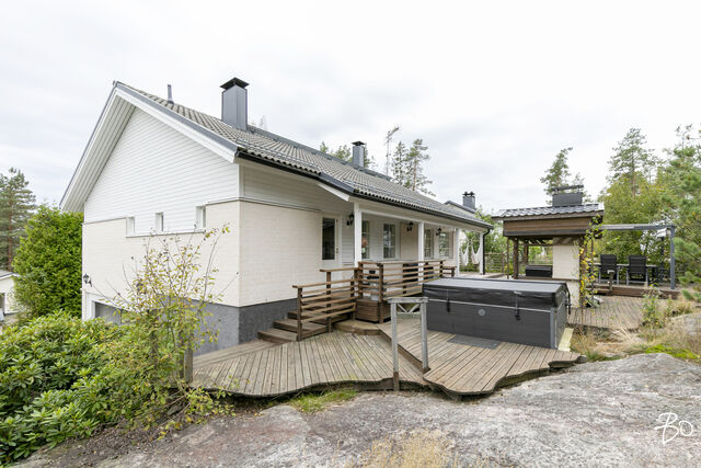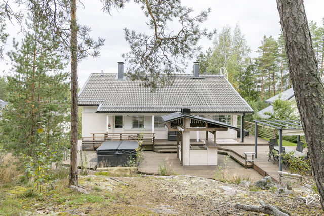 Etusivu / Uusimaa / Porvoo / Kaivantokuja 3 1 / 1 Kaivantokuja 3 Munkkikallio, Porvoo | Omakotitalo | 4mh, oh, k, khh, kph x2, wc 349 000 € Velaton hinta 142,5 m2 Asuinpinta-ala Etsitkö kotia, jossa on tilaa koko perheelle, suurimmat remontit valmiiksi tehtynä ja piha, jossa viihtyy ympäri vuoden? Tämä vuonna 2002 valmistunut omakotitalo sijaitsee rauhallisella Munkkikallion alueella, Porvoon länsipuolella, josta on myös hyvät kulkuyhteydet pääkaupunkiseudulle.Kodin pohjaratkaisu palvelee monenlaisia elämäntilanteita.Alakerrassa on yksi makuuhuone, joka sopii mainiosti esimerkiksi vieras- tai työhuoneeksi sekäkylpyhuone ja käytännöllinen kodinhoitotila.Yläkerta on kaksi makuuhuonetta, takkahuone, joka toimii tunnelmallisena oleskelutilana tai tarvittaessa neljäntenä makuuhuoneena, olohuone, moderni keittiö, jossa on hyvin kaappi- ja työtilaa, erillinen wc, kylpyhuone ja oma sauna, joka kruunaa arjen rentoutumishetket.Aurinkoinen piha on tämän kodin sydän. Suuri terassi kesäkeittiöineen tarjoaa täydelliset puitteet perheen ja ystävien kanssa viihtymiseen. Takapihan luonnonkaunis kallio tuo pihaan persoonallista ilmettä ja luo yksityisyyttä. Pihalla on hyvin tilaa lasten leikeille ja puutarhanhoidolle.Talo on saanut vuosien varrella kattavasti uudistuksia:molemmat kylpyhuoneet on remontoitu, keittiö on päivitetty moderniksi ja toimivaksi sekä pintamateriaaleja on uusittu.Arjen sujuvuutta tukevat runsaat varastotilat, jotka tarjoavat säilytysratkaisut niin harrastusvälineille kuin kausitavaroillekin. Autot parkkeeraat kätevästi suoraan talon alle, joten liikkuminen on helppoa säällä kuin säällä.Porvoon keskustaan ajat vain muutamassa minuutissa, ja pääkaupunkiseudulle kulkeminen on sujuvaa niin autolla kuin julkisilla.Tämä koti on täydellinen valinta sinulle, joka arvostat tilaa, toimivuutta, hyviä säilytystiloja ja valmiiksi tehtyjä remontteja. Tule ihastumaan paikan päälle! Kiinnostaako tämä kohde?Ota meihin yhteyttä tai jätä viesti Kristian Lindfors kiinteistönvälittäjä LKV, partner 050 326 9090 kristian@bo.fi Tutustu välittäjään Varaa aika kalenteristani RakennusRakennusvuosi (aloitettu)2001Käyttöönottovuosi2002RakennusmateriaaliPuu, tiili, betoniKattotyyppiHarjakattoKateTiilikateAsuinpinta-ala142,5 m2 (142,5 m2)Lisätietoja pinta-alastaKerrosala 171m2. Pinta-alatiedot on saatu rakennuslupa- piirustuksista eikä niitä ole tarkistusmitattu.Kerrokset2Muut tilat0,0 m2Lämmitysjärjestelmän kuvausPuu, sähkö, ilmalämpöpumppuLämmön jakotapaSähköinen lattialämmitys, uuni/takka, ilmalämpöpumppuHuoneluku4mh, oh, k, khh, kph x2, wcKeittiön kuvaus, lisätiedot ja varustusRemontoitu 2022Keittiön muut varusteetAstianpesukone, kiinteät valaisimet, liesituuletin / hormiLiesiInduktioliesi, erillisuuniKeittiön työtasojen materiaaliLaminaattiKeittiön lattiamateriaaliLaattaKeittiön seinien materiaaliMaalattu, tapettiPesutilojen kuvaus, lisätiedot ja varustusYläkerrassa ja alakerrassa. Kodinhoitotila alakerran kph:n yhteydessä.Kylpyhuoneen varustusPesukoneliitäntä, lattialämmitys, wc-istuin, suihku, peilikaappi, kiinteät valaisimetKylpyhuoneen lattiamateriaaliLaattaKylpyhuoneen seinämateriaaliKaakeliSaunaAsunnossa on saunaSaunan kuvaus, lisätiedot ja varustusVaraus puukiukaalleSaunan lattiamateriaaliLaattaSaunan seinämateriaaliPuuWC-tilojen kuvausVarustus: lattialämmitys, peilikaappiLukumäärä: 3Lattiamateriaalit: laattaSeinämateriaalit: maalattu, tapettiKodinhoitohuoneAlakerran kph:n yhteydessäMakuuhuoneen kuvaus, lisätiedot ja varustusLukumäärä: 4Lattiamateriaalit: laminaattiSeinämateriaalit: maalattu, tapettiOleskelutilojen kuvaus, lisätiedot ja varustusLattiamateriaalit: laattaSeinämateriaalit: maalattu, tapettiTulisija2 takkaaTakkatiedotTakkaMuut säilytystilatUlkovarastoTehdyt korjauksetErillinen wc 2018, kodinhoitohuone ja alakerran kph 2019, yläkerran kph ja sauna 2020, keittiö ja yläkerran pinnat 2022, alakerran eteisen lattia 2024, talon huoltomaalaus 2024. Autokatoksen päätyyn on asennettu nosto-ovi jolle ei ole haettu lupaa. Kauppaan ei kuuluUlkoporeamme myydään erikseen.KuntoHyvä KiinteistötiedotKiinteistötunnus638-409-1-593-L1TyyppiTilaTontin tyyppiRinnetonttiTontin koko910,00 m2Tontin omistusVuokrattuTontin vuokrasopimus päättyy28.02.2051Tontin vuokra1 173,67 €Tontin vuokraajaPorvoon KaupunkiPanttikirjat425 000,00 €Lisätietoja tontistaTie perilleVesijohtoKunnanViemäriKunnanRakennusoikeus, e-luku0.20Lisätietoja rakennusoikeudestaPorvoon rakennusvalvonta AsumiskustannuksetKiinteistövero360,00 €Muut maksut / lisätietoa maksuistaKokonais sähkönkulutus ollut vuonna 2024 n. 17000kWh (ei sisällä poreammeen kulutusta). Vesi ja jätemaksut kulutuksen mukaan. Varainsiirtovero 3% HintaVelaton hinta349 000,00 €Myyntihinta349 000,00 € VapautuuSopimuksen mukaanMaksuehtoKäteinen. Sinua voisi kiinnostaa Asunnon hinta-arvio ja arviokäynti Asunnon hinta-arvio ja arviokäynti Mitä hinta-arvio maksaa tai miten arviokäyntiä varten kannattaa valmistautua? Katso vastauksemme usein kysyttyihin ky… Sneak Peek® Sneak Peek® Sneak Peek® -palvelumme on askeleen edellä! Löydä alueesi uusimmat ja upeimmat asunnot jo ennen kuin ne ilmestyvät as… Asuntovahti Asuntovahti Etsimässä uutta asuntoa? Aseta itsellesi Bo-asuntovahti. Saat tiedon heti, kun unelmiesi asunto tulee myyntiin. Bo Match Bo Match Kun asuntounelmat ja unelmien asunnot kohtaavat, syntyy Bo Match. Tutustu uudenlaiseen tapaan käydä asuntokauppaa.