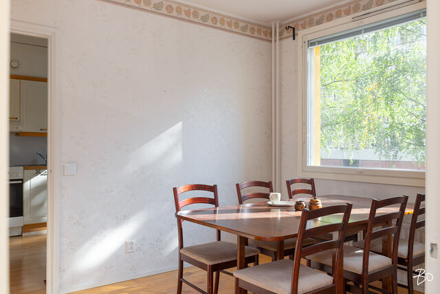 Etusivu / Satakunta / Pori / Katariinankatu 22 1 / 1 Katariinankatu 22 Keskusta, Pori | Kerrostalo | Oh, k, rt, 3mh, kph/wc, wc, vh 155 000 € Velaton hinta 98,5 m2 Asuinpinta-ala 373,90 €/kk Hoitovastike 1970 Rakennusvuosi Tässä on ihanteellinen koti sinulle, joka kaipaat kerrostaloasumisen helppoutta mutta et ole valmis tinkimään neliöistä! Kolme tilavaa makuuhuonetta tarjoavat mukavat puitteet perheen jokaiselle jäsenelle tai vierashuoneelle ja työtilalle - mitä vain tarvitset. Valoisa päätyhuoneisto, jossa ikkunat kolmeen suuntaan. Keittiön vieressä ruokailutila, toki tämäkin tila on muunneltavissa perheesi käyttöön sopivaksi. Tilava olohuone mahdollistaa kalustamisen moneen makuun. Kaksi wc:tä on myös loistava ja tarpeellinen lisä isoon asuntoon. Lasitettu parveke pihan suuntaan.Yhtiössä on viime vuosina tehty suuria remontteja ja suunnitelmissa ei nyt olekaan juuri mitään! Mm. perinteinen putkiremontti, ikkunat, huoneiston ulko-ovet, ja viimeisimpänä julkisivu on saanut kauniin keltaisen pinnan. Hissi maan tasalta, joka sekin uusittu. Sijainti Katariinankadulla on sen asukkaiden mukaan viihtyisä ja rauhallinen. Ota yhteyttä niin käydään katsomassa!Henna Huhtanenkiinteistönvälittäjä LKV, LVV, KiAT, partner040 128 2142henna.huhtanen@bo.fi Kiinnostaako tämä kohde?Ota meihin yhteyttä tai jätä viesti Henna Huhtanen kiinteistönvälittäjä LKV, LVV, KiAT, partner 040 128 2142 henna.huhtanen@bo.fi Tutustu välittäjään Varaa aika kalenteristani HuoneistoOsakkeet3005-3988HallintamuotoAsunto-osakeyhtiöHuonelukuOh, k, rt, 3mh, kph/wc, wc, vhKerros/Kerroksia1/4Asuinpinta-ala98,5 m2Muut tilat0,0 m2Lisätietoja pinta-alastaYhtiöjärjestyksen mukaan: 5h+k+kh+Wc+p. Yhtiön huoneistojen pinta-alatietoja ei ole tarkistusmitattu, tämän vuoksi todelliset pinta-alat saattavat olla ilmoitettua suurempia tai pienempiä. Isännöitsijäntodistuksen mukainen. Yhtiöjärjestyksen mukainen.ParvekeLasitettuParvekkeen ilmansuuntaEteläHissiTaloyhtiössä on hissiLiesiKeraaminen liesiKeittiön lattiamateriaaliLaminaattiKeittiön seinien materiaaliMaalattuPesutilojen kuvaus, lisätiedot ja varustusBidee-suhku. Kylpyhyuone remontoitu putkiremontin yhteydessä.Kylpyhuoneen varustusSuihkuseinä, pesukoneliitäntä, wc-istuin, suihku, peilikaappiKylpyhuoneen lattiamateriaaliLaattaKylpyhuoneen seinämateriaaliKaakeliWC-tilojen kuvausToinen wc kylpyhuoneen yhteydessä.Varustus: bidee-suihkuLukumäärä: 2Lattiamateriaalit: laattaSeinämateriaalit: tapetti, osalaatoitusMakuuhuoneen kuvaus, lisätiedot ja varustusLukumäärä: 3Lattiamateriaalit: parkettiSeinämateriaalit: maalattu, tapettiOleskelutilojen kuvaus, lisätiedot ja varustusLattiamateriaalit: parkettiSeinämateriaalit: maalattu, tapettiKuntoHyvä Kiinteistö- ja yhtiötiedotYhtiön nimiAsunto Oy Katariinankatu 22Tontin omistusOmaTontin koko1 701,30 m2Käyttöönottovuosi1970RakennusmateriaaliBetoniKattotyyppiTasakattoKateHuopakateLämmitysjärjestelmäKaukoEnergiatodistusKylläEnergialuokkaD2018Tehdyt korjaukset ja remontitElementtien saumaus -92, kaukolämpö -00, vesikate uusittu -01, pohjaviemäri uusittu -03, talon valkoisten osien maalaus -07, ikkunat ja parvekeovet uusittu -09, hissit uusittu -12, käyttövesi-, viemäri- ja sähkölinjat sekä kylpyhuoneet uusittu -16, lukitukset uusittu -17, kerrostaso-ovien (asunnot) uusittu -20, ilmanvaihtokanavat nuohottu ja poistokone uusittu -23, jätekatos -23, julkisivuremontti -25.Tiedossa olevat tulevat korjaukset/remontitKaukolämmön alajakokeskuksen uusiminen, lämmitysjärjestelmän perussäätö-Lainat512 611,00 €Kiinnitykset1 600 000,00 €IsännöitsijäTilitoimisto Huhdanmäki Oy, Markku Huhdanmäki p. 02 630 6666.KiinteistönhoitoHuoltoyhtiöYhtiön tilat ja varusteluSauna, kuivaushuone, urheiluvälinevarasto, väestönsuoja, kaapeli-tv, huoneistokohtaiset varastot. Muita tietojaLisätietoa kaavoituksestaPorin kaupunki.VapautuuHeti AsumiskustannuksetHoitovastike373,90 €/kk (3,80 €/m2)Rahoitusvastike310,95 €/kk (3,16 €/m2)Yhtiövastike yhteensä684,85 €Vesimaksun perusteOma mittariMuut maksut / lisätietoa maksuistaSauna 2 x (joka viikko) 13,50e/kk. Auton lämpöpistoke 10e/kk tai 20e/kk. Autotalli (erillisinä osakkeina) 0,38e/m2. Ostaja vastaa omistusoikeuden rekisteröinnistä aiheutuvista kuluista. Varainsiirtovero 1,5%. HintaMyyntihinta118 054,66 € (1 198,52 €/m2)Velkaosuus36 945,34 € (375,08 €/m2)Velaton hinta155 000,00 € (1 573,60 €/m2)MaksutapaKäteinen. Sinua voisi kiinnostaa Asunnon hinta-arvio ja arviokäynti Asunnon hinta-arvio ja arviokäynti Mitä hinta-arvio maksaa tai miten arviokäyntiä varten kannattaa valmistautua? Katso vastauksemme usein kysyttyihin ky… Sneak Peek® Sneak Peek® Sneak Peek® -palvelumme on askeleen edellä! Löydä alueesi uusimmat ja upeimmat asunnot jo ennen kuin ne ilmestyvät as… Asuntovahti Asuntovahti Etsimässä uutta asuntoa? Aseta itsellesi Bo-asuntovahti. Saat tiedon heti, kun unelmiesi asunto tulee myyntiin. Bo Match Bo Match Kun asuntounelmat ja unelmien asunnot kohtaavat, syntyy Bo Match. Tutustu uudenlaiseen tapaan käydä asuntokauppaa.