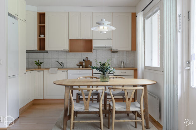 Etusivu / Pohjois-Pohjanmaa / Oulu / Santaholmatie 91 1 / 1 Santaholmatie 91 Haukipudas, Oulu | Rivitalo | 3h+k+ph+s 104 000 € Velaton hinta 70,0 m2 Asuinpinta-ala 2000 Rakennusvuosi Upealla ja rauhallisella paikalla sijaitseva kodikas päätyhuoneisto odottaa uusia asukkaita Santaholmatiellä! Tämä vuonna 2000 valmistunut yksitasoinen rivitaloasunto erinomaiset puitteet niin pienelle perheelle kuin pariskunnallekin, ja se houkuttelee viihtyisyyttä ja toimivuutta arvostavaa asujaa.Astut sisään tilavaan ja valoisa huoneistoon, jossa on selkeä ja avara pohjaratkaisu. Asunnossa on kolme huonetta, keittiö sekä pesuhuone ja oma sauna, jotka tekevät päivittäisestä elämästä nautinnollista. Kodikas tyyli näkyy huoneiden materiaalivalinnoissa ja pintamateriaaleissa, jotka kunnioittavat ajattelua, että koti on enemmän kuin pelkkä tila. Päätyhuoneiston asemointi tarjoaa runsaasti luonnonvaloa ja enemmän yksityisyyttä.Taloyhtiö on hyvin hoidettu ja asukkaidensa arvostama. Suurena etuna tässä kohteessa on autokatospaikka, joka tuo mukavuutta erityisesti talviolosuhteissa. Ympäristö on vehreä, ja asunnon piha-alueella voi nauttia luonnonläheisyydestä. Kauniit puustoiset näkymät luovat miellyttävän ympäristön ja mahdollisuuden rentoutua omalla pihalla.Santaholmantien rauhaisa asuinalue tarjoaa erinomaiset kulkuyhteydet ja monipuoliset palvelut lähellä. Lähistöltä löydät niin päiväkodit, koulut kuin kaupatkin, Haukiputaan keskustaan on lyhyt matka. Liikuntaa ja ulkoilua arvostaville asukkaille alueelta löytyy hienot ulkoilumahdollisuudet ja viheralueet. Tämä on ainutlaatuinen tilaisuus yhdistää mukava ja toimiva asuminen kauniiseen ympäristöön, joten tule ja ihastu tähän viehättävään kotiin paikan päällä!Henna Ahoasuntomyyjä, partner040 620 5216henna.aho@bo.fi Kiinnostaako tämä kohde?Ota meihin yhteyttä tai jätä viesti Henna Aho asuntomyyjä, partner 040 620 5216 henna.aho@bo.fi Tutustu välittäjään Varaa aika kalenteristani HuoneistoOsakkeet1-70HallintamuotoAsunto-osakeyhtiöHuoneluku3h+k+ph+sKerros/Kerroksia1/1Asuinpinta-ala70,0 m2Muut tilat0,0 m2Lisätietoja pinta-alasta Isännöitsijäntodistuksen mukainen. Toimeksiantajan ilmoittama. Yhtiöjärjestyksen mukainen.LiesiSähköliesiKeittiön työtasojen materiaaliLaminaattiKeittiön lattiamateriaaliLaminaattiKeittiön seinien materiaaliMaalattu, tapettiKylpyhuoneen varustusPesukoneliitäntä, lattialämmitys, suihku, peili, kylpyhuonekaapistoKylpyhuoneen lattiamateriaaliLaattaKylpyhuoneen seinämateriaaliKaakeliWC-tilojen kuvausLattiamateriaalit: laattaSeinämateriaalit: maalattuSaunan lattiamateriaaliLaattaSaunan seinämateriaaliPuuMakuuhuoneen kuvaus, lisätiedot ja varustusLukumäärä: 2Lattiamateriaalit: laminaattiSeinämateriaalit: maalattu, tapettiOleskelutilojen kuvaus, lisätiedot ja varustusLattiamateriaalit: parkettiSeinämateriaalit: kivi, maalattuKuntoHyväLisätietoa kunnostaKeittiössä vesivahinko johtuen jääkaapin vuodosta. Korjattu vakuutusyhtiön toimesta 2023. Jolloin jääkaappi myös uusittu. Tiskikone uusittu 2023 Kiinteistö- ja yhtiötiedotYhtiön nimiAsunto Oy Haukiputaan SantapuistoTontin omistusVuokrattuTontin koko2 980,00 m2Tontin vuokraajaOulun KaupunkiTontin vuokrasopimus päättyy31.12.2049Käyttöönottovuosi2000RakennusmateriaaliPuu, tiiliKattotyyppiHarjakattoKatePeltikattoLämmitysjärjestelmäSähköEnergiatodistusKylläLisätietoja energiatodistuksestaEnergiatodistus voimassa 20.05.2033EnergialuokkaE2018Tehdyt korjaukset ja remontitSilikonien uusinta kph suihkunurkista-25, Jätekatoksen laajennus-20, lumiesteiden uusiminen-19, iv-kanavien nuohous-18 ja -23, katon ja välikaton kunnon tarkastus ja huoneiston välisten aitojen uusiminen-16, kattopeltien korjaaminen kuistien osalta ja räystäslautojen korjaus ja kph silikonisaumojen tarkastus ja kunnostus-15, iv-kanavien säätö ja ulkomaalaus ja varastorakennuksen katon pellitys-13,keittiön apk-koneen pistorasioiden siirto ja korjaus ja kph silikonien uusinta-12, raja-aidan teko Ämmöntien puolelle ja lumiesteiden korjaus katoilta-11, väliaitojen kunnostus ja raja-aidan rakentaminen joenpuoleiselle tontille ja a-talon viemärikuvaus-10, erillinen ulkovarasto-09, laatoitusten saumausten tarkastus, autokatoksen aluslaudoituksen asentaminen ja maalaus-08, autolämmityspistokkeiden asennus ja huoneistojen sähköpääkeskuksen kytkentätarkastukset-07, pihan asfaltointi-06Tiedossa olevat tulevat korjaukset/remontitPuuosien maalaus asuntojen kohdalta-25 ja ovien vaihto. Katon huoltoa. Huoneistojen märkätilojen silikonien vaihto kph nurkista. Yleisten tilojen lukitusten uusiminen. Vesi- ja viemärijärjestelmän huoltoa Ilmanvaihdon huoltoa. Uusien tietoliikennekanavien käyttöönotto Asunto-osakeyhtiön hallituksen kunnossapitotarveselvityksen mukaisesti, seuraavien viiden vuoden aikana.Autokatokset8IsännöitsijäSami Pakarinen 050 4388134 Oulun kiinteistö1, sami.pakarinen@kiinteisto1.fiKiinteistönhoitoHuoltoyhtiö Muita tietojaVapautuuHeti AsumiskustannuksetYhtiövastike yhteensä224,00 €Vesi15,00 €/hlö/kkAutopaikka7,00 €/kk HintaMyyntihinta104 000,00 € (1 485,71 €/m2)Velaton hinta104 000,00 € (1 485,71 €/m2)MaksutapaKäteinen. Sinua voisi kiinnostaa Asunnon hinta-arvio ja arviokäynti Asunnon hinta-arvio ja arviokäynti Mitä hinta-arvio maksaa tai miten arviokäyntiä varten kannattaa valmistautua? Katso vastauksemme usein kysyttyihin ky… Sneak Peek® Sneak Peek® Sneak Peek® -palvelumme on askeleen edellä! Löydä alueesi uusimmat ja upeimmat asunnot jo ennen kuin ne ilmestyvät as… Asuntovahti Asuntovahti Etsimässä uutta asuntoa? Aseta itsellesi Bo-asuntovahti. Saat tiedon heti, kun unelmiesi asunto tulee myyntiin. Bo Match Bo Match Kun asuntounelmat ja unelmien asunnot kohtaavat, syntyy Bo Match. Tutustu uudenlaiseen tapaan käydä asuntokauppaa.