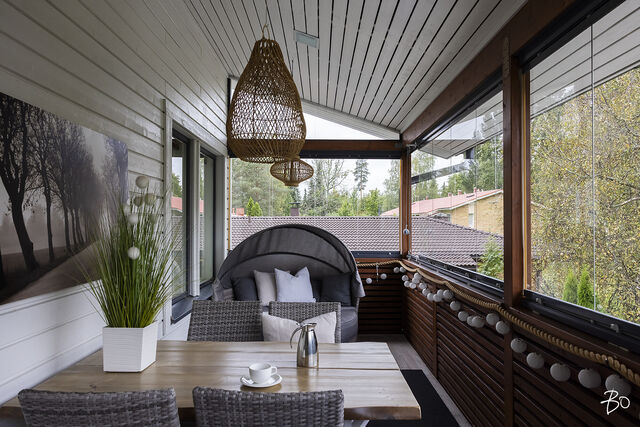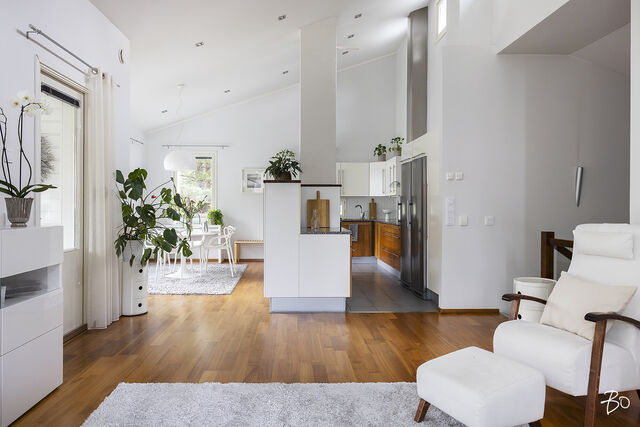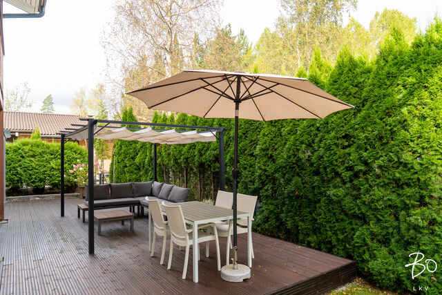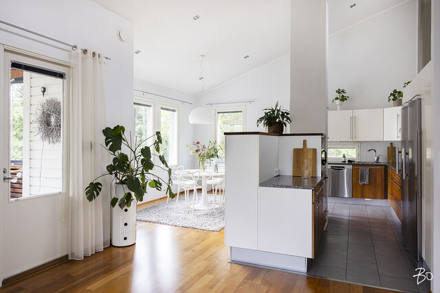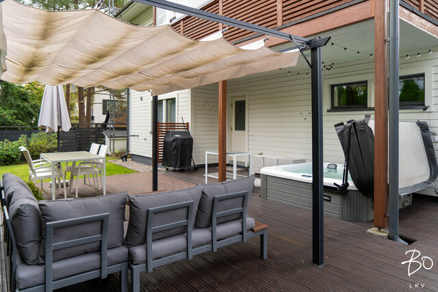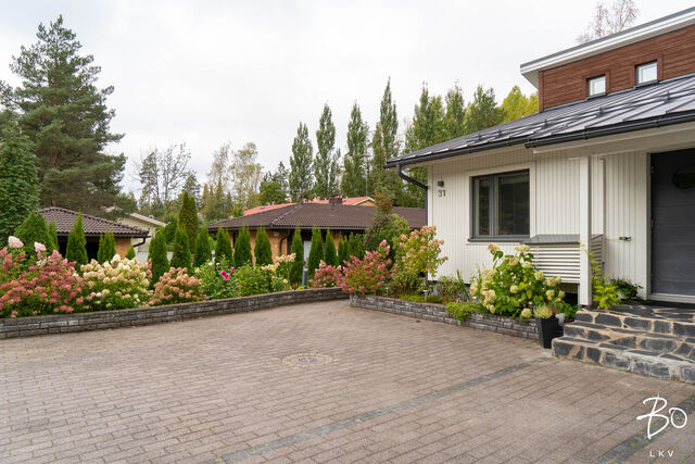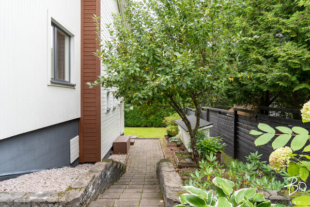 Etusivu / Uusimaa / Espoo / Luhtatie 31 1 / 1 Luhtatie 31 Tuomarila, Espoo | Omakotitalo | 4h+k+rt+th+s+khh+var.+autokatos. 619 000 € Velaton hinta 154,0 m2 Asuinpinta-ala 2004 Rakennusvuosi Vehreän Tuomarilan suojissa odottaa koti, jonka sydän sykkii valolle, tilalle ja ennen kaikkea upealle pihalle. Vuonna 2004 valmistunut omakotitalo Luhtatiellä yhdistää käytännölliset tilaratkaisut ja ympäristön, jossa arki ja vapaa-aika soljuvat kauniisti yhteen.Sisääntulo johdattaa avariin, valoisiin oleskelutiloihin, joissa suuret ikkunat avaavat näkymiä vehreyteen. Varaava takka tuo lämpöä ja tunnelmaa ja moderni keittiö kivitasoineen toimii kodin sydämenä. Tilaa täydentävät kolme makuuhuonetta, käytännöllinen kodinhoitohuone, sauna sekä kaksi kylpyhuonetta. Alakerran kodinhoitotila avautuu suoraan ulos, mikä tekee arjesta jouhevaa ja tuo tilaan mahdollisuuden myös etätyöpisteelle.Talon ympärille kietoutuva piha on kuitenkin tämän kokonaisuuden todellinen kruunu. Aurinkoiset terassit jatkuvat kahdella sivulla, ja pergolan alla voi nauttia kesäpäivistä tai syksyn illoista. Upotettu poreallas kutsuu rentoutumaan ja pihan suojaisat oleskelualueet tekevät ulkotiloista kuin oman keitaan keskelle kaupunkia. Huolella hoidettu piha tarjoaa tilaa niin leikeille, grilli-illoille kuin rauhallisille kahvihetkille.Arjen toimivuutta tukee erillinen autokatos varastoineen sekä sähköauton latausasema. Kodissa on tehty tärkeitä päivityksiä, kuten poreammeen asennus, terassin laajennus ja kiukaan uusiminen. Ilmalämpöpumppu tuo asumiseen mukavuutta ja energiatehokkuutta.Sijainti Tuomarilassa on erinomainen. Lähimmät koulut ja päiväkodit löytyvät kävelyetäisyydeltä, samoin Tuomarilan juna-asema, josta pääsee näppärästi Helsingin suuntaan. Lähialue huokuu rauhaa ja vehreyttä, mutta arjen palvelut ja Espoon keskuksen monipuoliset mahdollisuudet ovat vain hetken päässä.Tämä koti tarjoaa kaiken sen, mitä mukava arki ja nautinnollinen vapaa-aika tarvitsevat valoisaa tilaa, ajattomia ratkaisuja ja ihanan pihan, joka houkuttelee viettämään aikaa ulkona yhä uudelleen ja uudelleen.Jaakko Haapamäki | LKV, LVV, KiAT, kaupanvahvistaja | 040 9522 162 | jaakko@bo.fiService also in Englishhttps://bo.fi/henkilo/jaakko-haapamaki/IG: @jaakko.haapamakiHarkitsetko oman asuntosi myyntiä? Pyydä minut maksuttomalle arviokäynnille sitoumuksetta. Kerron samalla lisää tämän hetkisestä asuntomarkkinatilanteesta, palveluistani ja Bo:n loistavasta välityskonseptista. Autan mielelläni! Kiinnostaako tämä kohde?Ota meihin yhteyttä tai jätä viesti Jaakko Haapamäki kiinteistönvälittäjä LKV, LVV, KiAT, kaupanvahvistaja, partneryrittäjä Jaakko Haapamäki Oy 040 9522 162 jaakko@bo.fi Tutustu välittäjään Varaa aika kalenteristani RakennusKäyttöönottovuosi2004RakennusmateriaaliPuuKattotyyppiPulpettiKateKonesaumattu peltiAsuinpinta-ala154,0 m2 (154,0 m2)Lisätietoja pinta-alastaIlmoitettu asuintilojen pinta-ala on rakennuslupa-asiakirjojen mukainen huoneistoala. Asunto-osan pinta-ala 121 m2, kellarikerroksen 23 m2. Muihin tiloihin lukeutuu tekninen tila, jonka tarkka pinta-ala ei ole tiedossa. Rakennuslupa-asiakirjojen mukainen kokonaisala on 180 m2 ja rakennuslupapäätöksessä ilmoitettu 179 m2. Pinta-alaa ei ole tarkastusmitattu.Kerrokset2Lämmitysjärjestelmän kuvausSähkö, ilmalämpöpumppuLämmön jakotapaUuni/takka, ilmalämpöpumppuHuoneluku4h+k+rt+th+s+khh+var.+autokatos.Keittiön kuvaus, lisätiedot ja varustusKeittiössä korkeat jääkaappi ja pakastin, astianpesukone, liesituuletin, liesitaso, erillisuuni. Työtasot kiveä. Lattia laattaa, seinät maalattu ja välitila laatalla.Pesutilojen kuvaus, lisätiedot ja varustusMolemmissa kerroksissa kylpyhuoneet. Lattia laattaa, seinät kaakeloitu.SaunaAsunnossa on saunaSaunan kuvaus, lisätiedot ja varustusLattia laattaa, seinät paneloitu.WC-tilojen kuvausTalon molemmissa kerroksissa on wc-tilat. Lattiat laattaa, seinät kaakeloitu.Lukumäärä: 2KodinhoitohuoneKodinhoitohuone on talon alakerrassa, kodinhoitohuoneen yhteydessä vaatehuone. Kodinhoitotila on avara ja soveltuu tarvittaessa vaikka etätyöpisteeksi. Tilasta on käynti ulos.Makuuhuoneen kuvaus, lisätiedot ja varustusTalossa on kolme makuuhuonetta, joista yhdessä on myös erillinen vaatehuone.Muut tilatAurinkoinen terassi talon kahdella sivulla, terassilla myös tyylikäs pergola. Lisäksi katettu parveke.SeinämateriaalitMaaliLattiamateriaalitAsuintilojen lattiat parkettia, keittiössä laatta.Tehdyt korjaukset2021 Makuuhuoneiden ja olohuoneen seinät maalattu, listoitettu. WC:t kunnostettu ja kalusteet uusittu poislukien laatoitus ja wc-istuimet. Kaikki sähköpistorasiat, valaisimien kytkimet vaihdettu, ilmalämpöpumppu asennettu 2023 Kiuas vaihdettu jatkuvalämmitteiseen kiukaaseen, terassi laajennettu 2022 Poreamme asennettu upotettuna terassille 2024 Astianpesukone uusittu, terassin ruskeat osat huoltomaalattu, Ilmanvaihtokone LTO yksiköllä ja lämminvesivaraaja vaihdettu Savupiippu nuohottu kerran vuodessa lain edellyttämällä tavalla. Terassi öljytty säännöllisesti 1-2 vuoden välein tarpeen mukaan. Kiinteät spot tyyppiset valot vaihdettu kaikki LED polttimoihin. Muuta kauppaan kuuluvaaTerassin katokset, sähköauton latausasema KuntoHyväEnergiatodistusKylläEnergialuokkaD2018Lisätietoja energiatodistuksestaRakennuksen laskennallinen energiatehokkuuden vertailuluku eli E-luku 169. (D-tehokkuus 162-242 ja C-tehokkuus 125-161). KiinteistötiedotKiinteistötunnus49-40-319-4TyyppiTonttiTontin tyyppiRinnetonttiTontin koko600,00 m2Tontin omistusOmaPanttikirjat650 000,00 €Lisätietoja tontistaTie perilleVesijohtoKunnanViemäriKunnanRakennusoikeus, e-luku0.25 AsumiskustannuksetMuut maksut / lisätietoa maksuistaKiinteistövero 2025: 763,46 €. Jätehuolto: sekajäte, tyhjennys 4. viikon välein. 6 kk:den maksut astiavuokraus 6,50 € ja sekajäte 69,65 €, komposti on oma. Vesi: käyttöennuste 90m3/v, 3kk:den m