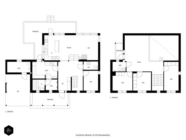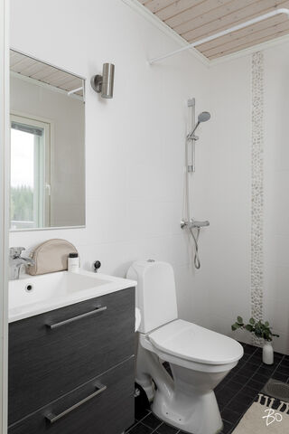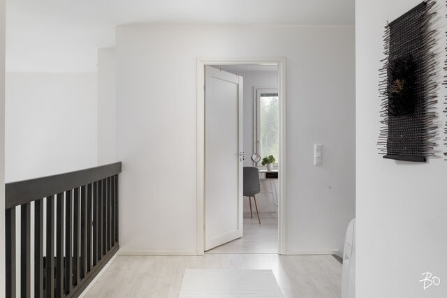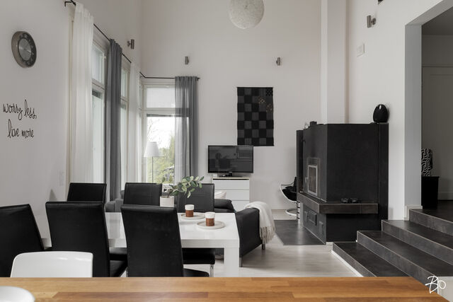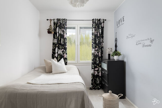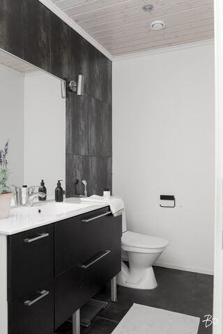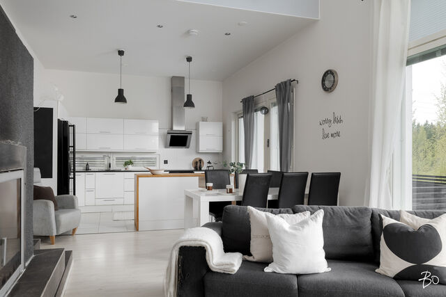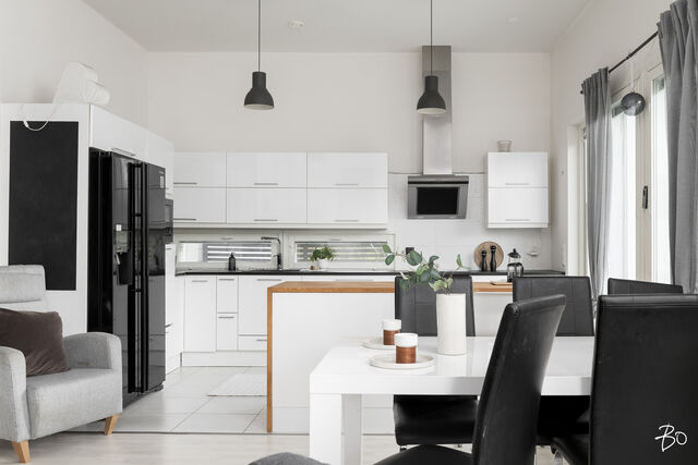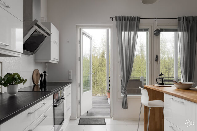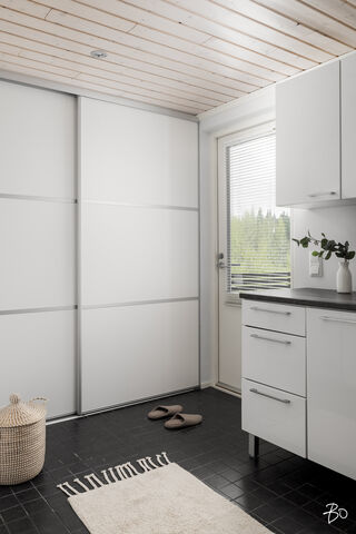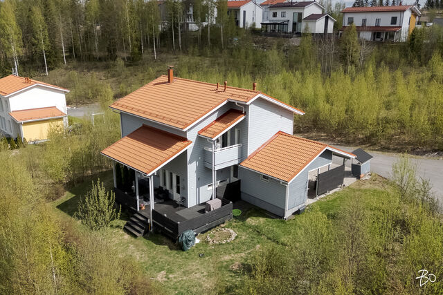 Etusivu / Keski-Suomi / Jyväskylä / Sulkasammal 6 1 / 1 Sulkasammal 6 Ylä-Mäyrämäki, Jyväskylä | Omakotitalo | 5h, k, kph, s, khh, wc, wc/kph, aula ak, var, terassi, parveke 285 000 € Velaton hinta 146,0 m2 Asuinpinta-ala 152,9 m2 Kokonaispinta-ala 2013 Rakennusvuosi Neljän makuuhuoneen tilava talo Ylä-Mäyrämäessä! Tervetuloa tutustumaan tähän hyväkuntoiseen maalämpötaloon perheiden suosimalle alueelle. Sisään saavutaan tilavaan laatoitettuun aulatilaan, jossa on rutkasti säilytystilaa. Vasemmalle puolelle jää 11,6 m2 kodinhoitohuone, jossa arjen askareita helpottaa valtavat säilytystilat. Kodinhoitohuoneesta ja siten myös saunatiloista on kulku myös takapihalle. Kylpyhuone kahdella suihkulla sekä perhekokoinen sauna palvelee suuremman porukan tarpeita. Alakerran wc on erillisenä ja sitä ei ole sijoitettu kylpemistiloihin. Alakerran keittiö, olohuone ja ruokailutila ovat korkeaa ja valoisaa tilaa. L-keittiössä on lisänä saareke suuntautuen olohuoneen ja ruokailutilan suuntaan. Korkeaa olohuonetta koristaa varaava takka. Alakerrassa on lisänä yksi makuuhuone. Yläkerrassa on suuri aulatila, joka soveltuu moneen eri tarkoitukseen, tila täynnä mahdollisuuksia ja voi toimia viihde-pelitilana, kuntoilukäytössä tai vaikkapa työkäytössä. Aulasta lisänä kulku parvekkeelle. Tärkeä asia käytännön kannalta on yläkerran suihkullinen wc, joka mahdollistaa peseytymisen kummassakin kerroksessa. Kolme makuuhuonetta yläkerrassa tuo tähän neljän makuuhuoneen pohjaan mahdollisuuden käyttää tiloja omaan tarpeeseen sopivalla tavalla. Lämmitysmuotona talossa on energiatehokas maalämpö, joka pitää asumisen kulut alhaisella tasolla. Ilmanvaihto on koneellinen tulo- ja poisto lämmöntalteenotolla joten tekniikka tässä talossa on kohdillaan. Tontti on kompakti 506 m2 ja kaupungin vuokratontilla. Tontin lunastus toki onnistuu kohtuuhintaisesti mikäli ostaja näin haluaa toimia. Pihamaata kuitenkin riittää normaaliin käyttöön ja täällä pääsee myös pihatöitä tekemään. Mukava lisä on se, että talo sijoittuu päättyvän kadun viimeiselle tontilla, joten ohikulkua ei ole ja rauhassa saa asustella lähella palveluita. Alhaalla kulkevan tien äänet eivät talon sisälle kuulu. Parkkitilaa löytyy yhden auton katoksen lisäksi useammalle muullekin autolle. Ylä-Mäyrämäen alue on uusi ja tänne rakennettaan edelleen uutta. Reitistöt ja palvelut kehittyvät ja tämä sijainti sopii hyvin aktiiviselle pariskunnalle ja perheelle. Mahtavat ulkoilumaastot mahdollistavat lenkkeilyn ja hiihtämisen lähes kotiovelta lähtien. Varaa oma esittelyaikasi! Kiinnostaako tämä kohde?Ota meihin yhteyttä tai jätä viesti Antti Saleva asuntomyyjä, KTM, partner 041 315 3527 antti.saleva@bo.fi Tutustu välittäjään Varaa aika kalenteristani RakennusKäyttöönottovuosi2013RakennusmateriaaliPuuKattotyyppiHarjaKateTiiliAsuinpinta-ala146,0 m2 (152,9 m2)Lisätietoja pinta-alastaAsuinpinta-ala 146 m2, huoneistoala 154 m2. Muuksi tilaksi kirjattu autokatoksen yhteydessä oleva varasto/tekninen tila 6,9 m2. Kerrokset2Muut tilat6,9 m2Lämmitysjärjestelmän kuvausMaalämpöLämmön jakotapaVesikiertoinen lattialämmitysHuoneluku5h, k, kph, s, khh, wc, wc/kph, aula ak, var, terassi, parvekeKeittiön kuvaus, lisätiedot ja varustusValoisa avokeittiö tilavalla saarekkeella.Keittiön muut varusteetMikroaaltouuni, astianpesukone, kiinteät valaisimet, liesituuletin / suodatinLiesiInduktioliesiKeittiön työtasojen materiaaliPuu, laminaattiKeittiön lattiamateriaaliLaattaKeittiön seinien materiaaliMaalattu, osalaatoitusPesutilojen kuvaus, lisätiedot ja varustusKylpyhuoneessa sisennetyt seinät säilytykseen sekä ikkuna. Kylpyhuoneen varustusLattialämmitys, suihku, kiinteät valaisimetKylpyhuoneen lattiamateriaaliLaattaKylpyhuoneen seinämateriaaliKaakeliSaunaAsunnossa on saunaSaunan kuvaus, lisätiedot ja varustusTyylikäs ja ikkunallinen iso sauna pylväskiukaalla.Saunan lattiamateriaaliLaattaSaunan seinämateriaaliPuuWC-tilojen kuvausAlakerrassa tilava wc, jossa allaskaappi ja iso peili. Yläkerrassa suihkullinen wc/kph hyvillä säilytystiloilla. Varustus: lattialämmitys, bidee-suihkuLukumäärä: 2Lattiamateriaalit: kiviSeinämateriaalit: kaakeli, maalattuKodinhoitohuoneTilava kodinhoitohuone josta kulku ulos. Valtavasti kaappitilaa liukuovien takana. Pieni pukeutumistaso sekä sormipaneloitu tehosteseinä.Varustus: pesukoneliitäntä, lattialämmitys, lattiakaivo, pyykkikaapit, pöytätasoLattiamateriaalit: laattaSeinämateriaalit: maalattu, puuMakuuhuoneen kuvaus, lisätiedot ja varustusSeinäpinnat maalattuja, lattiat laminaattia. Kunto hyvä. Alakerrassa yksi ja yläkerrassa kolme makuuhuonetta. Lukumäärä: 4Lattiamateriaalit: laminaattiSeinämateriaalit: maalattuOleskelutilojen kuvaus, lisätiedot ja varustusKorkea ja valoisa olohuone, jossa ruokailutila sekä varaava takka. Lattiamateriaalit: laminaattiSeinämateriaalit: maalattuMuut tilatYläkerrassa aulatila joka voi toimia viihde- tai pelikäytössä, kuntoilutilana tai etätyöpaikkana. Aulasta kulku parvekkeelle.TulisijaVaraavaTakkatiedotTakkaSeinämateriaalitSeinät pääosin maalattuja ja hyvässä kunnossa. LattiamateriaalitLattiat pääosin laminaattia oleskelutiloissa. Eteistila ja keittiö käytännön syistä laatoitettu. Muut säilytystilatUlkovarastoKuntoHyväLisätietoja energiatodistuksestaEnergiatodistus on vanhentunut. KiinteistötiedotKiinteistötunnus179-18-205-3-L1TyyppiOmakotitaloTontin tyyppiTasamaatonttiTontin koko506,00 m2Tontin omistusVuokrattuTontin vuokraajaJyväskylän KaupunkiPanttikirjat300 000,00 €Lisätietoja tontistaVuosivuokra 1512,08 € ajalle 1.3.2025-28.2.2026. Lunastushinta: 26 600 euroa, hinta voimassa 31.3.2026 asti (kun kaupat tehdään em. ajankohtaan mennessä). Mahdollinen maksamaton vuokra peritään kaupanteon yhteydessä ja sen osalta menetellään, kuten vuokrasopimuksen ehdoissa on mainittu. Mahdollinen ylimääräinen etukäteen makset