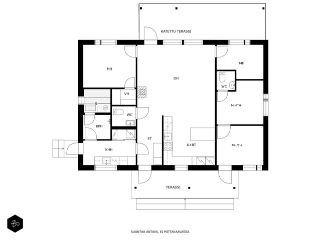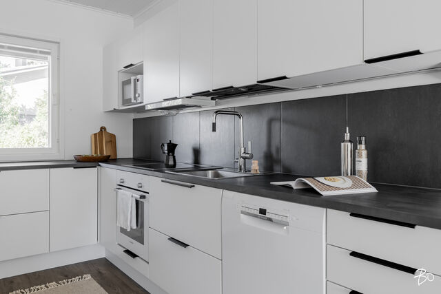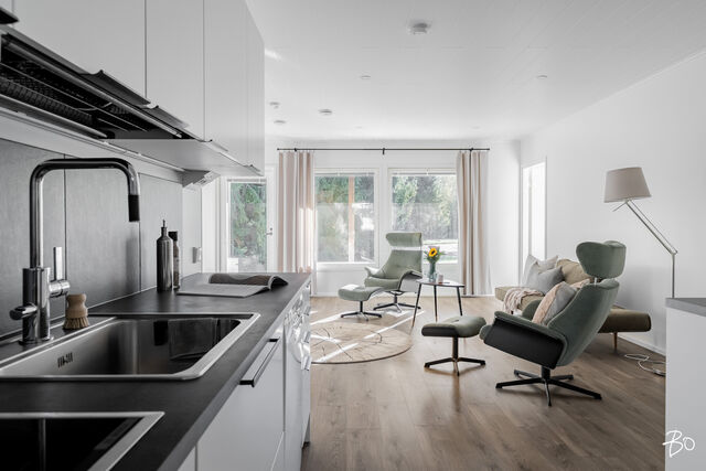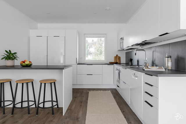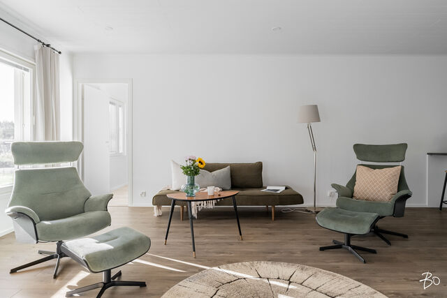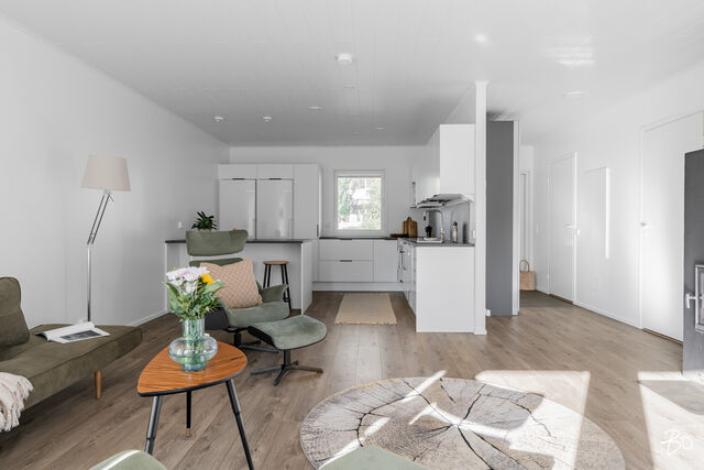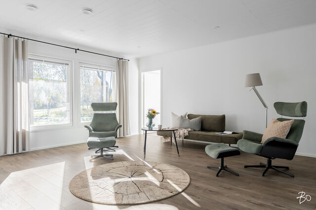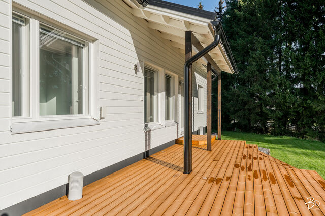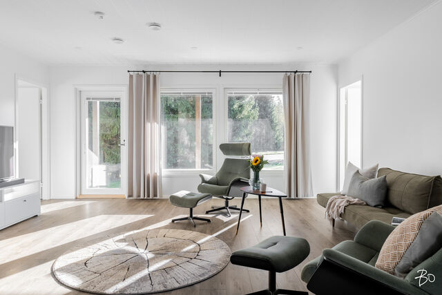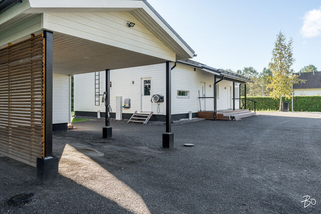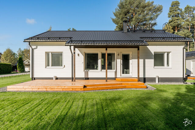 Etusivu / Varsinais-Suomi / Masku / Rapukuja 1 1 / 1 Rapukuja 1 Humikkala, Masku | Omakotitalo | 5h+avok+khh+kph+s+vh+terassi+autokatos 388 000 € Velaton hinta 105,0 m2 Asuinpinta-ala 2024 Rakennusvuosi A-LUOKAN ENERGIATALO OMALLA VEHREÄLLÄ PIHAMAALLAVuonna 2024 rakennettu yksitasoinen Designtalo Maskun Humikkalassa, vain lyhyen matkan päässä kouluista ja 8-tien liikenneyhteyksistä.Asuintilat ovat käytännöllisesti yhdessä tasossa. Olohuone/keittiö-akselilla on runsaasti neliöitä ja tässä tilassa vietetäänkin suuri osa päivästä. Makuuhuoneita on sijoiteltu talon eri kulmiin ja pohjaratkaisun vuoksi tässä on oiva mahdollisuus mm. liike- tai harrastetoimintaan. Tila muuntautuu vaivattomasti kahdeksi lisämakuuhuoneeksi eli oviaukon lisäämällä kasvatat yhtenäisiä asuintiloja. Vain ulkoseinät ovat kantavia eli sisäseiniä voi vapaasti muutella oman tarpeen mukaan.Energialuokkakin jo kertoo, että ylläpitokulut ovat erittäin maltilliset, tässä kodissa on vesikiertoinen lattialämmitys ja poistoilmalämpöpumppu. Varaava takka luo mukavaa lämpöä talvisin ja aurinkopaneelit tuottavat sähköä.Etupihalla on autokatos sekä varastotila. Pihapiiri on viimeistelty ja hyvinhoidettu, talon molemmilta puolin löytyy iso terassi.Luonnonläheinen sijainti, Rivieran uimarannat ja lukuisat metsäpolut ovat lapsiperheen tai koiranomistajan toivelistalla. Tähän kotiin pääset muuttamaan maaliskuussa 2026 eli nyt on hyvää aikaa myydä nykyinen koti pois alta. Myynti ja esittelyvaraukset:Jenna Vuotinen LKV, kaupanvahvistaja0407041146 / jenna@bo.fi Kiinnostaako tämä kohde?Ota meihin yhteyttä tai jätä viesti Jenna Vuotinen kiinteistönvälittäjä LKV, kaupanvahvistaja, partner 040 704 1146 jenna@bo.fi Tutustu välittäjään Varaa aika kalenteristani RakennusRakennusvuosi (aloitettu)2023Käyttöönottovuosi2024RakennusmateriaaliPuuRakennusmateriaalien kuvausDesign-talopaketti, 10v. rakennetakuuKattotyyppiHarjaKatePeltiAsuinpinta-ala105,0 m2 (105,0 m2)Lisätietoja pinta-alastaHuoneistoala 105 m2 ja kerrosala 120 m2 rakennuspiirustuksissa, ei tarkistusmitattu. Autokatos/varasto 11 m2Kerrokset1Muut tilat0,0 m2Lämmitysjärjestelmän kuvausPoistoilmalämpöpumppuLämmön jakotapaVesikiertoinen lattialämmitys, uuni/takkaHuoneluku5h+avok+khh+kph+s+vh+terassi+autokatosKeittiön kuvaus, lisätiedot ja varustusKaapistot, jääkaappi/pakastin, induktioliesi, astianpesukone, uuni, mikro, liesituuletin, tasot laminaattia, niemekeKylpyhuoneen varustusLattialämmitys, suihkuKylpyhuoneen lattiamateriaaliLaattaKylpyhuoneen seinämateriaaliKaakeliSaunaAsunnossa on saunaWC-tilojen kuvausLukumäärä: 2KodinhoitohuoneVarustus: pesukoneliitäntä, lattialämmitysMakuuhuoneen kuvaus, lisätiedot ja varustusLattioilla laminaatti, seinät maalattujaOleskelutilojen kuvaus, lisätiedot ja varustusLattioilla laminaatti, seinät maalattujaTulisijaVaraava takkaTakkatiedotTakkaMuut säilytystilatVaatehuone, ulkovarastoMuuta kauppaan kuuluvaaAurinkopaneelit 3,4 kWp, kaapistot, vesiletkukela, kompostiKauppaan ei kuuluIrtaimisto, pyykinpesukoneKuntoHyväEnergiatodistusKylläEnergialuokkaA2018 KiinteistötiedotKiinteistötunnus481-405-7-47TyyppiTilaTontin tyyppiTasamaatonttiTontin koko1 343,00 m2Tontin omistusOmaPanttikirjat400 000,00 €Rasitukset ja rasitteet1) Tieoikeus (000-2023-K18324) 1 ja 2. Rasitettuna 481-405-7-47 RapuojankulmaLisätietoja tontistaTie perilleVesijohtoKunnanViemäriKunnan AsumiskustannuksetMuut maksut / lisätietoa maksuistaVesi -ja jätevesi kulutuksen mukaan, laskennallinen kokonaissähkön kulutus noin 8 000 kWh (energiatodistus), kiinteistövero 468 e/v.2025, varainsiirtovero 3 %, kaupanvahvistajan kulu 138 euroa HintaVelaton hinta388 000,00 €Myyntihinta388 000,00 € VapautuuV. 2026 maaliskuun puoliväli tai siitä eteenpäinMaksuehtoKäteinen. Sinua voisi kiinnostaa Asunnon hinta-arvio ja arviokäynti Asunnon hinta-arvio ja arviokäynti Mitä hinta-arvio maksaa tai miten arviokäyntiä varten kannattaa valmistautua? Katso vastauksemme usein kysyttyihin ky… Sneak Peek® Sneak Peek® Sneak Peek® -palvelumme on askeleen edellä! Löydä alueesi uusimmat ja upeimmat asunnot jo ennen kuin ne ilmestyvät as… Asuntovahti Asuntovahti Etsimässä uutta asuntoa? Aseta itsellesi Bo-asuntovahti. Saat tiedon heti, kun unelmiesi asunto tulee myyntiin. Bo Match Bo Match Kun asuntounelmat ja unelmien asunnot kohtaavat, syntyy Bo Match. Tutustu uudenlaiseen tapaan käydä asuntokauppaa.
