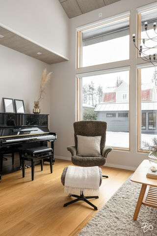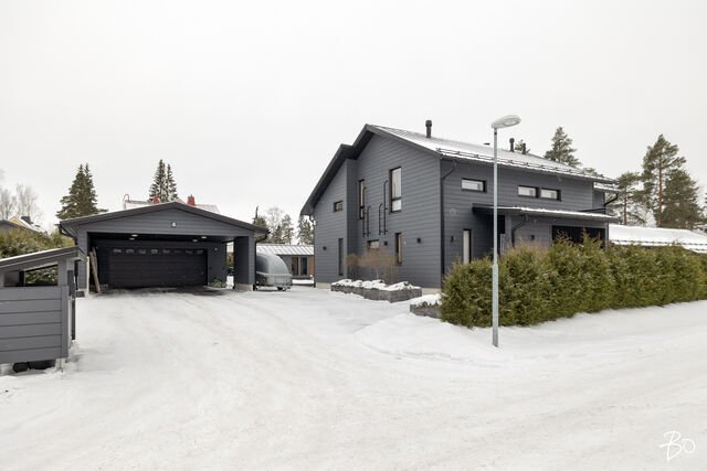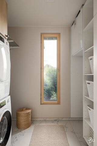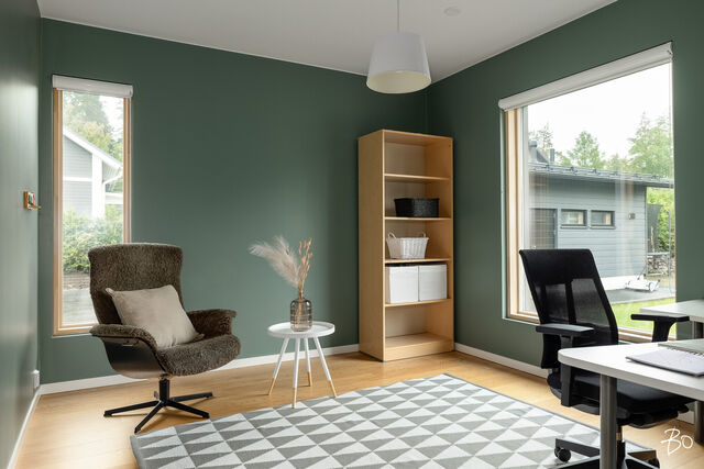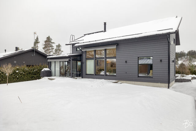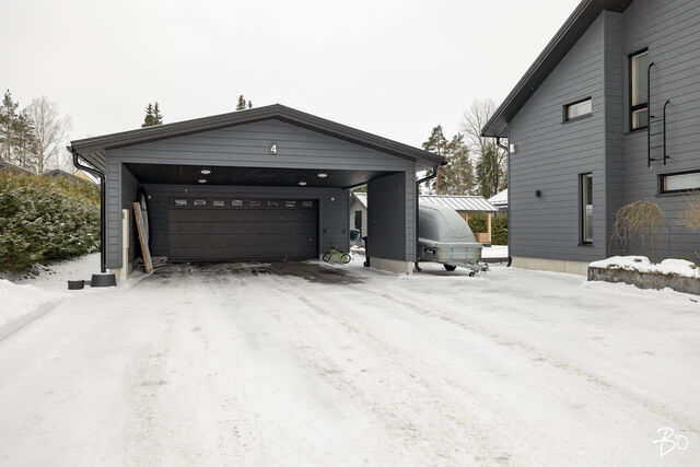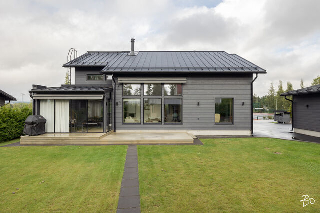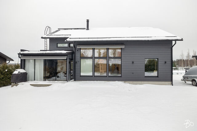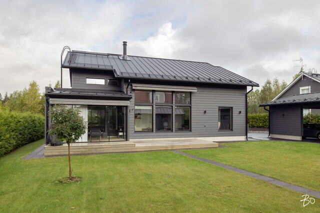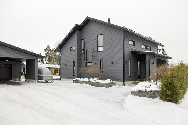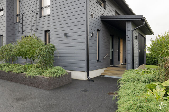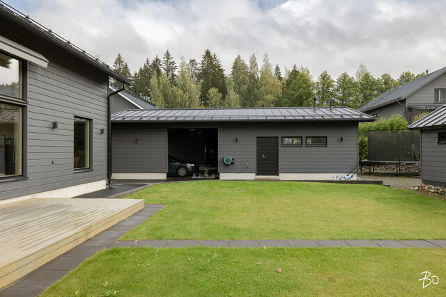 Etusivu / Päijät-Häme / Lahti / Jalonkuja 4 1 / 1 Jalonkuja 4 Nikkilä, Lahti | Omakotitalo | Oh-k-rt, 4 mh, arkioh, s, ph, kph, wc, khh, arkiet, et, lasitettu terassi 509 000 € Velaton hinta 180,0 m2 Asuinpinta-ala 203,0 m2 Kokonaispinta-ala 2020 Rakennusvuosi Nikkilässä, Lahdessa nyt myynnissä vuonna 2020 valmistunut 2-kerroksinen omakotitalo, 2-auton lämmin talli, jonka yhteydessä on 2-auton katos ja takapihalla kylmä varastotila/leikkitila. Tämä kokonaisuus on rakennettu omalle tontille, jonka koko on 1101 m2. Talo ja 2-auton talli lämpiävät molemmat maalämmöllä ja molemmissa on vesikiertoinen lattialämmitys.Sanat, jotka kuvaavat hyvin tätä kotia ovat kaunis, hillitty, laadukas, moderni ja ajaton. Näiden lisäksi tästä kodista on tehty arjessa toimiva sekä akustisesti miellyttävä.Talossa on suuri ja avara olohuone, jossa huonekorkeus on korkeimmillaan 5,7 m. Olohuone yhdistyy ruokailutilan kautta näyttävään mustaan keittiöön, jossa on Topi-Keittiön laadukkaat mustat keittiökalusteet. Kalusteisiin pehmeyttä tuovat tammen sävyiset kehykset ja messinkiset vetonupit kaapistojen ovissa. Tyylikkyyttä täydentävät mustat Dekton-kivitasot, Festivon musta kotikylmiö, Mielen induktioliesi- ja musta erillisuuni sekä Savon musta liesituuletin. Mielen mikroaaltouuni ja Askon astianpesukone ovat integroitu mustiin kalusteisiin. Isot 60 x 60 marmorikuvioidut vaaleat lattialaatat sopivat täydellisesti keittiöön. Olohuoneen ja ruokailutilan lattioissa on laadukkaat tammilankkuparketit ja seinät on maalattu mulperin sävyllä, jotka yhdessä luovat kotiin pehmeän ja tyylikkään tunnelman. Ruokailutilasta on käynti lasitetulle terassille ja takapihalle.Olohuoneen vieressä on yksi iso makuuhuone, joka soveltuu hyvin myös työhuoneeksi tai vierashuoneeksi. Lisäksi yläkerrassa on kolme makuuhuonetta. Päämakuuhuoneen yhteydessä on oma kylpyhuone sekä kaksi vaatehuonetta. Yläkerrassa on myös iso arkiolohuone, joka soveltuu hyvin myös työtilaksi, lasten leikkitilaksi tai vaikkapa kirjastohuoneeksi.Talon saunaosastolle mentäessä on ensin pukuhuone, jonka jälkeen on pesuhuone kahdella kullansävyisellä suihkulla. Sauna on tehty lämpökäsitellystä haavasta ja kiuas on Harvian Kivi-kiuas. Saunaosasto yhdistyy talon huoltokeskukseen eli kodinhoitotiloihin, josta on käynti arkieteisen kautta etupihalle.Tontin takaosassa on hyvä kylmä varastotila, jonka toisessa päässä on leikkitila. Pihan takaosaan on rajattu hyötypuutarha-alue. Koko piha-aluetta kiertää tuija-aita, mikä antaa pihalle rauhan ja yksityisyyden.Asumiskustannukset tässä lapsiperheen kodissa ovat pysyneet varsin maltillisina nykyaikaisten rakennusmateriaalien ja maalämmön ansiosta viiden asumisvuoden aikana.Tämän kodin välittömässä läheisyydessä, vain noin 250 metrin päässä on Monitoimitalo Lähde. Monitoimitalossa toimivat muun muassa päiväkoti, peruskoulun luokat 1-9, nuorisotilat, oppilashuolto- ja terveydenhuoltopalveluja sekä liikuntakäyttöön Lähde-halli 300 m2. Launeen Marketalueen palvelut mm. Launeen Prisma 1,2 km ja Citymarket n. 1,7 km.Tervetuloa tutustumaan tähän kotiin yksityisesittelynä. Soita Marjo Hurskainen p. 040-9322892 tai meilaa marjo@bo.fi ja sovitaan esittelystä. Kiinnostaako tämä kohde?Ota meihin yhteyttä tai jätä viesti Marjo Hurskainen kiinteistönvälittäjä LKV 040 932 2892 marjo@bo.fi Tutustu välittäjään Varaa aika kalenteristani RakennusRakennusvuosi (aloitettu)2019Käyttöönottovuosi2020RakennusmateriaaliPuuRakennusmateriaalien kuvausPerustuksena on paikallavalettu teräsbetoniperustus.KattotyyppiHarjakattoKateKonesaumattu peltikateKaton kuntoHyväAsuinpinta-ala180,0 m2 (203,0 m2)Lisätietoja pinta-alastaPäärakennuksen kokonaisala on 203 m2. Pihassa on päärakennuksen lisäksi 2 auton lämmin talli, kerrosala 55 m2. Autotalli lämpiää maalämmöllä ja tallissa on vesikiertoinen lattialämmitys, koneellinen ilmanvaihto LTO, öljynerotuskaivo, vesipiste lämmin/kylmä vesi. Autotallissa on 5,4 m leveä sähkökäyttöinen nosto-ovi, johon on 2 kaukosäädintä ja lisäksi näppäin-lukko. Tallin edustalla on kahden auton katos koko 45 m2. Takapihalla on 15 m2 kylmä varastotila/leikkitila.Kerrokset2Muut tilat23,0 m2IlmanvaihtojärjestelmäKoneellinen ilmanvaihto LTOLämmitysVesikiertoinen lattialämmitys, muu. HyväLämmitysjärjestelmän kuvausMaalämpö, muuHuonelukuOh-k-rt, 4 mh, arkioh, s, ph, kph, wc, khh, arkiet, et, lasitettu terassiKeittiön kuvaus, lisätiedot ja varustusKeittiön lattiassa on 60 x 60 vaalea marmorin sävyinen lattialaatta. Seinät on maalattu mulperin sävyllä/paneloitu valkoiseksi maalatulla leveällä puupaneelilla. Sumupintainen kipsikatto. Topi-Keittiöiden mustat keittiökaapistot, jotka tammen sävyisillä kehyksillä ja messinkisillä vetonupeilla. Mustat Dekton kivitasot. Festivon musta kotikylmiö, Mielen induktioliesi- ja musta erillisuuni. Mielen integroitu mikroaaltouuni. Integroitu Askon astianpesukone. Savon musta liesituuletin.Pesutilojen kuvaus, lisätiedot ja varustusYläkerran kylpyhuoneessa on 60 x 60 vaalea marmorikuvioitu laatta. Seinät on laatoitettu 30 x 60 harmailla seinälaatoilla. Katossa on lämpökäsitelty haapapaneeli. Saunan yhteydessä olevan pesuhuoneen katto on lämpökäsiteltyä haapaa. Pesuhuoneen seinät on laatoitettu beigen sävyisillä 30 x 60 seinälaatoilla. Lattiassa on kuusikulmaiset beigen sävyiset lattialaatat, 2 kullansävyistä suihkua. Pesuhuoneen yhteydessä on pukuhuonetila, joka on paneloitu lämpökäsitellyillä haapapaneelilla. SaunaAsunnossa on saunaSaunan kuvaus, lisätiedot ja varustusSaunan katto ja seinät on lämpökäsiteltyä haapaa. Lauteet lämpökäsiteltyä haapaa. Harvian Kivi kiuas 9 kW.WC-tilojen kuvausAlakerran wc:ssä mustat/puunsävyiset kylpyhuonekalusteet, wc-istuin. Katossa on lämpökäsitelty haapapaneeli. Lukumäärä: 1KodinhoitohuoneKodinhoitohuoneessa on sumupintainen kipsikatto. Seinät on maa
