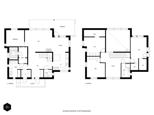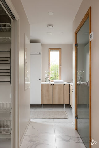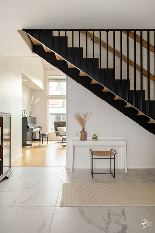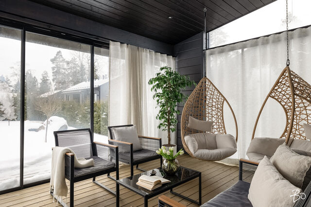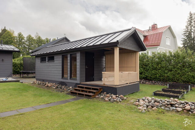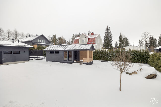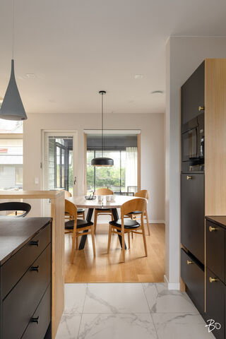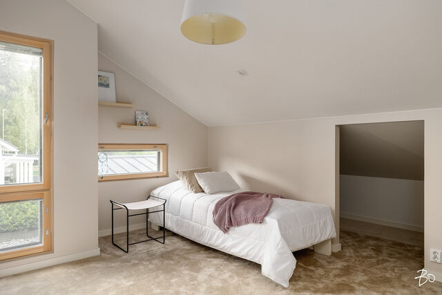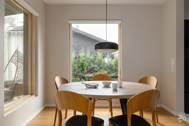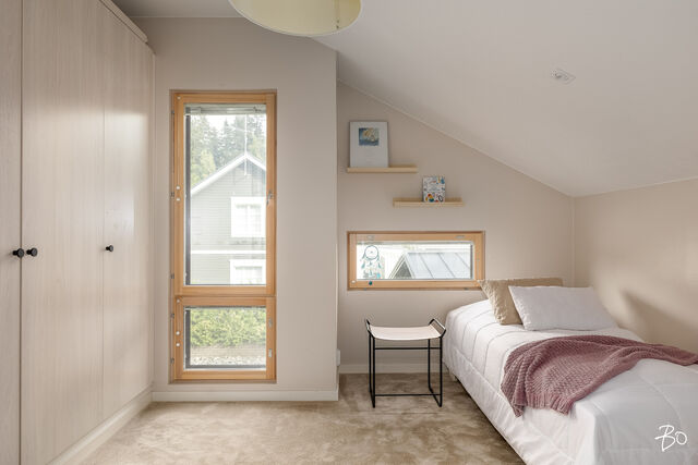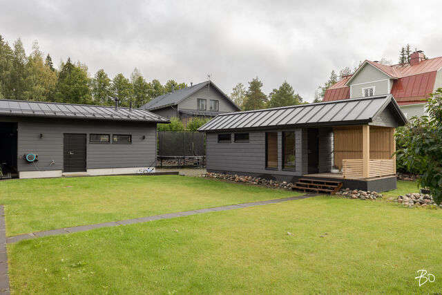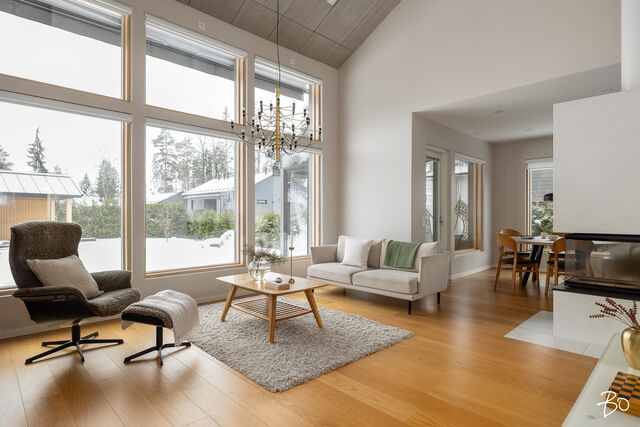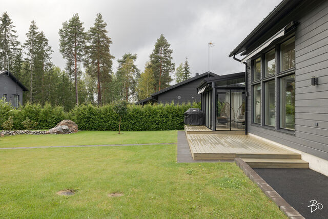 Etusivu / Päijät-Häme / Lahti / Jalonkuja 4 1 / 1 Jalonkuja 4 Nikkilä, Lahti | Omakotitalo | Oh-k-rt, 4 mh, arkioh, s, ph, kph, wc, khh, arkiet, et, lasitettu terassi 509 000 € Velaton hinta 180,0 m2 Asuinpinta-ala 203,0 m2 Kokonaispinta-ala 2020 Rakennusvuosi Nikkilässä, Lahdessa nyt myynnissä vuonna 2020 valmistunut 2-kerroksinen omakotitalo, 2-auton lämmin talli, jonka yhteydessä on 2-auton katos ja takapihalla kylmä varastotila/leikkitila. Tämä kokonaisuus on rakennettu omalle tontille, jonka koko on 1101 m2. Talo ja 2-auton talli lämpiävät molemmat maalämmöllä ja molemmissa on vesikiertoinen lattialämmitys.Sanat, jotka kuvaavat hyvin tätä kotia ovat kaunis, hillitty, laadukas, moderni ja ajaton. Näiden lisäksi tästä kodista on tehty arjessa toimiva sekä akustisesti miellyttävä.Talossa on suuri ja avara olohuone, jossa huonekorkeus on korkeimmillaan 5,7 m. Olohuone yhdistyy ruokailutilan kautta näyttävään mustaan keittiöön, jossa on Topi-Keittiön laadukkaat mustat keittiökalusteet. Kalusteisiin pehmeyttä tuovat tammen sävyiset kehykset ja messinkiset vetonupit kaapistojen ovissa. Tyylikkyyttä täydentävät mustat Dekton-kivitasot, Festivon musta kotikylmiö, Mielen induktioliesi- ja musta erillisuuni sekä Savon musta liesituuletin. Mielen mikroaaltouuni ja Askon astianpesukone ovat integroitu mustiin kalusteisiin. Isot 60 x 60 marmorikuvioidut vaaleat lattialaatat sopivat täydellisesti keittiöön. Olohuoneen ja ruokailutilan lattioissa on laadukkaat tammilankkuparketit ja seinät on maalattu mulperin sävyllä, jotka yhdessä luovat kotiin pehmeän ja tyylikkään tunnelman. Ruokailutilasta on käynti lasitetulle terassille ja takapihalle.Olohuoneen vieressä on yksi iso makuuhuone, joka soveltuu hyvin myös työhuoneeksi tai vierashuoneeksi. Lisäksi yläkerrassa on kolme makuuhuonetta. Päämakuuhuoneen yhteydessä on oma kylpyhuone sekä kaksi vaatehuonetta. Yläkerrassa on myös iso arkiolohuone, joka soveltuu hyvin myös työtilaksi, lasten leikkitilaksi tai vaikkapa kirjastohuoneeksi.Talon saunaosastolle mentäessä on ensin pukuhuone, jonka jälkeen on pesuhuone kahdella kullansävyisellä suihkulla. Sauna on tehty lämpökäsitellystä haavasta ja kiuas on Harvian Kivi-kiuas. Saunaosasto yhdistyy talon huoltokeskukseen eli kodinhoitotiloihin, josta on käynti arkieteisen kautta etupihalle.Tontin takaosassa on hyvä kylmä varastotila, jonka toisessa päässä on leikkitila. Pihan takaosaan on rajattu hyötypuutarha-alue. Koko piha-aluetta kiertää tuija-aita, mikä antaa pihalle rauhan ja yksityisyyden.Asumiskustannukset tässä lapsiperheen kodissa ovat pysyneet varsin maltillisina nykyaikaisten rakennusmateriaalien ja maalämmön ansiosta viiden asumisvuoden aikana.Tämän kodin välittömässä läheisyydessä, vain noin 250 metrin päässä on Monitoimitalo Lähde. Monitoimitalossa toimivat muun muassa päiväkoti, peruskoulun luokat 1-9, nuorisotilat, oppilashuolto- ja terveydenhuoltopalveluja sekä liikuntakäyttöön Lähde-halli 300 m2. Launeen Marketalueen palvelut mm. Launeen Prisma 1,2 km ja Citymarket n. 1,7 km.Tervetuloa tutustumaan tähän kotiin yksityisesittelynä. Soita Marjo Hurskainen p. 040-9322892 tai meilaa marjo@bo.fi ja sovitaan esittelystä. Kiinnostaako tämä kohde?Ota meihin yhteyttä tai jätä viesti Marjo Hurskainen kiinteistönvälittäjä LKV 040 932 2892 marjo@bo.fi Tutustu välittäjään Varaa aika kalenteristani RakennusRakennusvuosi (aloitettu)2019Käyttöönottovuosi2020RakennusmateriaaliPuuRakennusmateriaalien kuvausPerustuksena on paikallavalettu teräsbetoniperustus.KattotyyppiHarjakattoKateKonesaumattu peltikateKaton kuntoHyväAsuinpinta-ala180,0 m2 (203,0 m2)Lisätietoja pinta-alastaPäärakennuksen kokonaisala on 203 m2. Pihassa on päärakennuksen lisäksi 2 auton lämmin talli, kerrosala 55 m2. Autotalli lämpiää maalämmöllä ja tallissa on vesikiertoinen lattialämmitys, koneellinen ilmanvaihto LTO, öljynerotuskaivo, vesipiste lämmin/kylmä vesi. Autotallissa on 5,4 m leveä sähkökäyttöinen nosto-ovi, johon on 2 kaukosäädintä ja lisäksi näppäin-lukko. Tallin edustalla on kahden auton katos koko 45 m2. Takapihalla on 15 m2 kylmä varastotila/leikkitila.Kerrokset2Muut tilat23,0 m2IlmanvaihtojärjestelmäKoneellinen ilmanvaihto LTOLämmitysVesikiertoinen lattialämmitys, muu. HyväLämmitysjärjestelmän kuvausMaalämpö, muuHuonelukuOh-k-rt, 4 mh, arkioh, s, ph, kph, wc, khh, arkiet, et, lasitettu terassiKeittiön kuvaus, lisätiedot ja varustusKeittiön lattiassa on 60 x 60 vaalea marmorin sävyinen lattialaatta. Seinät on maalattu mulperin sävyllä/paneloitu valkoiseksi maalatulla leveällä puupaneelilla. Sumupintainen kipsikatto. Topi-Keittiöiden mustat keittiökaapistot, jotka tammen sävyisillä kehyksillä ja messinkisillä vetonupeilla. Mustat Dekton kivitasot. Festivon musta kotikylmiö, Mielen induktioliesi- ja musta erillisuuni. Mielen integroitu mikroaaltouuni. Integroitu Askon astianpesukone. Savon musta liesituuletin.Pesutilojen kuvaus, lisätiedot ja varustusYläkerran kylpyhuoneessa on 60 x 60 vaalea marmorikuvioitu laatta. Seinät on laatoitettu 30 x 60 harmailla seinälaatoilla. Katossa on lämpökäsitelty haapapaneeli. Saunan yhteydessä olevan pesuhuoneen katto on lämpökäsiteltyä haapaa. Pesuhuoneen seinät on laatoitettu beigen sävyisillä 30 x 60 seinälaatoilla. Lattiassa on kuusikulmaiset beigen sävyiset lattialaatat, 2 kullansävyistä suihkua. Pesuhuoneen yhteydessä on pukuhuonetila, joka on paneloitu lämpökäsitellyillä haapapaneelilla. SaunaAsunnossa on saunaSaunan kuvaus, lisätiedot ja varustusSaunan katto ja seinät on lämpökäsiteltyä haapaa. Lauteet lämpökäsiteltyä haapaa. Harvian Kivi kiuas 9 kW.WC-tilojen kuvausAlakerran wc:ssä mustat/puunsävyiset kylpyhuonekalusteet, wc-istuin. Katossa on lämpökäsitelty haapapaneeli. Lukumäärä: 1KodinhoitohuoneKodinhoitohuoneessa on sumupintainen kipsikatto. Seinät on maa