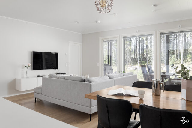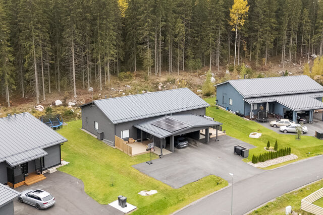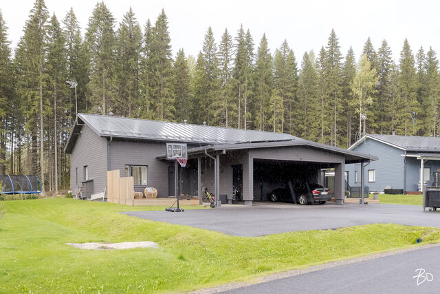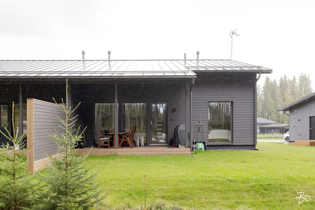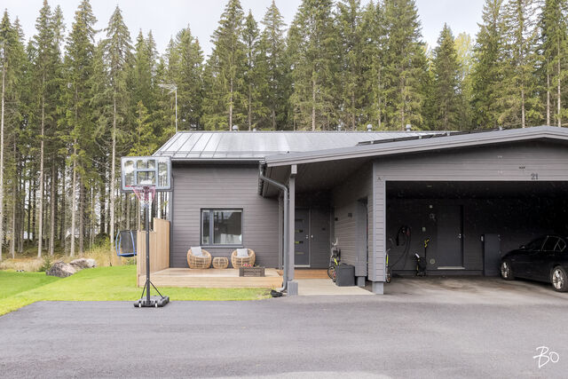 Etusivu / Keski-Suomi / Jyväskylä / Uunilinnuntie 21 A 1 / 1 Uunilinnuntie 21 A Matinmäki, Jyväskylä | Paritalo | 3mh, oh, k, s, khh, wc, 299 000 € Velaton hinta 104,0 m2 Asuinpinta-ala 108,0 m2 Kokonaispinta-ala 2021 Rakennusvuosi Ihastuttava paritalokoti Matinmäessä!Suojaisalla, metsäpuistoon rajoittuvalla omalla tontilla sijaitseva erittäin hyväkuntoinen paritalo.Lempeän tyylikäs koti, jossa taidokkaasti toteutetut tilat sekä rauhoittava sijainti metsän laidalla kutsuu viihtymään! Vuodenaikojen vaihtelu on luonnon oma näytelmä, josta pääset nauttimaan suurten ikkunoiden kautta.Yksitasoinen ja avarapohjainen koti, joka toivottaa lämpimästi tervetulleeksi niin perheenjäsenet kuin vieraat. Oleskelutilat ja saarekkeellinen avokeittiö ovat tämän kodin sydän. Kaunis ja laadukas keittiö yhdistyy luontevasti ruokailutilaan sekä olohuoneeseen, muodostaen upean kokonaisuuden. Luonnonvalo on yksi elementti, joka on huomioitu äärettömän taitavasti. Suuret ikkunat päästävät niin maiseman, kuin luonnonvalon juuri sopivasti osaksi sisustusta.Rauhallisen kotikadun puoleinen terassi kutsuu nauttimaan päiväauringosta. Tilavat makuuhuoneet kruunaa upeasti toteutettu masterbedroom. Walk In -closet on sijoitettu sängyn päädyn taakse, kaappitilaa on runsaasti.Pesutilojen Spa-henki jatkaa harmonista tunnelmaa, niin sävyjen kuin materiaalien puolesta. Kodinhoitohuoneessa on runsaasti kaappitilaa sekä toimiva pyykkihuolto.Tasainen ja helppohoitoinen piha-alue on viimeistelty nurmialueella, joka päättyy puistoalueeseen. Etupihahalla on asfalttipäällyste, mikä tuo käytännöllisyyttä ja siisteyttä arkeen.Sisäänkäynnin yhteydessä säilytystilat täydentää tilava ulkovarasto. Autolle on katospaikka, sekä pysäköintitilaa on muutoinkin.Maalämmöllä lämpiävä koti on erityisen energiatehokas, sillä lisäapuna aurinkopaneelit tuottavat sähköä.Oma tontti on jaettu hallinnanjakosopimuksen mukaisesti naapurin kanssa. Matinmäen alue vetää vuosi toisensa jälkeen puoleensa lapsiperheitä eikä ihme! Alue on rauhallinen, sekä nopeiden kulkuyhteyksien päässä kaikesta. Olisiko tässä perheesi uusi koti? Kiinnostaako tämä kohde?Ota meihin yhteyttä tai jätä viesti Ismo Nieminen asuntomyyjä, KiLAT, partner 040 962 2473 ismo.nieminen@bo.fi Tutustu välittäjään Varaa aika kalenteristani RakennusRakennusvuosi (aloitettu)2021Käyttöönottovuosi2021RakennusmateriaaliPuuKattotyyppiHarjaKatePeltiAsuinpinta-ala104,0 m2 (108,0 m2)Lisätietoja pinta-alastaLämmin varasto 4m2Muut tilat4,0 m2LämmitysVesikiertoinen lattialämmitys. HyväLämmitysjärjestelmän kuvausMaalämpö, ilmalämpöpumppu, muuHuoneluku3mh, oh, k, s, khh, wc, Keittiön kuvaus, lisätiedot ja varustusPuusepänliike Tourusen valmistama, täydellisesti onnistunut keittiö vaativankin kokin tarpeisiin. Kestävät kvartsitasot kruunaavat tämän kokonaisuuden! Saarekkeessa runsaasti työskentely- ja säilytystilaa, sekä suuri induktiotaso, johon mahtuu kattilat ja pannut somasti yhtäaikaa porisemaan. Keittiön muut varusteetMikroaaltouuni, astianpesukone, kiinteät valaisimet, liesituuletin / suodatinLiesiInduktioliesi, erillisuuniKeittiön työtasojen materiaaliMuuKeittiön seinien materiaaliMaalattuPesutilojen kuvaus, lisätiedot ja varustusKauniit vaaleat laattapinnat, täydellisesti toisiinsa sopivat sävyt ja kaunis valaistus tuovat tilaan herkän tunnelman. Kylpyhuoneessa toinen wc-istuin. Kylpyhuoneen varustusLattialämmitys, suihku, peili, kiinteät valaisimet, kylpyhuonekaapistoKylpyhuoneen lattiamateriaaliLaattaKylpyhuoneen seinämateriaaliKaakeliSaunaAsunnossa on saunaSaunan kuvaus, lisätiedot ja varustusLöylyhuone sijoitettu lasiseinän taakse, lauteet sijoitettu molemminpuolin saunatilaa.Saunan lattiamateriaaliLaattaSaunan seinämateriaaliPuuWC-tilojen kuvausPeili/kaapisto altaan allaVarustus: lattialämmitys, lattiakaivo, bidee-suihkuLukumäärä: 2Lattiamateriaalit: laattaSeinämateriaalit: maalattuKodinhoitohuoneVarustus: pesukoneliitäntä, pesuallas, lattialämmitys, lattiakaivo, pyykkikaapit, pöytätasoLattiamateriaalit: laattaSeinämateriaalit: maalattuMakuuhuoneen kuvaus, lisätiedot ja varustusKaikki makuuhuoneet tilavia, jokaiseen huoneeseen toteutettu omanlaisensa tunnelma. Masterbedroomissa walk in closet. Masterbedroom sijoittuu puistoalueen puoleiselle seinustalle. Sängyssä makoillessa avautuu suuresta ikkunasta näkymä ikivihreään havumetsään.Lukumäärä: 3Seinämateriaalit: maalattuOleskelutilojen kuvaus, lisätiedot ja varustusOlohuoneessa suuret ikkunat, joista avautuu näkymä metsäpuistoon. Olohuonetta jatkaa kesäaikaan terassi suojaisalle takapihan puolelle.Seinämateriaalit: maalattuSeinämateriaalitAsuintiloissa kaikki seinät maalipintoja, tehosteseiniä valittu harkitusti.LattiamateriaalitAsuintiloissa laadukas ja kestävä B-Hard Style kovapuulattia. Kaikki laattapinnat Pukkila Landstone White.Tehdyt korjauksetEteisen lattialaatat ja Wc:n ovi vaihdettu rakennuttajan toimesta. Ulko-ovi vaihdettu. Piha asfaltoitu.KuntoHyväEnergiatodistusKylläEnergialuokkaB2018 KiinteistötiedotKiinteistötunnus179-50-3-5TyyppiTonttiTontin tyyppiTasamaatonttiTontin koko1 097,00 m2Tontin omistusOmaPanttikirjat300 000,00 €Lisätietoja tontistaHallinnanjakosopimuksella rajattu tontti.Tie perilleVesijohtoKunnanViemäriKunnanRakennusoikeus250,0 m2 Muita tietojaPalvelutPalokan marketit n. 6,5km. Palokan terveysasema n. 6,2km.KouluPuuppolan koulu n. 1,5 km, Jokelan koulu n. 6km, Palokan koulukeskus n. 6,2kmPäiväkotiPuuppolan päiväkoti n. 2 km, Jokelan päiväkoti n. 6,2km, Luhtisen päiväkoti n. 6,5km.LiikenneyhteydetJyväskylän paikallisliikenne, lähin pysäkki n. 350m, linja 36. AsumiskustannuksetVesi ja jätevesi62,00 €Puhtaanapito10,37 €Kiinteistövero536,24 €Muut maksut / lisätietoa maksuistaSähkön kokonaiskulutus arvio 12883 kWh, sisältää käyttösähkön, sähköauton kokoaikaisen latauksen ja paritalon teknisen sähkön, joka j