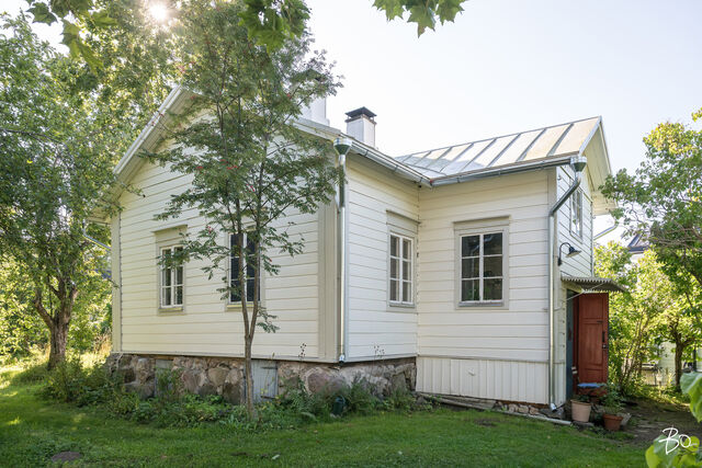 Etusivu / Uusimaa / Porvoo / Vanha Kuninkaantie 21 1 / 1 Vanha Kuninkaantie 21 Pappilanmäki, Porvoo | Omakotitalo | k, 2-3 h, kph, kuisti 169 000 € Velaton hinta 64,0 m2 Asuinpinta-ala 1852 Rakennusvuosi 1800-luvun hirsitalo idyllisellä paikalla Pappilanmäellä viehättää alkuperäisellä tunnelmallaan. Talo kaipaa kunnostajan kättä, mutta vanhat lankkulattiat, toimivat tulisijat ja alkuperäiset materiaalit luovat lämpimän pohjan uudelle kodille. Tässä kodissa yhdistyvät historia, harmonia ja mahdollisuus luoda jotain täysin omaa. Tontti on Porvoon kaupungin vuokratontti, tällä hetkellä talossa asuvat vuokralaiset. Ympäristö henkii ihastuttavaa Vanhan Porvoon tunnelmaa, ja palvelutkin löytyvät lähistöltä. Kiinnostaako tämä kohde?Ota meihin yhteyttä tai jätä viesti Jatta Toivola kiinteistönvälittäjä LKV, partner 040 764 4316 jatta@bo.fi Tutustu välittäjään Varaa aika kalenteristani RakennusRakennusvuosi (aloitettu)1852Käyttöönottovuosi1852RakennusmateriaaliPuu, hirsiKattotyyppiHarjakattoKateSaumattu peltiKaton kuntoMaalattu -85 , 2002 ja 2023Asuinpinta-ala64,0 m2 (64,0 m2)Lisätietoja pinta-alastaPinta-ala tieto on suuntaa antava ja perustuu omistajan arvioon pinta-alasta. Pinta-ala ei ole tarkistusmitattu.Kerrokset1Muut tilat0,0 m2Lämmitysjärjestelmän kuvausSähkö, muuLämmön jakotapaSähköpatterilämmitys, uuni/takkaHuonelukuK, 2-3 h, kph, kuistiLiesiSähköliesiKeittiön lattiamateriaaliLautaKeittiön seinien materiaaliPuu, tapettiKylpyhuoneen varustusPesukoneliitäntä, wc-istuin, suihku, peili, kiinteät valaisimetKylpyhuoneen lattiamateriaaliLaattaKylpyhuoneen seinämateriaaliTapetti, muoviMakuuhuoneen kuvaus, lisätiedot ja varustusLattiamateriaalit: lautaSeinämateriaalit: tapettiOleskelutilojen kuvaus, lisätiedot ja varustusLattiamateriaalit: lautaSeinämateriaalit: tapettiTakkatiedotTakkaTehdyt korjauksetUlkomaalaus 2023, sähköt ja sähkökaappi uusittu 2021-2023, lämminvesivaraaja 2021, kph:n lattia laatoitettu 2021.KuntoVälttäväEnergiatodistusKylläEnergialuokkaF2018 KiinteistötiedotKiinteistötunnus638-7-507-2TyyppiOmakotitaloTontin koko729,00 m2Tontin omistusVuokrattuTontin vuokrasopimus päättyy31.12.2051Tontin vuokra2 764,86 €Tontin vuokraajaPorvoon kaupunkiLisätietoja tontistaTontti on vuokrattu Porvoon kaupungilta ja sen voi myös lunastaa omaksi. Porvoon kaupunki on tehty vuonna 2020 Newsecin arvio tontin myyntihinnasta, jonka perusteella myyntihinta tontille olisi 145 000 €. Arvio voidaan myös päivittää tähän markkinahintaan.Tie perilleVesijohtoKunnanViemäriKunnanRakennusoikeus150,0 m2Lisätietoja rakennusoikeudesta150 + talousrakennus 40 AsumiskustannuksetKiinteistövero58,87 €Muut maksut / lisätietoa maksuistaVeden kulutus 23.1.2024-30.1.2025 yhteensä 43 m3. HintaVelaton hinta169 000,00 €Myyntihinta169 000,00 € VapautuuSopimuksen mukaanMaksuehtoKäteinen. Sinua voisi kiinnostaa Asunnon hinta-arvio ja arviokäynti Asunnon hinta-arvio ja arviokäynti Mitä hinta-arvio maksaa tai miten arviokäyntiä varten kannattaa valmistautua? Katso vastauksemme usein kysyttyihin ky… Sneak Peek® Sneak Peek® Sneak Peek® -palvelumme on askeleen edellä! Löydä alueesi uusimmat ja upeimmat asunnot jo ennen kuin ne ilmestyvät as… Asuntovahti Asuntovahti Etsimässä uutta asuntoa? Aseta itsellesi Bo-asuntovahti. Saat tiedon heti, kun unelmiesi asunto tulee myyntiin. Bo Match Bo Match Kun asuntounelmat ja unelmien asunnot kohtaavat, syntyy Bo Match. Tutustu uudenlaiseen tapaan käydä asuntokauppaa.
