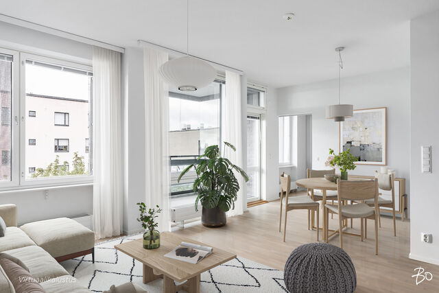 Etusivu / Uusimaa / Helsinki / Eläinlääkärinkatu 5 1 / 1 Eläinlääkärinkatu 5 Hermanni, Helsinki | Kerrostalo | 3h+k 457 000 € Velaton hinta 65,5 m2 Asuinpinta-ala 360,25 €/kk Hoitovastike 2012 Rakennusvuosi Ylimmän kerroksen koti lasitetulla parvekkeellaTämä ihana asunto kutsuu sinut asumaan valoisaan ja toimivaan kolmioon Hermannin sydämessä. Vuonna 2012 valmistuneen Asunto Oy Helsingin Tervapääskysen ylimmän viidennen kerroksen koti tarjoaa 65,5 m² hyvin suunniteltua tilaa, jossa moderni arki soljuu vaivattomasti.Olohuone ja ruokailutila yhdistyvät kevyesti avokeittiöön muodostaen valoisan ja avaran kokonaisuuden. Lattiasta kattoon ulottuvat ikkunat tulvivat luonnonvaloa, ja lasitetulta parvekkeelta avautuvat näkymät kantakaupungin suuntaan tekevät siitä täydellisen paikan aamu- tai iltahetkille. Keittiössä on keraaminen liesi ja astianpesukone ja runsaan työskentelytilan ansiosta ruoanlaitto sujuu vaivattomasti. Kaksi makuuhuonetta sijoittuvat rauhallisesti asunnon eri kulmiin. Molemmissa on reilusti säilytystilaa, ja kokonaisuus sopii erinomaisesti niin pariskunnalle, pienelle perheelle kuin etätyötä tekevälle. Tyylikäs kylpyhuone lattialämmityksineen kruunaa arjen toimivuuden. Taloyhtiö on hyvin hoidettu, ja viime vuosina on toteutettu mm. porrashuoneiden ja parvekkeiden korjauksia sekä valaistuksen uusiminen. Asukkaiden käytössä ovat muun muassa sauna, pesutupa, kerhotila ja ulkoiluvälinevarastot.Hermannin alue sykkii elämää ja tarjoaa loistavat puitteet kaupunkiasumiselle. Kävelymatkan päässä ovat niin Kalasataman Redi kuin Kallion palvelut, ja hyvät julkiset yhteydet vievät nopeasti keskustaan. Läheiset puistot ja rannan ulkoilureitit kutsuvat rentoutumaan luonnon äärelle.Varaa oma aikasi ja tule ihastumaan!Tiedustelut:Tarmo Wuolab 044 0807630Kiinteistönvälittäjä LKV, LVV, KiAT, Partnertarmo@bo.fihttp://www.tarmomyyasuntosi.fiTOSISSAAN, VAAN EI VAKAVASTIEi nimi miestä pahenna, sillä olen tehnyt Tarmokasta asuntokauppaa jo 35 vuotta ja noin 1900 kaupan kokemuksella.OMA ASUNTO MYYMÄTTÄ? Varaa minut helposti kalenterini kautta arvioimaan kotiasi.https://bo.fi/henkilo/tarmo-wuolab/#kalenteri Kiinnostaako tämä kohde?Ota meihin yhteyttä tai jätä viesti Tarmo Wuolab kiinteistönvälittäjä LKV, LVV, KiAT, partner 044 080 7630 tarmo@bo.fi Tutustu välittäjään Varaa aika kalenteristani HuoneistoOsakkeet7464-7598HallintamuotoAsunto-osakeyhtiöHuoneluku3h+kKerros/Kerroksia5/5Asuinpinta-ala65,5 m2Muut tilat0,0 m2Lisätietoja pinta-alasta Yhtiöjärjestyksen mukainen. Isännöitsijäntodistuksen mukainen.ParvekeLasitettuParvekkeen ilmansuuntaEteläHissiTaloyhtiössä on hissiLiesiInduktioliesiKeittiön lattiamateriaaliParkettiKeittiön seinien materiaaliMaalattuKylpyhuoneen varustusPesukoneliitäntä, lattialämmitys, wc-istuin, suihku, peilikaappi, kiinteät valaisimet, kylpyhuonekaapistoKylpyhuoneen lattiamateriaaliLaattaKylpyhuoneen seinämateriaaliKaakeliMakuuhuoneen kuvaus, lisätiedot ja varustusLattiamateriaalit: parkettiSeinämateriaalit: maalattuOleskelutilojen kuvaus, lisätiedot ja varustusLattiamateriaalit: parkettiSeinämateriaalit: maalattuKuntoHyvä Kiinteistö- ja yhtiötiedotYhtiön nimiAsunto Oy Helsingin TervapääskynenTontin omistusOmaTontin koko2 845,00 m2Käyttöönottovuosi2012RakennusmateriaaliMuuKattotyyppiTasakattoKateHuopakateLämmitysjärjestelmäKaukoEnergiatodistusKylläLisätietoja energiatodistuksestaViimeinen voimassaolopäivä: 24.4.2027 EnergialuokkaD2013Tehdyt korjaukset ja remontit2012 Koneellinen ilmanvaihto keskus, vesi,- ja viemäriputket, lämmönvaihdin keskus, kiertovesipumppu, sähköpääkeskus, hissit, märkätilat, ikkunat, julkisivut, vesikatto, salaoja putket 2016 Energiatodistus 2018 Ilmanvaihtokanavat nuohottu 2022 Väestösuojan tiiveyskoe 2024 Porrashuoneiden korjaustyöt, parvekkeiden tiiveystyöt, parvekeovien korjaukset, Led-valaistus uusittu, tekninen kuntoarvioTiedossa olevat tulevat korjaukset/remontit2025 Sähkölaitteiden 10-vuotistakuukorjaukset, salaojaputkien tarkastukset ja huuhtelut, perusmuurin pinnoitteen paikkakorjaus, lipputangon poistaminen, betonilattioiden maalaus (jätekatos), rakennusautomaation uusiminen ja päivitys, H2 pääkeskustilan varusteet, H2 Nousujohtokaavion täydentäminen 2026 Liesikupujen uusiminen 65 kpl 2027 Kiukaiden kunnon tarkastus ja vaihto tarvittaessa, kuivaimien uusiminen, energiatodistus 2028 IV kanavien nuohous ja säätö 2030 Huoneistojen märkätila kartoitus. Mittauspöytäkirjat ja kartoitus, lämmityspattereiden patteriventtiilien ja termostaattien uusiminen, lämmönjakokeskuksen uusiminen, IV-koneiden lämmityksen säätöryhmien sekä jälkilämmityspatterin kiertovesipumppujen ja säätö- venttiilien uusiminen 2032 Väestösuojan tarkastus (Myös painetesti) 2033 Perusmuuripinnoitteen uusiminen tarvittaessa, betonilattioiden maalaus, palovaroittimien uusiminenPihapaikkoja2Kiinnitykset16 592 480,00 €IsännöitsijäIsännöitsijätoimisto Erkki Oksanen Oy Ristolantie 14, 00320 Helsinki Isännöitsijä Perttu Oksanen perttu.oksanen@eo.fi, 09 4777 940KiinteistönhoitoHuoltoyhtiöTaloyhtiössä muutaIlmanvaihto: koneellinen. Sauna, pesutupa, ulkoiluvälinevarasto, kuivaushuone, kerhotila, lastenvaunuvarasto, väestönsuoja. 19 § Osakkeenomistajilla on oikeus asennuttaa parvekkeensa lasitus hallituksen etukäteen antaman kirjallisen luvan perusteella. Parvekelasitukset katsotaan osakkeenomistajan vastuulla olevaksi muutostyöksi, ja osakkeenomistaja vastaa kaikista lasituksen hankinta-, asennus-, huolto-, korjaus- ja poistokustannuksista. Parvekelasituksen kunnossapito- ja korjausvastuu kuuluu kokonaisuudessaan osakkeen omistajalle. Mikäli parvekelasitus aiheuttaa vahinkoa yhtiön rakenteille tai muille tiloille, vastaa osakkeenomistaja yhtiölle aiheutuneista korjauskustannuksista. Yhtiön hallituksella on oikeus vaatia osakkeenomistajaa poistamaan parvekelasit tarvittaessa, esimerkiksi rakenteellisten korjaus