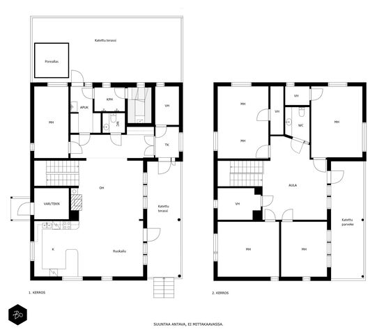 Etusivu / Varsinais-Suomi / Lieto / Kiusalankuja 46 1 / 1 Kiusalankuja 46 Yliskulma, Lieto | Omakotitalo | 7h+avok+2wc+khh+kph+s+4vh+parveke+kuisti+patio+savusauna+ulkosauna+talousrakennus 399 000 € Velaton hinta 250,0 m2 Asuinpinta-ala 2010 Rakennusvuosi Hurmaava kokonaisuus Liedon YliskulmallaLiedon Yliskulman rauhaisissa maisemissa odottaa harvinainen koti, joka yhdistää laadukkaan asumisen, luonnon läheisyyden ja tilan tuomat mahdollisuudet. Vuonna 2010 valmistunut, huoneistoalaltaan 250 m² kokoinen omakotitalo sijoittuu jykevälle kalliopohjaiselle rinnetontille, jota ympäröi yli 2,7 hehtaaria omaa maata. Kaksi kiinteistöä muodostavat kokonaisuuden, jonka kaltaisia tulee harvoin tarjolle.Päärakennuksen lisäksi pihapiiriin kuuluu talousrakennus, tunnelmallinen pihasauna, perinteinen hirsinen savusauna sekä oma lampi, jonka äärellä arki unohtuu. Myös ratsastusta harrastavalle paikka tarjoaa loistavat puitteet omalla ratsastuskentällään.Talo on suunniteltu vastaamaan isommankin perheen tarpeisiin. Kahteen kerrokseen jaettu pohjaratkaisu yhdistää tilan, toiminnallisuuden ja tyylin onnistuneesti. Yläkerrasta löytyy neljä reilunkokoista makuuhuonetta, joista yksi toimii päämakuuhuoneena. Käytännölliset vaatehuoneet 3 kpl, arjen keskuksena toimiva oleskelutila sekä katettu parveke tuovat mukavuutta jokapäiväiseen elämään.Alakerrassa sijaitsevat muun muassa kodin sydän olohuone ja keittiö sekä ruokailutila. Lisäksi kerroksessa on makuuhuone, saunaosasto, kodinhoitohuone ja runsaasti säilytystilaa. Kaksi suurta, katettua terassia kruunaavat kokonaisuuden toiseen niistä on upotettu oma ulkoporeallas.Kodissa on ajattomat materiaalit ja hyväkuntoiset pinnat. Tunnelma on rauhallinen ja kutsuva, ja ympäröivä luonto tuo siihen oman lisänsä.Tämä koti sopii täydellisesti luonnon rauhaa, yksityisyyttä ja aktiivista elämäntapaa arvostavalle. Savusaunan lämmössä tai omassa metsässä samoillen on helppo unohtaa kiireet ja nauttia elämästä. Liedon keskustan palvelut ovat silti lyhyen ajomatkan päässä täällä yhdistyvät maalaisidylli ja arjen sujuvuus poikkeuksellisella tavalla.Tule ja koe tämä ainutlaatuinen kokonaisuus itse.Esittelyt ja lisätiedot:Mauno Heinonen LKV040 937 2247 | mauno.heinonen@bo.fi Kiinnostaako tämä kohde?Ota meihin yhteyttä tai jätä viesti Mauno Heinonen kiinteistönvälittäjä LKV, KiAT, partner 040 937 2247 mauno.heinonen@bo.fi Tutustu välittäjään Varaa aika kalenteristani RakennusRakennusvuosi (aloitettu)2009Käyttöönottovuosi2010RakennusmateriaaliPuuKattotyyppiHarjakattoKateTiilikateAsuinpinta-ala250,0 m2 (250,0 m2)Lisätietoja pinta-alastaRakennuspiirustusten ja rakennuslupa-asiakirjojen mukaan asunrakennuksen kerrosala on 283m2 ja huoneistoala 250m2. Mainitut pinta-alat voivat poiketa virallisista nykystandardien mukaan mitattavista pinta-aloista olennaisestikin. Huoneiston todellinen pinta-ala voi siis olla esitteessä mainittua pienempi tai suurempi. Kohde myydään kokonaisuutena ja kohteen myyntihinta ei perustu rakennusten pinta-aloihin, vaan kokonaisuuteen.Kerrokset2Muut tilat0,0 m2Lämmitysjärjestelmän kuvausSähkö, ilmalämpöpumppuLämmön jakotapaSähköpatterilämmitys, sähköinen lattialämmitys, ilmalämpöpumppu, muuHuoneluku7h+avok+2wc+khh+kph+s+4vh+parveke+kuisti+patio+savusauna+ulkosauna+talousrakennusKeittiön kuvaus, lisätiedot ja varustusVaalea Moderni keittiö, jossa reilusti kaappi- ja työtilaa. Keittiön kalusteovet, työtasot ja yläkaapit uusittu 2024. Seinäpinnat maalattu, poltettu hirsipaneeli. Keittiön muut varusteetLiesituuletin, astianpesukone, irralliset kaapistotLiesiInduktioliesi, erillisuuniKeittiön lattiamateriaaliVinyyliKeittiön seinien materiaaliMaalattuPesutilojen kuvaus, lisätiedot ja varustusTyylikäs moderni kylpyhuone. Kylpyhuoneessa kaksi sadesuihkua.Kylpyhuoneen varustusLattialämmitys, suihkuKylpyhuoneen lattiamateriaaliLaattaKylpyhuoneen seinämateriaaliKaakeliSaunaAsunnossa on saunaSaunan kuvaus, lisätiedot ja varustusTodella tilava tunnelmallinen sauna, jossa lauteisiin integroitu pilarikius Erillinen ulkosauna sekä savusauna. Saunasta ikkuna ulos.Saunan lattiamateriaaliLaattaSaunan seinämateriaaliPuuWC-tilojen kuvausAlakerran wc:n lattia ja seinät laatoitettu. Yläkerran wc:n seinät laattaa ja lattiat vinyylilankkua. Alakerran ja yläkerran wc:ssä malja allas, alakaapit ja peili. Varustus: lattialämmitys, peilikaappi, bidee-suihkuLukumäärä: 2KodinhoitohuoneTilava valoisa kodinhoitohuone, jossa reilusti säilytystilaa ja kulku suoraan ulos. Lattiat ja seinät laattaa.Varustus: pesukoneliitäntä, lattiakaivo, pöytätasoMakuuhuoneen kuvaus, lisätiedot ja varustusViisi isoa makuuhuonetta. Lattiat vinyylilankkua ja seinät maalattuja.Lukumäärä: 5Lattiamateriaalit: vinyyliSeinämateriaalit: maalattuOleskelutilojen kuvaus, lisätiedot ja varustusTodella tilava valoisa olohuone, jossa lattiat vaaleaa vinyylilankkua uusittu 2023. Seinät maalattuja. Varaava takka.Lattiamateriaalit: vinyyliSeinämateriaalit: maalattu, tapettiMuut tilatKatettu terassi.TulisijaVaraava takkaTakkatiedotTakkaMuut säilytystilatVaatehuoneTehdyt korjaukset-Laminaattialattia vaihdettu vinyylilankkuun 2023. -Yläkerrassa porrasaukon vieressä oli alunperin 2 pienempää makuuhuonetta, väliseinä poistettu 2022 ja samalla tehty vaatehuone. -Ulkoverhouksen maalaus 2023. -Sisäseinät maalattu 2023Muuta kauppaan kuuluvaaSavusaunan vieressä palju. Katetulla terassilla ulkoporeallas. KuntoHyväEnergiatodistusKylläEnergialuokkaC2018Lisätietoja energiatodistuksestaVoimassa 28.8.2034 saakka. KiinteistötiedotKiinteistötunnus423-420-1-52, 423-420-1-53Kortteli/Kiinteistön nimiRautiainen ja TurkutalonmetsäTyyppiTilaTontin tyyppiTasamaatonttiTontin koko2,78 haTontin omistusOmaPanttikirjat500 000,00 €Rasitukset ja rasitteetSähköisiä panttikirjoja 3 kappaletta, yhteensä 500 000,00 euroa, jotka luovutetaan ostajalle kauppahintaa vastaan rasituksista vapaana. 