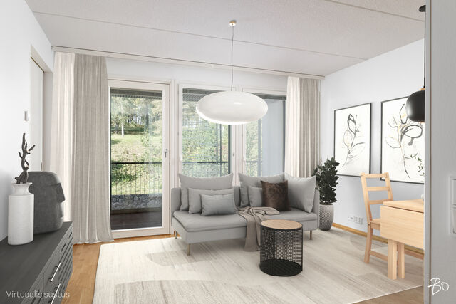 Etusivu / Keski-Suomi / Jyväskylä / Väinönkatu 15 1 / 1 Väinönkatu 15 Keskusta, Jyväskylä | Kerrostalo | 2h,k,kph,s, lasitettu parveke 183 000 € Velaton hinta 52,0 m2 Asuinpinta-ala 187,20 €/kk Hoitovastike 2013 Rakennusvuosi Tervetuloa tutustumaan hyväkuntoiseen Citykotiin! Tämä 52-neliöinen saunallinen kaksio on loistavalla pohjalla. Sisään saavuttaessa säilytystilat löytyvät oikealta puolelta peiliovikaapiston muodossa. Vasemmalle avautuu todella tilava ja käytännöllinen kylpyhuone, johon varattu hyvin tilaa kodinhoidolle ja muille askareille. Tyyli ja kunto kylpyhuoneessa ja saunassa on hyvä. Neliöihin nähden tämän asunnon keittiöön on panostettu paljon. U-muotoisen keittiön isot tasotilat tuovat samalla kaappitilaa ja kokata voi katsoen olohuoneen ja Harjun vihreiden kukkuloiden suuntaan. Olohuoneen lattiasta kattoon ulottuvat ikkunat tuovat valoa koko asuntoon ja koko asunnon levyinen lasitettu parveke toimii olohuoneen jatkeena. Parvekkeelle saat sijoitettua sekä sohvaryhmän että ruokailupöydän. Makuuhuone on olohuoneen vasemmalla puolella liukuoven takana. Makuuhuoneessa on tavanomaista enemmän säilytystilaa syvennetyn peiliovikaapin muodossa. Asunnon kunto on hyvä. Asuntoa koristaa nätti parkettilattia ja seinät maalattuja sekä helposti muokattavissa valkoisen sijasta omaan värimaailmaan. Asunto Oy Harjunportti valmistui vuonna 2013 omalle tontilleen Harjun kupeeseen. Se muodostaa yhdessä viiden muun taloyhtiön kanssa viihtyisän Harjunkulma-korttelin vehreine sisäpihoineen. Vesikiertoinen lattialämmitys kaukolämmöllä lämmittää nämä 46 nykyaikaista asuntoa kuudessa eri kerroksessa. Asunnossa on huoneistokohtainen ilmanvaihtokone. Luksusta on se, että yhtiön lämpimään autohalliin laskeudutaan suoraan hissillä. Tämän kaupan yhteydessä on mahdollisuus ostaa lämmin autohallipaikka 22 000 eurolla.Toisen kerroksen asunto on kuitenkin selkeästi katutasoa ylempänä. Sijainti on ydinkeskustassa mutta kuitenkin rauhallinen. Lähin Harjun lenkkeilyreitti avautuu oveltasi ja keskustan kehittyvät palvelut ovat myös kävelymatkan päässä. Varaa oma aikasi esittelyyn! Voit yhteydenotossa jo valmiiksi ilmoittaa sinulle sopivia ajankohtia esittelylle. Tätä siistiä asuntoa välittää: Antti Saleva Bo LKV Jyväskylä 041 315 3527 antti.saleva@bo.fi Kiinnostaako tämä kohde?Ota meihin yhteyttä tai jätä viesti Antti Saleva asuntomyyjä, KTM, partner 041 315 3527 antti.saleva@bo.fi Tutustu välittäjään Varaa aika kalenteristani HuoneistoOsakkeet1454-1614HallintamuotoAsunto-osakeyhtiöHuoneluku2h,k,kph,s, lasitettu parvekeKerros/Kerroksia2/6Asuinpinta-ala52,0 m2Muut tilat0,0 m2Lisätietoja pinta-alasta Isännöitsijäntodistuksen mukainen. Yhtiöjärjestyksen mukainen.NäkymätKoko asunnon levyinen lasitettu parveke harjun suuntaan. Iltapäivän ja illan aurinko.ParvekeLasitettuParvekkeen ilmansuuntaLuodeHissiTaloyhtiössä on hissiKeittiön kuvaus, lisätiedot ja varustusAsunnon kokoon nähden suuri keittiö. U-muotoinen ja paljon taso- ja kaappitilaa. Kokatessa näkyvyys olohuoneeseen.LiesiKeraaminen liesi, erillisuuniKeittiön työtasojen materiaaliLaminaattiKeittiön lattiamateriaaliParkettiKeittiön seinien materiaaliMaalattu, osalaatoitusPesutilojen kuvaus, lisätiedot ja varustusIso kylpyhuone, jossa pyykkikaapisto. Allaskaappi on leveä ja hyvillä säilytystiloilla. Bideesuihku ja pesutornille hyvä tila.Kylpyhuoneen varustusSuihkuseinä, pesukoneliitäntä, lattialämmitys, wc-istuin, suihku, peilikaappi, kiinteät valaisimet, kylpyhuonekaapistoKylpyhuoneen lattiamateriaaliLaattaKylpyhuoneen seinämateriaaliKaakeliSaunan kuvaus, lisätiedot ja varustusHarvian 3-hengen sauna erillisellä kaivolla.Saunan lattiamateriaaliLaattaSaunan seinämateriaaliPuuMakuuhuoneen kuvaus, lisätiedot ja varustusMakuuhuoneessa isot liukuovikaapistot ja oikealla puolella syvennetty vaatehuonetyylinen säilytystila.Lukumäärä: 1Lattiamateriaalit: laminaattiSeinämateriaalit: maalattuOleskelutilojen kuvaus, lisätiedot ja varustusLattiamateriaalit: parkettiSeinämateriaalit: maalattuKuntoHyvä Kiinteistö- ja yhtiötiedotYhtiön nimiAsunto Oy Jyväskylän HarjunporttiTontin omistusOmaTontin koko9 138,00 m2Käyttöönottovuosi2013RakennusmateriaaliBetoniKattotyyppiTasaKateKumibitumiLämmitysjärjestelmäKaukoTehdyt korjaukset ja remontitIlmanvaihtokanavien puhdistus ja perussäätö 2022 Palovaroittimien uusiminen 2024 Latausinfran toteuttaminen autohallipaikoille 2024 Tiedossa olevat tulevat korjaukset/remontitHallituksen kunnosspitotarveselvitys 2025-2029: Parvekekattojen vuotojen sekä parvekkeiden etuosien valutäytteiden puutteiden korjaaminen.Autotallit33Lainat1 226 817,25 €Kiinnitykset6 600 000,00 €IsännöitsijäJyväskylän Kiinteistöpalvelu Oy Vapaudenkatu 40-42, 40100 Jyväskylä Jarmo Paloniemi 010 7786 700KiinteistönhoitoHuoltoyhtiöYhtiön tilat ja varusteluKuivaushuone, urheiluvälinevarasto, kaapeli-tv, huoneistokohtaiset varastot, lastenvaunuvarasto. Muita tietojaLisätietoa kaavoituksestaKartta.jkl.fiVapautuuHeti AsumiskustannuksetHoitovastike187,20 €/kk (3,60 €/m2)Rahoitusvastike526,76 €/kk (10,13 €/m2)Yhtiövastike yhteensä713,96 €Vesimaksun perusteOma mittariMuut maksut / lisätietoa maksuistaVesimaksu mittarin mukaan, tasaushinnat kylmävesi 5,50 €/m3 ja lämminvesi 11,00 €/m3. HintaMyyntihinta125 509,23 € (2 413,64 €/m2)Velkaosuus57 490,77 € (1 105,59 €/m2)Velaton hinta183 000,00 € (3 519,23 €/m2)MaksutapaKäteinen. Sinua voisi kiinnostaa Asunnon hinta-arvio ja arviokäynti Asunnon hinta-arvio ja arviokäynti Mitä hinta-arvio maksaa tai miten arviokäyntiä varten kannattaa valmistautua? Katso vastauksemme usein kysyttyihin ky… Sneak Peek® Sneak Peek® Sneak Peek® -palvelumme on askeleen edellä! Löydä alueesi uusimmat ja upeimmat asunnot jo ennen kuin ne ilmestyvät as… Asuntovahti Asuntovahti Etsimässä uutta asuntoa? Aseta itsellesi Bo-asuntovahti. Saat tiedon het