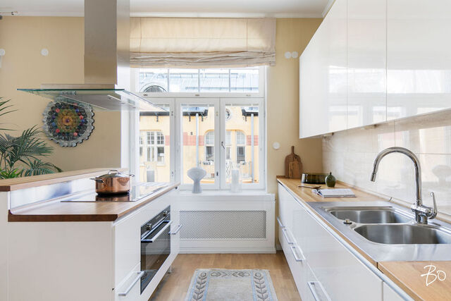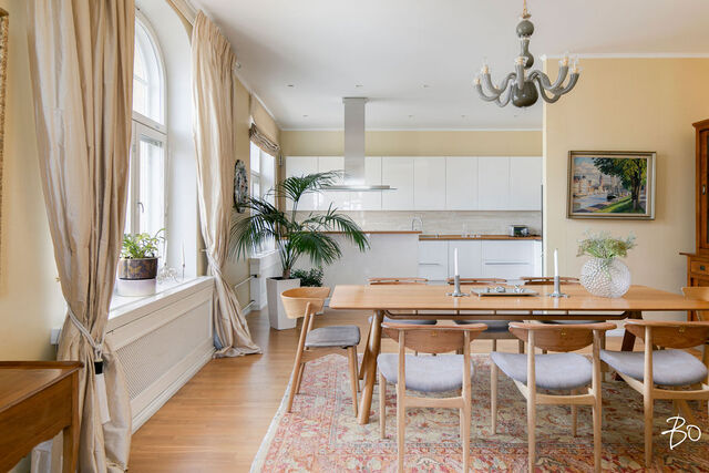 Etusivu / Uusimaa / Helsinki / Laivastokatu 6 1 / 1 Laivastokatu 6 Katajanokka, Helsinki | Kerrostalo | 6h+avok+aula+2 kph+3 vh+2 parveketta (Yj: 6h+k) 2 290 000 € Velaton hinta 213,5 m2 Asuinpinta-ala 1 323,70 €/kk Hoitovastike 1907 Rakennusvuosi Uniikki merinäköala Katajanokalla!Kun astut Katajiston porrashuoneistoon, pääset nauttimaan välittömästi porrashuoneen kauniista koristemaalauksista ja jykevästä tunnelmasta. Lehtikuusen korttelissa sijaitseva rakennusmestari Edvard Löppösen suunnittelema arvokiinteistö Asunto Oy Helsingin Katajisto on valmistunut vuonna 1907 ja edustaa suomalaista jugendtyyliä jo nimeään myöden. Huoneiston avarasta aulasta aukeaa poikkeuksellisen upea merinäköala, joka vain voimistuu pyöreäkulmaisessa olohuoneessa jatkuen aina työhuoneeseen ja parvekkeelliseen päämakuuhuoneeseen. Nämä upeat, esteettömät merinäkymät avautuvat hienosti Pohjoisrantaan, Tervasaareen ja Korkeasaareen, kuten myös moderniin Kalasatamaan: olet kuin valtamerilaivan komentosillalla! Päämakuuhuoneen omalta katetulta parvekkeelta voit illan hämärtyessä ihastella niin kaupungin valoja kuin uutta uhkeaa Kruunuvuorensiltaakin. Olohuoneen viereinen avara avokeittiö ruokailutiloineen avautuu kauniisti Katajanokankadulle, jossa pääset aistimaan korttelille tyypillistä vahvaa tunnelmaa.Tässä kodissa on kolme makuuhuonetta, joista kahdessa on oma katettu parveke. Nykyisen työhuoneen voi halutessaan muuttaa neljänneksi makuuhuoneeksi toimivan pohjaratkaisun ansiosta. Huoneet ovat avaria ja huonekorkeus on kauttaaltaan lähes 3,2 metriä. Juuri remontoidut kaksi isoa kylpyhuonetta ovat varustelutasoltaan laadukkaita ja lisäävät asumisviihtyvyyttä varsinkin lapsiperheelle. Tilavalla hissillä pääset kätevästi suoraan taloyhtiön kellari- ja saunatiloihin.Asunto Oy Helsingin Katajistoa on hoidettu hyvin vanhan talon arvon mukaisesti. Kauniit porrashuoneet alkuperäisine ovineen ja koristemaalauksineen luovat jykevää tunnelmaa.Myös taloyhtiön sisäpihaa on hoidettu huolella: sen keskipisteenä on yli 100-vuotias vehreä vaahtera, jonka lisäksi yrtti- ja kukkaistutukset sekä valtava seinää koristava köynnöshortensia luovat viehättävän pihapiirin.Katajanokka on tänä päivänä maamme uljain ja moni-ilmeisin jugendkaupunginosa ja myös kansainvälisesti ainutlaatuinen. Se on 52 jugendtalon tiivis arkkitehtooninen kokonaisuus, joka on viime vuosina kehittynyt valtavasti. Kauppakeskus Jungmanni, hyvät ruokakaupat, koirapuistot, päiväkodit ja koulu sekä korttelin ravintolat ja kahvilat, unohtamatta sympaattista Lippakioskia, takaavat, että tässä tunnelmallisessa ja rauhallisessa kaupunginosassa asukkaat viihtyvät. Meri venesatamineen ja ulkoilureitteineen on aivan vieressä, ja Kauppatorille ja keskustaan on vain muutama sata metriä.Jos pidät arvokkaasta ja jykevästä arkkitehtuurista, tässä on sinun kotisi.Sydämellisesti tervetuloa ihastumaan tähän merelliseen harvoin tarjolla olevaan kotiin, jota esittelen yksityisesittelyin.Krista Malmivaara040-521 9263 tai krista@bo.fi Kiinnostaako tämä kohde?Ota meihin yhteyttä tai jätä viesti Krista Malmivaara ylempi kiinteistönvälittäjä YKV, LKV, KIAT, FM, partner 040 521 9263 krista@bo.fi Tutustu välittäjään Varaa aika kalenteristani HuoneistoOsakkeet1451-1664HallintamuotoAsunto-osakeyhtiöHuoneluku6h+avok+aula+2 kph+3 vh+2 parveketta (Yj: 6h+k)Kerros/Kerroksia5/6Asuinpinta-ala213,5 m2Muut tilat0,0 m2Lisätietoja pinta-alastaPinta-alaa ei ole mitattu SFS 5139 standardin mukaisesti. Edellä mainittu pinta-ala saattaa tämän ikäisessä kohteessa poiketa olennaisestikin huoneiston nykyisen ja rakentamisaikaisen mittaustapojen ja standardien mukaan laskettavasta pinta-alasta. Huoneiston todellinen pinta-ala voi siis olla yhtiöjärjestyksessä, isännöitsijäntodistuksessa ja esitteessä mainittua pienempi tai suurempi. Toimeksiantajan ilmoittama. Yhtiöjärjestyksen mukainen. Isännöitsijäntodistuksen mukainen.NäkymätHuoneistosta on upeat, esteettömät merinäkymät Pohjoisrantaan, Tervasaareen ja Korkeasaareen, kuten myös moderniin Kalasatamaan. Katajanokankadun puolelle kauniit jugentalonäkymät 5. kerroksesta sekä yhdestä makuuhuoneesta vehreä näkymä taloyhtiön kauniille sisäpihalle.ParvekeUlostyönnettyParvekkeen ilmansuuntaPohjoinen, itäHissiTaloyhtiössä on hissiKeittiön kuvaus, lisätiedot ja varustusKeittiö on remontoitu edelliseen osakkaan toimesta vuonna 2002. Tämän jälkeen kodinkoneita on uusittu viime vuosina. Kahvikone Siemens, 2024. Viinikaappi Siemens, 2024 Keittiössä on runsaasti kaappeja ja säilytystilaa. Työtasot ovat massiivitammea.LiesiMuu liesi/uuni, erillisuuni, liesitasoKeittiön työtasojen materiaaliPuuKeittiön lattiamateriaaliParkettiKeittiön seinien materiaaliTapetti, osalaatoitusPesutilojen kuvaus, lisätiedot ja varustus1. kylpyhuone: Kylpyhuoneen vesivahinkokorjaus taloyhtiön kustannuksella 1-8/2025. Lopputarkastus pidetty 30.09.2025. Seinälaatta: Fap, Maku, Sand Out, 30x60cm, ABL Laatat Oy Lattialaatta: Fap, Maku, Sand naturale, macromosaico 5x5cm, ABL Laatat Oy Kalusteet ovat puusepällä mittatilaustyönä teetettyjä. Grohen hanat (2014). Suihku ja wc. Katossa led-valaistus, Flosin seinävalaisin, lattialämmitysvaraus. 2. kylpyhuone: Ilmoitettu muutostyöstä 24.3.2025, märkätilaremontti. Muutostyö on lopputarkastettu 30.09.2025. Uudet hanat: allas + kylpyamme Grohe. Kylpyhuoneessa on sekä suihku ja amme ja myös wc. Kylpyhuoneen varustusSuihkukaappi, lattialämmitys, wc-istuin, suihku, peili, kiinteät valaisimet, asennettuja erikoisvarusteitaKylpyhuoneen lattiamateriaaliKivi, laattaKylpyhuoneen seinämateriaaliMuuKodinhoitohuoneKodinhoitotila on sijoitettu kätevästi käytäväsyvennykseen.Varustus: pesukone, pesukoneliitäntä, kuivausrumpu, kuivauskaappiLattiamateriaalit: laattaSeinämateriaalit: maalattuSaunan lattiamateriaaliLaattaMakuuhuoneen kuvaus, lisätiedot ja varustus1. päämakuuhuoneen 