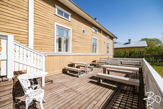 Etusivu / Satakunta / Pori / Satamapuisto 34 1 / 1 Satamapuisto 34 Reposaari, Pori | Liiketila | 5h+k+2xwc 189 000 € Velaton hinta 270,0 m2 Asuinpinta-ala 320,0 m2 Kokonaispinta-ala 1838 Rakennusvuosi Suomen vanhin toimiva ravintola rakennuksineen Reposaaressa!Perinteistä maankuulu Reposaaren Ravintola rakennus on nyt saatavilla, ja kaupan yhteydessä tulee tietysti haluttaessa ravintolanliiketoiminta. Monen mielestä Reposaaren parhaalla liikepaikalla vuonna 1834 rakennettu hirsirunkoinen jykevä talo liiketoimintaan. Reposaaren ravintola on yksi suomen vanhimmista jollei vanhin toiminnassa oleva ravintola, rakennettu 1838!* Oma tontti* Kaukolämpö*Uusittu peltikatto*Runsaasti rakennusoikeutta*Kahteen ilmansuuntaan terassit*Kaavamääräys majoitus-. huvi-, ja viihdetarkoitusta palvelevien rakennustan korttelialue *Heti valmiina liiketoimintaan*kokonaisrakennusoikeus 550 m2Yksityisnäytöt sopimuksen mukaan.Ota yhteyttä ja kysy lisää:Mikko Helminen LKV, puh 0500538602, sposti mikko.helminen@bo.fi Kiinnostaako tämä kohde?Ota meihin yhteyttä tai jätä viesti Mikko Helminen kiinteistönvälittäjä LKV, LVV, KiAT, MBA, partner 0500 538 602 mikko.helminen@bo.fi Tutustu välittäjään RakennusRakennusvuosi (aloitettu)1838Käyttöönottovuosi1838RakennusmateriaaliHirsiKattotyyppiHarjakattoKatePeltiKaton kuntoHyväAsuinpinta-ala270,0 m2 (320,0 m2)Kerrokset1Muut tilat50,0 m2Lämmitysjärjestelmän kuvausKaukoLämmön jakotapaVesikiertoinen patterilämmitysHuoneluku5h+k+2xwcKeittiön kuvaus, lisätiedot ja varustusAmmattitason keittiö, mitä käytetään ravintolatoiminnassa. Jääkaappi 2x, erillinen pakastin, liesi 2x, ammattitason astianpesukone, ja kylmiöKeittiön muut varusteetAstianpesukone, kiinteät valaisimet, liesituuletin / hormiLiesiSähköliesiKeittiön työtasojen materiaaliPuu, metalliKeittiön lattiamateriaaliMuoviKeittiön seinien materiaaliKaakeli, maalattuWC-tilojen kuvaus2x erillinen wc tila ravintolan asiakkaille, sekä henkilökunnan wcVarustus: lattiakaivo, bidee-suihkuLukumäärä: 3Lattiamateriaalit: muoviSeinämateriaalit: maalattuMuut tilatKatso pohjakuva, työhuone, ruokailusali, eteinen, tuulikaappi, pannuhuone, aula, ja pukuhuone. Kabinetit 2 kpl, ja ns karvalakkipuoli.Muut säilytystilatUlkovarasto, kellarikomero, ullakkoTehdyt korjaukset2012 Uusi katto 2005-2022 yleistä pintaremonttiaKuntoTyydyttäväLisätietoja energiatodistuksestaKohteelle ei lain mukaan tarvita energiatodistusta. KiinteistötiedotKiinteistötunnus609-71-9-4TyyppiOmakotitaloTontin tyyppiTasamaatonttiTontin koko2 379,00 m2Tontin omistusOmaLisätietoja tontistaTie perilleVesijohtoKunnanViemäriKunnan AsumiskustannuksetLämmitys500,00 €Kiinteistövero600,00 € HintaVelaton hinta189 000,00 € (700,00 €/m2)Myyntihinta189 000,00 € (700,00 €/m2)VapautuuSopimuksen mukaanMaksuehtoKäteinen. Sinua voisi kiinnostaa Asunnon hinta-arvio ja arviokäynti Asunnon hinta-arvio ja arviokäynti Mitä hinta-arvio maksaa tai miten arviokäyntiä varten kannattaa valmistautua? Katso vastauksemme usein kysyttyihin ky… Sneak Peek® Sneak Peek® Sneak Peek® -palvelumme on askeleen edellä! Löydä alueesi uusimmat ja upeimmat asunnot jo ennen kuin ne ilmestyvät as… Asuntovahti Asuntovahti Etsimässä uutta asuntoa? Aseta itsellesi Bo-asuntovahti. Saat tiedon heti, kun unelmiesi asunto tulee myyntiin. Bo Match Bo Match Kun asuntounelmat ja unelmien asunnot kohtaavat, syntyy Bo Match. Tutustu uudenlaiseen tapaan käydä asuntokauppaa.