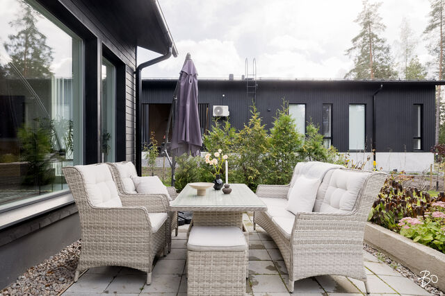 Etusivu / Päijät-Häme / Lahti / Sompionkuja 7 1 / 1 Sompionkuja 7 Pirttiharju, Lahti | Omakotitalo | Oh, rt, avok, 3mh, khh, ph/wc, s, eril.wc, katettu terassi, ak. 380 000 € Velaton hinta 109,0 m2 Asuinpinta-ala 124,0 m2 Kokonaispinta-ala 2022 Rakennusvuosi Moderni omakotitalo hyvällä ja rauhallisella sijainnilla Pirttiharjussa.Tämä trendikäs ja harmoninen 109 m2 koti on valmistunut v. 2022. Talossa on kolme hyvän kokoista makuuhuonetta. Olohuone, ruokailutila ja avokeittiö ovat samaa avaraa tilaa, jonka lattiasta lähes kattoon ulottuvat ikkunat avautuvat takapihan suuntaan. Tyylikäs keittiö on hyvin varusteltu ja on saareke sekä mukavasti kaappi- ja laskutilaa. Ruokailutilassa on varaava takka ja olohuoneen puolelle saa soviteltua isommankin sohvaryhmän. Tilavasta kodinhoitohuoneesta on käynti sekä pesuhuoneeseen että takapihalle. Pesuhuoneessaon myös kodin toinen wc-istuin ja käynti tunnelmalliseen saunaan. Lisäksi talosta löytyvät erillinen wc ja eteinen. Suojaisan mutta aurinkoisen takapihan puolella on sekä katettu terassi että avoterassi. Pihalla on nurmikkoa ja erilaisia istuksia mm. arvoperennoja, omena, kirsikka ja luumupuu sekä marja-aroniaa raja-aitana. Polttopuille on katos ja puutarhavälineille pihavarasto. Myös etupihan puolella on kauniita istutuksia sekä autokatos ja parkkitilaa.Talo on suunniteltu energiataloudelliseksi ja lämmitysjärjestelmänä on poistoilmapumppu vesikiertoisella lattialämmityksellä, lisäksi on varaava takka ja ilmalämpöpumppu. Koneellinen ilmanvaihto lämmöntalteenotolla. 840m2 vuokratontti. Kodin sijainti on mitä parhain sillä takapiha rajoittuu puistoalueeseen. Ulkoilu- ja hiihtoladut lähtevät lähes pihalta. Moottoritielle on nopeat yhteydet ja bussilla pääsee kätevästi. Hollolan palvelut lähellä ja Lahden keskustaankin vain n. 5km. Asuinalue on viihtyisä ja lapsiperheiden suosima.Tässä perheellesi ihana muuttovalmis koti!Tämä kohde esitellään yksityisnäytöin, joten varaa oma esittelyaika.Lisätietoja ja esittelyt:Hannele Leivo-Savioja| 0400 295 104 | hannele@bo.fi IKiinteistönvälittäjä LKV, Kiat, PartnerBo LKV Lahti Kiinnostaako tämä kohde?Ota meihin yhteyttä tai jätä viesti Hannele Leivo-Savioja kiinteistönvälittäjä LKV, KiAT, partner 0400 295 104 hannele@bo.fi Tutustu välittäjään Varaa aika kalenteristani RakennusRakennusvuosi (aloitettu)2021Käyttöönottovuosi2022RakennusmateriaaliPuu, betoni, teräsRakennusmateriaalien kuvausAlapohja: Lattiapinnoite, betonilaatta,eps 200, salaojasora, tiivistetty sora. Ulkoseinä: julkisivupaneeli, koolaus, kipsilevy, pystyrunko+mineraalivilla, höyrynsulkumuovi, vaakakoolaus+mineraalivilla, kipsilevy. Vesikatto ja yläpohja: kate, pystysaumakate, ruoteet, rimat+aluskate,nr-ristikot, mineraalivilla+puhallusvilla, höyrynsulkumuovi, koolaus, sisäkattoverhous. KattotyyppiHarjakattoKateRivipeltikateKaton kuntoV.2022 hyväAsuinpinta-ala109,0 m2 (124,0 m2)Lisätietoja pinta-alastaHuoneistoala: 109m2 Kerrosala: 124m2 Kokonaisala: 124m2Kerrokset1Muut tilat15,0 m2LämmitysVesikiertoinen lattialämmitys, uuni/takka, ilmalämpöpumppu. Hyvä v.2022Lämmitysjärjestelmän kuvausPoistoilmalämpöpumppuHuonelukuOh, rt, avok, 3mh, khh, ph/wc, s, eril.wc, katettu terassi, ak.Keittiön kuvaus, lisätiedot ja varustusTyylikäs avokeittiö. Varustus: keittiökalusteet, saareke, jääkaappi, pakastekaappi, astianpesukone, uuni, induktioliesi, liesituuletin. Lattia vinyyli ja välitilassa metrolaatta. Pesutilojen kuvaus, lisätiedot ja varustusTilava pesuhuone, jossa suihku, wc-istuin. Lattia laatoitettu ja seinät kaakelia. Vesikiertoinen lattialämmitys.SaunaAsunnossa on saunaSaunan kuvaus, lisätiedot ja varustusTunnelmallinen sauna, jossa tummat seinäpaneelit ja vaaleat lauteet. Sähkökiuas. Lattia laatoitettu.WC-tilojen kuvausErillinen wc. Varustus: allas ja -kaapisto, peilikaappi, seinäkaappi, wc-istuin ja käsisuihku. Lattia laatoitettu ja seinät kaakelia. KodinhoitohuoneKodinhoitohuoneessa reilusti kaappitilaa, vesipiste ja pesukoneliitäntä. Lattia laatoitettu ja seinät maalattu. Käynti takapihalleMakuuhuoneen kuvaus, lisätiedot ja varustusKolme makuuhuonetta, joissa vaatekaapistot. Lattia vinyyliä ja seinät maalattu.Lukumäärä: 3Oleskelutilojen kuvaus, lisätiedot ja varustusTilava olohuone/ ruokailutila jossa isot ikkunat takapihan suuntaan. Lattia vinyyliä ja seinät maalattu. Ikkunoissa lamelliverhot.TulisijaTakka nuohottu 09.2025.TakkatiedotTakkaKuntoHyväLisätietoa kunnostaV,2022 valmistunut hyväkuntoinen taloEnergiatodistusKylläEnergialuokkaB2018Lisätietoja energiatodistuksestaVoimassa 09.04.2032 saakka. KiinteistötiedotKiinteistötunnus398-31-505-8-L1Kortteli/Kiinteistön nimiTonttiTyyppiTonttiTontin tyyppiTasamaatonttiTontin koko840,00 m2Tontin omistusVuokrattuTontin vuokrasopimus päättyy31.12.2071Tontin vuokra2 930,00 €Tontin vuokraajaLahden KaupunkiPanttikirjat400 000,00 €Lisätietoja tontistaSompiokujan tontti sijaitsee erillishinnoitellulla alueella. Lunastushinta on 60 000,00 € + 1575,00 € lohkomiskuluja ( 30.09.2025 saakka) Tie perilleVesijohtoKunnanViemäriKunnanRakennusoikeus200,0 m2 AsumiskustannuksetKiinteistövero494,00 €Muut maksut / lisätietoa maksuistaLämmitys - ja taloussähkö v. 2024 n. 9400 kWh. Vesi-ja jätevesi sekä puhtaanapito kulutuksen mukaan. HintaVelaton hinta380 000,00 €Myyntihinta380 000,00 € Vapautuu3kk kaupasta tai sopimuksen mukaan Sinua voisi kiinnostaa Asunnon hinta-arvio ja arviokäynti Asunnon hinta-arvio ja arviokäynti Mitä hinta-arvio maksaa tai miten arviokäyntiä varten kannattaa valmistautua? Katso vastauksemme usein kysyttyihin ky… Sneak Peek® Sneak Peek® Sneak Peek® -palvelumme on askeleen edellä! Löydä alueesi uusimmat ja upeimmat asunnot jo ennen kuin ne ilmestyvät as… Asuntovahti Asuntovahti Etsimässä uutta asuntoa? Aseta itsellesi Bo-asuntovahti. Saat tiedon heti, kun unelmiesi asunto tulee myyntiin. Bo Match Bo Match Kun asuntounelmat j