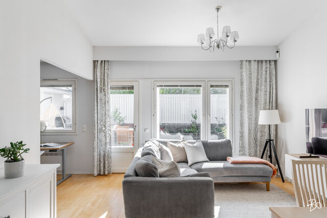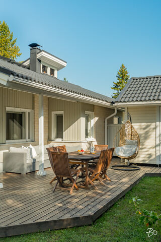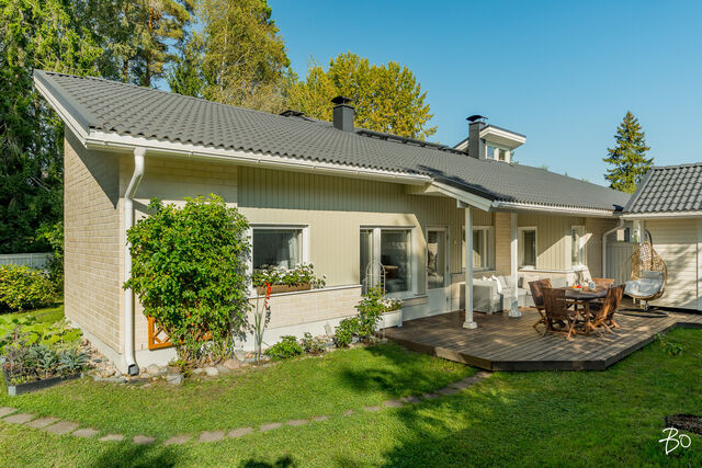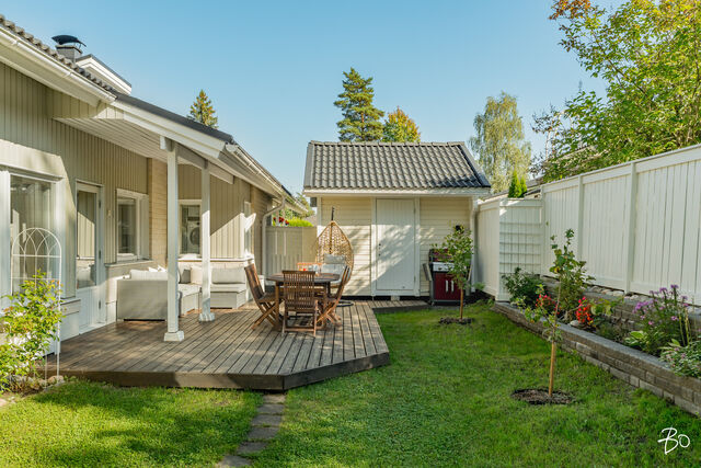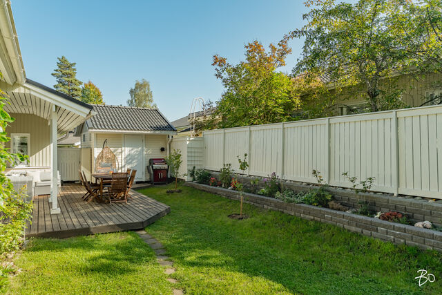 Etusivu / Uusimaa / Espoo / Kruununtie 19 1 / 1 Kruununtie 19 Mankkaa, Espoo | Paritalo | 5 h, k, vh, 2 x erill. wc, khh, kph, s (YJ:n mukaan 5h+k+s) 516 000 € Velaton hinta 124,0 m2 Asuinpinta-ala 248,00 €/kk Hoitovastike 1995 Rakennusvuosi Unelmien perheasunto Espoon Klovissa puutarhan värien sinfonia kutsuu!Kuvittele koti, jossa arki on yhtä aikaa vaivatonta ja kaunista. Kruununtien rauhallisella sijainnilla sijaitseva 124 m²:n asunto on juuri sellainen lämminhenkinen, toimiva ja täynnä yksityiskohtia, jotka tekevät elämästä nautinnollista.Tämä koti tarjoaa viisihuoneisen kokonaisuuden kahdessa kerroksessa. Tyylikkäästi remontoitu keittiö (2015) kutsuu kokkaamaan ja viihtymään. Vuonna 2021 uudistetut sauna- ja kylpytilat puolestaan hemmottelevat: oma sauna, upea kylpyhuone ja rentouttava amme tekevät arjesta pienen spa-hetken. Yläkerrassa on yksi makuuhuoneista ja erillinen wc täydellinen ratkaisu nuorelle, vieraille tai työtilaksi.Säilytystilaa on runsaasti kahdessa ulkovarastossa sekä sisätiloissa vaatehuoneessa ja portaiden alla. Autolle on oma katospaikka.Ja mikä tekee tästä kodista täysin uniikin? Suojaisa puutarhapiha, joka on kuin oma salainen paratiisi. Kymmenittäin erilaista kasvia hehkuvia kukkia, vehreitä puita ja runsaasti hyötykasveja muuttavat pihan värien ja tuoksujen ilotulitukseksi varhaisesta keväästä myöhäiseen syksyyn. Harvoin löytyy koti, jossa luonto ympäröi näin kauniisti jokaisena vuodenaikana.Arki sujuu loistavasti:Päiväkoti vain n. 200 m Suosittu Taavinkylän koulu n. 500 mLähikauppa n. 1,3 kmBussipysäkki n. 50 m - suora yhteys Taipolaan (Metro) ja Kauniaisiin (lähijunat)Kauniainen juna-asema n. 2,5 kmTapiola Golf n. 2 kmHelsingin Kamppi autolla vain n. 20 min Turunväylälle sekä Kilonväylälle on nopea yhteysTäällä yhdistyvät Klovin rauha, hyvät yhteydet ja kaikki palvelut, myös Mankkaan, kävelyetäisyydellä. Tämä on koti, jossa perhe-elämä saa kukoistaa ja jossa puutarha kertoo tarinaa rakkaudesta ja huolenpidosta.Kun astut ovesta sisään tunnet heti, että tämä ei ole vain asunto. Tämä on koti, joka on tehty elämistä ja viihtymistä varten.Nyt kannattaa olla nopea ja sopia aika yksityisnäytölle!Myynti ja esittelytCHRISTINA TAPOJÄRVILKV, LVV, KIAT, SISUSTUSSTAILAAJA, PARTNER044 977 7764 | christina@bo.fiMUTKATONTA ASUNTOKAUPPAA ASIANTUNTEVALLA JA NAPAKALLA OTTEELLA.Mielelläni autan sinuakin kodinvaihdossa yli 18 vuoden vankalla kokemuksella. Kiinnostaako tämä kohde?Ota meihin yhteyttä tai jätä viesti Christina Tapojärvi kiinteistönvälittäjä LKV, LVV, KiAT, sisustusstailaaja, partner 044 977 7764 christina@bo.fi Tutustu välittäjään Varaa aika kalenteristani HuoneistoOsakkeet388-511HallintamuotoAsunto-osakeyhtiöHuoneluku5 h, k, vh, 2 x erill. wc, khh, kph, s (YJ:n mukaan 5h+k+s)Kerros/Kerroksia1-2/2Asuinpinta-ala124,0 m2 (124,0 m2)Muut tilat0,0 m2Lisätietoja pinta-alastaPinta-alaa ei ole mitattu SFS 5139 standardin mukaisesti. Edellä mainittu pinta-ala saattaa tämän ikäisessä kohteessa poiketa olennaisestikin huoneiston nykyisen ja rakentamisaikaisen mittaustapojen ja standardien mukaan laskettavasta pinta-alasta. Huoneiston todellinen pinta-ala voi siis olla yhtiöjärjestyksessä, isännöitsijäntodistuksessa ja esitteessä olla mainittua pienempi tai suurempi. Isännöitsijäntodistuksen mukainen. Yhtiöjärjestyksen mukainen.Keittiön kuvaus, lisätiedot ja varustusKiintokalusteet Noblessa. Työtasot MDF.LiesiLiesitasoKeittiön lattiamateriaaliParkettiKeittiön seinien materiaaliMaalattuPesutilojen kuvaus, lisätiedot ja varustusLed-valaistus himmennyksellä.Kylpyhuoneen varustusKylpyamme, lattialämmitys, suihku, kiinteät valaisimetKylpyhuoneen lattiamateriaaliLaattaKylpyhuoneen seinämateriaaliKaakeliWC-tilojen kuvausSeinä-wc, led-valaistus himmennyksellä.Varustus: lattialämmitys, peilikaappi, bidee-suihkuLukumäärä: 2Lattiamateriaalit: laattaSeinämateriaalit: kaakeliKodinhoitohuoneVarustus: pesukoneliitäntä, pesuallas, lattialämmitys, lattiakaivo, pyykkikaapit, pöytätaso, keskuspölynimuriLattiamateriaalit: laattaSeinämateriaalit: kaakeliSaunan kuvaus, lisätiedot ja varustusKiuas Harvia Glow (etäohjattava), led-valaistusSaunan lattiamateriaaliLaattaSaunan seinämateriaaliPuuMakuuhuoneen kuvaus, lisätiedot ja varustusLukumäärä: 3Lattiamateriaalit: parkettiSeinämateriaalit: maalattu, tapettiOleskelutilojen kuvaus, lisätiedot ja varustusLattiamateriaalit: parkettiSeinämateriaalit: maalattu, tapettiMuut tilatEteisen ja viereisen vaatehuoneen lattia laattaa.Muutostyöt huoneistossa2015 Keittiö remontoitu 2017 Terassi rakennettu 2020 Khh, kph ja sauna remontoitu sekä eteinen ja viereinen vaatehuone (Märkätilaremonteissa erillinen valvoja, lopputarkastettu.) 2020 Uusittu lämminvesivaraaja 2023 Piha-aita rakennettu 2024 Kasvihuone sekä jatkettu terassia 2024 Palo- ja murtohälytyslaitteisto asennettu 2025 Ilmalämpöpumppu asennettu KuntoHyväTakkaVaraava kaakelitakka. Nuohous yhtiön toimesta.TakkatiedotTakka, muu Kiinteistö- ja yhtiötiedotYhtiön nimiAsunto Oy Espoon KruununiittyTontin omistusOmaTontin koko2 356,00 m2Käyttöönottovuosi1995RakennusmateriaaliPuu, tiili, elementtiKattotyyppiHarjakattoKateTiiliLämmitysjärjestelmäSähkö, ilmalämpöpumppu, muuEnergiatodistusKylläLisätietoja energiatodistuksestaViimeinen voimassaolopäivä 28.3.2035EnergialuokkaE2018Tehdyt korjaukset ja remontit1996 Yleisten kulkuväylien päällystäminen pihakiveyksellä 1997 Autolämmityspistokkeiden muuttaminen huoneistokohtaisen sähkö- järjestelmän piiriin ajastinkellotaulujen asennus 1997 ja 2000 Katuaidan maalaus 2000 Kuistien laatoitus 2002 Lämminvesivaraajien vaihto, savupiipun sadesuojien asennus 2003 Antennijärjestelmän digitaalivalmius, räystäslautojen maalaus 20042005 Asuinrakennusten muiden ulkopintojen maalaus 2006 Kattosiltojen asennuttaminen 20062007 Autokatoksen ulkopintojen maalaus 2008 Leikkipaikan perusparannus 2009 H