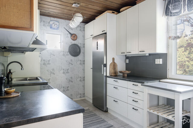 Etusivu / Pohjois-Savo / Kuopio / Kellotarhantie 2 1 / 1 Kellotarhantie 2 Kelloniemi, Kuopio | Omakotitalo | 4h,th,k,s,varasto,autotalli 219 000 € Velaton hinta 119,5 m2 Asuinpinta-ala 135,5 m2 Kokonaispinta-ala 1981 Rakennusvuosi Tervetuloa kodikkaaseen omakotitaloon, joka sijaitsee rauhallisella ja luonnonläheisellä Kellotarhantiellä täydellinen sijainti perheellesi!Tämä vuonna 1981 rakennettu omakotitalo tarjoaa hyvin hoidetun kodin, jossa on kolme makuuhuonetta, takkahuone, viihtyisä ja avoin olohuone-keittiö tilan. Olohuoneesta on käynti parvekkeelle, josta avautuu vehreät pihamaisemat. Talon kodikas tyyli huokuu lämpöä ja kutsuu viihtymään. Alakerrassa on lisäksi tilava varastohuone, joka soveltuu vaikka askartelu- ja puuhastelu tilaksi. Auton saat säältä suojaan autotalliin.Kodin piha tarjoaa suojaisen ja vehreän oleskualueen, jossa on tilaa niin lasten leikeille kuin aikuisten oleskeluunkin. Täällä voit nauttia elämästä rauhallisessa ympäristössä, kuitenkin lähellä olevia palveluita ja keskustaa sekä todella sujuvia liikenneyhteyksiä.Sijainti Kellotarhantiellä tarjoaa asukkailleen rauhallisen ja turvallisen elinympäristön, mikä tekee siitä ihanteellisen asuinpaikan lapsiperheelle. Alueella on erinomaiset ulkoilumahdollisuudet, sillä parin sadan metrin päästä löytyy uimaranta ja hiihtoladuille ja lenkkipoluille pääset lähes kotioveltasi. Tule ja tutustu tähän kodikkaaseen kotiin ja sen rauhalliseen ympäristöön! ota yhteyttä jo tänään ja anna itsellesi mahdollisuus löytää unelmiesi koti. Kiinnostaako tämä kohde?Ota meihin yhteyttä tai jätä viesti Maria Keinänen kiinteistönvälittäjä LKV, kaupanvahvistaja, partner 044 989 3404 maria@bo.fi Tutustu välittäjään Varaa aika kalenteristani RakennusRakennusvuosi (aloitettu)1980Käyttöönottovuosi1981Rakennusmateriaalien kuvausHarkko alakerta/puurunko yläkerta, tiiliKattotyyppiHarjakattoKateTiilikateAsuinpinta-ala119,5 m2 (135,5 m2)Lisätietoja pinta-alastaRakennuspiirustuksien mukaan huoneistoala on 119,5 m2 ja kerrosala 148 m2. Muita tiloja varasto 16 m2. Erillinen autotalli noin 25 m2.Kerrokset2Muut tilat16,0 m2LämmitysIlmalämmitys, muu. Lämmönvaihdin uusittu 2001Lämmitysjärjestelmän kuvausKaukoHuoneluku4h,th,k,s,varasto,autotalliKeittiön kuvaus, lisätiedot ja varustusUuni induktioliedellä (2022), jääkaappi (rosterinen 2022), astianpesukone, liesituuletinKeittiön työtasojen materiaaliLaminaattiKeittiön lattiamateriaaliLaattaKeittiön seinien materiaaliMaalattu, tapettiPesutilojen kuvaus, lisätiedot ja varustusAllaskaappi, lattialämmitys sähkölläKylpyhuoneen varustusWc-istuin, suihkuKylpyhuoneen lattiamateriaaliLaattaKylpyhuoneen seinämateriaaliKaakeliSaunaAsunnossa on saunaSaunan lattiamateriaaliLaattaSaunan seinämateriaaliPuuWC-tilojen kuvausVarustus: peilikaappi, bidee-suihkuLattiamateriaalit: laattaSeinämateriaalit: lasikuitutapetti, osalaatoitusKodinhoitohuoneVarustus: pesukoneliitäntä, pöytätasoLattiamateriaalit: laattaSeinämateriaalit: puuMakuuhuoneen kuvaus, lisätiedot ja varustusLukumäärä: 3Lattiamateriaalit: parketti, lautaSeinämateriaalit: maalattu, tapettiOleskelutilojen kuvaus, lisätiedot ja varustusParketti laitettu lautalattian päälle, seinät: maalattu kangastapettiLattiamateriaalit: parkettiMuut tilatTakkahuone: lattia parkettia, seinät:maalattu. Varasto alakerrassa: lattia muovi. ParvekeTulisijaVaraava takkaTehdyt korjauksetVesikate puhdistettu ja pinnoitettu 2023, alakerrassa oleva väliseinärakenne uusittu vanhan vuotovesivahingon takia 2023, kiertovesipumppu uusittu 2022, käyttövesiputket uusittu 2018, keittiö uusittu 2015, varaava takka uusittu 2010, ikkunat maalattu ja tiivisteet vaihdettu noin 2005, kaukolämmönvaihdin uusittu 2001, sauna, pesuhuone ja kodinhoitohuone uusittu 2000KuntoHyväEnergiatodistusKylläEnergialuokkaC2018 KiinteistötiedotKiinteistötunnus297-23-36-7TyyppiTonttiTontin tyyppiRinnetonttiTontin koko625,00 m2Tontin omistusVuokrattuTontin vuokrasopimus päättyy30.04.2030Tontin vuokra338,00 €Tontin vuokraajaKuopion kaupunkiPanttikirjat50 792,77 €Lisätietoja tontistaTie perilleVesijohtoKunnanViemäriKunnanRakennusoikeus250,0 m2Rakennusoikeus, e-luku0.40 Muita tietojaPalvelutKauppa noin 500 mKouluAlakoulu noin 2km Saarijärven tai Kettulanlahden koulu.PäiväkotiNoin 500 mLisätietoa palveluistaUimaranta vieressä ja hiihtoladut lähellä AsumiskustannuksetKiinteistövero318,00 €Muut maksut / lisätietoa maksuistaKaukolämmityksen kokonaiskulut noin16000 kWh/v, noin 1370 €/v HintaVelaton hinta219 000,00 €Myyntihinta219 000,00 € VapautuuSopimuksen mukaanMaksuehtoKäteinen. Sinua voisi kiinnostaa Asunnon hinta-arvio ja arviokäynti Asunnon hinta-arvio ja arviokäynti Mitä hinta-arvio maksaa tai miten arviokäyntiä varten kannattaa valmistautua? Katso vastauksemme usein kysyttyihin ky… Sneak Peek® Sneak Peek® Sneak Peek® -palvelumme on askeleen edellä! Löydä alueesi uusimmat ja upeimmat asunnot jo ennen kuin ne ilmestyvät as… Asuntovahti Asuntovahti Etsimässä uutta asuntoa? Aseta itsellesi Bo-asuntovahti. Saat tiedon heti, kun unelmiesi asunto tulee myyntiin. Bo Match Bo Match Kun asuntounelmat ja unelmien asunnot kohtaavat, syntyy Bo Match. Tutustu uudenlaiseen tapaan käydä asuntokauppaa.