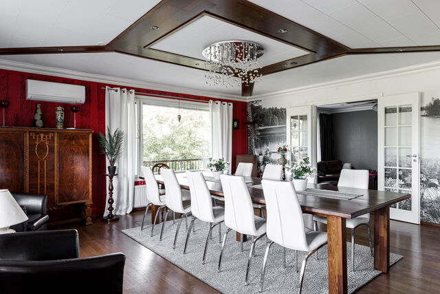 Etusivu / Pirkanmaa / Sastamala / Tampereentie 486 1 / 1 Tampereentie 486 Laukula, Sastamala | Omakotitalo | 6h, k, s, kph, allasosasto, khh, 2xwc, 2xvar. 495 000 € Velaton hinta 305,0 m2 Asuinpinta-ala 320,0 m2 Kokonaispinta-ala 1974 Rakennusvuosi Tervetuloa unelmiesi kotiin! Tämä upea omakotitalo Sastamalassa yhdistää modernin asumisen mukavuudet ja rauhallisen maalaisympäristön, tarjoillen sinulle ja perheellesi täydellisen paikan asettua aloilleen.Tämä tilava kaksikerroksinen koti on laajennettu ja peruskorjattu vuosina 20122015, joten voit nauttia ajanmukaisista ratkaisuista ja laadukkaasta asumisesta. Laadukas talo tarjoaa avarat ja valoisat tilat kuudella huoneellaan, keittiöllä, saunaosastolla sekä kahdella wc:llä. Erityisenä lisänä talossa on upea uima-allasosasto kylmäaltaineen, takkatiloineen. Saunaosasto sijaitsee laajennusosassa, ja tästä on käynti patiolle, jonka yhteydessä sijaitsee uimalampi. joka kutsuu rentoutumaan pitkän päivän päätteeksi. Käytännöllisyyttä arkeen tuo myös kodinhoitohuone ja varastotilat. Kiinteistöä ympäröi viihtyisä ja hyvin hoidettu piha-alue, joka tarjoaa runsaita istutuksia ja luonnonkivipengerryksiä, betoni- ja liuskekivimuureja ja kivipuutarhaan sopivia istutuksia. Useita kunnostuksia on tehty, mikä näkyy sekä pihan että rakennuksen hyvinvoivassa ja huolitellussa ilmeessä. Tontilla sijaitsee myös erillinen hallitila varasto- ja työtiloineen sekä erillinen toimistotila wc- ja suihkutiloineen, tilat soveltuvat hyvin yritystoimintaan tai hevosharrastajalle.Talo sijaitsee rauhallisessa ja maalaismaisessa ympäristössä, joka antaa mahdollisuuden nauttia luonnonrauhasta kuitenkin palveluiden ollessa kohtuullisen matkan päässä, Tampereelle omalla autolla vain hieman yli puolituntia. Sastamalan keskustan palveluihin ja Prismaan 5 km ja lähimmälle bussipysäkille noin 500 m. Tämä asuinalue on täydellinen paikka kasvaa perheelle, joka arvostaa tasapainoa luonnonrauhan ja palveluiden läheisyyden välillä.Oletko valmis astumaan uuteen elämäntilanteeseen tässä upeassa kodissa? Ota yhteyttä ja sovi oma yksityisesittely tämä on mahdollisuutesi tehdä unelmistasi totta!Tiina Joensivuylempi kiinteistönvälittäjä YKV, LKV, partner040 581 6660tiina.joensivu@bo.fi Kiinnostaako tämä kohde?Ota meihin yhteyttä tai jätä viesti Tiina Joensivu ylempi kiinteistönvälittäjä YKV, LKV, partner 040 581 6660 tiina.joensivu@bo.fi Tutustu välittäjään Varaa aika kalenteristani RakennusKäyttöönottovuosi1974RakennusmateriaaliPuu, tiili, betoniKattotyyppiAumakattoKateHuopaAsuinpinta-ala305,0 m2 (320,0 m2)Kerrokset2Muut tilat15,0 m2LämmitysÖljy-/puulämmitys, ilma-vesi-lämpöpumppu, varaava takkaHuoneluku6h, k, s, kph, allasosasto, khh, 2xwc, 2xvar.Keittiön kuvaus, lisätiedot ja varustusKaapistot, jääkaappi/pakastinx2, erillisuuni- ja taso (induktio), liesikupu/-tuuletin, integroitu astianpesukone, keittiön yhteydessä apukeittiö, kiinteät valaisimet. Keittiön työtasojen materiaaliPuu, kiviKeittiön lattiamateriaaliLaminaatti, korkkiPesutilojen kuvaus, lisätiedot ja varustusSaunan pesuhuone; 2xsuihku, vesikiertoinen lattialämmitys. Alakerta wc/suihkuhuone; wc-istuin, suihku, allas, allaskaappi, 2xpeili, lattia laatta, seinä kaakeli.Kylpyhuoneen varustusLattialämmitys, wc-istuin, suihkuKylpyhuoneen lattiamateriaaliLaattaKylpyhuoneen seinämateriaaliKaakeliSaunaAsunnossa on saunaSaunan lattiamateriaaliLaattaSaunan seinämateriaaliPuuWC-tilojen kuvausLukumäärä: 2KodinhoitohuoneAllasosaston yhteydessäVarustus: pesukoneliitäntäLattiamateriaalit: laattaSeinämateriaalit: maalattuMakuuhuoneen kuvaus, lisätiedot ja varustusLattiamateriaalit: Yläkerrassa parkettilattia, alakerrassa marmorilattia. Seinämateriaalit: Yläkerrassa maalattu/tapetti, alakerrassa tiili/kiviLukumäärä: 4Oleskelutilojen kuvaus, lisätiedot ja varustusLattiamateriaalit: parkettiSeinämateriaalit: maalattu, tapettiMuut tilatUima-allasosasto, lattia marmorilaatta, seinä pinnoitettu betoni, 6x3, syvyys 1,45-1.60m, laatoitettu. Lämmitys, alakerran lattialämmitys, (n.22°C ). Altaan lämmitys ilmavesilämpöpumppu/öljy/puu. Kylmävesiallas. Eteinen: lattia kivi, seinä maali. Eteishalli: lattia lautaparketti, seinä rappaus, kivi.TulisijaVaraavaTakkatiedotTakkaTehdyt korjauksetPeruskorjaus 2010-2015: uusittu sähköt, putket (viemärit muovia), lämmitysjärjestelmät, kaikki pinnat, keittiö, wc:t, kylpyhuoneet, salaojat, patolevyt, alakerta uusittu kokonaan, sauna uudessa laajennusosassa. 2004 ikkunat ja terassinovet uusittu. Ikkunoissa alumiini verhous ulkopuolella. 2005 öljy/puukattila uusittu, samalla hormiin asennettu teräspiippu. 2012 vesiputket uusittu ja viemäriputket uusittu laajalta osin. Viemäriputket kuvattu. 2013 ympärikaivuu+ salaojat+ patolevyt+ sepeli täyttö anturan alareunasta olemassa olevaan maanpintaan. 2013-2015 Ilmalämpöpumppuja asennettu. 2014 alakerran lattialämmitysputket (vesikiertoinen) koko alakertaan sekä uima-allas putkistot uusittu. 2015 uima-allas laatoitettu ja vesieristetty. Alakerran saneeraus valmistunut. Alakerran lattia, seinäpinnoitteet, kattopinnoitteet, pesuhuone vesieristys+ laatoitus ja sauna. 2015 laajennus valmistunut. (sauna, pesuhuone ja oleskelutila.) 2013-2016 piha ja puutarha+ ulkoallas. 2019 katto pinnoitteen uusinta (palahuopa). Hallin puoleinen lape tekemättä, tarvikkeet on olemassa. 2020 Ilmavesilämpöpumppu uusittu. 2025 hallin puoleinen kattopinnoite uusittu. Kauppaan ei kuuluIrtainKuntoHyväEnergiatodistusKylläEnergialuokkaD2018Lisätietoja energiatodistuksestaVoimassaoloaika 17.9.2028 KiinteistötiedotKiinteistötunnus790-456-9-42Kortteli/Kiinteistön nimiPerävainioTyyppiTilaTontin tyyppiTasamaatonttiTontin koko1,81 haTontin omistusOmaPanttikirjat330 000,00 €Lisätietoja tontistaTie perilleVesijohtoKunnanViemäriKunnanLisätietoja rakennusoikeudestaSastamalan kaupunki p.03 52 131 AsumiskustannuksetMuut maksut / lisätietoa maksuistaS