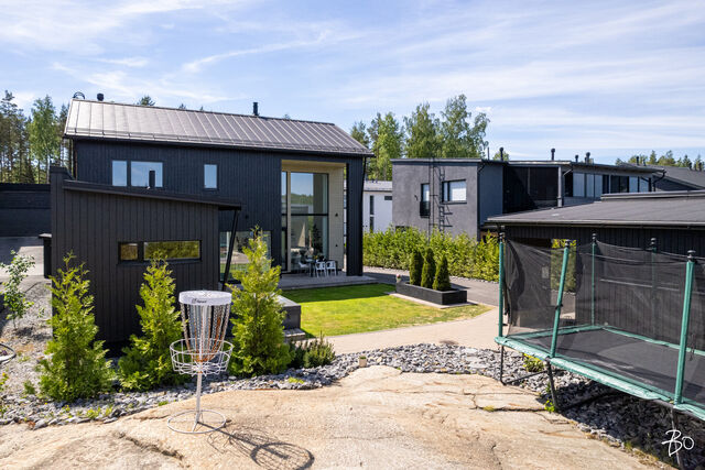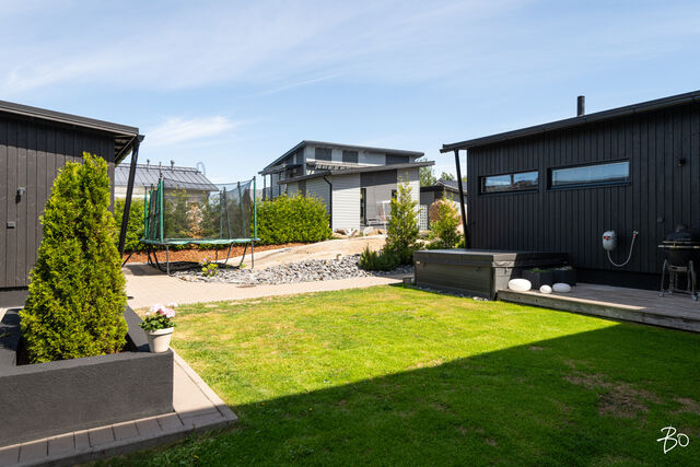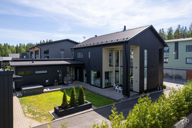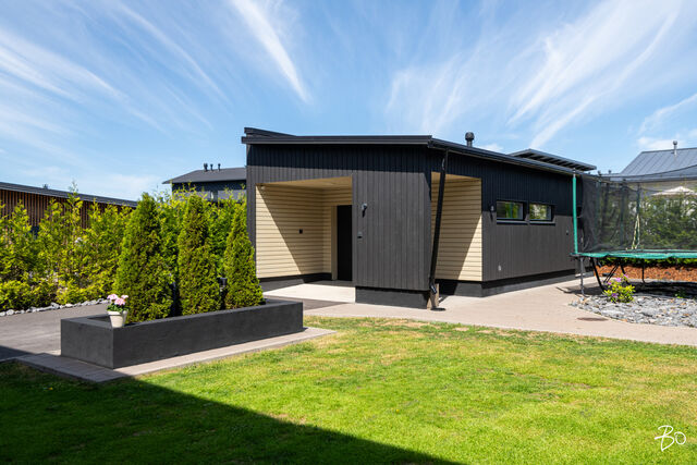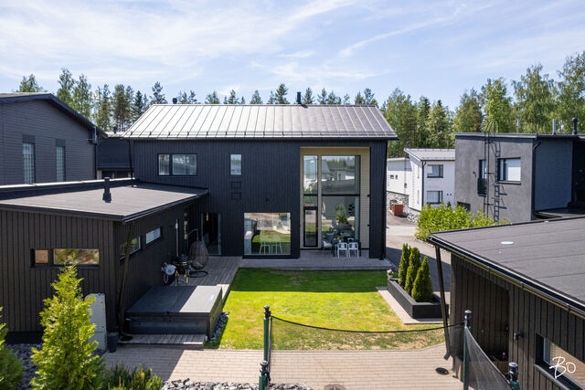 Etusivu / Pirkanmaa / Tampere / Mettonkatu 21 1 / 1 Mettonkatu 21 Lintuhytti, Tampere | Omakotitalo | 6h, k, khh, pukuh, 2 x kph, s, 3 x wc, ter., at 478 000 € Velaton hinta 156,0 m2 Asuinpinta-ala 189,0 m2 Kokonaispinta-ala 2017 Rakennusvuosi Ylellistä asumista tarjoava koti suositulla Lintuhytin alueella!Harvinaisen upea omakotitalo, joka on valmistunut vuonna 2017. Korkeassa olohuoneessa koko seinän korkuiset ikkunat antavat runsaasti luonnonvaloa. Tämä tuo skandinaavisen sisustuksen parhaat puolet esiin. Ajattoman kauniissa keittiössä viihtyy koko perhe. Lasitetun terassin jatkeena sijaitseva erillinen saunasiipi tarjoaa ihanteellisen paikan rentoutumiseen. Saunasiipi toimii tarpeesi mukaan hienosti myös vaikkapa vierashuoneena.Makuuhuoneita on peräti viisi kappaletta, joista yksi sijaitsee kätevästi alakerrassa ja loput yläkerrassa. Arjen toimivuutta lisäävät kolme wc:tä, joista yksi on yläkerran kylpyhuoneessa, toinen erillisenä alakerrassa ja kolmas saunasiivessä. Tämä koti vastaa vaativammankin perheen tarpeisiin. Energiatehokas maalämpöjärjestelmä takaa edulliset asumiskustannukset ja lisää ympäristöystävällisyyttä. Kesähelteillä maaviileä ihanasti viilentää tuoden asumiseen mukavuutta. Ulkoporealtaassa pääset nauttimaan olostasi. Piha on helppohoitoinen ja suojaisa, lapsille turvallinen paikka leikkiä. Autotalli on varustettu sähköauton latausasemalla. Reilun kokoisella sivupihalla on tilaa useammallekin autolle sekä lisäksi etupihalle mahtuu kaksi autoa. Mitä muuta vielä voit toivoa?Luonnonläheinen Lintuhytin alue tarjoaa rauhallisen asuinympäristön ja on ihanteellinen lapsiperheelle. Alueen monipuoliset ulkoilumahdollisuudet ja hyvin hoidetut ulkoilumaastot tekevät asumisesta entistä mukavampaa. Hervantajärven rannalla on laavukokonaisuus ja Makkarajärvellä nuotiopaikka. Kulkuyhteydet ovat hyvät ja reilun kilometrin päässä on Hervantajärven ratikkapysäkki. Tampereen keskustaan hurautat omalla autollasi vartissa. Olisiko tämä sinun unelmiesi koti? Otetaan siitä yhdessä selvää. Olethan yhteydessä ja sovitaan esittelystä!Lisätiedot ja esittelyt:Kirsi KonnosKiinteistönvälittäjä LKV, partner0400 831 687kirsi.konnos@bo.fiTiesithän, että ammattitaitoinen välittäjä on kullanarvoinen apu oman asuntosi myynnissä. Säästät aikaa ja rahaa valitsemalla kerralla oikein. Soita ja sovi tapaaminen -tervetuloa asiakkaakseni! Kiinnostaako tämä kohde?Ota meihin yhteyttä tai jätä viesti Kirsi Konnos kiinteistönvälittäjä LKV, partner 0400 831 687 kirsi.konnos@bo.fi Tutustu välittäjään RakennusRakennusvuosi (aloitettu)2016Käyttöönottovuosi2017RakennusmateriaaliPuuKattotyyppiHarjakattoKatePeltikate, Ruukki ClassicAsuinpinta-ala156,0 m2 (189,0 m2)Lisätietoja pinta-alastaAsuintilojen pinta-ala käsittää päärakennuksen tilat + saunasiiven. Rakennuspiirustusten mukainen huoneistoala 156 m2 on sama kuin asuintilojen pinta-ala. Asuinrakennus 1. krs: huoneistoala 80+18 m2, kerrosala 94+24 k-m2 ja 2. krs: huoneistoala 58 m2, kerrosala 68 k-m2. Kerrosala yhteensä 186 krs-m2. Muut tilat käsittävät talousrakennuksen (autotalli + varasto): huoneistoala 33 m2, kerrosala 40 k-m2. Pinta-alat perustuvat myyjältä saatuihin tietoihin ja rakennuspiirustuksista laskettuihin arvioihin. Pinta-aloja ei ole tarkistusmitattu, mitattaessa pinta-alat saattavat olla ilmoitettua suuremmat taikka pienemmät. Kohteen hinta ei ole pinta-alaperusteinen. Kerrokset2Muut tilat33,0 m2Lämmitysjärjestelmän kuvausMaalämpöLämmön jakotapaVesikiertoinen lattialämmitysHuoneluku6h, k, khh, pukuh, 2 x kph, s, 3 x wc, ter., atKeittiön kuvaus, lisätiedot ja varustusUpeassa keittiössä integroidut jääkaappi ja pakastekaappi, kiertoilmauuni, induktiokeittotaso, tasosta nouseva liesituuletin, mikroaaltouuni, astianpesukone. Puustellin kaapistot, kivitasot. Vinyylilattia, seinät maalattu.Pesutilojen kuvaus, lisätiedot ja varustusKaksi kylpyhuonetta. Yläkerran kylpyhuoneessa suihku, suihkuseinä, wc-istuin, pesuallas, peilikaappi, laattalattia, seinät kaakeloitu, lattialämmitys. Saunasiiven kylpyhuoneessa suihkut 2 kpl, laattalattia, seinät kaakeloitu, lattialämmitys, ikkuna. SaunaAsunnossa on saunaSaunan kuvaus, lisätiedot ja varustusHelo-sähkökiuas, lauteet lämpökäsiteltyä haapaa, seinät paneloitu, laattalattia, 2 ikkunaa.WC-tilojen kuvausAlakerrassa erillinen wc, jossa wc-istuin, pesuallas, peili, laattalattia, seinät kaakeloitu, lattialämmitys. Yläkerran kylpyhuoneessa wc sekä saunasiivessä wc.Lukumäärä: 3KodinhoitohuonePesukonelitäntä, pesuallas, kaapistot, kuraeteinen, laattalattia, seinät maalattu, lattialämmitys, käynti lasitetun terassin kautta saunasiipeen. Makuuhuoneen kuvaus, lisätiedot ja varustusKaikissa makuuhuoneissa vinyylilattiat ja seinät maalattu. Yhden makuuhuoneen yhteydessä walking closet. Yhdessä makuuhuoneessa yksi seinä rima-akustiikkalevyä, muut seinät maalattu. Neljässä makuuhuoneessa kaapit.Lukumäärä: 5Oleskelutilojen kuvaus, lisätiedot ja varustusAvarassa olohuoneessa vinyylilattia, seinät maalattu, varaava takka. Muut tilatSaunasiiven oleskelu / pukutilassa laattalattia, seinät maali + lämpöhaapapaneloitu, lattialämmitys. Kodinhoitohuoneen yhteydessä tekninen tila, jossa Swegon R5- ilmanvaihtokone, kotimainen Gebwell 8 kWh maalämpöyksikkö. Maalämpökaivon syvyys 190 m. Maaviileä. TakkatiedotTakkaTehdyt korjauksetSaunarakennuksen kylpyhuone kokonaan uusittu ja oleskelutilan / pukuhuoneen lattia ja sisäseinät uusittu 2022. Julkisivut maalattu 2023.Muuta kauppaan kuuluvaaOlohuoneessa, keittiössä, eteisessä, yläkerran yhdessä makuuhuoneessa lamelliverhot. Neljässä makuuhuoneessa sälekaihtimet. Ulkoporeallas Nord Spa 230 x 230 cm, 6 hlölle. Kiintolevyllä varustettu tallentava videovalvonta, 2 kameraa. Naapurin kanssa yhteisessä jätekatoksessa jäteastiat (sekajäte, biojäte, lasi ja metalli). Postilaatikko.Kauppaan ei kuuluIrtain.KuntoHyvä