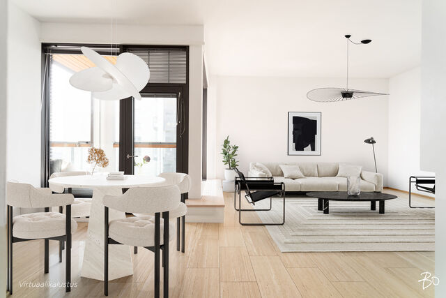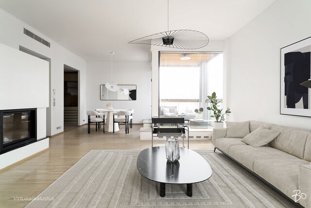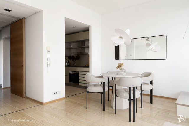 Etusivu / Uusimaa / Helsinki / Eiranranta 5 1 / 1 Eiranranta 5 Eiranranta, Helsinki | Kerrostalo | 3h, k, rt, khh, vh, ph, s, lasit. parveke (YJ mukaan 3h+k+rt+s) 1 179 000 € Velaton hinta 104,0 m2 Asuinpinta-ala 780,00 €/kk Hoitovastike 2008 Rakennusvuosi Mitkä näkymät, mikä sijainti! Luksusluokan asumista Helsingin parhaalla paikalla EiranrannassaAinutlaatuisen upea, erittäin laadukas kolmio, jossa mm. oma sauna ja tilava lasitettu parveke esteettömin merinäkymin. Tässä asunnossa kaikki on parasta, mitä markkinoilta saa. Sisustusmateriaalit ovat ensiluokkaisia, sijainti aivan merenrannassa arvostetussa Eirassa on haluttu.Suuri olohuone takkoineen sulautuu sujuvasti ruokailutilaan, josta käynti puolittain avonaiseen keittiöön. Kaappitilaa on runsaasti. Päämakuuhuoneen yhteydessä on tilava vaatehuone ja käynti suoraan kylpyhuoneen, jossa myös kaunis oma sauna. Toinen makuuhuone toimii tarvittaessa myös työhuoneena tai vierashuoneena. Kodinhoitohuone ja erillinen wc tuovat sujuvuutta arkeen ja lisäävät asumismukavuutta. Kaikkialla näkyy rakentamisen ylellisyys, korkea varustelutaso ja tyylikkäät materiaalivalinnat.Hissitalon 4. kerros.Vuonna 2008 valmistunut yhtiö, jossa asukasviihtyvyyteen on kiinnitetty erityistä huomiota. Hissillä pääset suoraan alas parkkihalliin, josta on mahdollisuus ostaa kaksi autohallipaikkaa 35.000 euroa kappale.Sijainti Helsingin parhaalla paikalla Eirassa aivan merenrannassa ei erikseen esittelyitä kaipaa. Ulkoilu ja liikunta upeassa Kaivopuiston rannassa tai pulahtaminen aamu-uinnille miltei suoraan edessä olevalta uimarannalta on arvokasta arjen luksusta. Lukuisat ravintolat ja kahvilat, monipuoliset palvelut ja liikkeet ovat käytössäsi aivan lähietäisyydellä.Ole pian yhteydessä, kysy lisätietoja ja sovi omasta yksityisesittelystäsi.Lämpimästi tervetuloa tutustumaan tähän todella uniikkiin upeaan kotiin!*****High end living in Eira with modern luxuriesSuper luxurious apartment in the best location in Helsinki with fantastic sea views.This two-bedroom apartment offers top quality living next to the sea with a huge glazed balcony and own sauna. Walk-in closet and separate toilet. Parking available on the underground garage, two parking lots at 35.000 euros a piece. Book your own private viewing.TÄMÄN KOHTEEN MYY / SALES & ENQUIRIESSusanna Arnall LKV LVV | 0400-884448 | susanna@bo.fiService also in English.http://www.susannaarnall.comhttp://www.facebook.com/susannaarnalllkv/IG: @susannaarnallHarkitsetko oman asuntosi myyntiä? Pyydä minut sitoumuksetta maksuttomalle arviokäynnille. Kerron samalla lisää tämänhetkisestä asuntomarkkinatilanteesta, palveluistani ja Bo:n loistavasta välityskonseptista sekä miten asunnonvaihdon suhteen kannattaa edetä. Autan mielelläni! Kiinnostaako tämä kohde?Ota meihin yhteyttä tai jätä viesti Susanna Arnall kiinteistönvälittäjä LKV, LVV, partner 0400 884 448 susanna@bo.fi Tutustu välittäjään Varaa aika kalenteristani HuoneistoOsakkeet990-1127HallintamuotoAsunto-osakeyhtiöHuoneluku3h, k, rt, khh, vh, ph, s, lasit. parveke (YJ mukaan 3h+k+rt+s)Kerros/Kerroksia4/8Asuinpinta-ala104,0 m2Muut tilat0,0 m2Lisätietoja pinta-alasta Isännöitsijäntodistuksen mukainen. Yhtiöjärjestyksen mukainen.NäkymätOlohuoneesta merinäköala, makuuhuoneet sisäpihalle päin.ParvekeLasitettuParvekkeen ilmansuuntaEteläHissiTaloyhtiössä on hissiLiesiKeraaminen liesi, induktioliesiKeittiön työtasojen materiaaliMuuKeittiön lattiamateriaaliKiviKeittiön seinien materiaaliMaalattuKylpyhuoneen varustusSuihkuseinä, lattialämmitys, wc-istuin, suihkuKylpyhuoneen lattiamateriaaliLaattaKylpyhuoneen seinämateriaaliKiviWC-tilojen kuvausVarustus: lattialämmitys, lattiakaivo, bidee-suihkuLattiamateriaalit: laattaSeinämateriaalit: kiviKodinhoitohuoneVarustus: pesukone, kuivausrumpu, pesuallas, pyykkikaapit, pöytätasoLattiamateriaalit: laattaSeinämateriaalit: maalattuSaunan lattiamateriaaliLaattaSaunan seinämateriaaliPuuMakuuhuoneen kuvaus, lisätiedot ja varustusLukumäärä: 2Lattiamateriaalit: parkettiSeinämateriaalit: maalattuOleskelutilojen kuvaus, lisätiedot ja varustusLattiamateriaalit: kiviSeinämateriaalit: maalattuKuntoHyväTakkatiedotTakka Kiinteistö- ja yhtiötiedotYhtiön nimiAsunto Oy Helsingin EiranrantakallioTontin omistusOmaTontin koko4 395,00 m2Käyttöönottovuosi2008RakennusmateriaaliBetoniKattotyyppiTasakattoKateKumibitumikateLämmitysjärjestelmäKauko, muuEnergiatodistusKylläLisätietoja energiatodistuksestaVoimassa 25.6.2034 asti.EnergialuokkaC2018Tehdyt korjaukset ja remontit2018 Kuntoarvio 2019 Pihasisäänkäynnin lasikatteen uusiminen 2019 Parvekelasituksien huoltokorjaukset 2021 Lämmönjakohuoneen alakeskuksen uusiminen 2022 Julkisivujen kuntoarvio 2024 Econet-järjestelmän uusiminen 2025 Lämpimän käyttöveden siirrin uusittuTiedossa olevat tulevat korjaukset/remontit"025 Julkisivukunnostus 2025 Porrashuoneen valaisimien muuttaminen ledeiksi 2026 Ilmanvaihtokanavien puhdistus a säätötyön loppuun saattaminen 2026 Kuntoarviossa mainittuja korjauksia tarvittaessa 2028 LukitusjärjestelmäLunastusoikeus yhtiölläKylläLunastusoikeus osakkaillaKylläMuut rajoituksetYhtiöjärjestys 14§ lunastusoikeus osakkaalla 4 viikkoa. Yhtiöllä on osakepääomaa ja arvonkorotusrahastoa alentamatta muulla omalla pääomalla oikeus lunastaa osakkeet, lunastusaika 5 viikkoa.Lainat254 715,12 €Kiinnitykset12 200 000,00 €IsännöitsijäIsännöintitoimisto REIM Pääkaupunkiseutu Oy Helsinki Iso Roobertinkatu 21 00120 Helsinki Isännöitsijä Noora Kauhanen 010 543 7245 Iso RoobertinkatuKiinteistönhoitoHuoltoyhtiöTaloyhtiössä muutaKerhohuone, ulkoiluvälinevarasto, irtaimistovarasto. Muita tietojaLisätietoa kaavoituksestaHelsingin kaupunki, p. 09 310 01691 www.hel.fiVapautuuHeti AsumiskustannuksetHoitovastike780,00 €/kk (7,50 €/m2)Yhtiövastike yhteensä780,00 €Vesi20,00 €/hlö/kkMuut maksut / lisätietoa maksuistaKotivakuutus henkilökoht