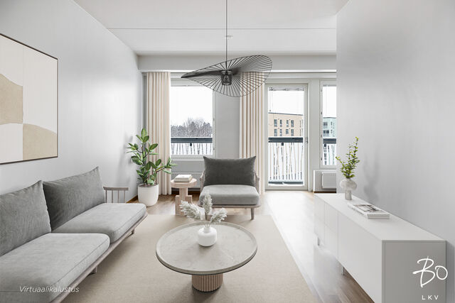 Etusivu / Uusimaa / Espoo / Syvänsalmenkatu 3 1 / 1 Syvänsalmenkatu 3 Finnoo, Espoo | Kerrostalo | 3h+kt+vh 405 000 € Velaton hinta 74,0 m2 Asuinpinta-ala 281,20 €/kk Hoitovastike 2022 Rakennusvuosi Valoa, avaruutta ja laatua Finnoon ytimessäTämä neljännen kerroksen kaunis kolmio avaa ovensa Finnoon uudessa, meren läheisyydessä kohoavassa korttelissa. 74 neliötä jakautuu selkeän toimivasti kahteen makuuhuoneeseen, avaraan olohuoneeseen ja keittiöön, ruokailutilaan sekä vaatehuoneeseen. Kodin sydämenä toimii yhtenäinen oleskelutila, jossa suuret ikkunat ja vaaleat pinnat tuovat arkeen kepeyttä ja valoa. Lasitettu länsiparveke kruunaa kokonaisuuden - paikka, jossa arki pysähtyy ilta-auringon äärelle.Keittiössä on kaksi jääkaappipakastinta, integroitu induktioliesi ja astianpesukone - kaikki kauniisti linjassa laminaattitasojen ja vaalean sävymaailman kanssa. Tilava kylpyhuone on viimeistelty laadukkailla pinnoilla ja sieltä löytyy oma paikka pyykkihuollolle. Makuuhuoneen yhteydessä oleva vaatehuone lisää käytännöllisyyttä ja säilytystilaa on muutenkin runsaasti.Asunto Oy Espoon Sykloni on valmistunut vuonna 2022 ja tarjoaa laadukasta, huoletonta asumista. Yhtiössä on sauna, kerhotila, pesutupa, kuivaushuone ja tilavat urheiluväline- ja lastenvaunuvarastot. Jokaiselle huoneistolle on varattu oma irtainvarasto, ja hissitalossa liikkuminen käy vaivatta.Finnoon metroasema on vain noin 150 metrin päässä - keskustaan pääsee kätevästi, ja metroyhteys ulottuu koko Helsingin halki. Lähellä ovat myös päivittäispalvelut, useat kauppakeskukset, koulut ja päiväkodit. Täällä asut uuden merellisen kaupunginosan ytimessä, jossa luonto ja palvelut kulkevat käsi kädessä. Ulkoiluun ja virkistykseen houkuttelevat Espoon rantaraitti, uimarannat ja metsäpolut - kaikki kävelymatkan päässä.Tässä on koti, jossa asuminen tuntuu hyvältä - arjessa ja juhlassa. Joko mennään katsomaan?Tarmo Wuolab 044 0807630Kiinteistönvälittäjä LKV, LVV, KiAT, Partnertarmo@bo.fihttp://www.tarmomyyasuntosi.fiTOSISSAAN, VAAN EI VAKAVASTIEi nimi miestä pahenna, sillä olen tehnyt Tarmokasta asuntokauppaa jo 35 vuotta ja noin 1900 kaupan kokemuksella.OMA ASUNTO MYYMÄTTÄ?Varaa minut helposti kalenterini kautta arvioimaan kotiasi.https://bo.fi/henkilo/tarmo-wuolab/#kalenteri Kiinnostaako tämä kohde?Ota meihin yhteyttä tai jätä viesti Tarmo Wuolab kiinteistönvälittäjä LKV, LVV, KiAT, partner 044 080 7630 tarmo@bo.fi Tutustu välittäjään Varaa aika kalenteristani HuoneistoOsakkeet2154-2331HallintamuotoAsunto-osakeyhtiöHuoneluku3h+kt+vhKerros/Kerroksia4/12Asuinpinta-ala74,0 m2Muut tilat0,0 m2Lisätietoja pinta-alasta Isännöitsijäntodistuksen mukainen. Yhtiöjärjestyksen mukainen.ParvekeLasitettuParvekkeen ilmansuuntaLänsiHissiTaloyhtiössä on hissiLiesiIntegroitu liesi, induktioliesi, erillisuuniKeittiön työtasojen materiaaliLaminaattiKeittiön lattiamateriaaliParkettiKeittiön seinien materiaaliMaalattuKylpyhuoneen varustusSuihkuseinä, pesukoneliitäntä, lattialämmitys, wc-istuin, suihku, peilikaappiKylpyhuoneen lattiamateriaaliLaattaKylpyhuoneen seinämateriaaliKaakeliMakuuhuoneen kuvaus, lisätiedot ja varustusLukumäärä: 2Lattiamateriaalit: parkettiSeinämateriaalit: maalattuOleskelutilojen kuvaus, lisätiedot ja varustusLattiamateriaalit: parkettiSeinämateriaalit: maalattuKuntoHyvä Kiinteistö- ja yhtiötiedotYhtiön nimiAsunto Oy Espoon SykloniTontin omistusOmaTontin koko2 032,00 m2Käyttöönottovuosi2022RakennusmateriaaliMuuKattotyyppiLapekattoKateKonesaumattu peltikateLämmitysjärjestelmäKaukoEnergiatodistusKylläLisätietoja energiatodistuksestaVoimassa 23.08.2032 saakka. EnergialuokkaA2018Tehdyt korjaukset ja remontit2025 Saunan ja kerhohuoneen lukitusmuutos 2024 VuositakuukorjaustöitäTiedossa olevat tulevat korjaukset/remontitEi tiedossa olevia korjauksia vuosille 2025-2029.Lainat12 571 785,88 €Kiinnitykset22 050 000,00 €IsännöitsijäVirta Isännöinti Oy, Tiia Karonen Itätuulenkuja 1 B, 02100 Espoo Puh: 020 733 5050KiinteistönhoitoHuoltoyhtiöYhtiön tilat ja varusteluSauna, talopesula, kuivaushuone, urheiluvälinevarasto, väestönsuoja, huoneistokohtaiset varastot, lastenvaunuvarasto. kerhohuone. Ilmanvaihtojärjestelmä: Mekaaninen Yhtiökokous antoi hallitukselle valtuudet myöntää yhtiön osakkaille lupa asentaa ilmalämpöpumppu osakkaan tekemän muutostyöilmoituksen perusteella. Luvan antamisen yhteydessä hallitus määrittelee osakkaalle asennukseen liittyvät tarkemmat ehdot tehtävälle asennukselle. Ilmalämpöpumppu saa olla vain viilentämistarkoitukseen ja kondensiovedet tulee ohjata yhtiön viemäriverkostoon. Muita tietojaLisätietoa kaavoituksestaEspoon kaupunki, kaavoitus. https://kartat.espoo.fi/VapautuuHeti AsumiskustannuksetHoitovastike281,20 €/kk (3,80 €/m2)Rahoitusvastike982,30 €/kk (13,27 €/m2)Yhtiövastike yhteensä1 263,50 €Vesimaksun peruste€/kkSauna20,00 €Muut maksut / lisätietoa maksuistaVesimaksuennakko 20 €/hlö/kk, autohallivuokra 50 €/kk, pesutupamaksu 12 €/kk. Hallitukselle myönnettu valtuudet periä tai jättää perimättä 1-2 ylimääräistä hoito- ja rahoitusvastiketta tarvittaessa. Yhtiökokouksessa 7.5.2025 päätettiin, että heinä- ja elokuussa 2025 jätetään hoitovastike perimättä. Käyttösähkö kulutuksen/oman sähkösopimuksen mukaisesti. Kotivakuutusmaksut omien sopimusehtojen mukaisesti. Varainsiirtovero 1,5 % velattomasta kauppahinnasta. Myyjällä on kaupan kohteeseen kohdistuva sähköinen omistajamerkintä huoneistotietojärjestelmässä. Ostajan tulee hakea omistusoikeuden rekisteröintiä Maanmittauslaitokselta. Ostaja vastaa tällöin omistusoikeuden rekisteröintikustannuksista. Ostajan pankin ostajalta mahdollisesti veloittamista kaupantekoon, omistusoikeuden rekisteröintiin tai panttausmerkinnän hakemiseen liittyvistä kustannuksista ostaja saa tiedon pankiltaan. HintaMyyntihinta148 927,30 € (2 012,53 €/m2)Velkao