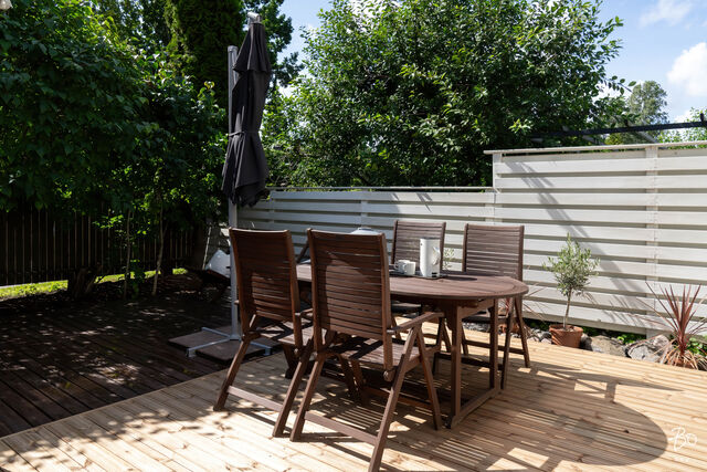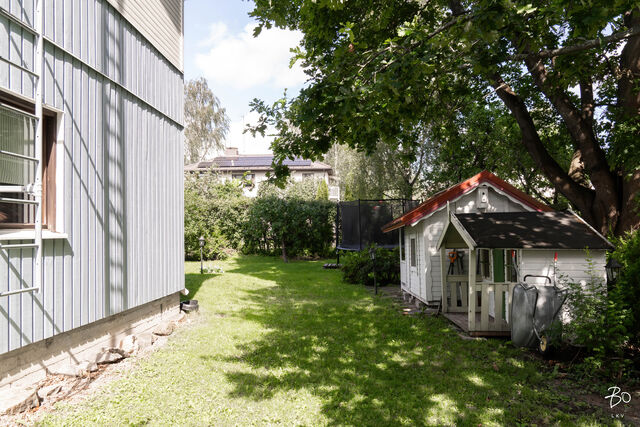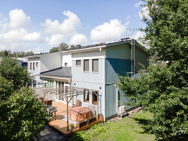Etusivu / Uusimaa / Helsinki / Uskalikonkuja 1 1 / 1 Uskalikonkuja 1 Vartioharju, Vartiokylä, Helsinki | Paritalo | 5h+avok.+s+kph/wc+erill. wc+var. (yj. 5h+k+sauna+var) 399 500 € Velaton hinta 112,5 m2 Asuinpinta-ala 427,50 €/kk Hoitovastike 1984 Rakennusvuosi Lapsiperheelle superviehättävä, pihallinen koti. Tässä kodissa on paljon uutta ja kaunista. Keittiö on vasta uusittu, viime vuonna tyylikäs sauna sekä kylpyhuone kattavasti uusittu myös. Lisäksi seinä- ja lattiapintoja on päivitetty. Nykyisen masterbedroomin alakerrassa voi pitää samalla paikallaan tai muuntaa tarpeidenne mukaan. Fiilis täällä on ihanan harmoninen ja valoisa, ja ikkunoita on runsaasti kolmeen ilmansuuntaan. Yläkerrassa on jopa kolme makuuhuonetta lisää, erillinen wc sekä parveke. Ilmalämpöpumppu tuo helteisiin helpotusta kuin myös merkittävästi lämpöä syksyn saapuessa.Iso terassi tuo kivasti lisätilaa varhaisesta keväästä myöhäiseen syksyyn. Viihtyisällä ja auringon suuntaisella terassilla on miellyttävä viettää aikaa samalla seuraten vaikka lasten leikkejä.Pihasta puheen ollen; kuinka mukavaa onkaan, kun siinä on näin paljon tilaa ja se on maastoltaan tasainen. Pelit ja leikit sujuvat suojaisalla alueella. Kaksikin autoa mahtuu pihalle ja sähkölatausmahdollisuus on valmiina.Kahdeksan asunnon paritaloyhtiö on tietoinen ja sillä on jo asialliset suunnitelmat seuraaviin perushankkeisiin niiden vaatimalla tavalla, jotta kiinteistön arvo saadaan säilymään / nousemaan tästäkin eteenpäin. Yhtiö sijaitsee omalla tontillaan ja tälläkin huoneistolla on hulppea oma hallinta-alueensa. Ihanteellinen sijainti, idyllisellä ja viihtyisällä pientaloalueella. Kehä I ja Itäväylä ovat sopivan lähellä, Puotilan metroasemalle kilometri. Peruskoulut, muut oppilaitokset ja runsaat harrastuskeitaat ovat mukavan matkan päässä, lähin kauppakin 400 metrin päässä. Kauppa- ja viihdekeskus Itikseen on vain vajaa kaksi kilometriä, kuuluisalle Puotilan kartanolle 800 metriä. Hienot luontoreitit ja merellisyys veneilyineen ja venesatamineen on vahvasti läsnä täällä itäisen Helsingin halutuimmilla asuinalueilla. Varainsiirtovero 1,5%. Tähän kotiin pääset tutustumaan varaamalla yksityisesittelyn, joten ota yhteys. Lämpimästi tervetuloa!MYYNTI:Tiina Virjonenmyyntipäällikkö, kiinteistönvälittäjä LKVtiina@bo.fi044 011 1066 Kiinnostaako tämä kohde?Ota meihin yhteyttä tai jätä viesti Tiina Virjonen myyntipäällikkö Töölö, kiinteistönvälittäjä LKV, partner 044 011 1066 tiina@bo.fi Tutustu välittäjään Varaa aika kalenteristani HuoneistoOsakkeet113-224HallintamuotoAsunto-osakeyhtiöHuoneluku5h+avok.+s+kph/wc+erill. wc+var. (yj. 5h+k+sauna+var)Kerros/Kerroksia1-2/2Asuinpinta-ala112,5 m2 (112,5 m2)Muut tilat0,0 m2Lisätietoja pinta-alastaMainittu pinta-ala saattaa tämän ikäisessä kohteessa (rakennettu ennen vuotta 1992) poiketa olennaisesti nykyisten standardien mukaan laskettavasta asuinpinta-alasta. Todellinen asuinpinta-ala voi tarkistusmittauksen jälkeen olla yhtiöjärjestyksessä, isännöitsijäntodistuksessa ja esitteessä mainittua pienempi tai suurempi. Yhtiöjärjestyksen mukainen. Isännöitsijäntodistuksen mukainen.Keittiön kuvaus, lisätiedot ja varustusKeittiö uusittu 2025 kesällä. Työtasot laminaattia, induktioliesi, erillisuuni, jääkaappi/pakastin, viinikaappi, astianpesukone, liesituuletin, mikroaaltouuni. Kylpyhuoneen varustusSuihkuseinä, pesukoneliitäntä, lattialämmitys, wc-istuin, suihku, kiinteät valaisimet, kylpyhuonekaapisto, asennettuja erikoisvarusteitaKylpyhuoneen lattiamateriaaliLaattaKylpyhuoneen seinämateriaaliKaakeliWC-tilojen kuvausAllaskaappi ja peili.Lukumäärä: 1Lattiamateriaalit: laattaSeinämateriaalit: kaakeliSaunan kuvaus, lisätiedot ja varustusUusittu sauna 2024, Harvian pilarikiuas, lämpöhaapalauteet ja -seinät. Saunan lattiamateriaaliLaattaSaunan seinämateriaaliPuuMakuuhuoneen kuvaus, lisätiedot ja varustusLukumäärä: 4SeinämateriaalitMaalattuLattiamateriaalitLaminaattia ja laattaa. Muuta kauppaan kuuluvaaPainovoimainen ilmanvaihto, jonka lisäksi sähköistettyjä tulo- ja poistoilmanvaihtoventtiilejä. Yläkerran makuuhuoneissa sälekaihtimet. Muutostyöt huoneistossa2010 yläkerran wc uusittu ja vesieristys Kesällä 2023: iImalämpöpumpun asennus Vuonna 2024: Piha-alueen siistiminen (-25) sälekaihtimien asennus yläkertaan, uudet sähköpatterit yläkertaan Kylpyhuoneremontti katosta lattiaan (lisäksi pieni wc-tila yhdistetty kylpyhuoneeseen ja kulku vain yhdestä ovesta), wc-istuin vaihdettu ikkunan alle ja pesukoneet vanhan wc-istuimen kohdalle. 2025: Alakerrassa kattolistat ja seinät maalattu, laminaatit uusittu, keittiö uusittu, Eteisen ulkovaatekaappi uusittu, terassilaudat uusittu 2025. Sekä keittiö- että kph-remontissa käyttövesiputket uusittu (yläkerrassa uusittu jossain vaiheessa edellisen omistajan aikana) KuntoHyvä Kiinteistö- ja yhtiötiedotYhtiön nimiAsunto Oy Uskalikonkuja 1-2Tontin omistusOmaTontin koko3 265,00 m2Käyttöönottovuosi1984RakennusmateriaaliPuuKattotyyppiHarjakattoKatePeltiLämmitysjärjestelmäSähkö, ilmalämpöpumppu, muuEnergiatodistusKylläLisätietoja energiatodistuksestaViimeinen voimassaolopäivä 28.9.2032.EnergialuokkaE2018Tehdyt korjaukset ja remontit2025 Kattoturvatuotteiden asentaminen 2025 Palokatkojen korjaus 2024 Ilmanvaihtokanavien nuohous ja ilmamäärien säätö, viemäreiden kuvaus ja huuhtelu 2022 Julkisivujen maalausurakka, rakennuskohtaiset energiatodistukset 2021 1A ja 1B varastojen kattojen maalaus, ikkunoiden kuntokartoitus 2019 Lämmitysverkoston tarkistus 2018 Lämmitysverkoston kuntokartoitus, asunnon 2 C vuorilautojen uusiminen 2017 Piha-aitojen uusiminen ja tuija-aidan kaataminen asunnon 2 D päästä 2016 Jätekatos, 1A ja 1B varastojen kattojen maalaus, väliaita 2A-B ja 2C-D väliin, uIkoväIinevarasto 2015 Loput tiehen rajoittuvasta aidasta uusittu 2014-2015 1A ja 1B varastojen kattojen ma
