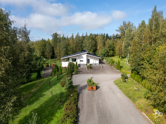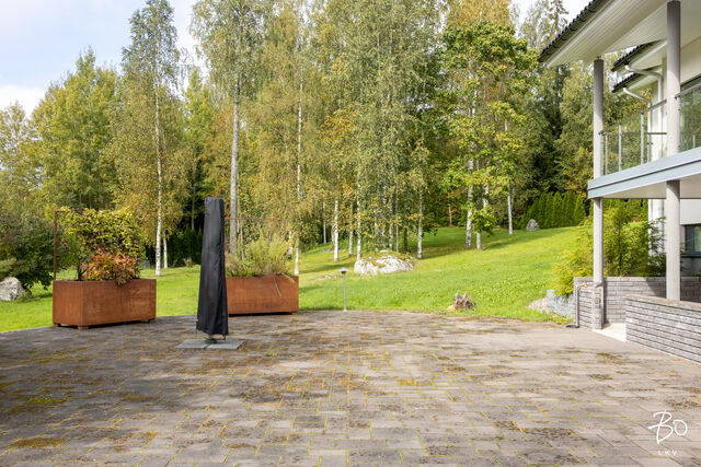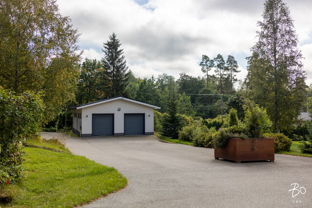 Etusivu / Uusimaa / Sipoo / Raiskintie 53 1 / 1 Raiskintie 53 Raiski, Savijärvi, Sipoo | Omakotitalo | 3 h, k, kph, 2 x erill. wc, s, pesuh. Takkahuone, mediahuone, monitoimihuone, tekninen tila. 895 000 € Velaton hinta 207,0 m2 Asuinpinta-ala 414,0 m2 Kokonaispinta-ala 2013 Rakennusvuosi Sipoo, Savijärvi, omakotitalo 207 / 414 m2 + autotalli 104 m2Hyvä tilaisuus hankkia itselle jykevä betoniharkoista rakennettu omakotitalo Savijärven kartanon maisemista, Sipoosta. Tämä arkkitehtonisesti tyylikäs kivitalo on rakennettu suurelle yli 8.600 neliöiselle tontille. Tontti on erittäin kaunis, hyvin suunniteltu ja hyvin hoidettu. Pihaan tultaessa on ensimmäisenä vastassa tilava, yli 100 -neliöinen autotallirakennus, jonka jälkeen asfaltoitu pihatie jatkuu kohti kaksikerroksista päärakennusta.Talon sisääntulokerros on poikkeuksellisen avara, valoisa ja kaunis. Olohuone aukeaa heti eteisestä suurena yhtenäisenä tilana keittiön ja ruokailutilan kanssa. Sen suurista ikkunoista aukeaa hieno maalaismaisema. Koko rakennus on rakennettu ympäröivän maiseman ehdoilla. Olohuoneesta on kulku isolle terassiparvekkeelle. jossa voi useamman hengen seurue nauttia vaikkapa ruokailusta kauniiden maisemien äärellä. Talon toinen terassi ja piha-alue aukeaa avarana laatoitettuna alueena alakerrasta. Olohuoneen yhteydessä oleva puhdaslinjainen avokeittiö, jonka kaapistot yhdistyvät kauniisti viereiseen ruokailutilaan. Tummaa puuta olevat keittiökaapistot ja valkoiset kivitasot on klassinen materiaaliyhdistelmä, joka toimii hienosti modernin arkkitehtuurin kanssa. Keittiö on kattavasti koneellistettu Mielen ja Gaggenaun laadukkain konein. Suuret kylmäsäilytystilat, kaasuliesi, induktioliesi sekä puuhella sekä erilaiset uunivaihtoehdot tekevät ruuanlaitosta miellyttävää. Makuuhuoneet sijaitsevat tässä kerroksessa. Makuuhuoneita on kaksi, mutta lisämakuuhuoneita tarvitseva löytää pohjaratkaisusta useita erilaisia vaihtoehtoja lisämakuuhuoneille. Päämakuuhuoneen yhteydessä on poikkeuksellisen suuri kylpyhuone, jossa on wc-istuimen, ammeen ja yli 4 metriä pitkän allaskaapiston lisäksi tilaa myös pyykkihuollolle. Sisääntulokerroksessa on lisäksi erillinen wc ja toisen sisäänkäynnin yhteydessä kuraeteinen pesu- ja kuivaustiloineen. Alakertaan saavuttaessa tullaan ensin suureen takkahuoneeseen, josta on käynti piha-alueelle. Sen vieressä on ylellinen saunaosasto pukeutumistiloineen. Saunassa on sekä puulämmitteinen, että sähkökiuas. Alakerrassa on erillinen elokuvateatteri, jonka katot ja seinät ovat akustiikaltaan huippuluokkaa. Projektori, laadukas kaiutinjärjestelmä sekä muut tilassa olevat laitteet sisältyvät kauppaan. Alakerrassa on lisäksi suuri harrastetila, joka taipuu moneen käyttöön uuden omistajan tarpeiden mukaan. Myös tekninen tila sijaitsee alakerrassa. Suuri piha-alue on lähes kauttaaltaan aidattu istutuksin ja on siksi turvallinen ja yksityinen. Piha on suunniteltu isosta pinta-alastaan huolimatta helppohoitoiseksi. Ajotiet ovat asfalttia, oleskelualueet on rajattu muurein ja viimeistelty kiveyksin. Nurmialueen leikkaamisesta huolehtii robottileikkurit. Autoilijan tarpeet on huomioitu hyvin. Piha-alueella on runsaasti paikoitustilaa ja talossa on lisäksi kahden auton tilava talli työ- ja pesutiloineen. Vaikka asunto sijaitseekin aivan maaseudun rauhassa, on palveluihin silti lyhyt matka. Nikkilän keskustaan on matkaa vain n. 4 kilometriä. Omalla autolla ajat Helsingin keskustaan kolmessa vartissa ja parhaimmillaan linja-auto vie saman matkan reilussa tunnissa. Tervetuloa tutustumaan tähän arvokohteeseen,Pekka Kujala, 040 832 8888, pekka@bo.fitaiRaya Virtanen, 040 820 7717 raya@bo.fi Kiinnostaako tämä kohde?Ota meihin yhteyttä tai jätä viesti Pekka Kujala kiinteistönvälittäjä LKV, partner 040 832 8888 pekka@bo.fi Tutustu välittäjään Varaa aika kalenteristani RakennusKäyttöönottovuosi2013RakennusmateriaaliMuu, betoniRakennusmateriaalien kuvausKaikki pihalla olevat rakenteet mm. parveke, portaat, muurit, ikkunapuitteet raudoitettu rosterilla. KattotyyppiPulpettiKatePeltikattoAsuinpinta-ala207,0 m2 (414,0 m2)Lisätietoja pinta-alastaIlmoitettu pinta-ala on rakennuspiirustusten mukainen huoneistoala. Muihin tiloihin on laskettu alakerran tilat, tekninen tila ja varasto. Varsinaiset asuintilat: 207 m2, kellaritilaa 162 m2, tekninen tila 16 m2, varasto 29m2. Lisäksi erillinen autotalli 105 k-m2. Pinta-aloja ei ole tarkistusmitattu.Kerrokset2Muut tilat207,0 m2Lämmitysjärjestelmän kuvausMaalämpö, ilmalämpöpumppuLämmön jakotapaVesikiertoinen lattialämmitys, uuni/takka, ilmalämpöpumppuHuoneluku3 h, k, kph, 2 x erill. wc, s, pesuh. Takkahuone, mediahuone, monitoimihuone, tekninen tila. Keittiön kuvaus, lisätiedot ja varustusModerni avokeittiö, jossa on runsaasti työ- ja laskutilaa, sijaitsee suuren olohuoneen jatkona. Keittiö on kattavasti koneellistettu mm. Mielen ja Gaggenaun konein. Keittiön ja olohuoneen väliin jää hyvin tilaa suurelle ruokapöydälle. Keittiön muut varusteetAstianpesukone, liesituuletin / hormiLiesiInduktioliesi, puuliesi, erillisuuniPesutilojen kuvaus, lisätiedot ja varustusAsunnon molemmissa kerroksissa on hyvät peseytymistilat. Yläkerran isossa kylpyhuoneessa on tilat niin ammeelle kuin wc-istuimelle ja pesutornille. Pitkä, yli 4 metrinen allaskaapisto toimii myös kodinhoitotilan työtasona. Lattia keraamista laattaa, seinät laattaa ja mikrosementtiä. Alakerran saunan yhteydessä on tilava peseytymistila, jossa tuplasuihkut. Lattia ja seinät keraamista laattaa, katto on puupaneelia. Yläkerran toisen sisäänkäynnin yhteydessä on ns. kuraeteinen. SaunaAsunnossa on saunaSaunan kuvaus, lisätiedot ja varustusAlakerrassa on tilava sauna, jossa on sekä sähkö- että puulämmitteinen kiuas. Seinät ja katto puupaneelia, lattia keraamista laattaa. WC-tilojen kuvausMolemmissa kerroksissa on tilavat erilliset wc-tilat. Molemmissa on seinät ja lattia keraamista laat