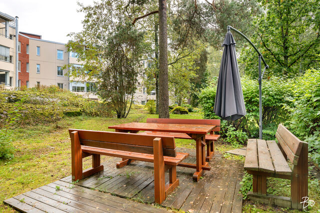Etusivu / Uusimaa / Helsinki / Professorintie 2 1 / 1 Professorintie 2 Munkkiniemi, Helsinki | Kerrostalo | 2h, avok, kph, lasit.parv, et (YJ: 2h+kk) 257 000 € Velaton hinta 50,5 m2 Asuinpinta-ala 287,85 €/kk Hoitovastike 1992 Rakennusvuosi Valoisa ja kaunis kaupunkikoti Munkkiniemessä!Tervetuloa asumaan Munkkiniemeen, joka hurmaa vehreydellään ja meren läheisyydellään. Tämä ihana kaksio tarjoaa asukkailleen toimivan kodin, jossa arki sujuu vaivattomasti ja kulku asuntoon on esteetön.Huoneisto sijaitsee hissitalon kolmannessa kerroksessa ja huoneistosta avautuu rauhalliset puistomaiset näkymät taloyhtiön kauniille sisäpihalle. Olohuone ja avokeittiö muodostavat toimivan kokonaisuuden ja keittiöstä on kulku omalle parvekkeelle. Makuuhuone on ylellisen iso ja siellä on täydellinen paikka työpisteelle ikkunan edessä. Juuri valmistuneen kylpyhuoneremontin jäljiltä pääset nauttimaan modernista kylpyhuoneesta. Taloyhtiö on hyvin hoidettu ja tarjoaa asukkailleen erinomaiset puitteet, kuten saunaosaston ja uima-altaan, joissa rentoutuminen on taattua. Yhteisöllisyys näkyy taloyhtiössä lämpimänä ja turvallisena ilmapiirinä, jossa on ilo asua.Munkkiniemen sijainti on vertaansa vailla. Munkkiniemen Puistotieltä löytyy kattavat päivittäispalvelut ja Munkkivuoren ostosteskus on kävelymatkan päässä. Raitiovaunulla ja bussilla pääsee helposti vaikka keskustaan. Asunto on Hitas-säädelty ja lisäksi taloyhtiössä on erityisehto: kunkin asunnon asukkaista ainakin yhden tulee olla 55 vuotta täyttänyt.Tule ja ihastu tähän kotiin! Näytöt joustavasti yksityisnäytöin.Myynti ja esittelyt:Sari Aaltonenkiinteistönvälittäjä LKV, LVV, partner0400 600 323 Kiinnostaako tämä kohde?Ota meihin yhteyttä tai jätä viesti Sari Aaltonen kiinteistönvälittäjä LKV, LVV, partner 0400 600 323 sari.aaltonen@bo.fi Tutustu välittäjään Varaa aika kalenteristani HuoneistoOsakkeet4454-6142HallintamuotoAsunto-osakeyhtiöHuoneluku2h, avok, kph, lasit.parv, et (YJ: 2h+kk)Kerros/Kerroksia3/5Asuinpinta-ala50,5 m2Muut tilat0,0 m2Lisätietoja pinta-alastaPinta-alaa ei ole tarkistusmitattu. Mainittu pinta-ala saattaa tämän ikäisessä kohteessa (rakennettu ennen vuotta 1992) poiketa olennaisesti nykyisten standardien mukaan laskettavasta asuinpinta-alasta. Todellinen asuinpinta-ala voi tarkistusmittauksen jälkeen olla yhtiöjärjestyksessä, isännöitsijäntodistuksessa ja esitteessä mainittua pienempi tai suurempi. Yhtiöjärjestyksen mukainen. Isännöitsijäntodistuksen mukainen.NäkymätNäkymät puistomaiselle sisäpihalle (lounas)ParvekeSisäänvedettyHissiTaloyhtiössä on hissiKeittiön kuvaus, lisätiedot ja varustusAvokeittiössä valkoiset keittiökaapistot. Tasot laminaattia. Välitilassa lasilevy. Jääkaappi/pakastin, astianpesukone, induktioliesi, uuni, liesituuletin, teräsallas. Keittiöstä käynti parvekkeelle. Seinät: maalattu. Lattia: parkettiPesutilojen kuvaus, lisätiedot ja varustusSuihku/sadesuihku, kääntyvä suihkuseinä, wc-istuin, käsisuihku, pesukoneliitäntä, allas, laatikosto, leveä peilikaappi valolla, kapea peilikaappi. Seinät: laatta. Lattia: laattaMakuuhuoneen kuvaus, lisätiedot ja varustusMakuuhuoneessa on tilaa myös työpisteelle. Vaatekaapistot. Seinät: maalattu. Lattia: parkettiOleskelutilojen kuvaus, lisätiedot ja varustusSeinät: maalattu. Lattia: parkettiMuuta kauppaan kuuluvaaSälekaihtimetKauppaan ei kuuluIrtaimistoMuutostyöt huoneistossa2017: keittiöremontti ja uudet kodinkoneet, lattiat uusittu (parketti), kaappien ovet uusittu, seinät maalattu. Edellinen isännöitsijä valvonut muutostyön. KuntoHyväLisätietoa kunnostaAsunto remontoitu 2017, kylpyhuone uusittu 2025. Kiinteistö- ja yhtiötiedotYhtiön nimiAsunto Oy Helsingin ProfessorinaukioTontin omistusVuokrattuTontin koko3 925,00 m2Tontin vuokraajaHelsingin kaupunkiTontin vuokrasopimus päättyy31.12.2055Tontin vuokra81 976,16 €Käyttöönottovuosi1992RakennusmateriaaliBetoniKattotyyppiTasakattoKateBitumiLämmitysjärjestelmäKauko, muuEnergiatodistusKylläLisätietoja energiatodistuksestaVoimassa 304.2028 astiEnergialuokkaD2018Tehdyt korjaukset ja remontit2002 Tarkastus: Kuntoarvio / 10-vuotisvastuutarkastus 2002 Märkätilat ja ilmanvaihto: Märkätilojen korjaukset(Salpa-Rakennuttajat Oy:n takuukorjaukset) ja poistoilma- kanaviston ja -kojeiden puhdistus ja säätö 2004 Uima-allastila, ulko-ovet, vesikatto ja elementtisaumaus: Tulokojeen uusiminen uima-allastilassa, ulko-ovien huoltomaalaus, vesikaton kuntokartoitus, elementtisaumoja korjattu, pesukoneen rahastin uusittu 2005 Uima-allaslaitteet ja piha: Uima-allaslaitteiden (vedenkäsittely-laitteiden) uusiminen, piharakenteiden kunn.töitä, kuntokatselmus, pyykinpesukoneen uusiminen 2006 Kerhohuone: Takkaimuri kerhohuoneeseen, apteekin tuloilmakoje uusittu, tiskikone kerhotilaan 2007 Märkätilat: Asuntojen märkätilojen ja keitt. tark. (kost.mitt., vesikalusteet, lattiakaivot), tuuletusviemäreiden kuntokatselmus ja tarvittavat korjaustyöt, pohjaviemäreiden painehuuhtelu 2008 Vesikatto: Vesikaton huopakatteen tarkastaminen ja pienten vikojen korjaukset 2008-2009 Julkisivu: Parvekkeiden ja julkisivun kuntotutkimus, sekä elementtisaumojen tarkastus 2009 Kylpyhuoneet: Kylpyhuoneiden korjaustöitä suoritetun kartoituksen pohjalta 2009 Lukitus (toteutussuunnittelu, toteutus): Lukituksen uusiminen (Abloy Sento) 2010 Ikkunat ja parvekeovet (toteutussuunnittelu): Ikkunoiden ja parvekeovien huoltomaalauksen korj.työselostuksen ja urakka-asiakirjojen laadinta 2010 Parvekeovet: Parvekeovivikojen kartoitus ja vikojen korjaukset 2010 Ikkunat ja parvekeovet (toteutus): Ikkunoiden ja parvekeovien huoltomaalaus (ulkopinta) 2014 Lämmitysjärjestelmä: Lämmönvaihdin, linjasäätöventtiilit patteriventtiilit ja järjestelmän tasapainotus 2015 Lukitus: Kulkutunnisteet kaukosäätimien tilalle 2015 Kylpyhuoneiden kuntokartoitus 2016 IV-hormit: nuohous 2016 Ovipuhelimet: uusiminen 2017 Viemärit: Kuva